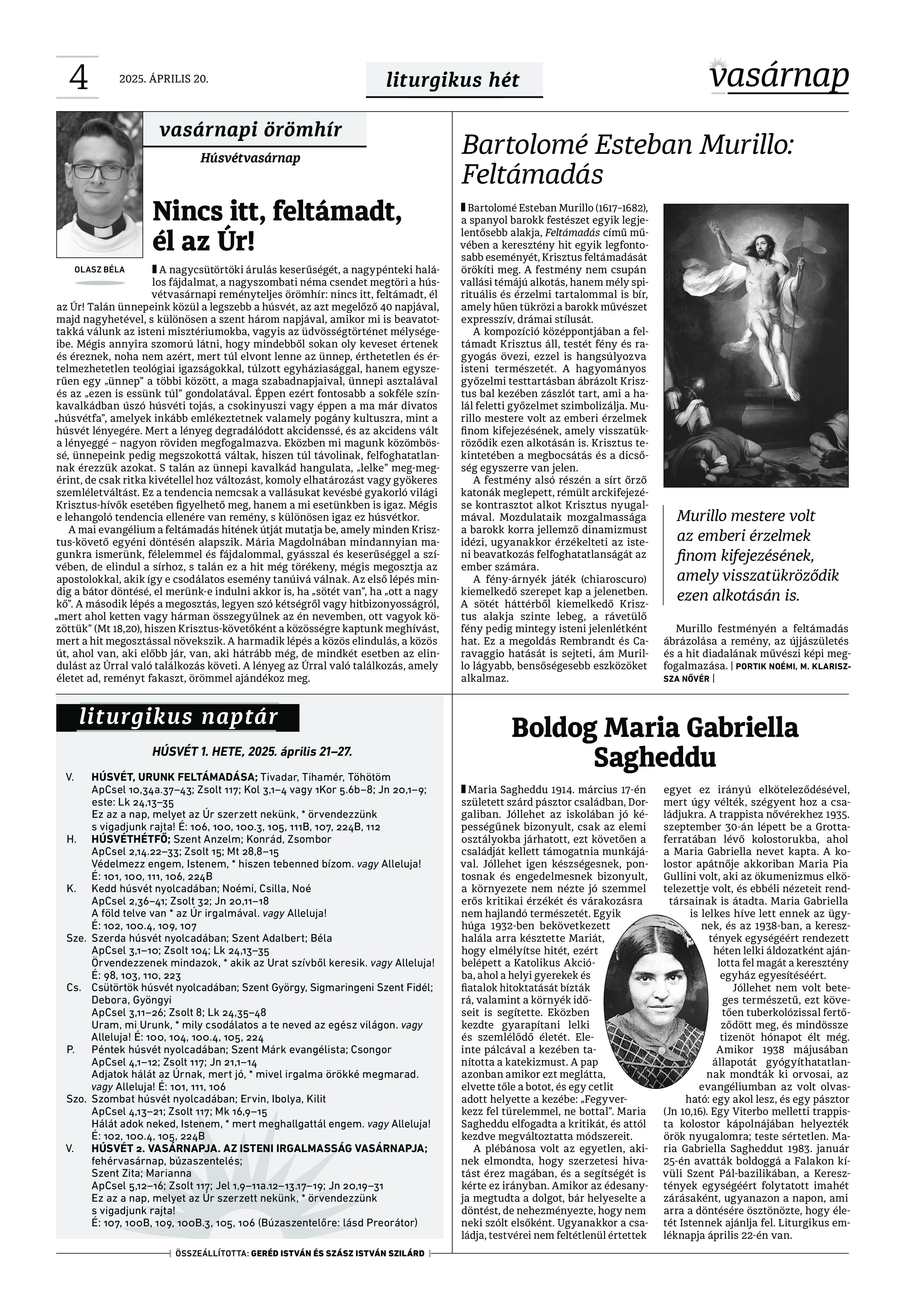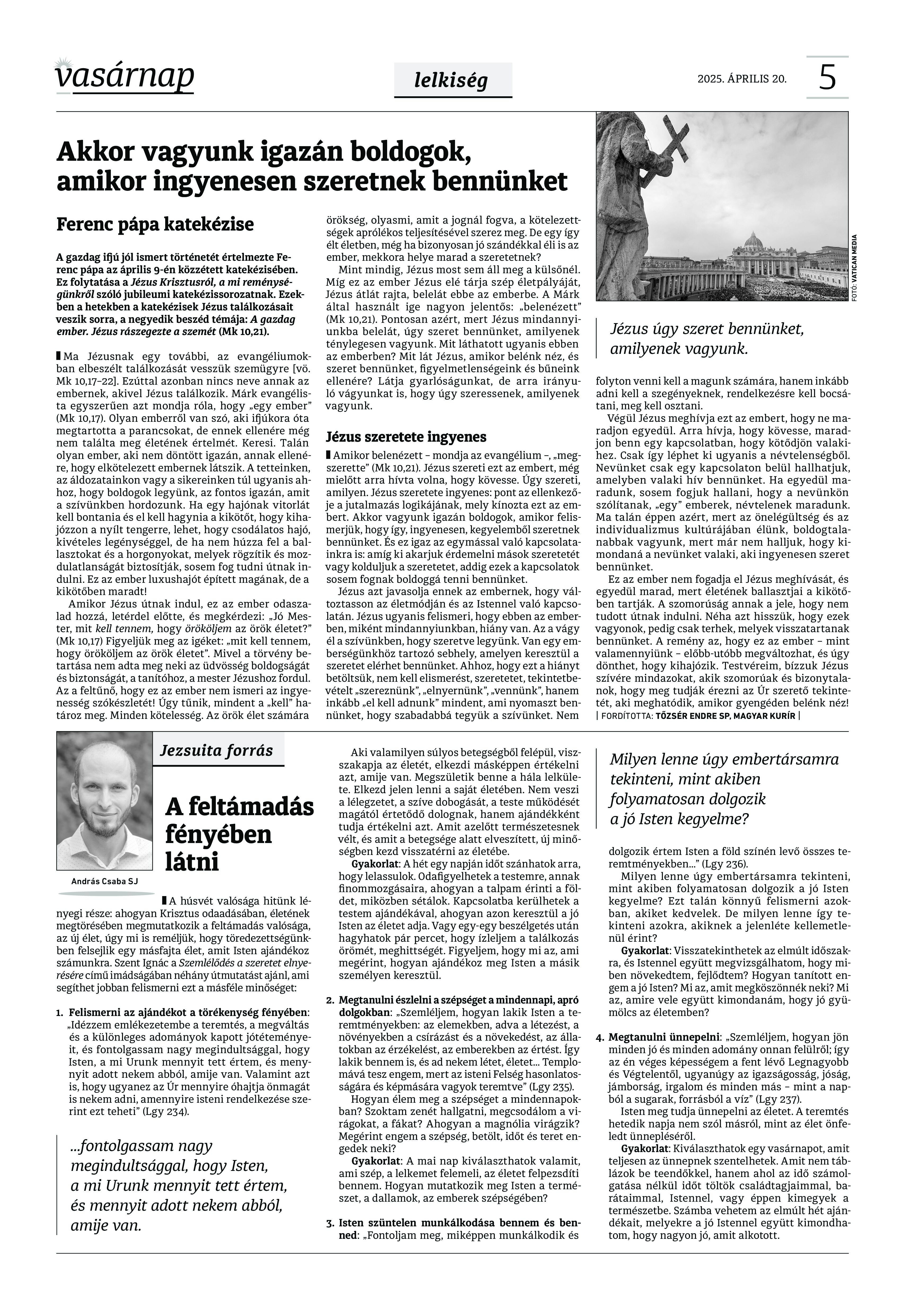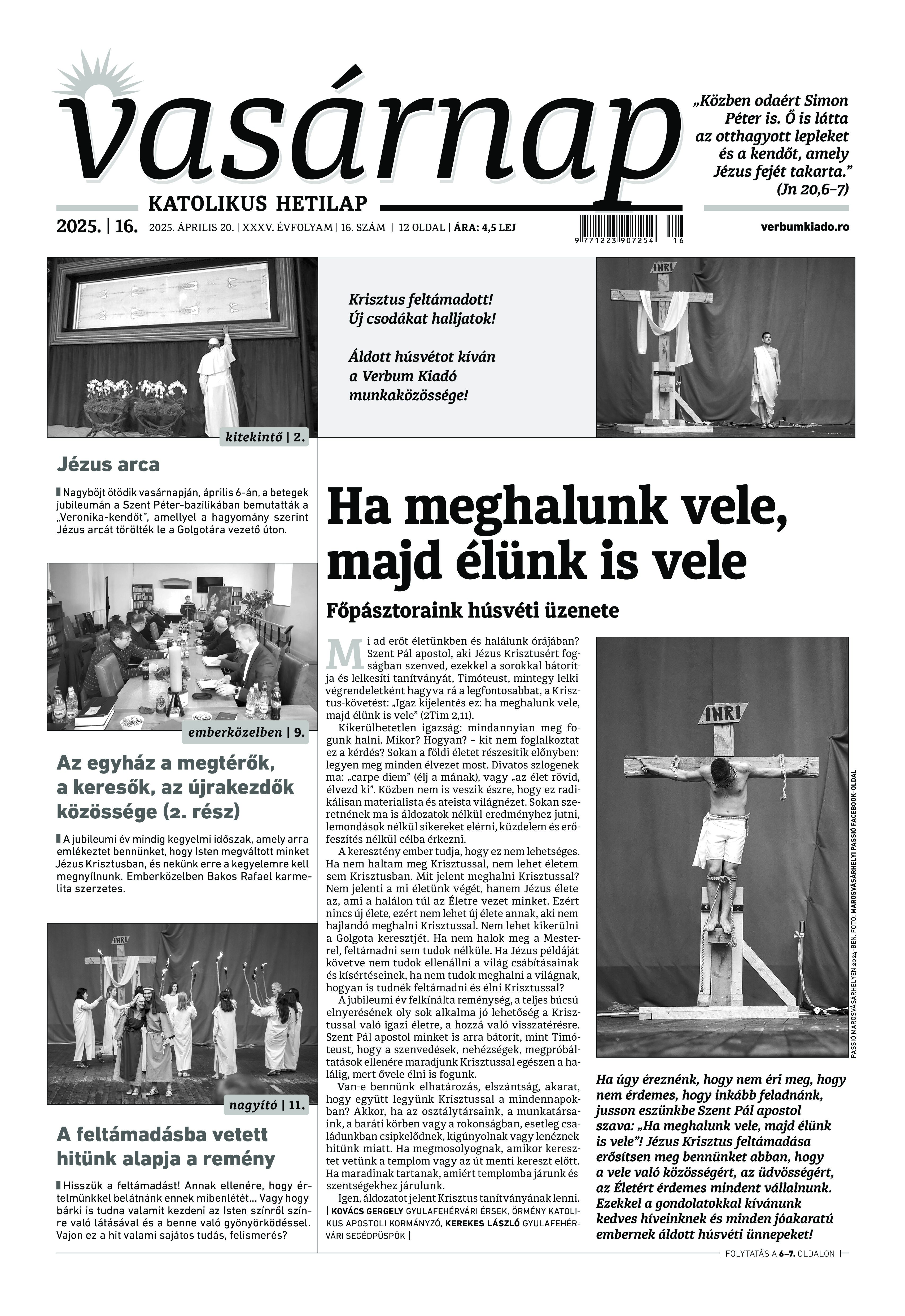 VASÁRNAP - 2025. április 20. A Vasárnap Katolikus Hetilap 2025. április 20 / XXXV évf. / 16. számának digitális változata. 1 / 12 2 & 3 / 12 4 & 5 / 12 6 & 7 / 12 8 & 9 / 12 10 & 11 / 12 12 / 12