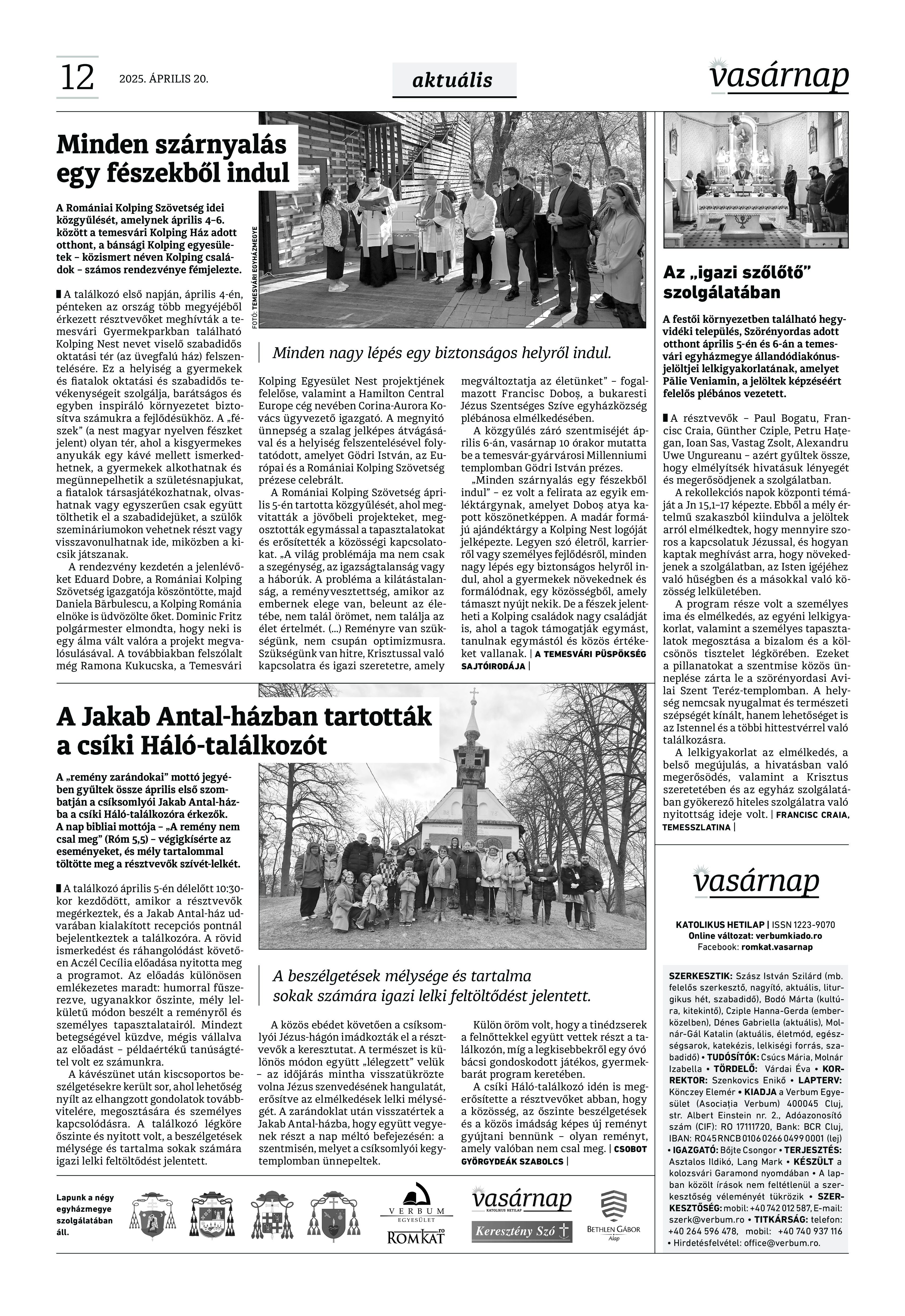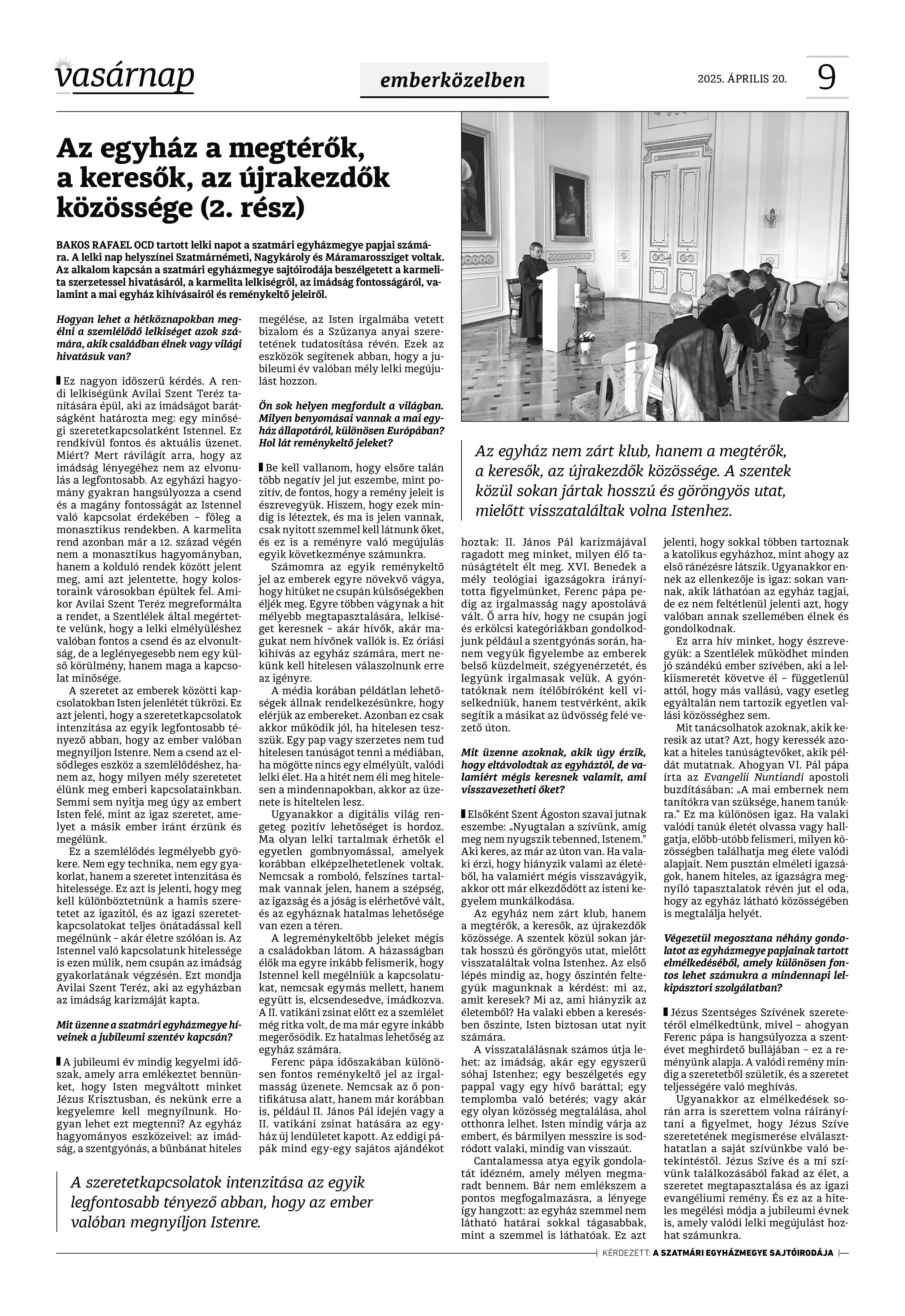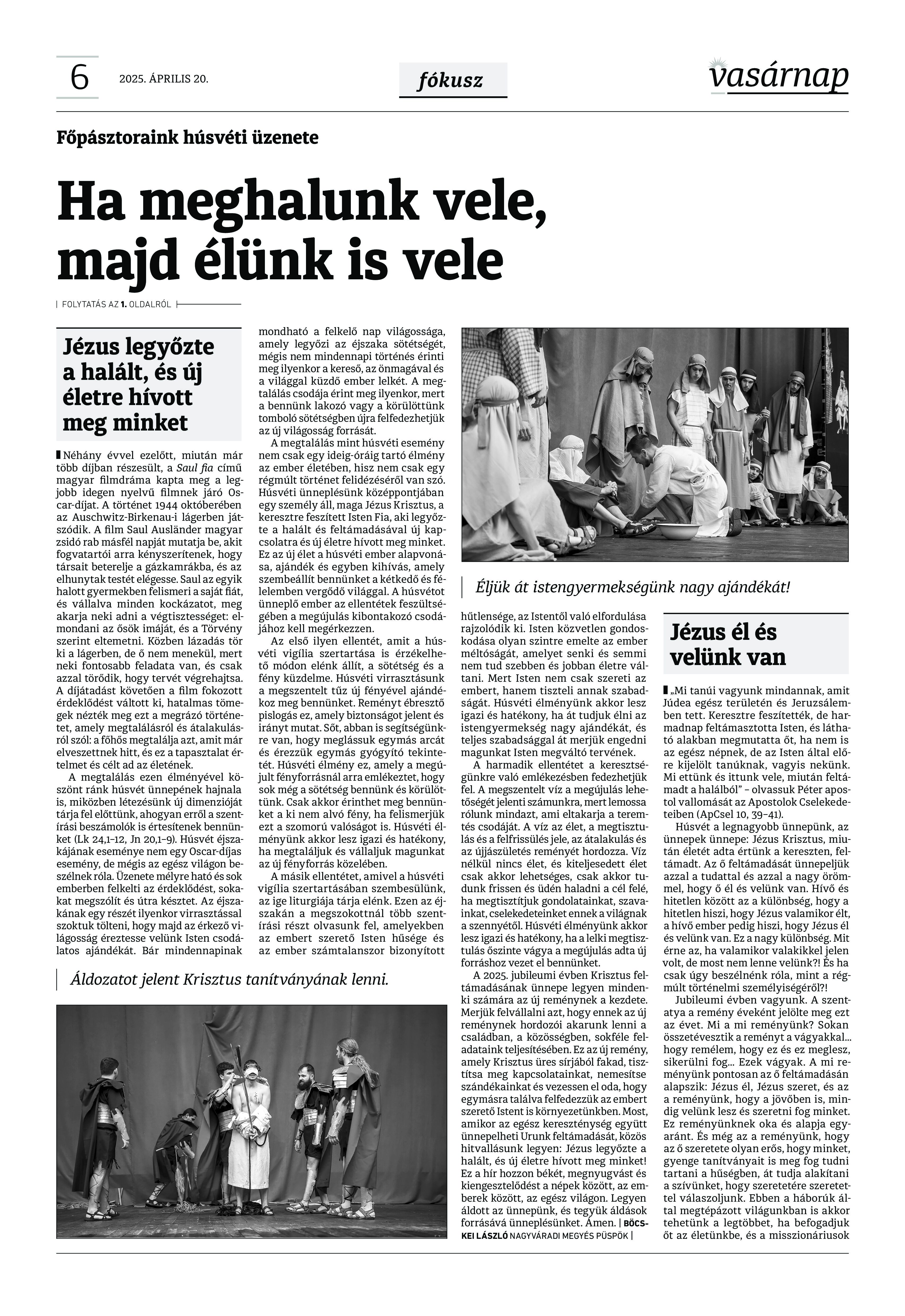 VASÁRNAP - 2025. április 20. A Vasárnap Katolikus Hetilap 2025. április 20 / XXXV évf. / 16. számának digitális változata. 1 / 12 2 & 3 / 12 4 & 5 / 12 6 & 7 / 12 8 & 9 / 12 10 & 11 / 12 12 / 12