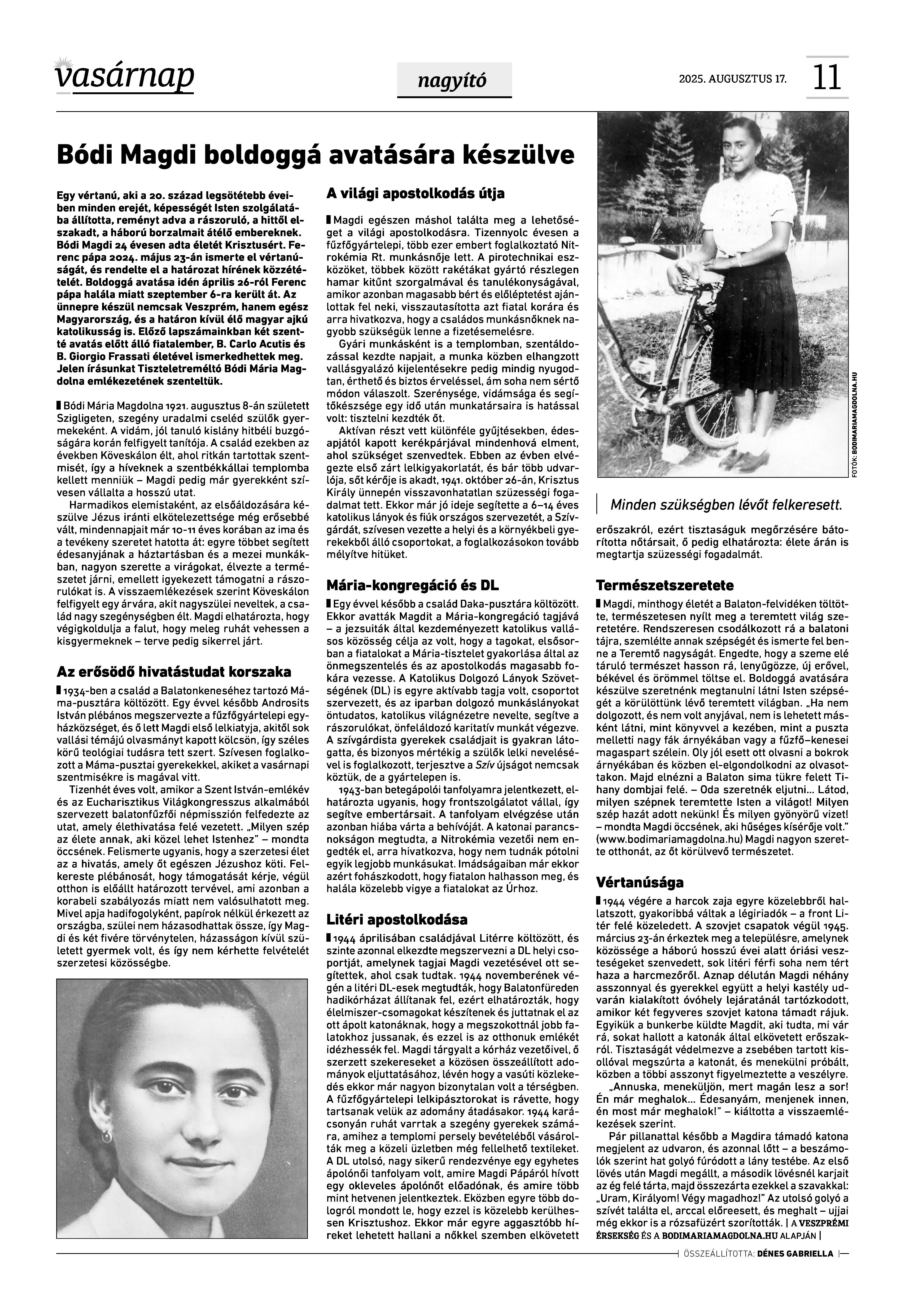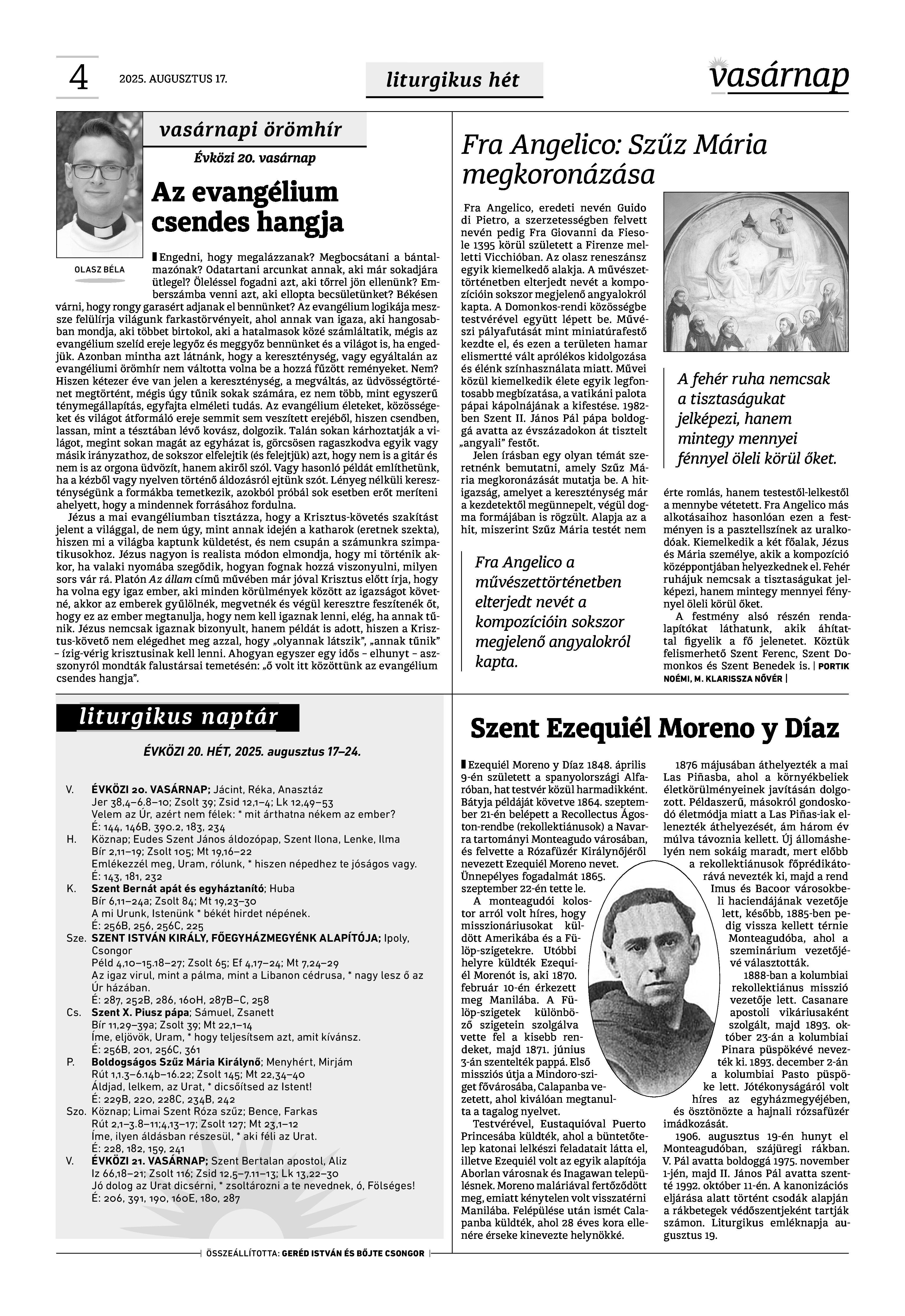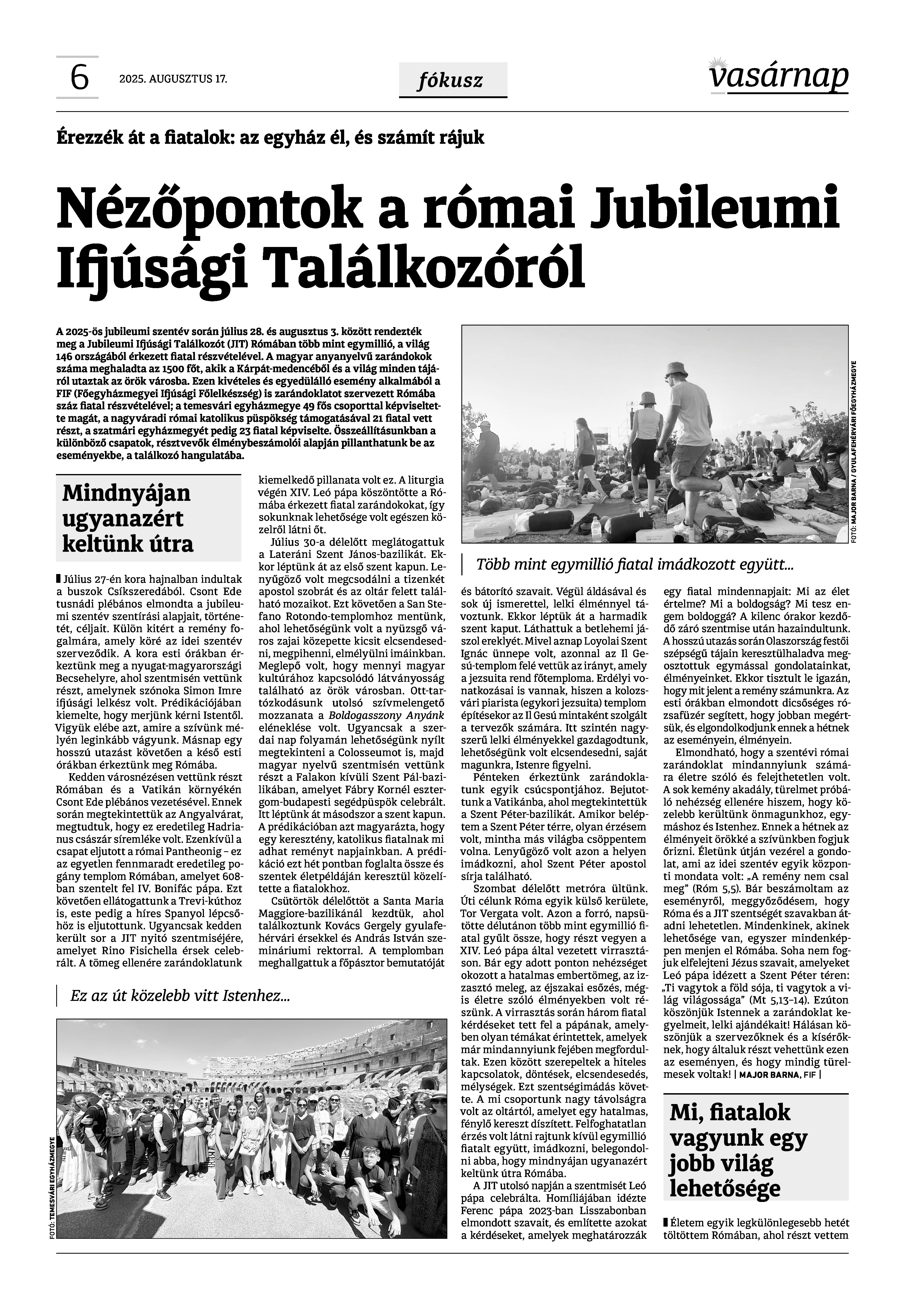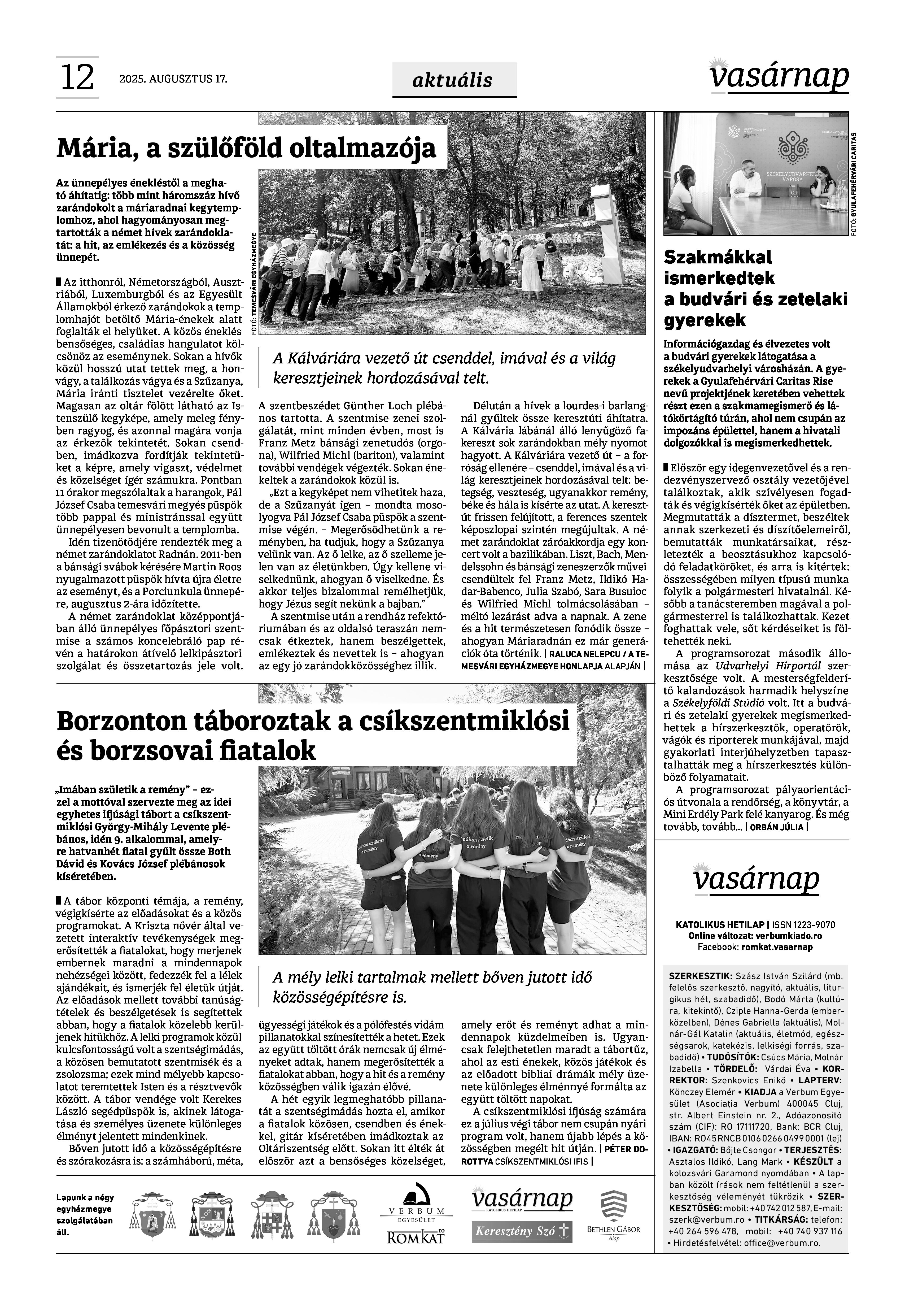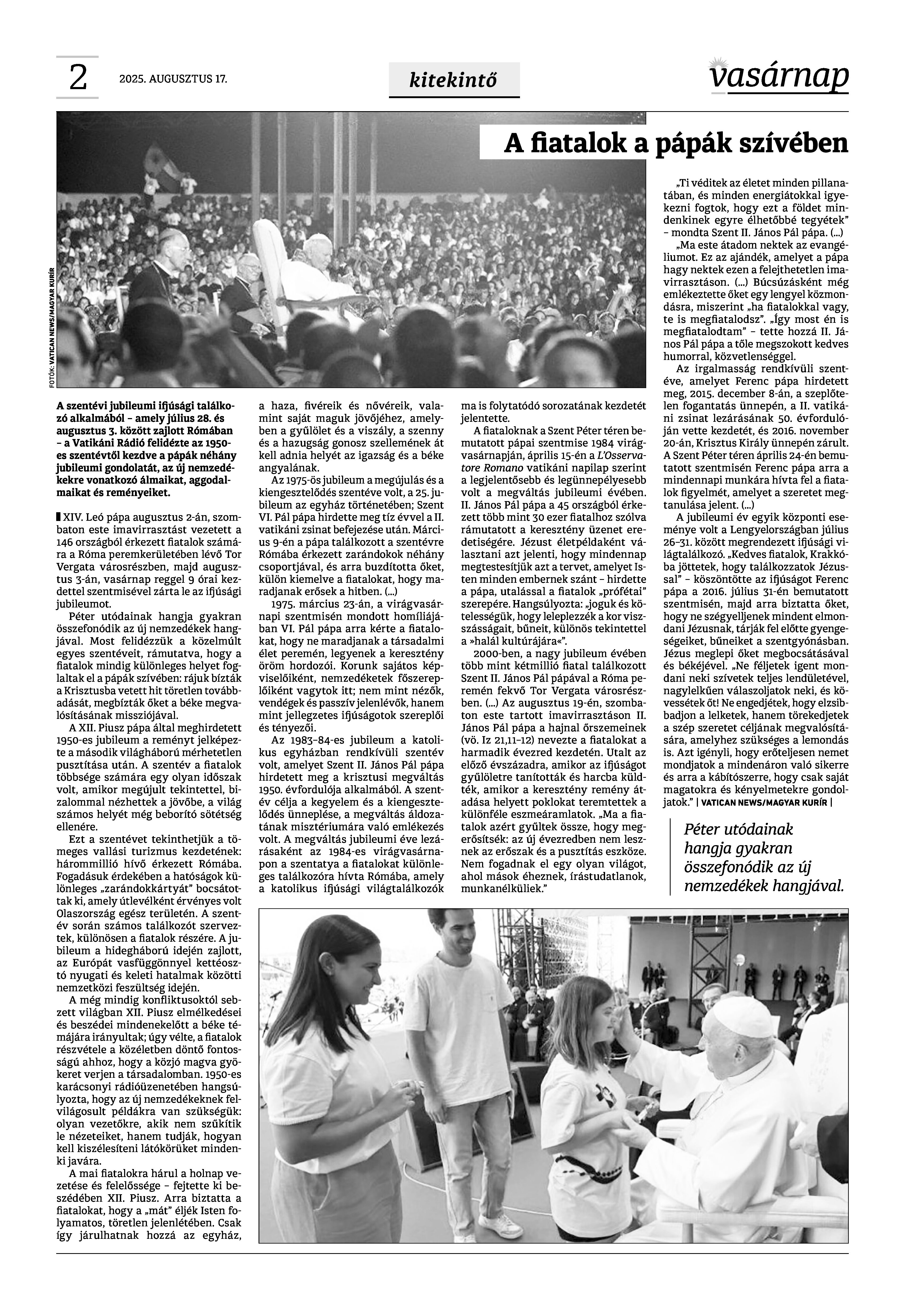 A Vasárnap Katolikus Hetilap 2025. augusztus 17. / XXXV évf. / 33. számának digitális változata.
