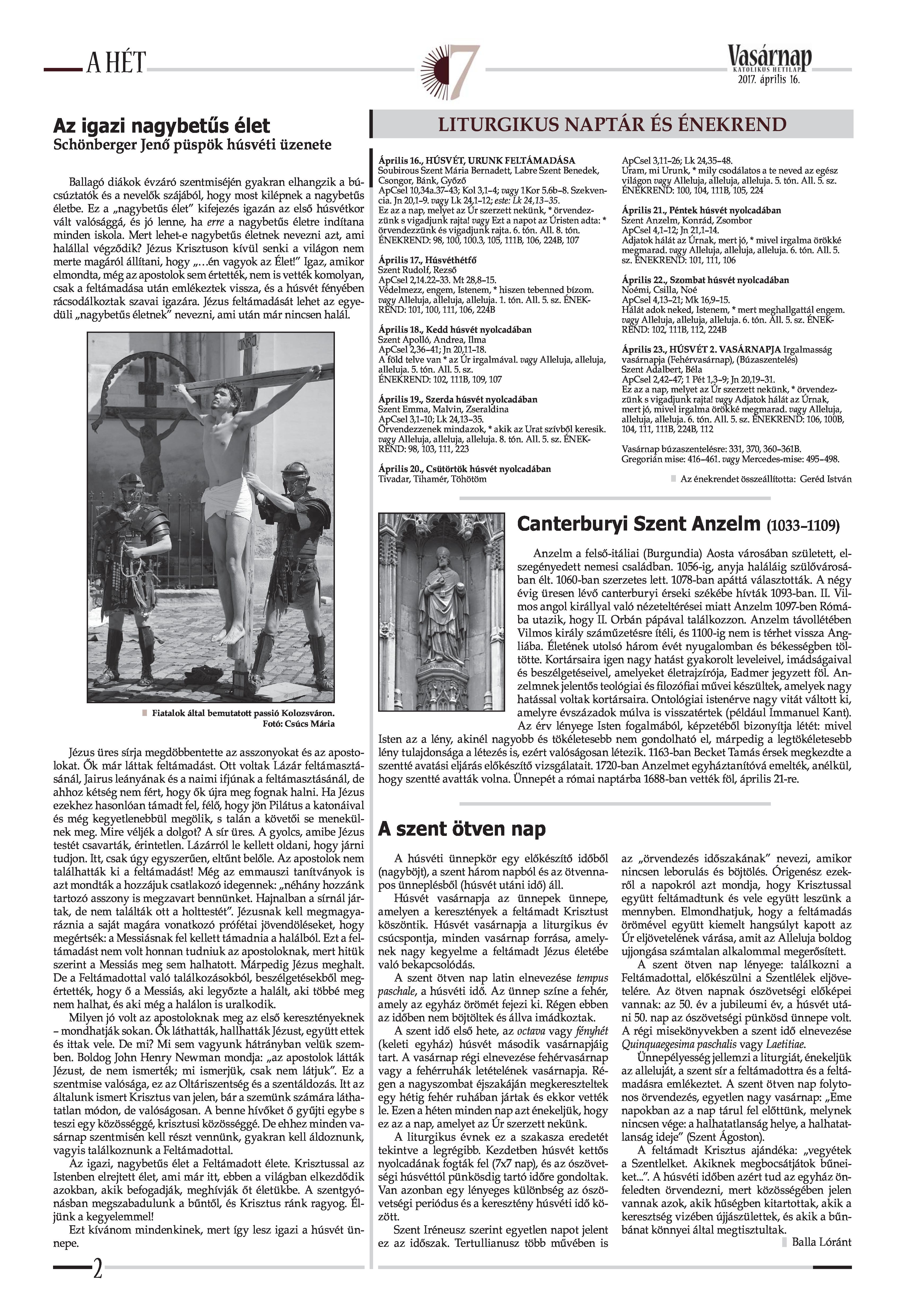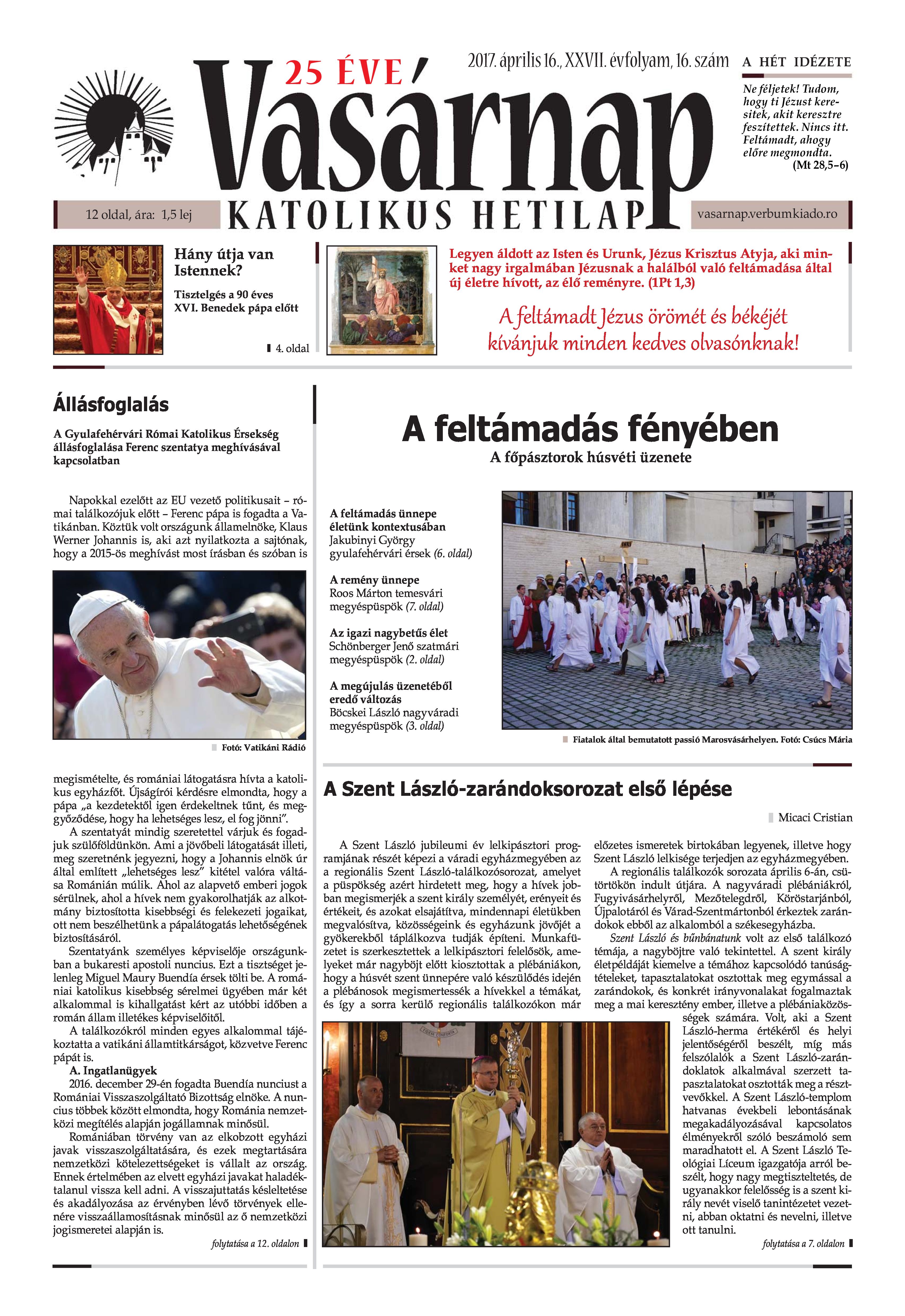 Vasárnap Katolikus Hetilap 2017. április 16. / XXVII. évf. / 16. számának digitális változata.