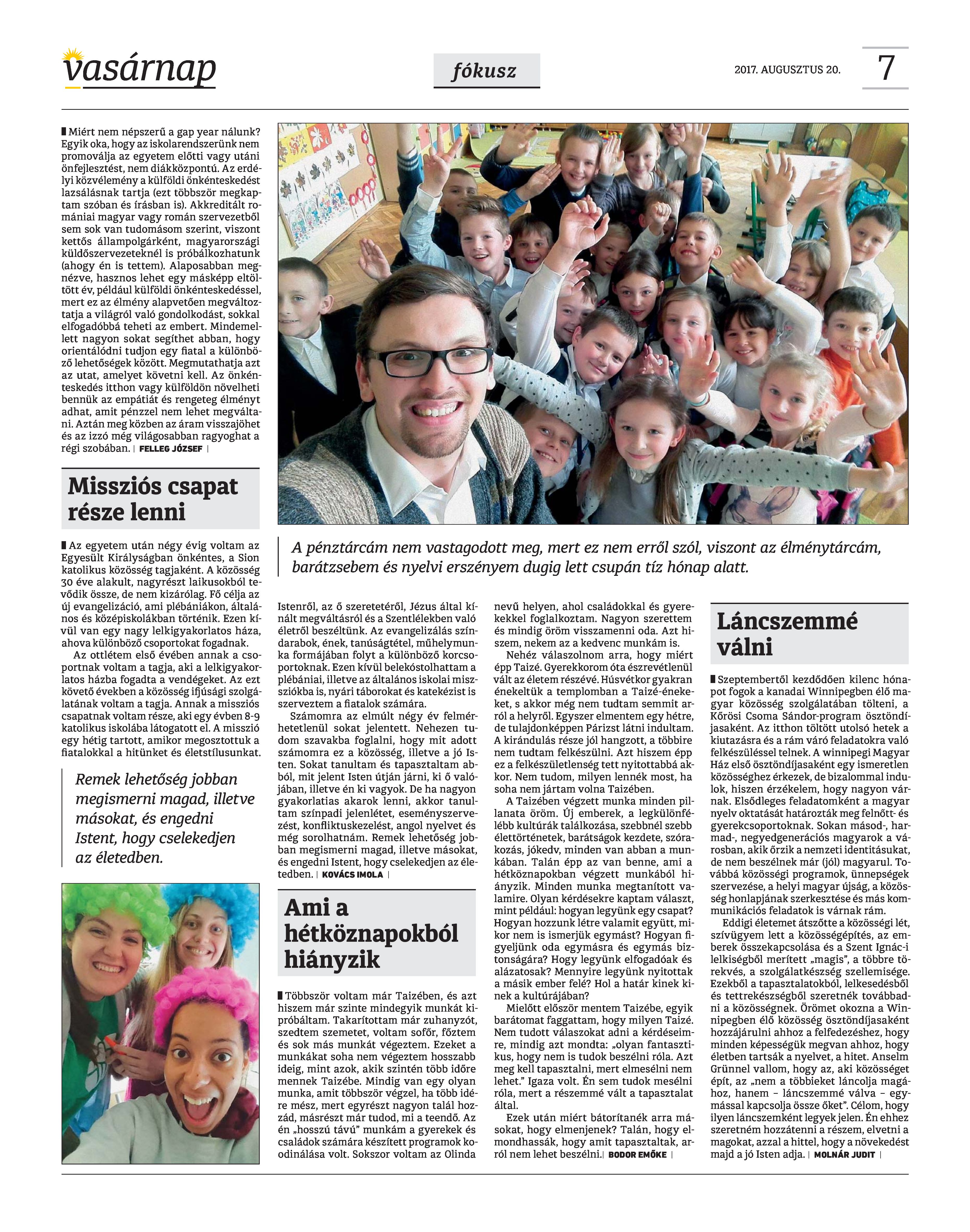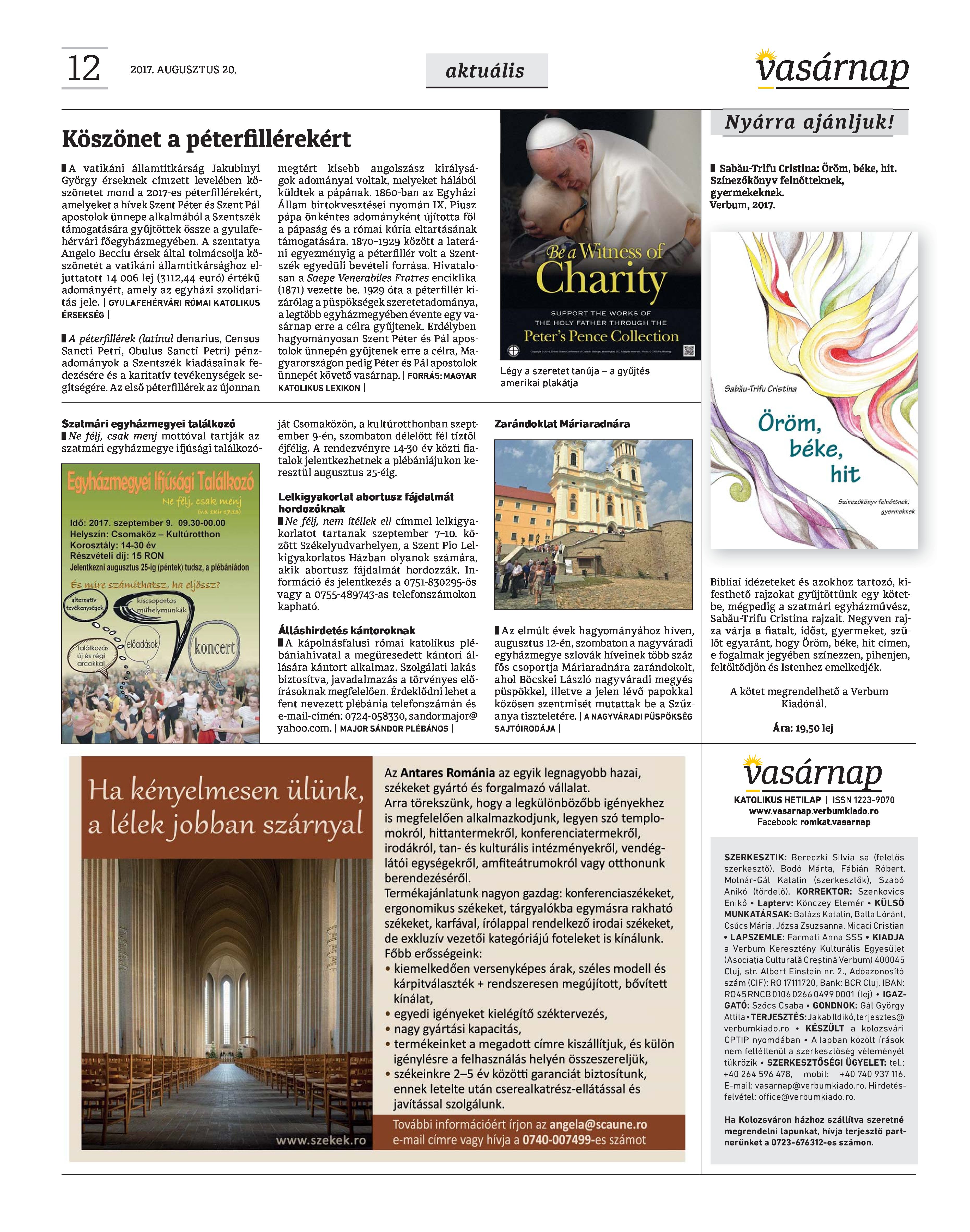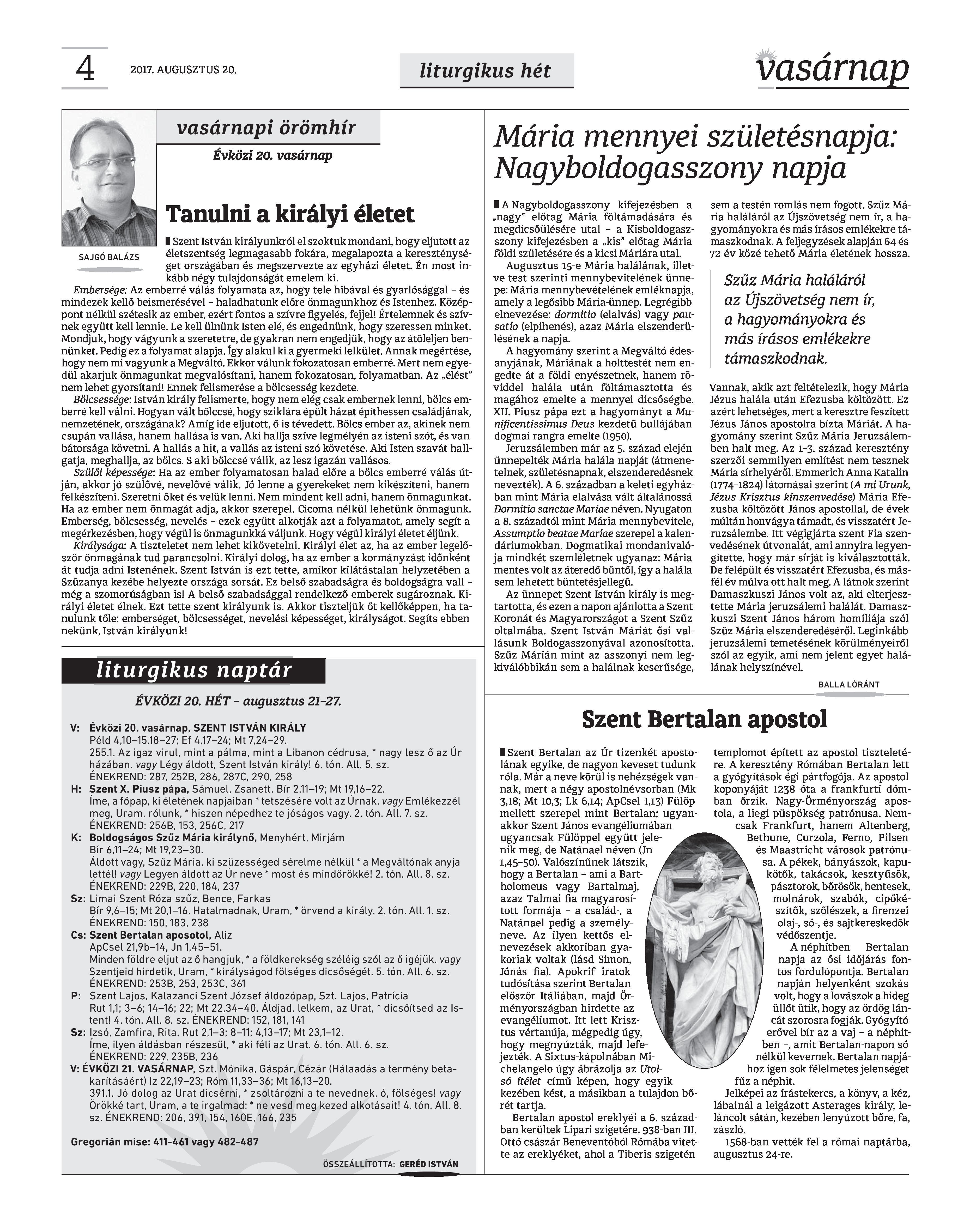 VASÁRNAP - 2017. AUGUSZTUS 20. A Vasárnap Katolikus Hetilap 2017. augusztus 20. / XXVII. évf. / 34. számának digitális változata. 1 / 12 2 & 3 / 12 4 & 5 / 12 6 & 7 / 12 8 & 9 / 12 10 & 11 / 12 12 / 12