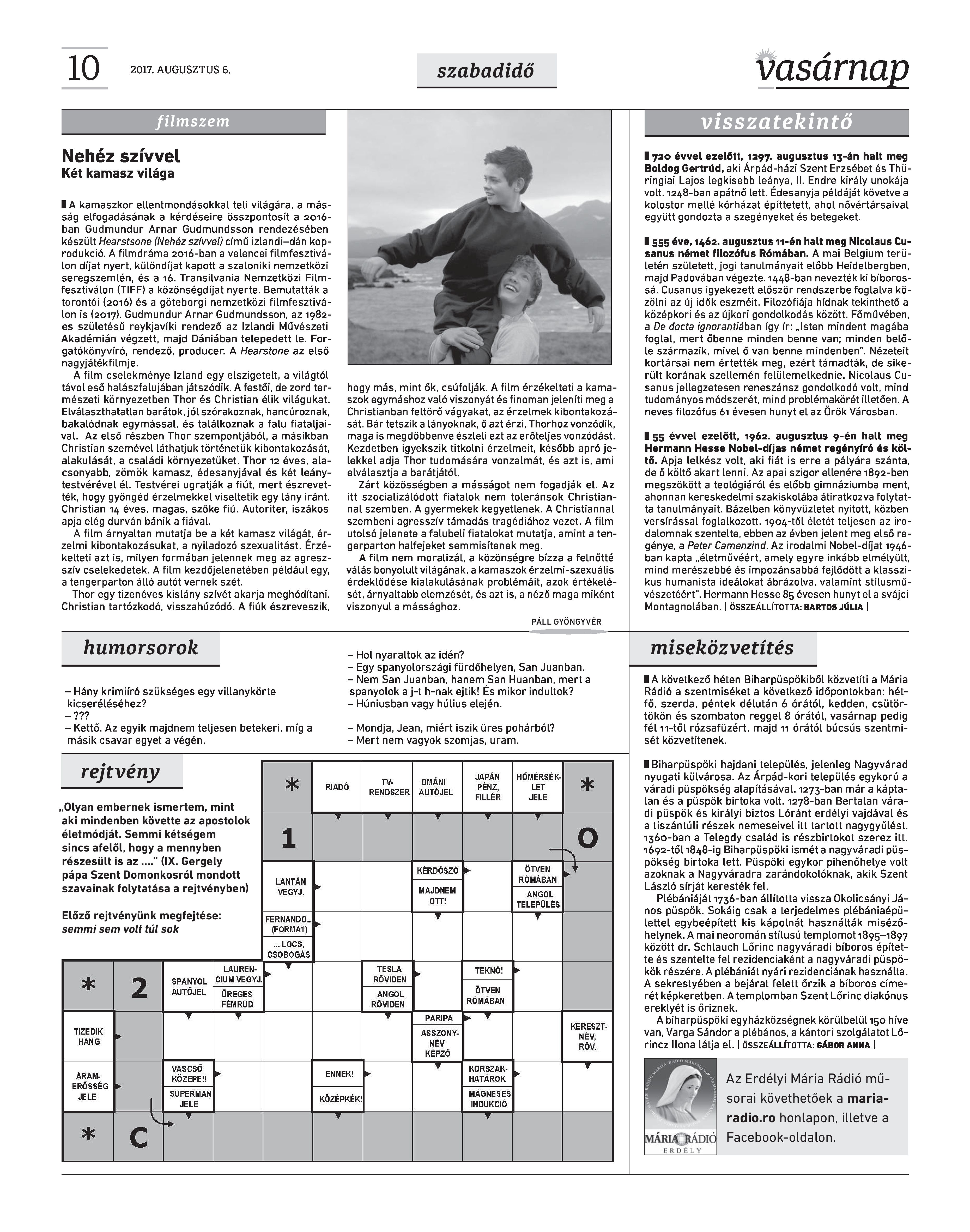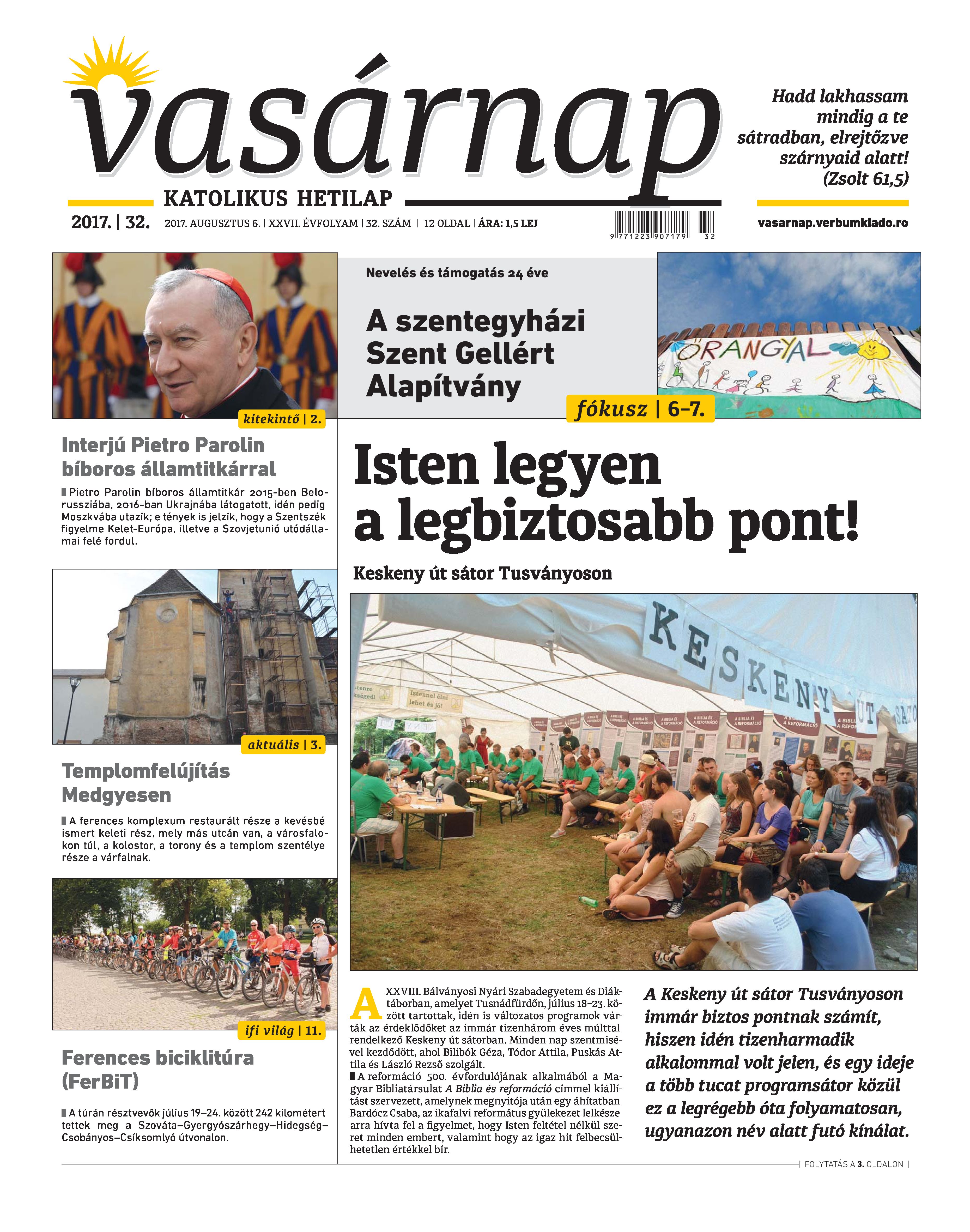 VASÁRNAP - 2017. AUGUSZTUS 6. A Vasárnap Katolikus Hetilap 2017. augusztus 6. / XXVII. évf. / 32. számának digitális változata. 1 / 12 2 & 3 / 12 4 & 5 / 12 6 & 7 / 12 8 & 9 / 12 10 & 11 / 12 12 / 12