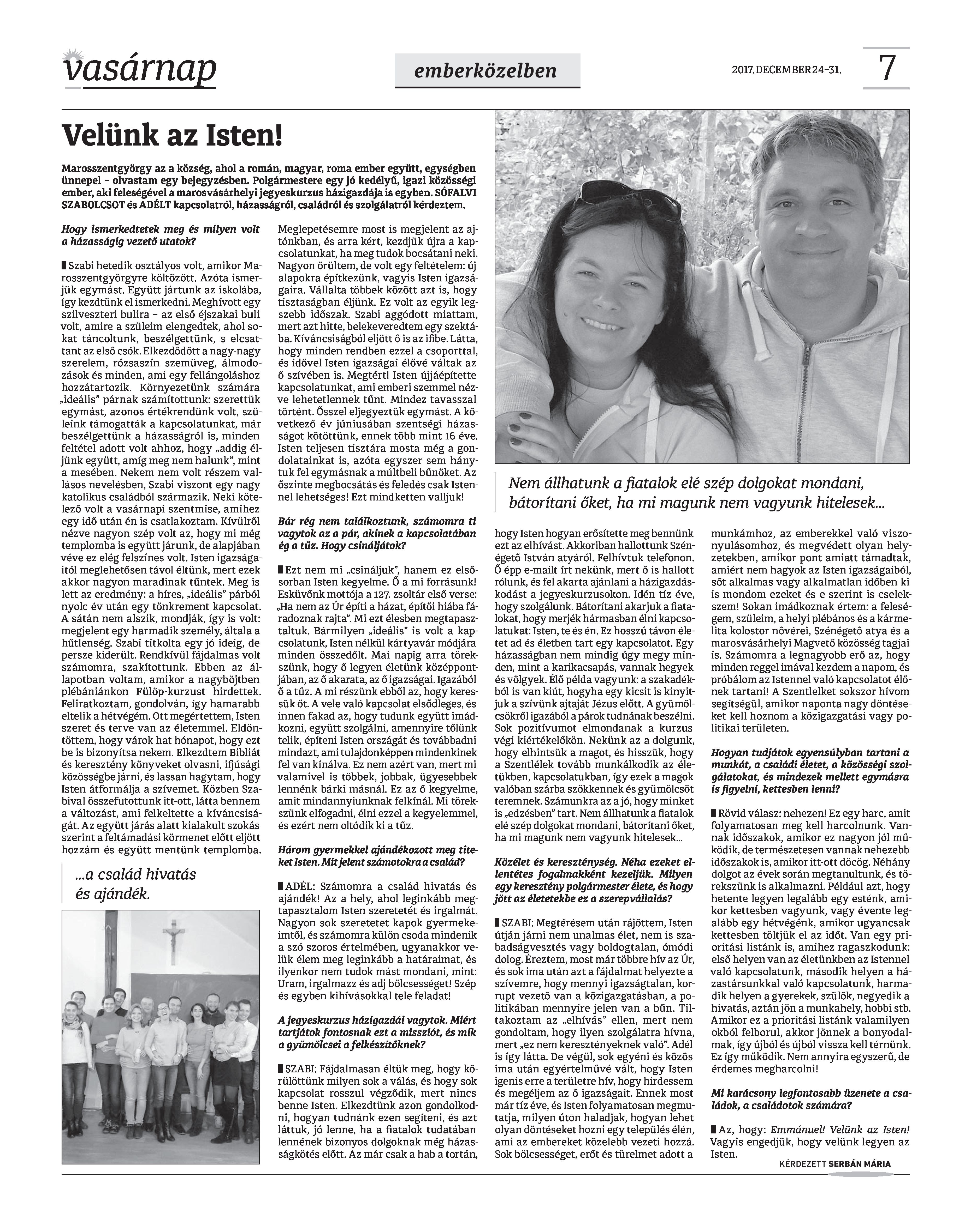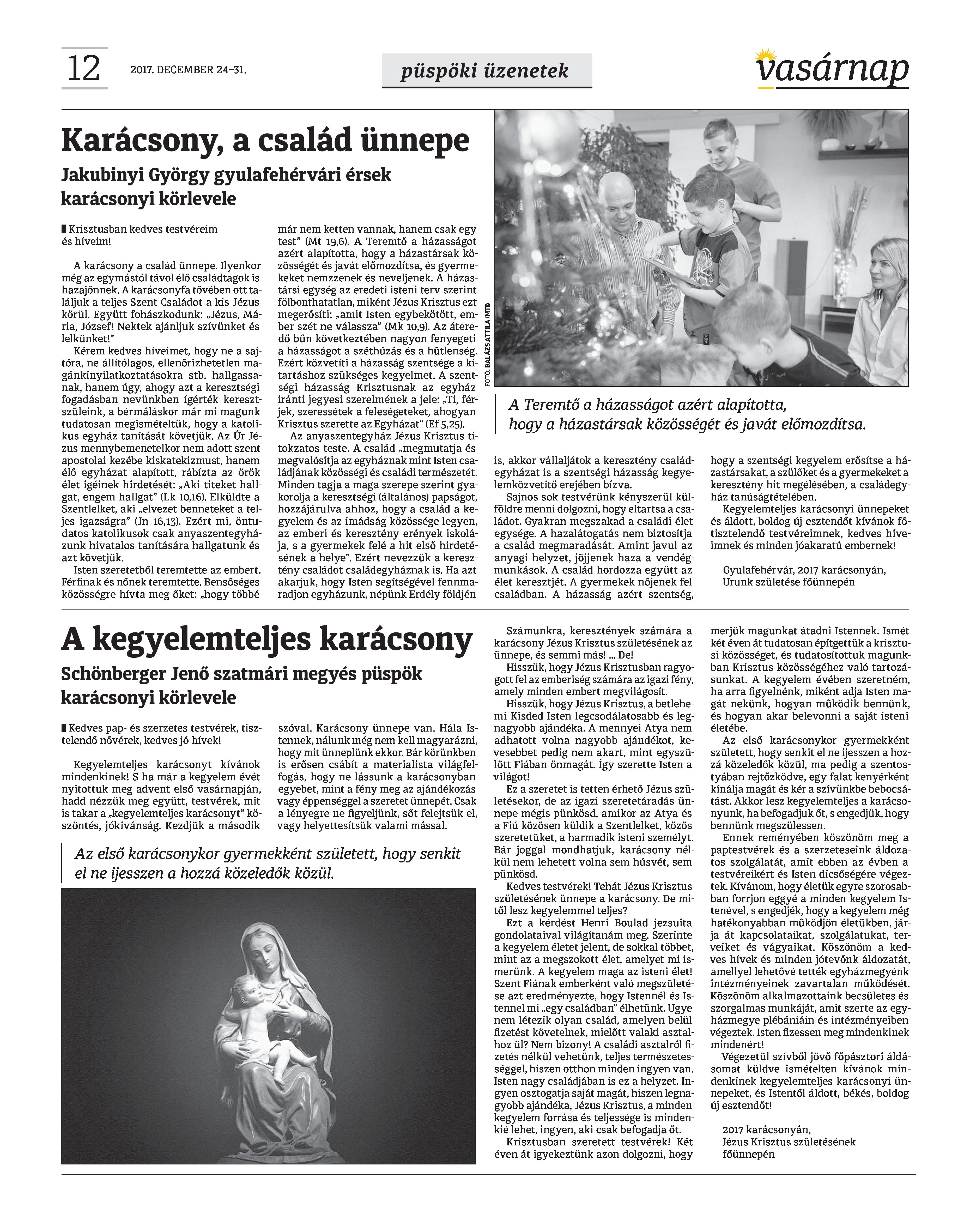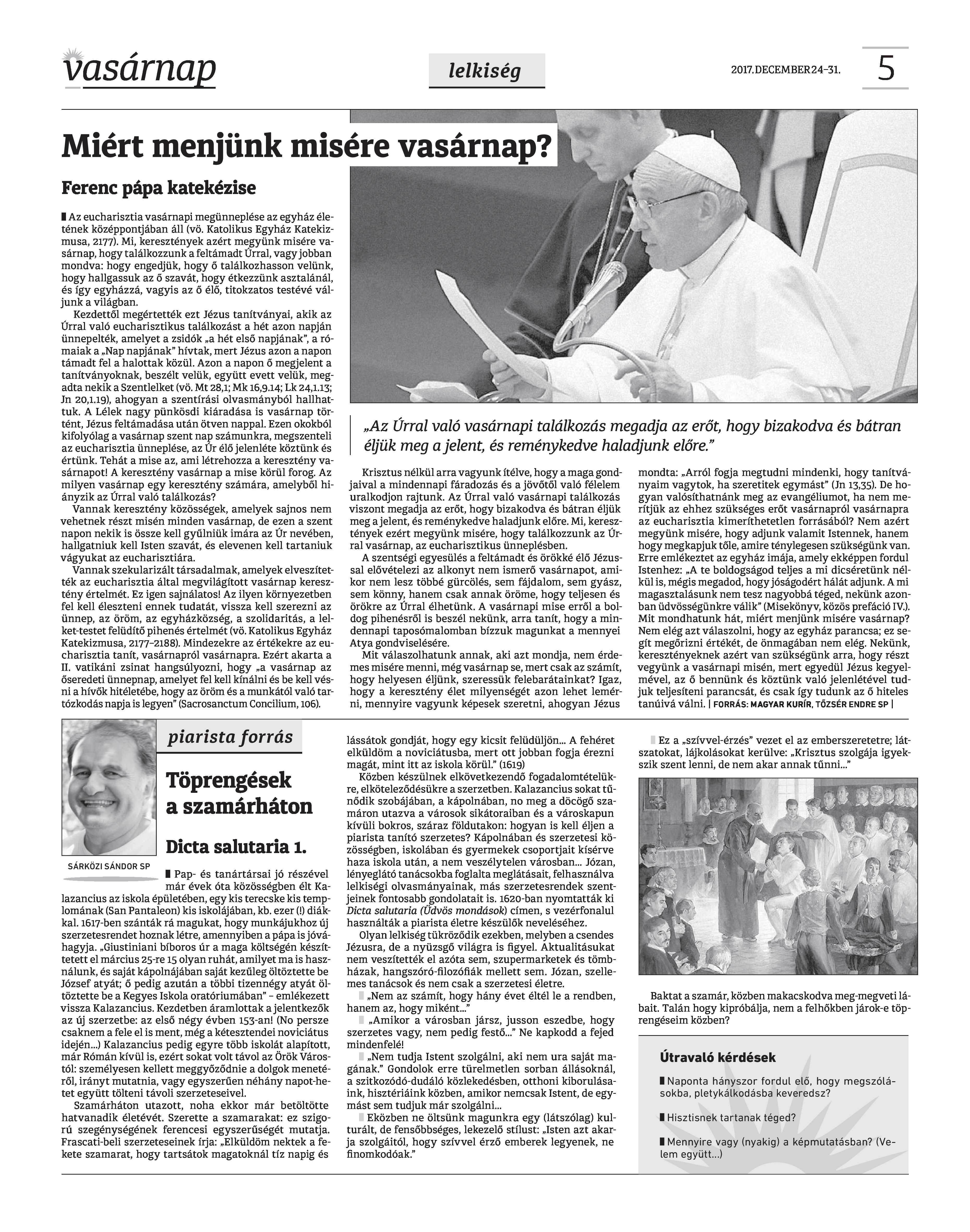 A Vasárnap Katolikus Hetilap 2017. december 24-31. / XXVII. évf. / 52-53. számának digitális változata.