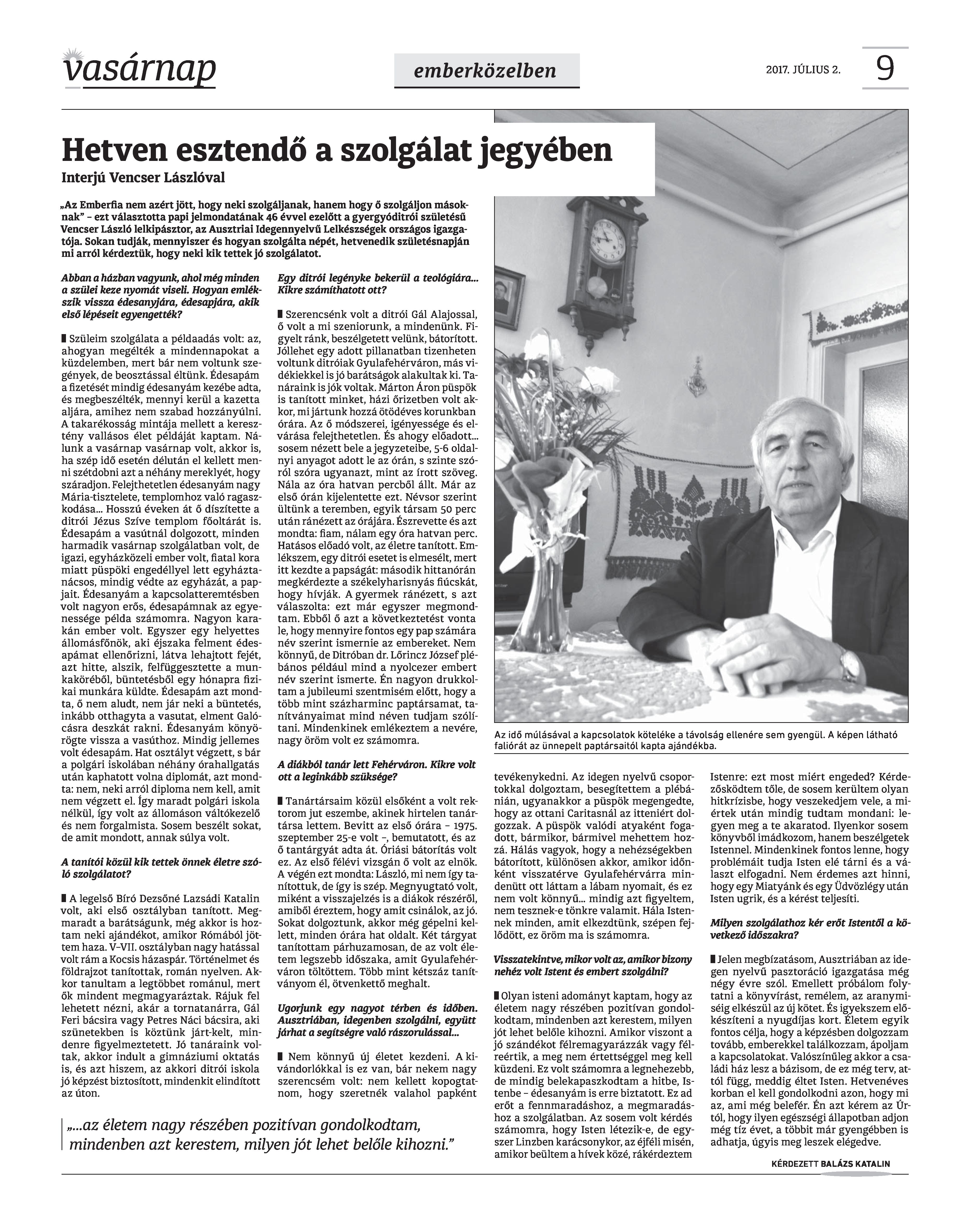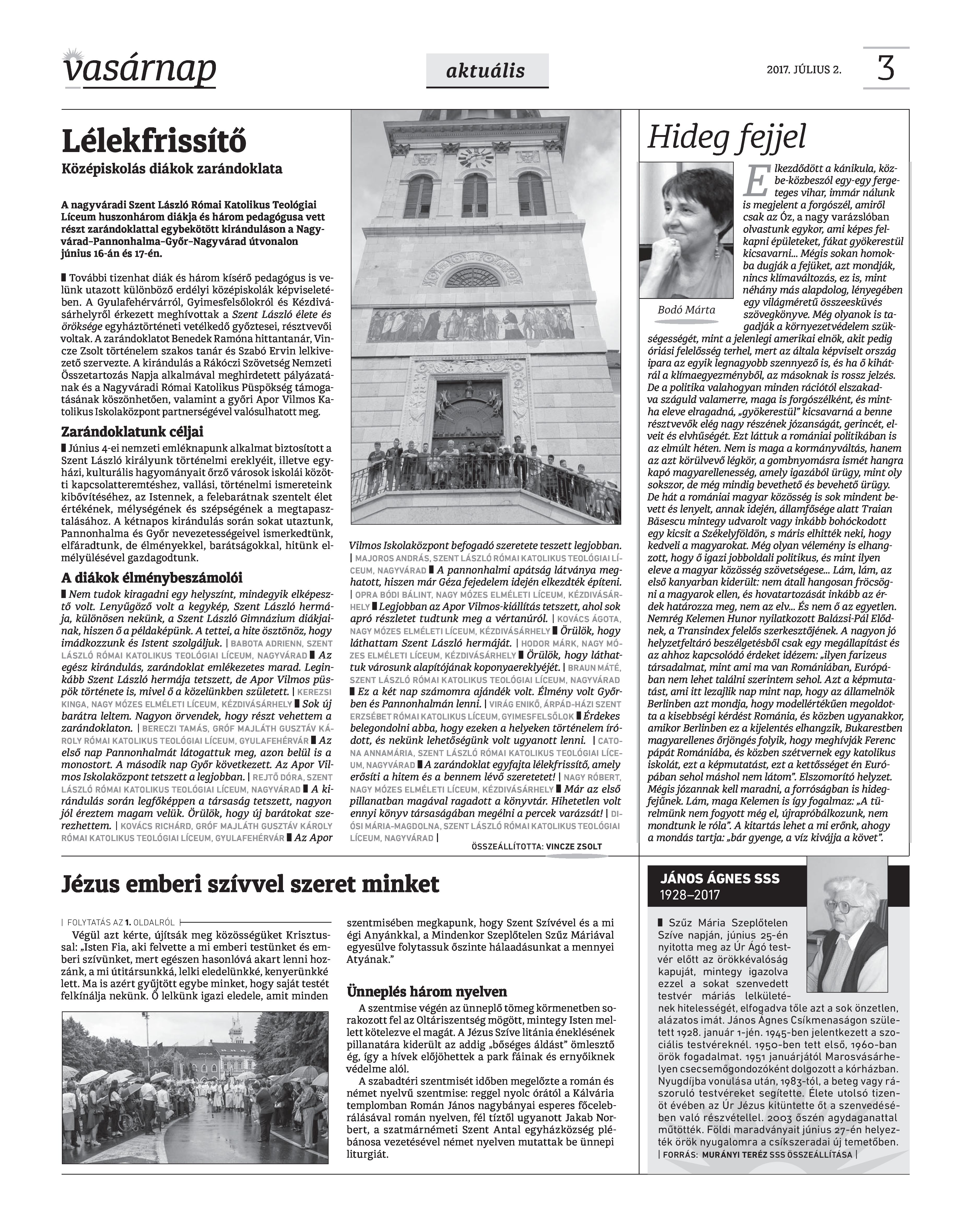 VASÁRNAP - 2017. JÚLIUS 2. A Vasárnap Katolikus Hetilap 2017. július 2. / XXVII. évf. / 27. számának digitális változata 1 / 12 2 & 3 / 12 4 & 5 / 12 6 & 7 / 12 8 & 9 / 12 10 & 11 / 12 12 / 12