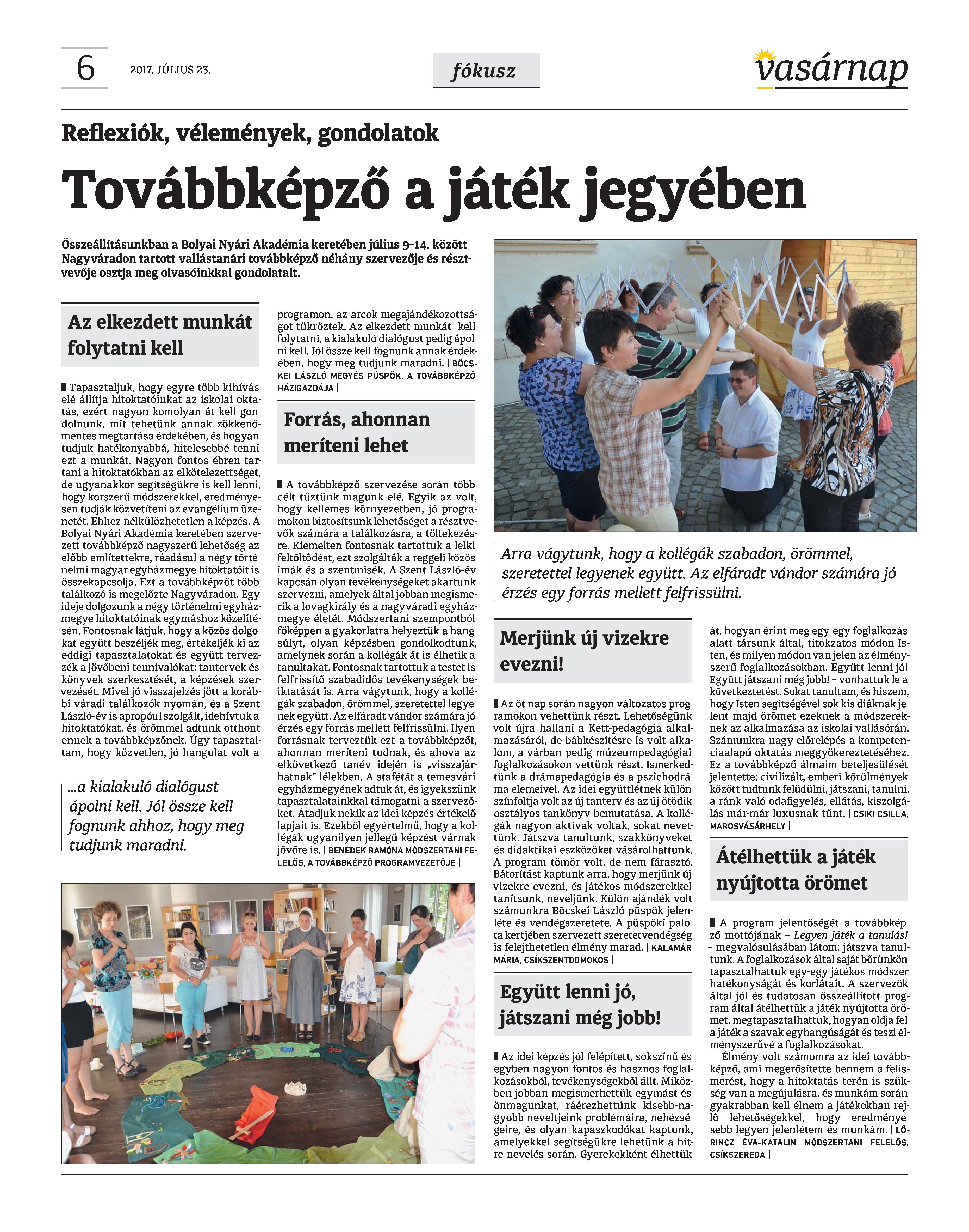VASÁRNAP - 2017. JÚLIUS 23. A Vasárnap Katolikus Hetilap 2017. július 23. / XXVII. évf. / 30. számának digitális változata. 1 / 12 2 & 3 / 12 4 & 5 / 12 6 & 7 / 12 8 & 9 / 12 10 & 11 / 12 12 / 12
