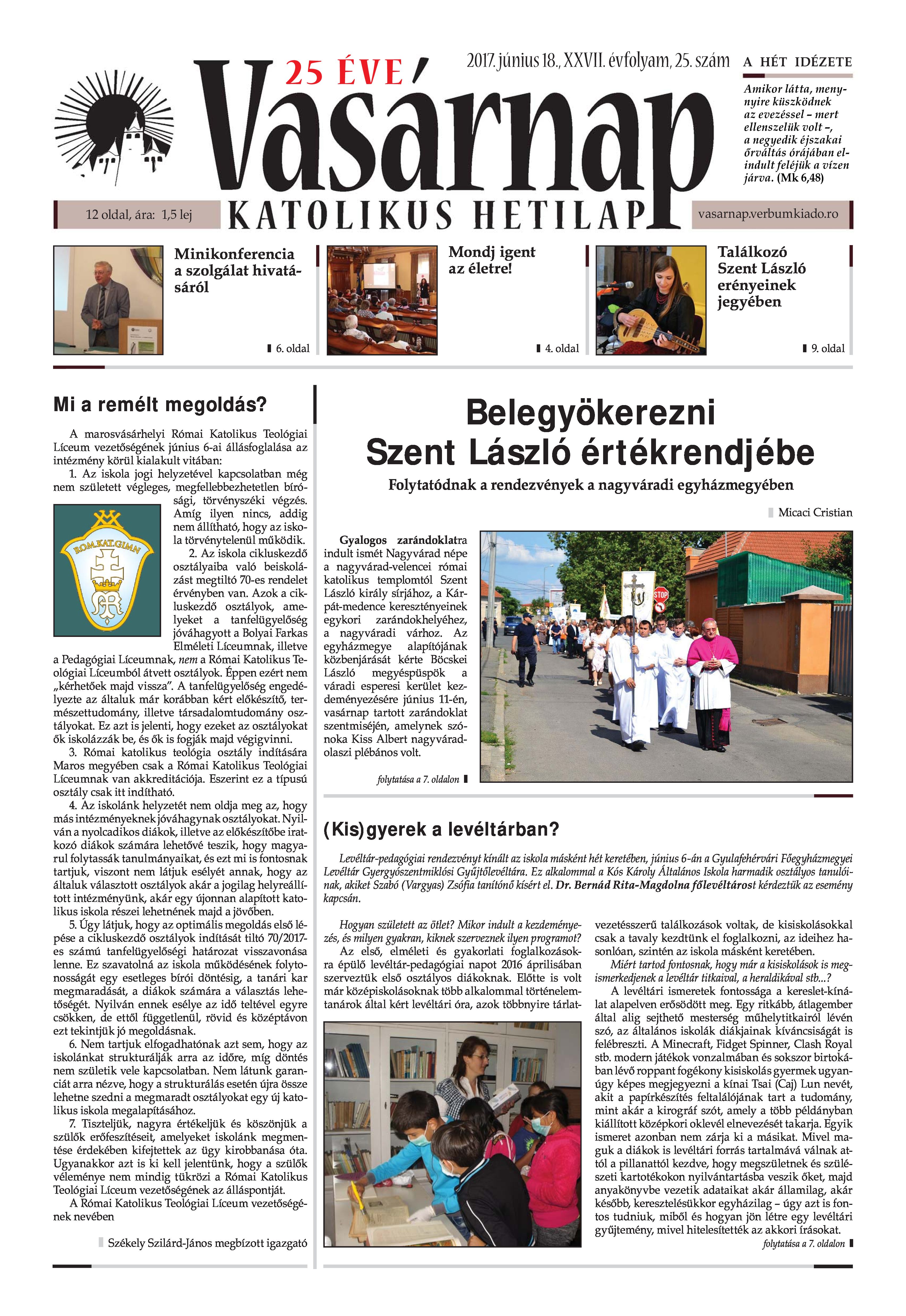VASÁRNAP - 2017. JÚNIUS 18. A Vasárnap Katolikus Hetilap 2017. június 18. / XXVII. évf. / 25. számának digitális változata. 1 / 12 2 & 3 / 12 4 & 5 / 12 6 & 7 / 12 8 & 9 / 12 10 & 11 / 12 12 / 12