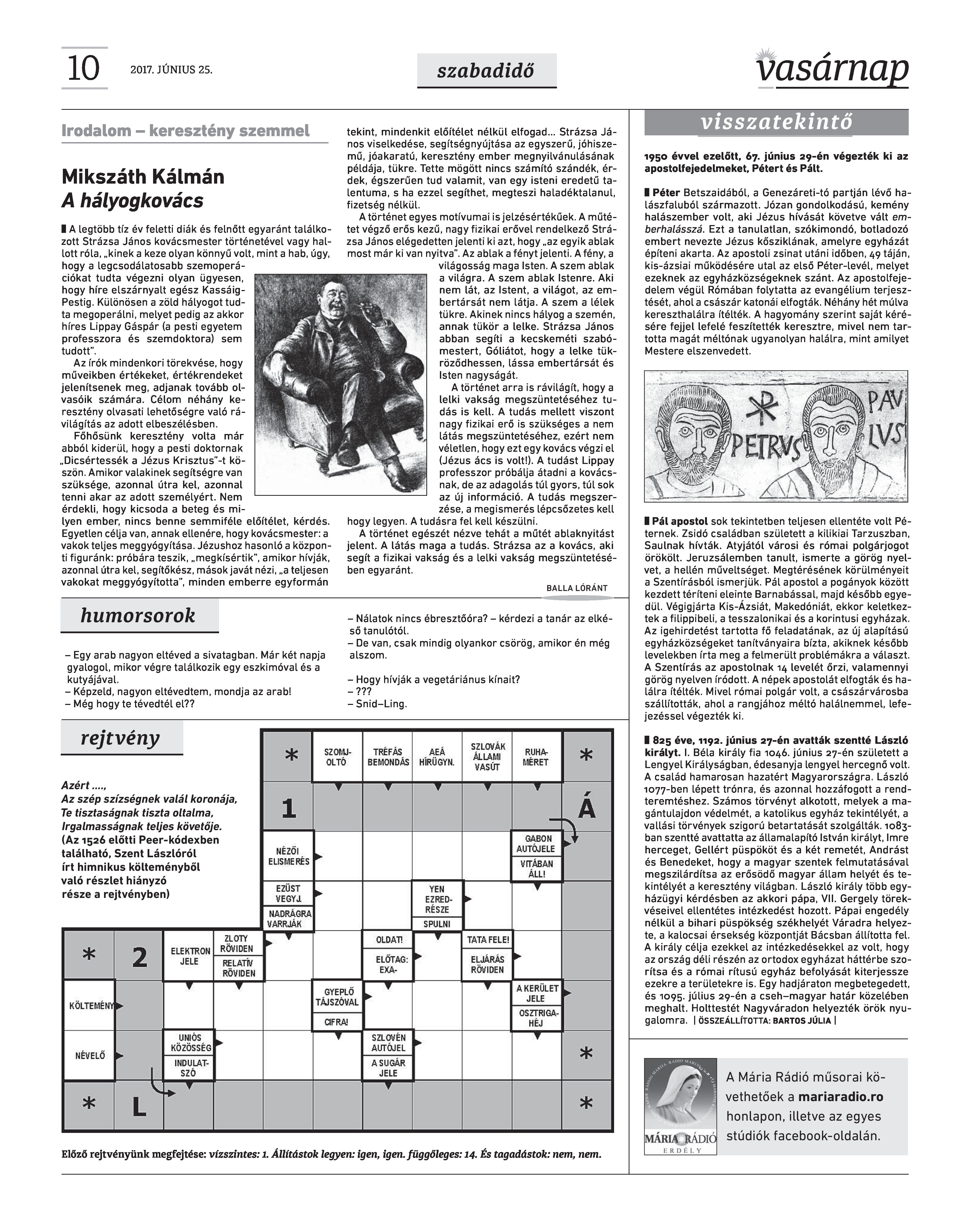 VASÁRNAP - 2017. JÚNIUS 25. A Vasárnap Katolikus Hetilap 2017. június 25. / XXVII. évf. / 26. számának digitális változata. 1 / 12 2 & 3 / 12 4 & 5 / 12 6 & 7 / 12 8 & 9 / 12 10 & 11 / 12 12 / 12