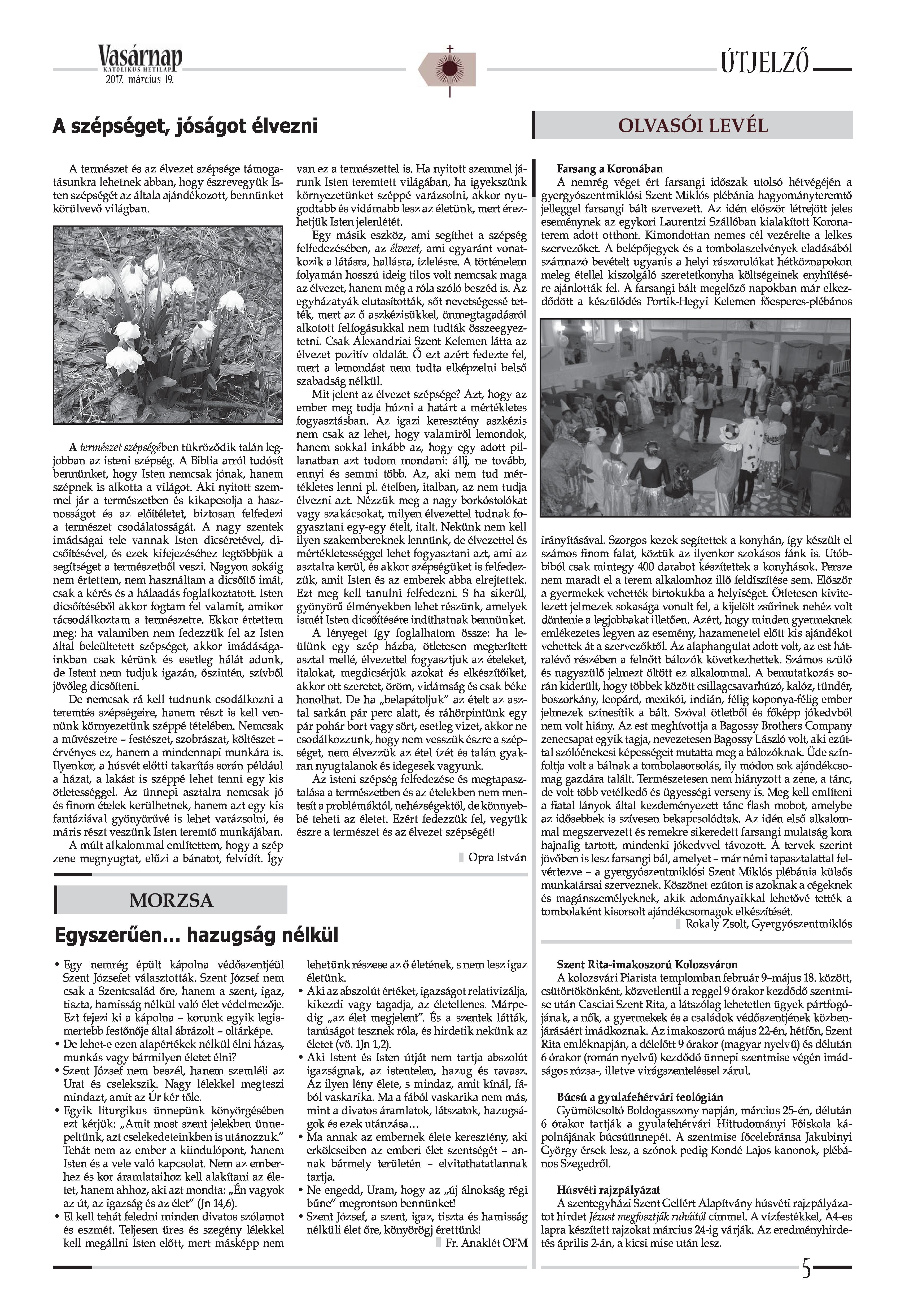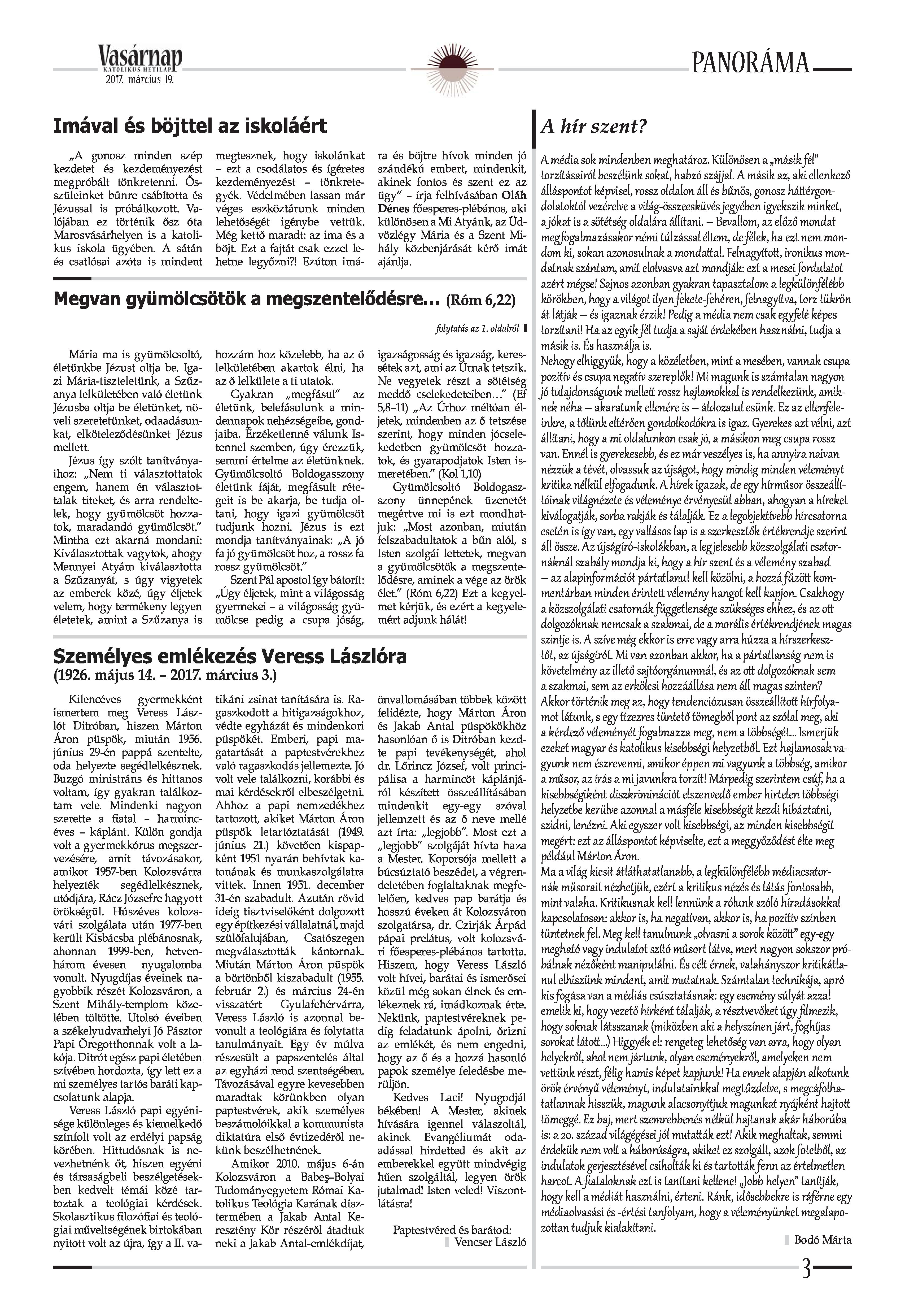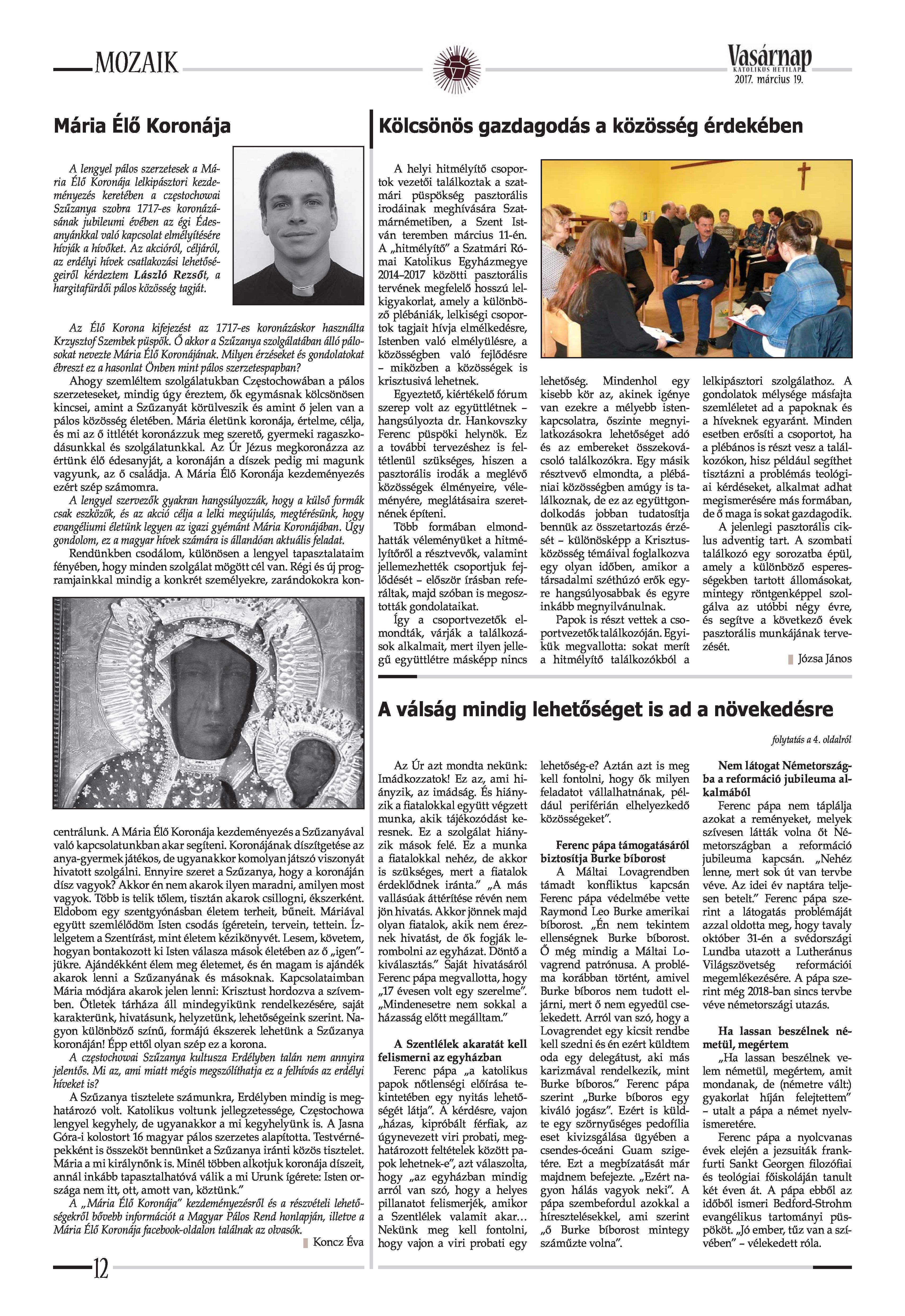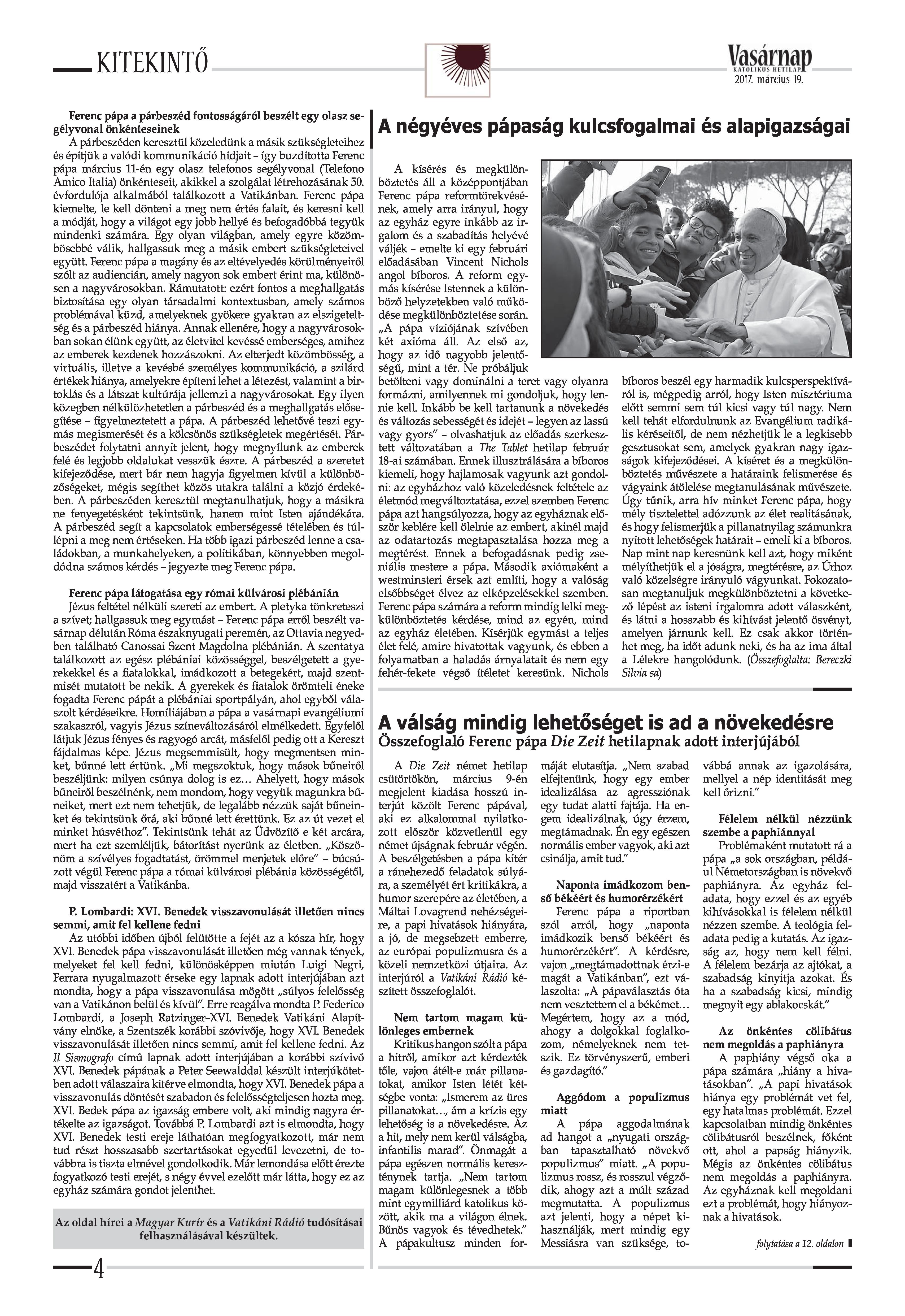 VASÁRNAP - 2017. MÁRCIUS 19. A Vasárnap Katolikus Hetilap 2017. március 19. / XXVII. évf. / 12. számának digitális változata. 1 / 16 2 & 3 / 16 4 & 5 / 16 6 & 7 / 16 8 & 9 / 16 10 & 11 / 16 12 & 13 / 16 14 & 15 / 16 16 / 16