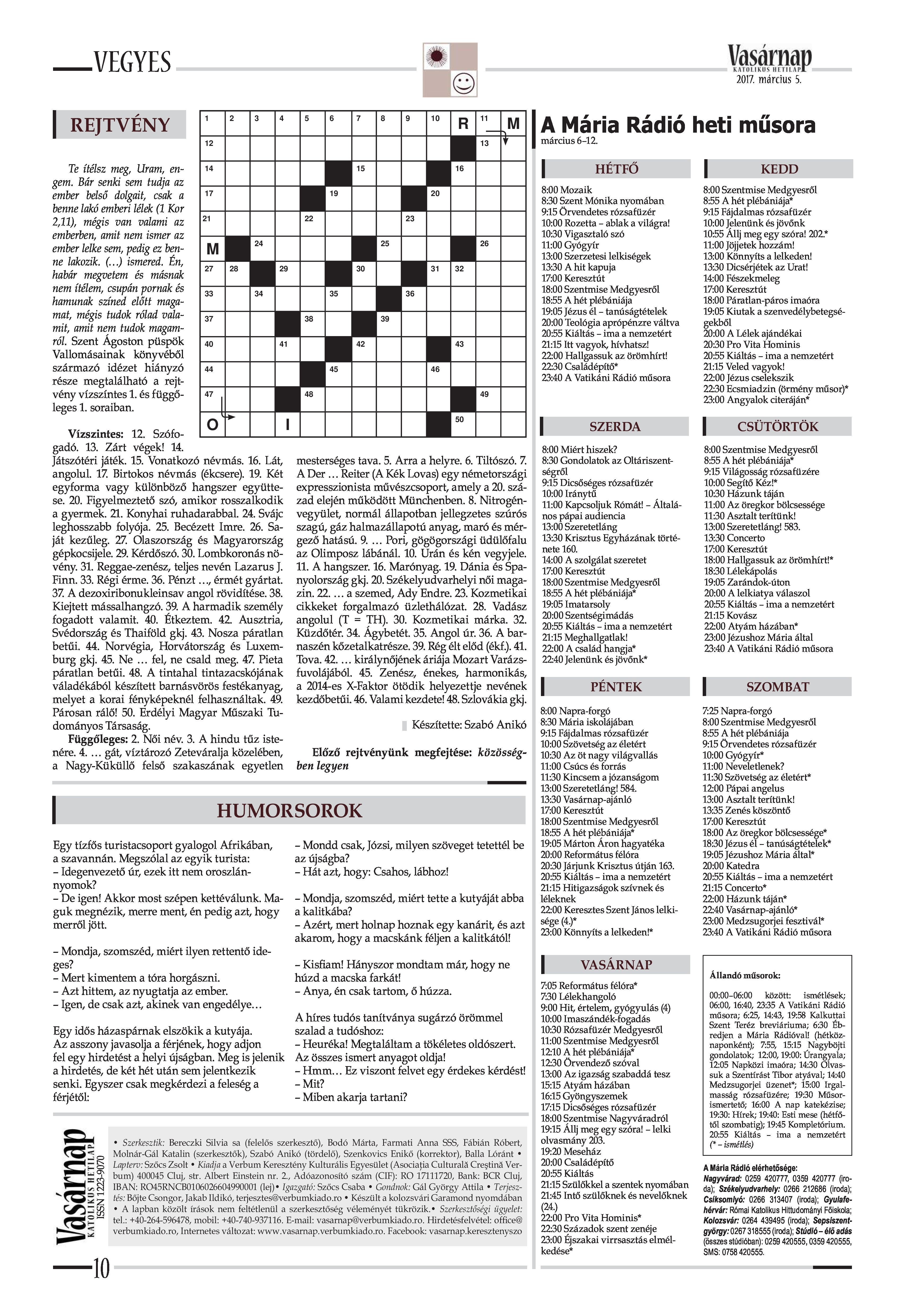 VASÁRNAP - 2017. MÁRCIUS 5. A Vasárnap Katolikus Hetilap 2017. március 5. / XXVII. évf. / 10. számának digitális változata. 1 / 12 2 & 3 / 12 4 & 5 / 12 6 & 7 / 12 8 & 9 / 12 10 & 11 / 12 12 / 12