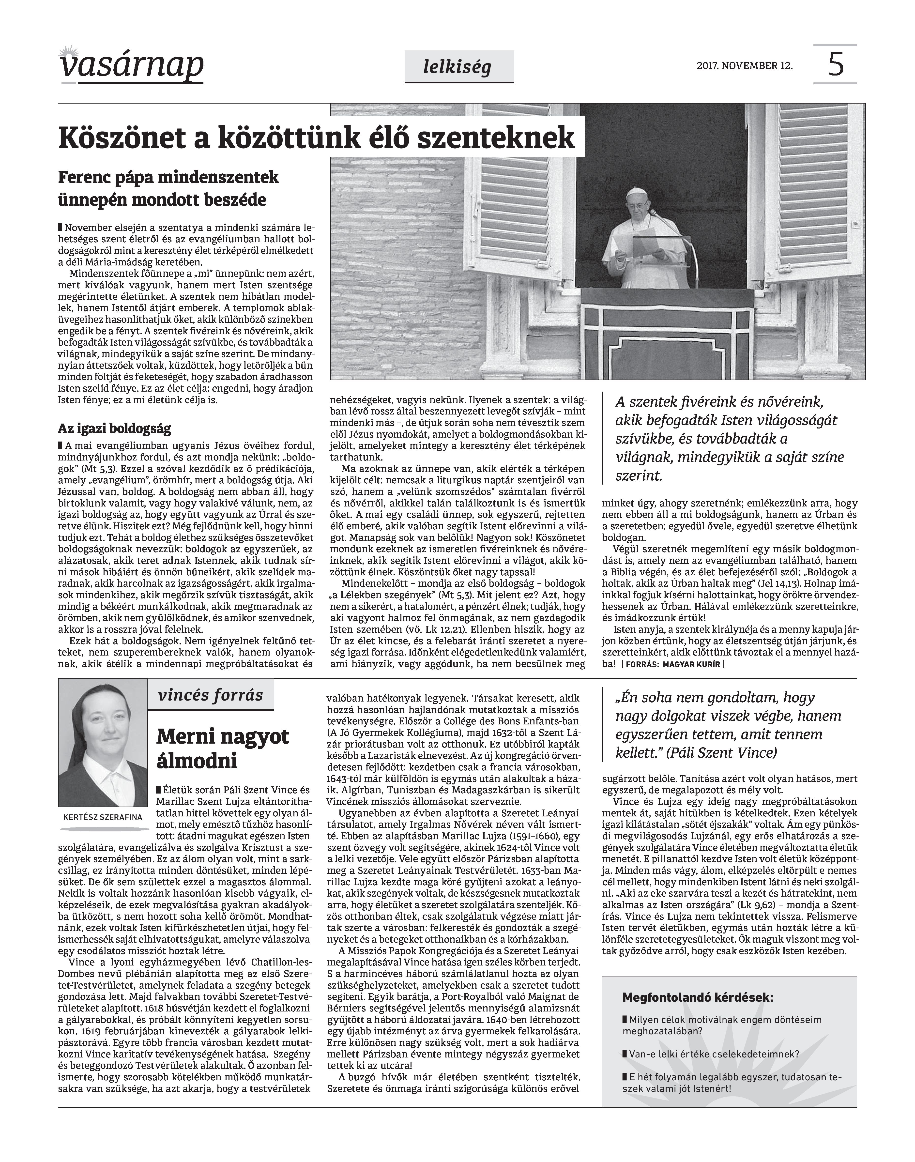 Vasárnap Katolikus Hetilap 2017. november 12. / XXVII. évf. / 46. számának digitális változata.