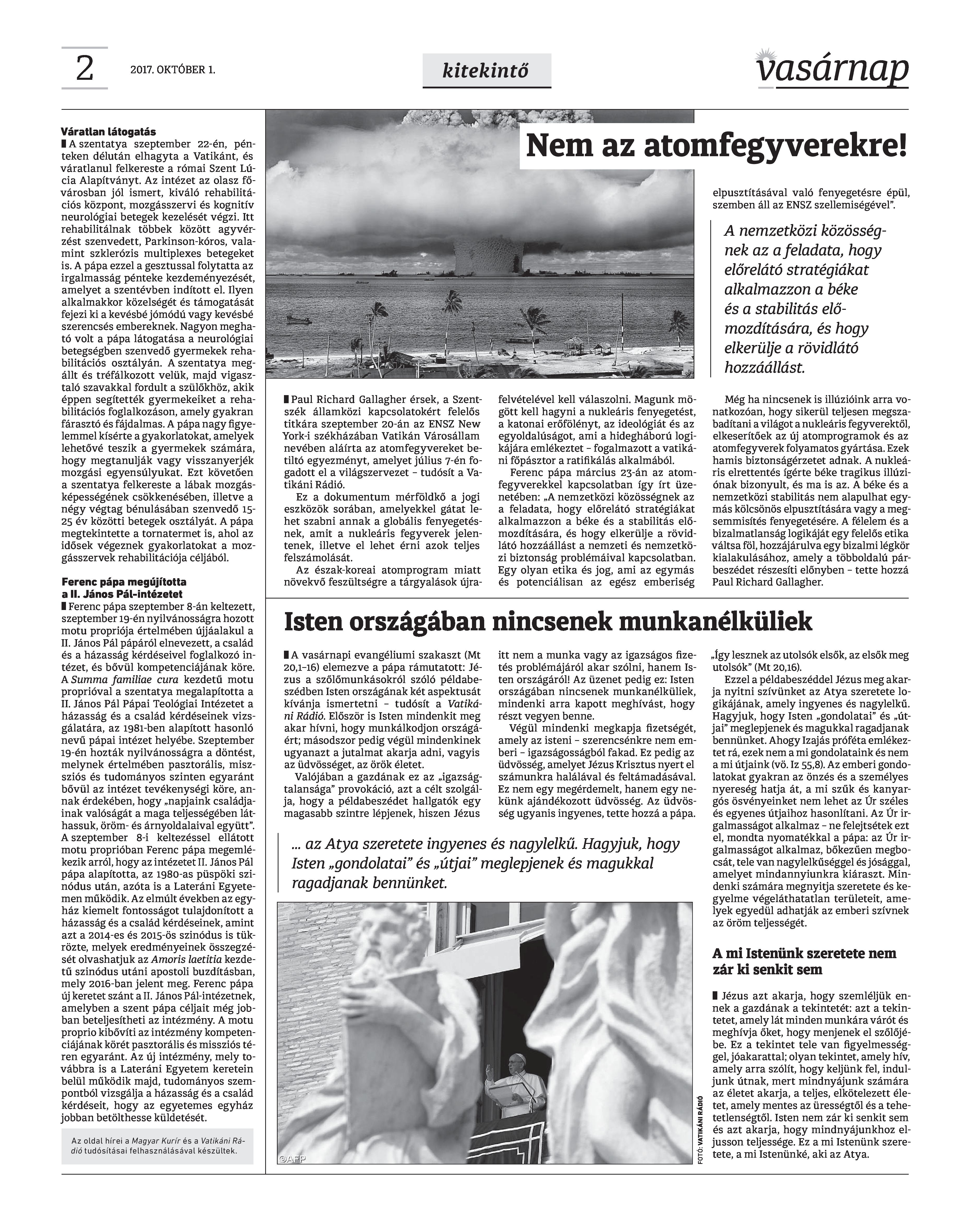 Vasárnap Katolikus Hetilap 2017. október 1. / XXVII. évf. / 40. számának digitális változata.