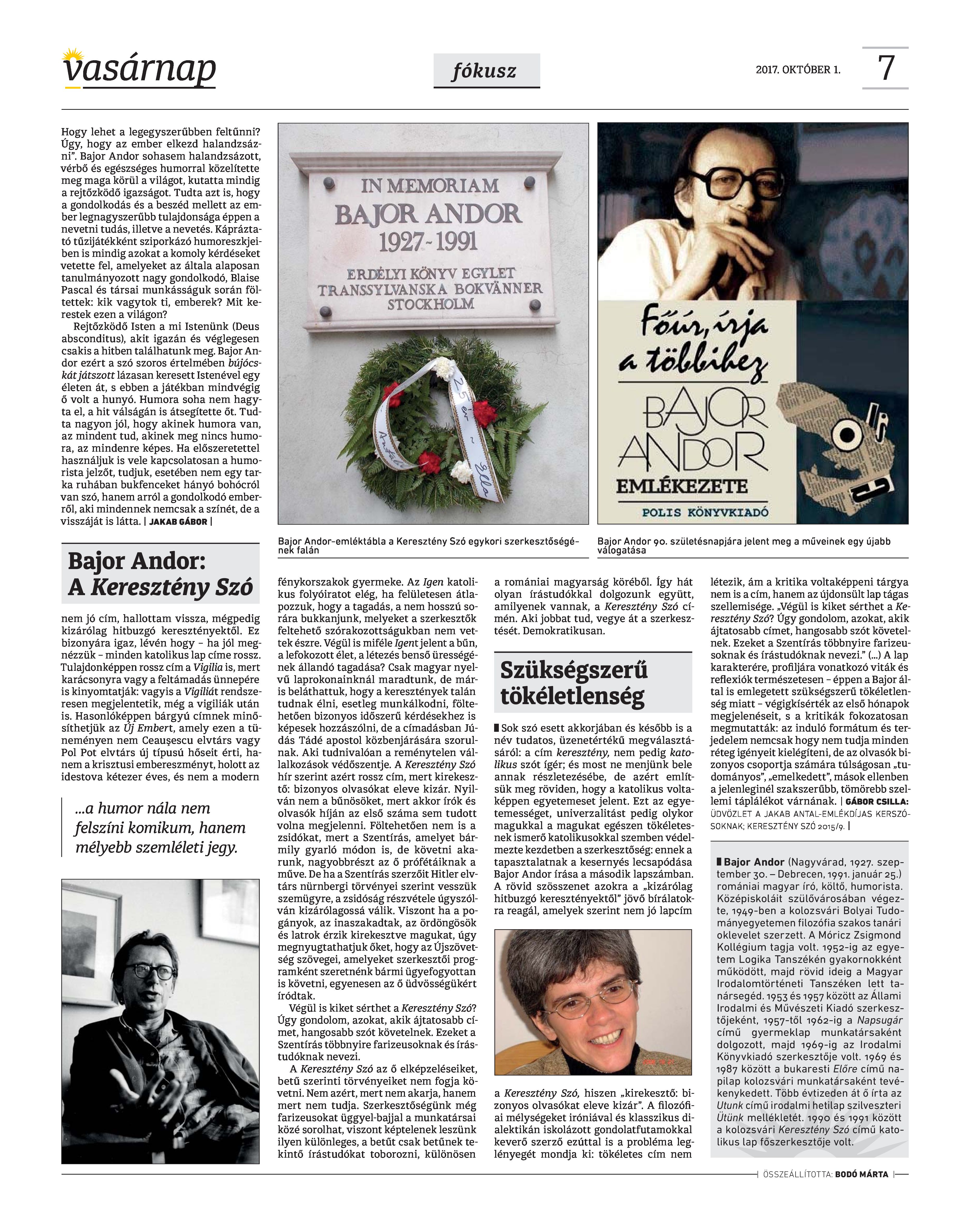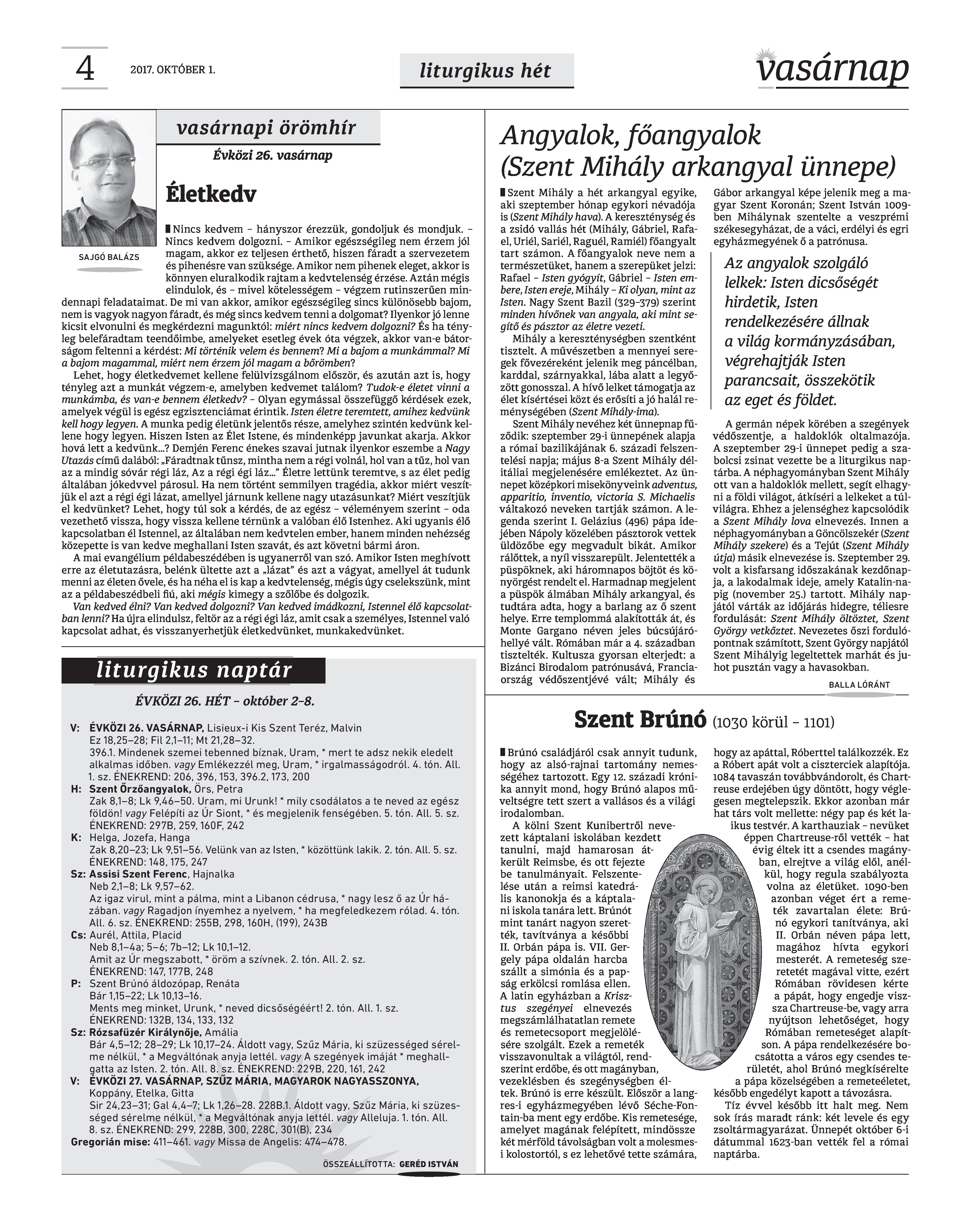 VASÁRNAP - 2017. OKTÓBER 1.