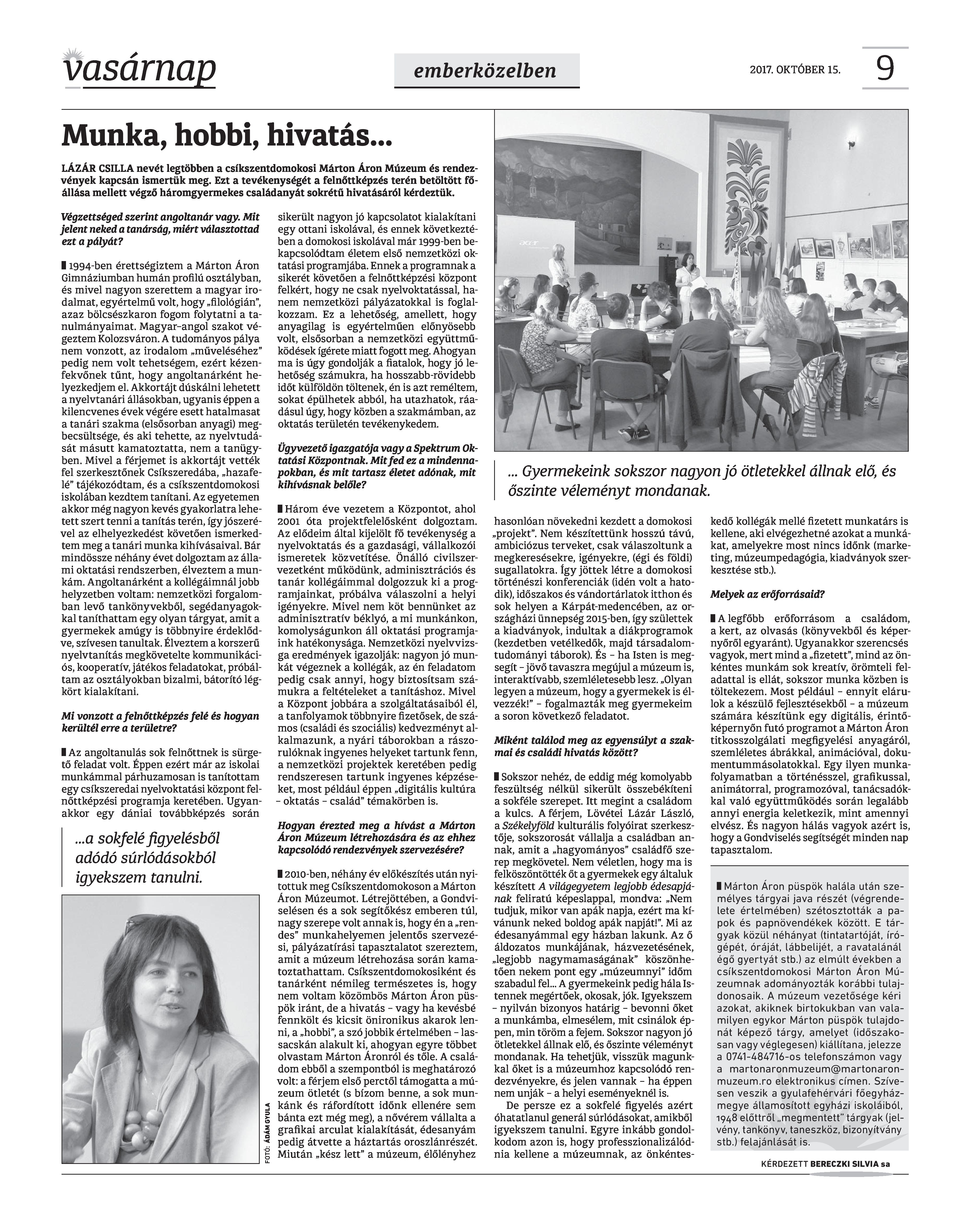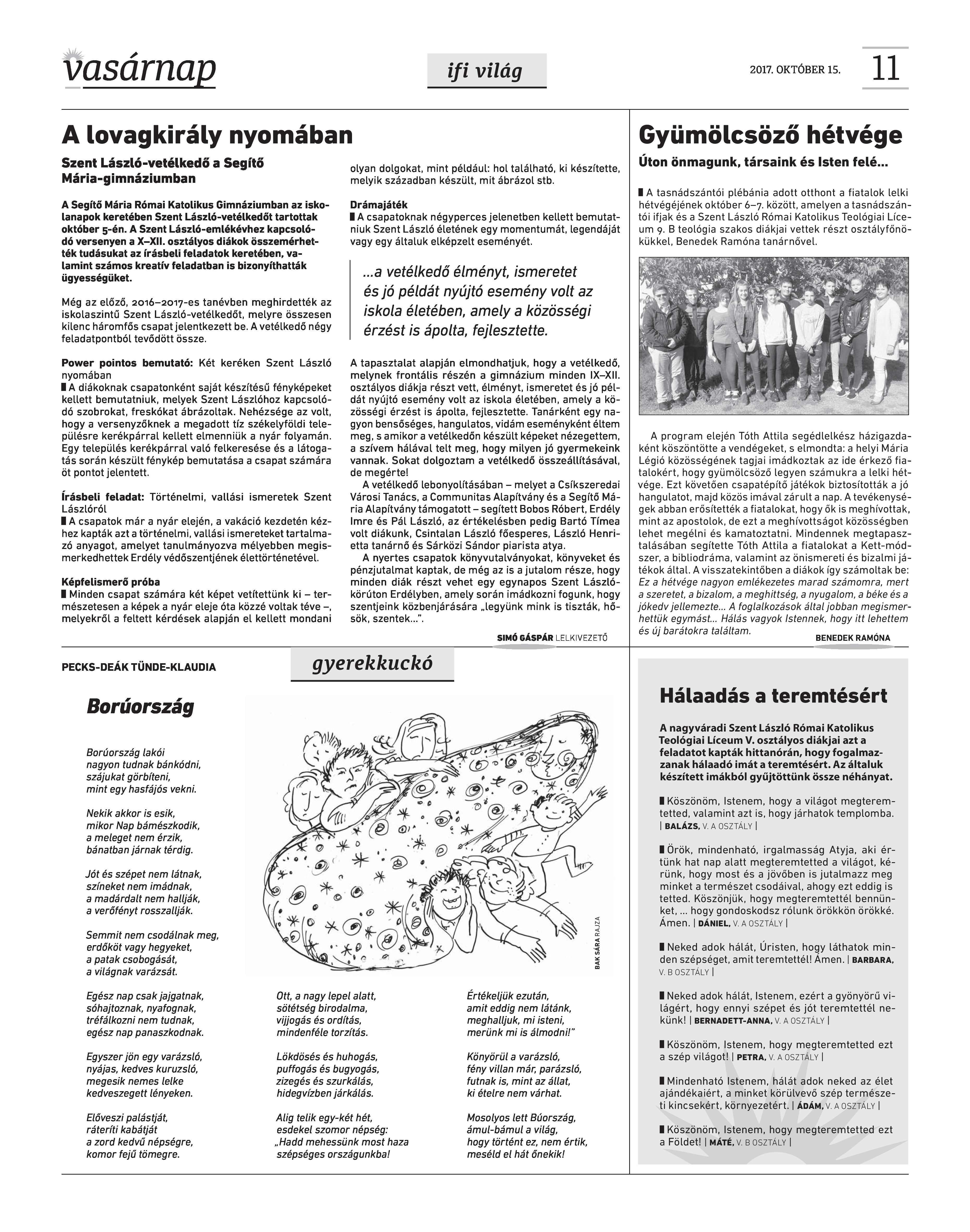VASÁRNAP - 2017. OKTÓBER 15.