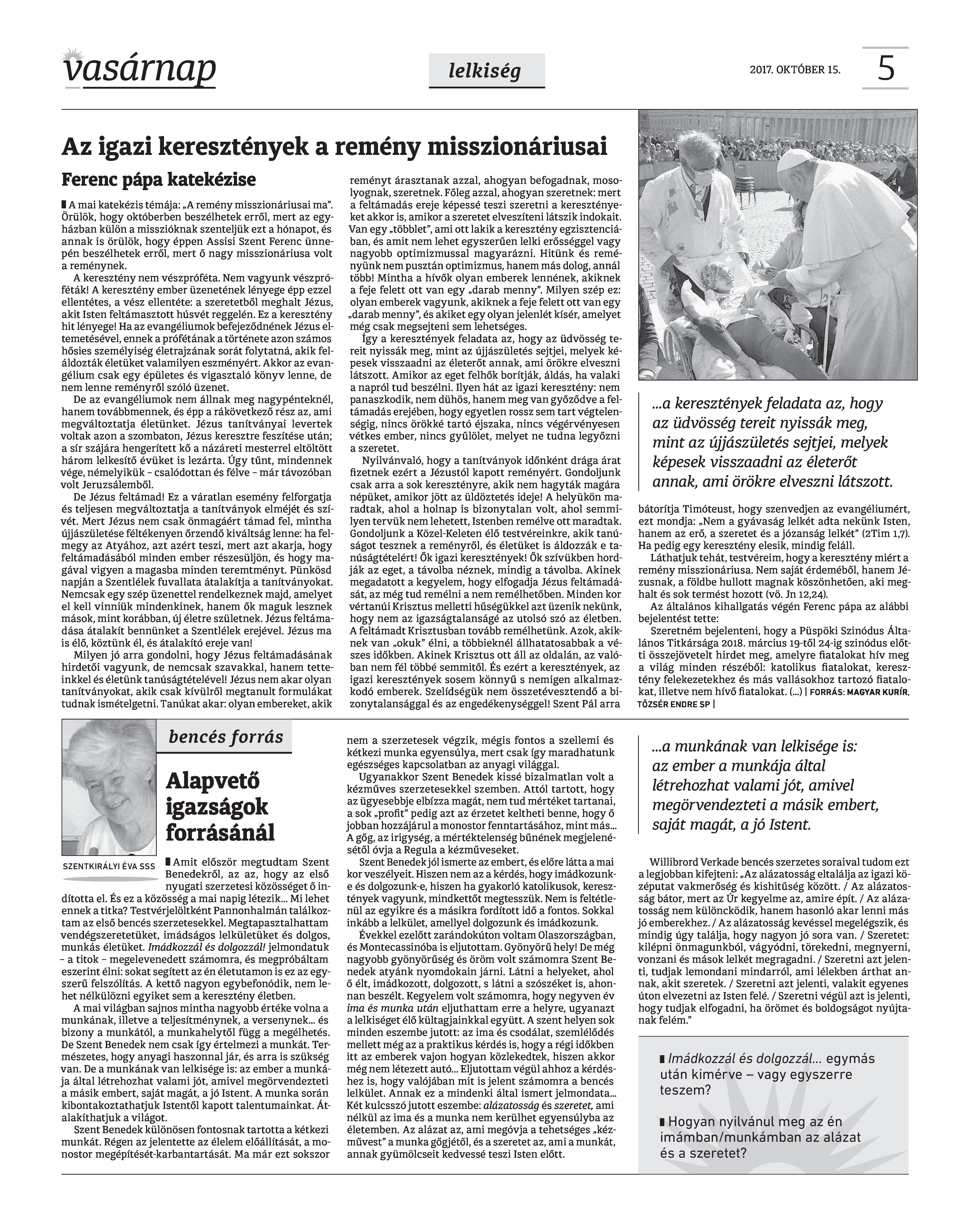 Vasárnap Katolikus Hetilap 2017. október 15. / XXVII. évf. / 42. számának digitális változata.