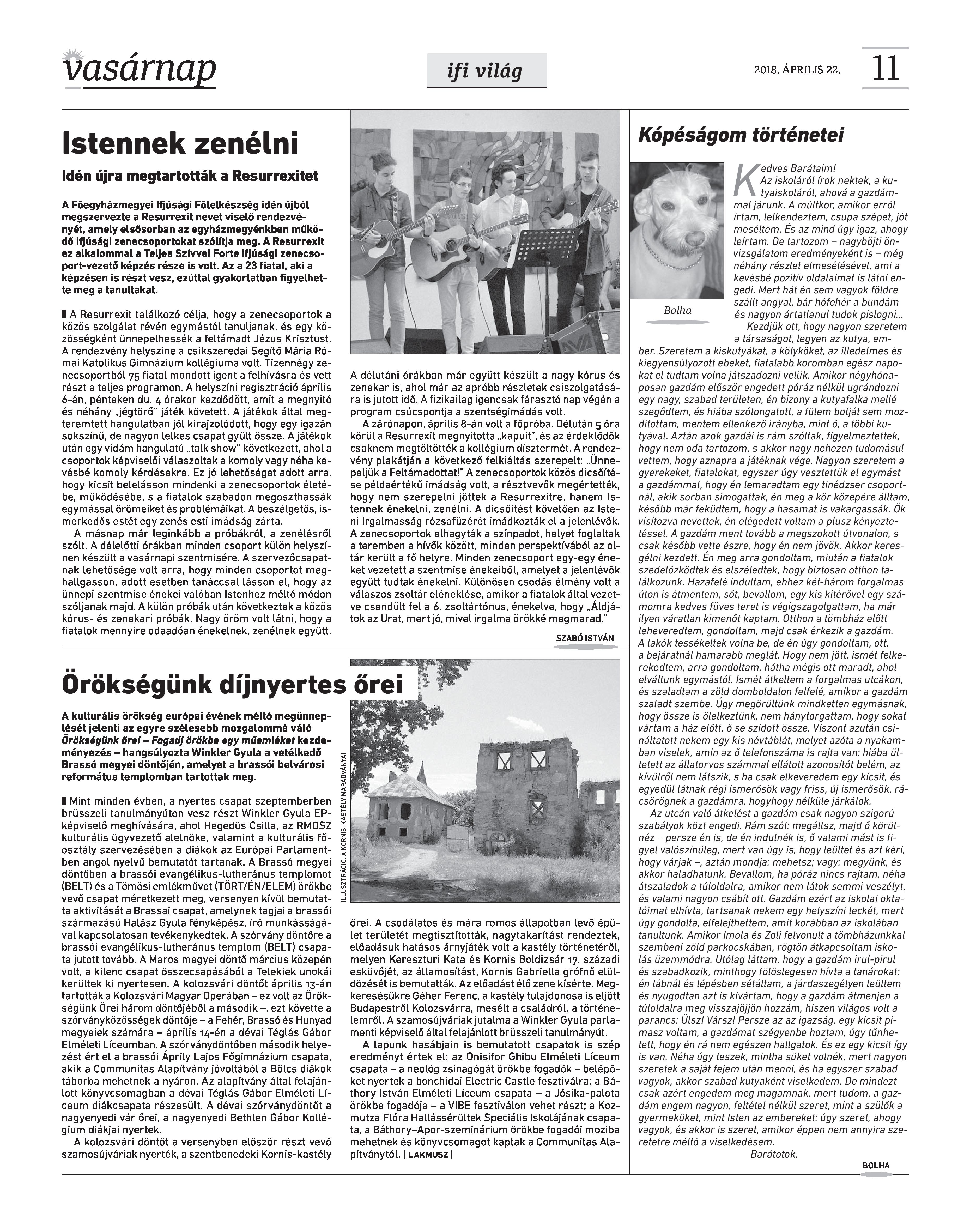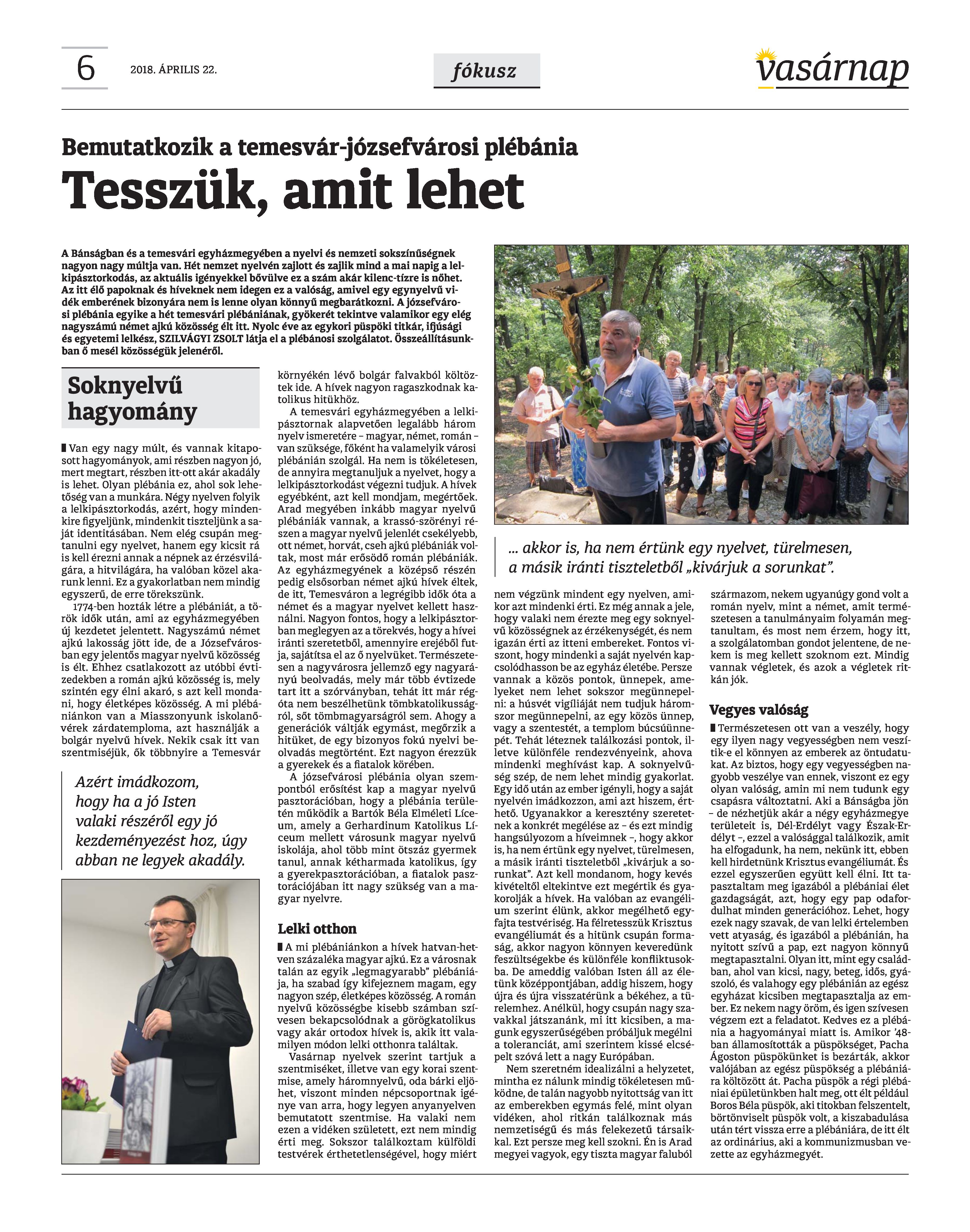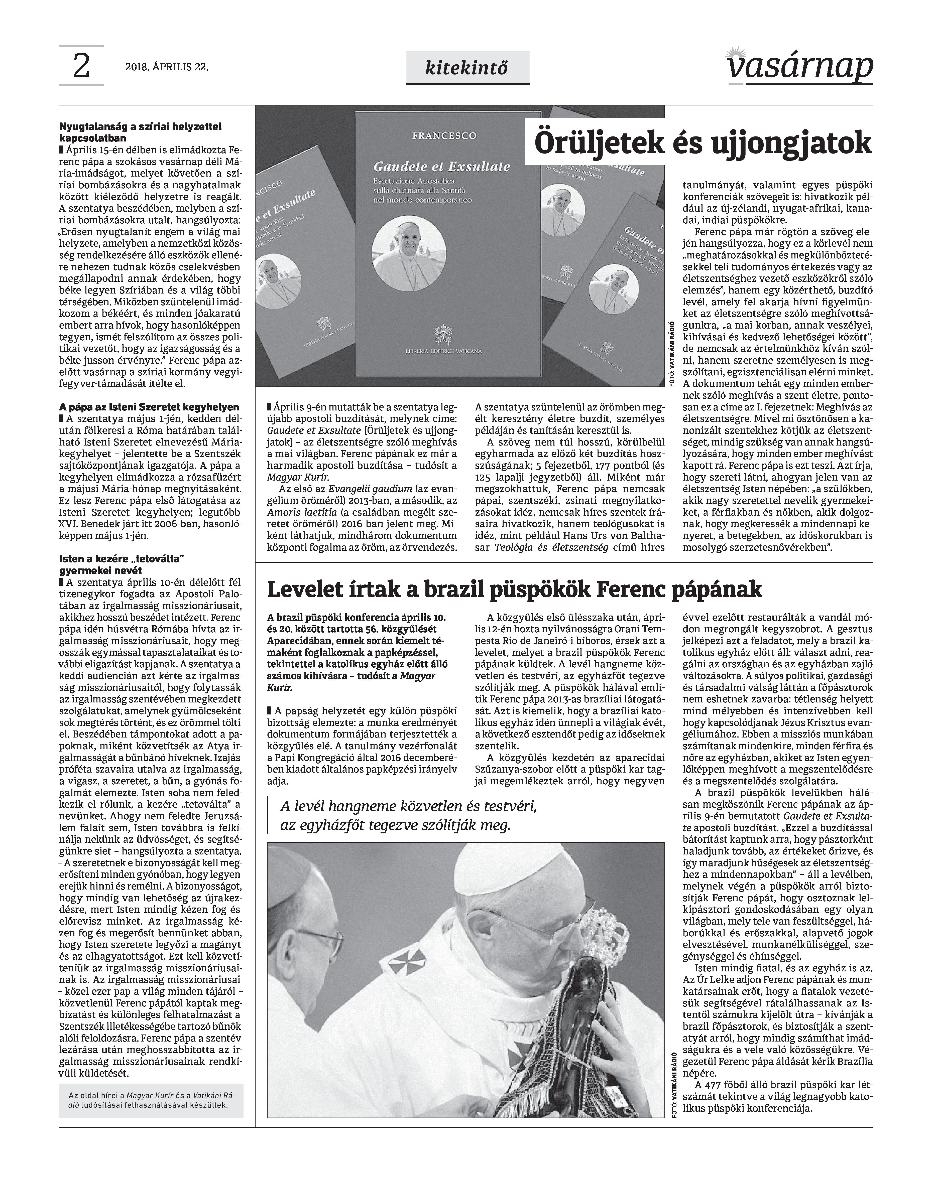 VASÁRNAP - 2018. ÁPRILIS 22. A Vasárnap Katolikus Hetilap 2018. április 22. / XXVIII. évf. / 16. számának digitális változata. 1 / 12 2 & 3 / 12 4 & 5 / 12 6 & 7 / 12 8 & 9 / 12 10 & 11 / 12 12 / 12