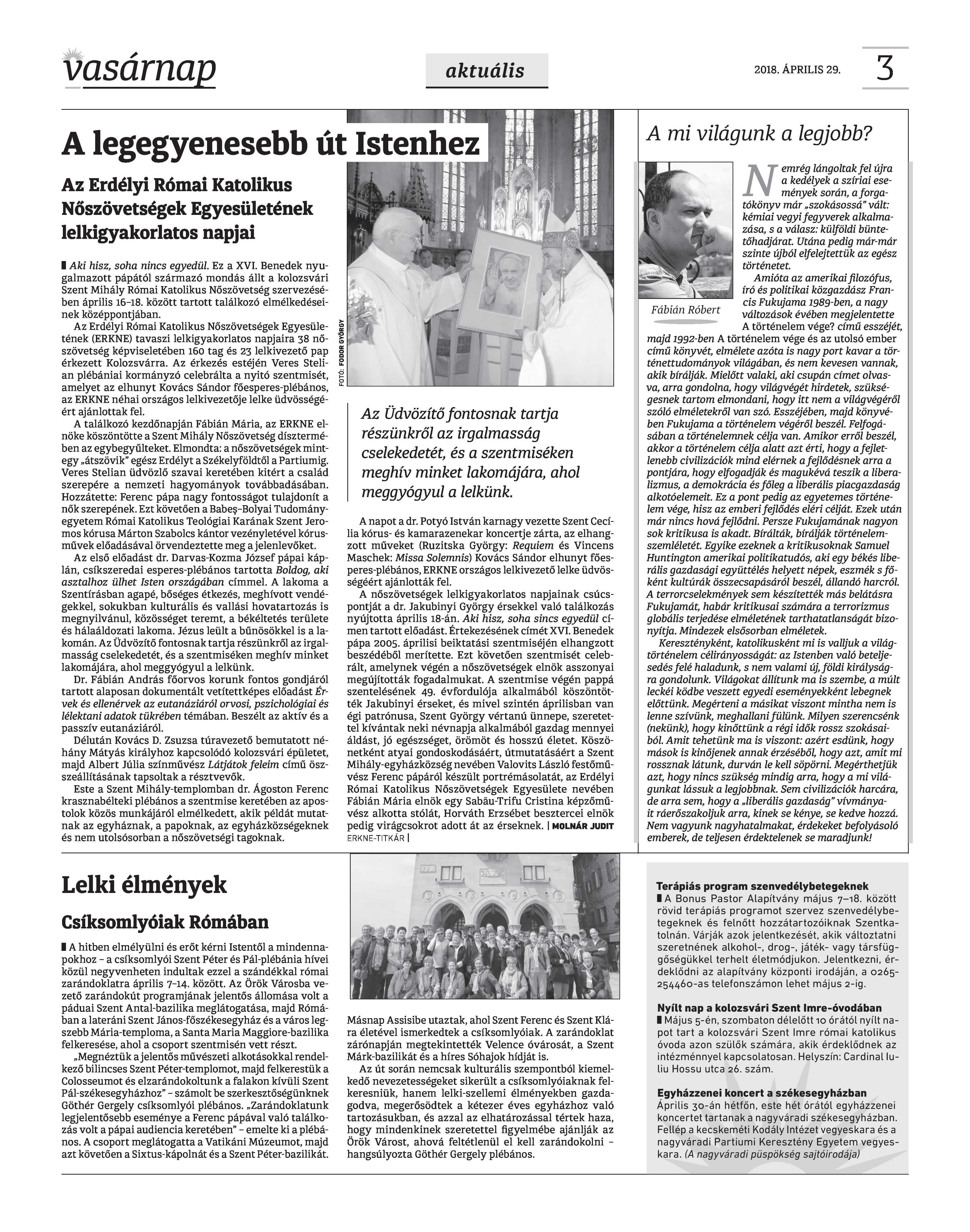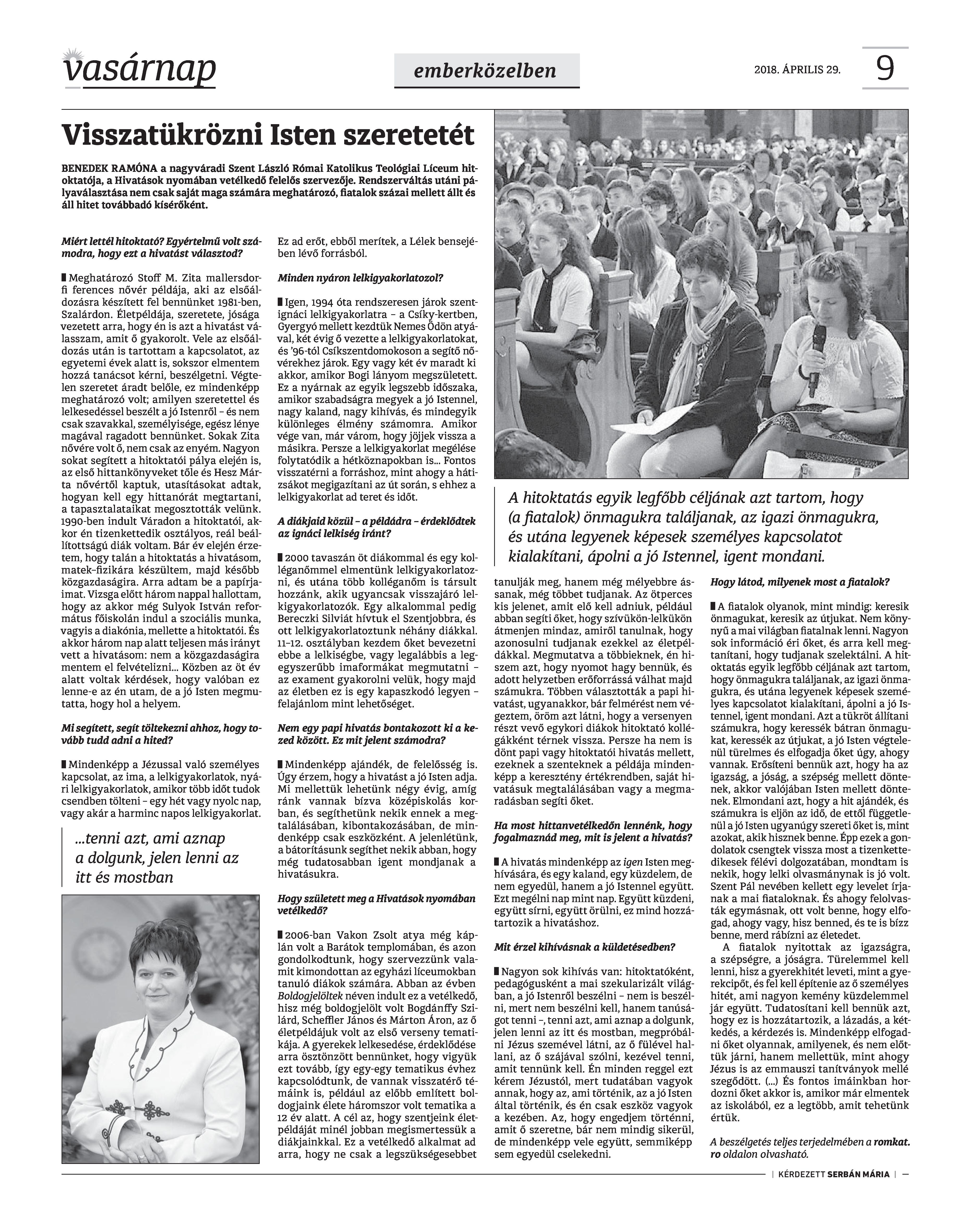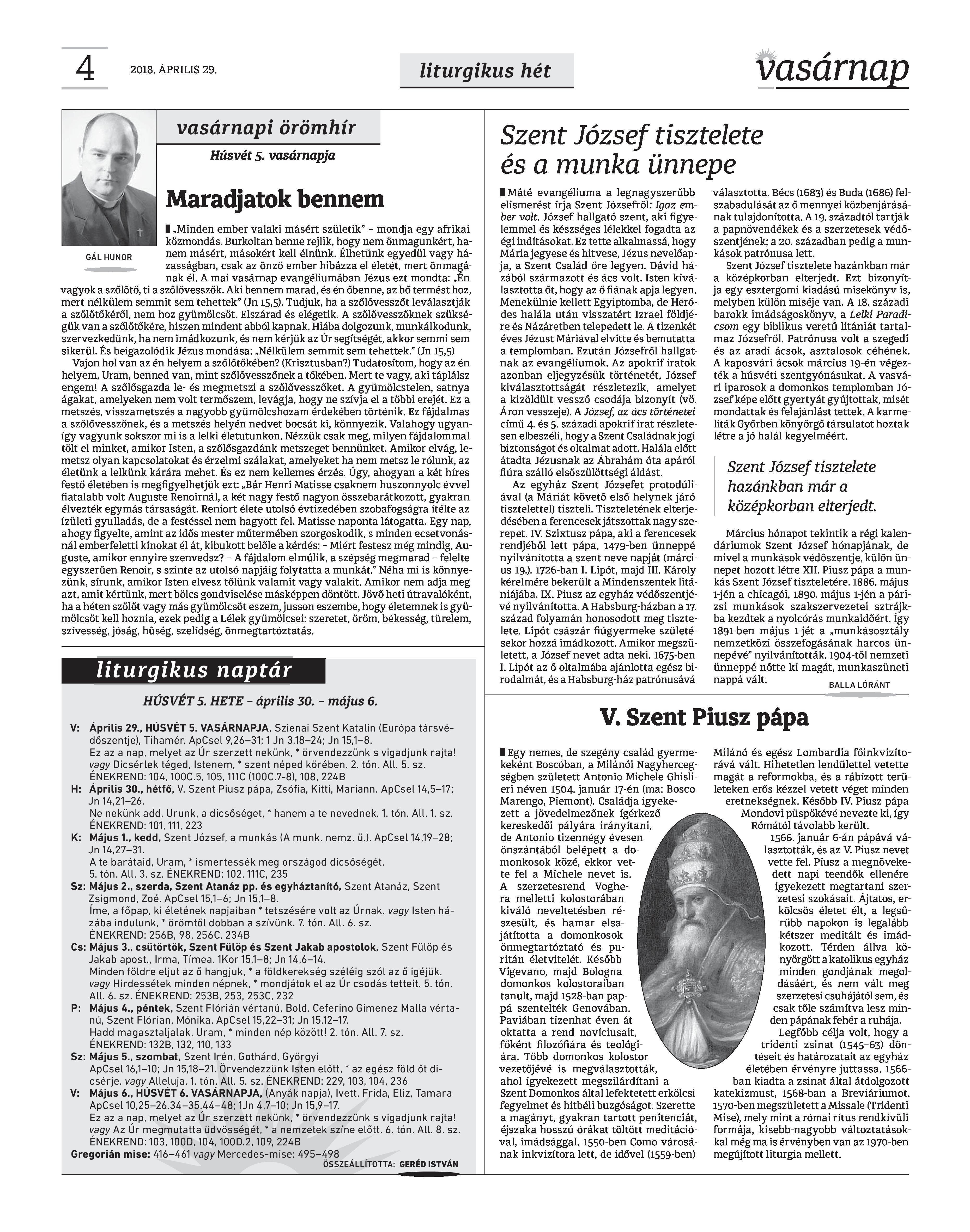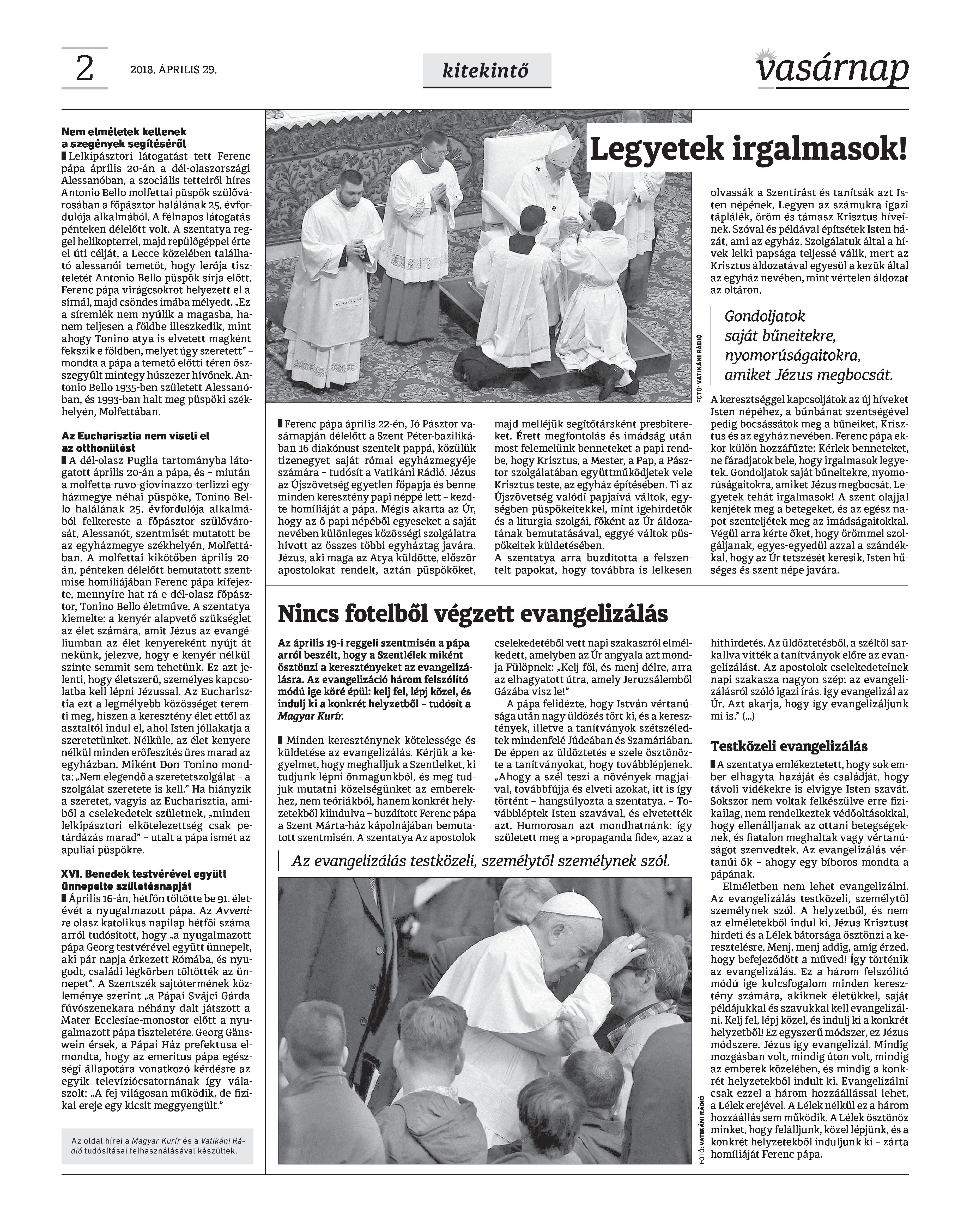 VASÁRNAP - 2018. ÁPRILIS 29. A Vasárnap Katolikus Hetilap 2018. április 29. / XXVIII. évf. / 17. számának digitális változata. 1 / 12 2 & 3 / 12 4 & 5 / 12 6 & 7 / 12 8 & 9 / 12 10 & 11 / 12 12 / 12