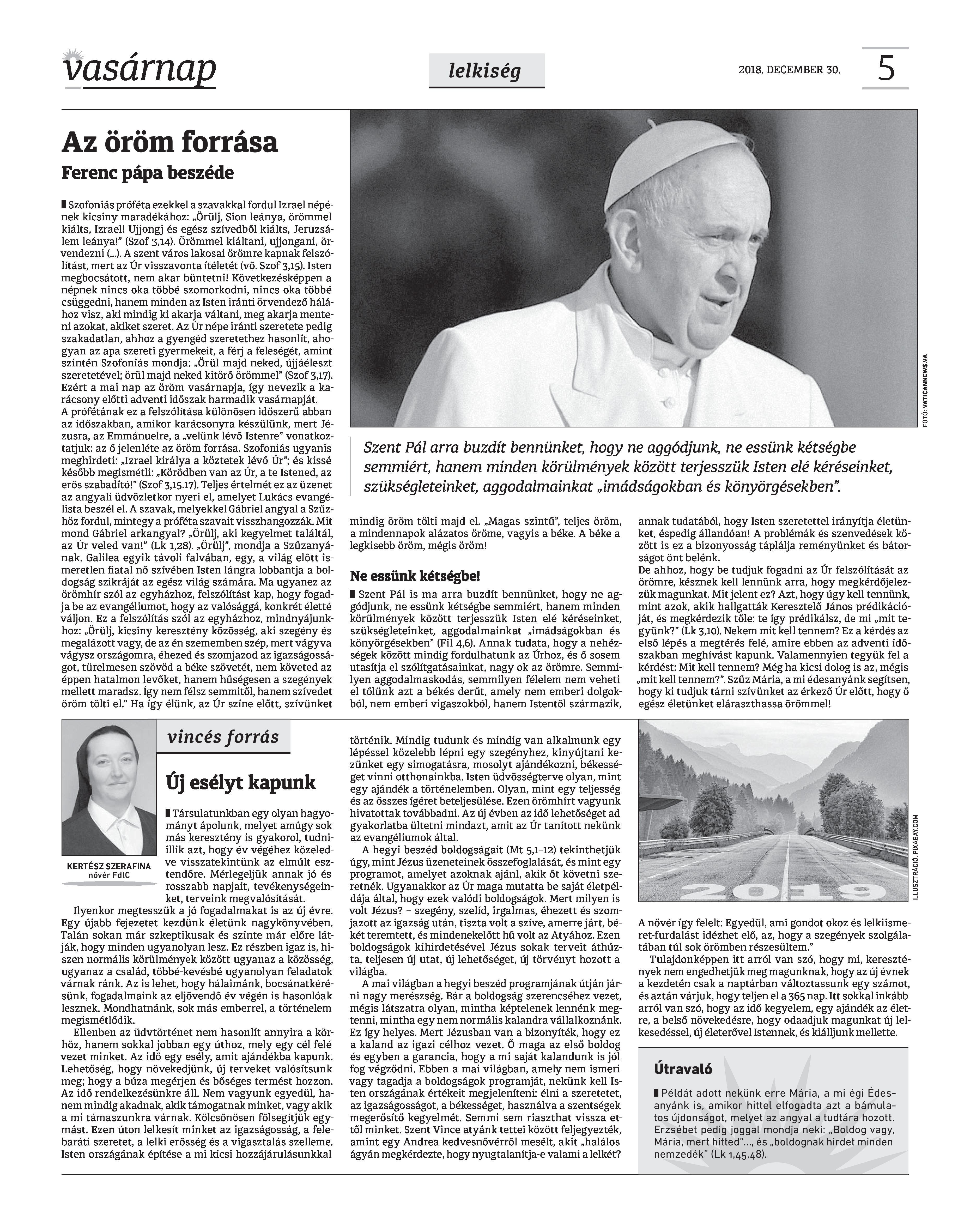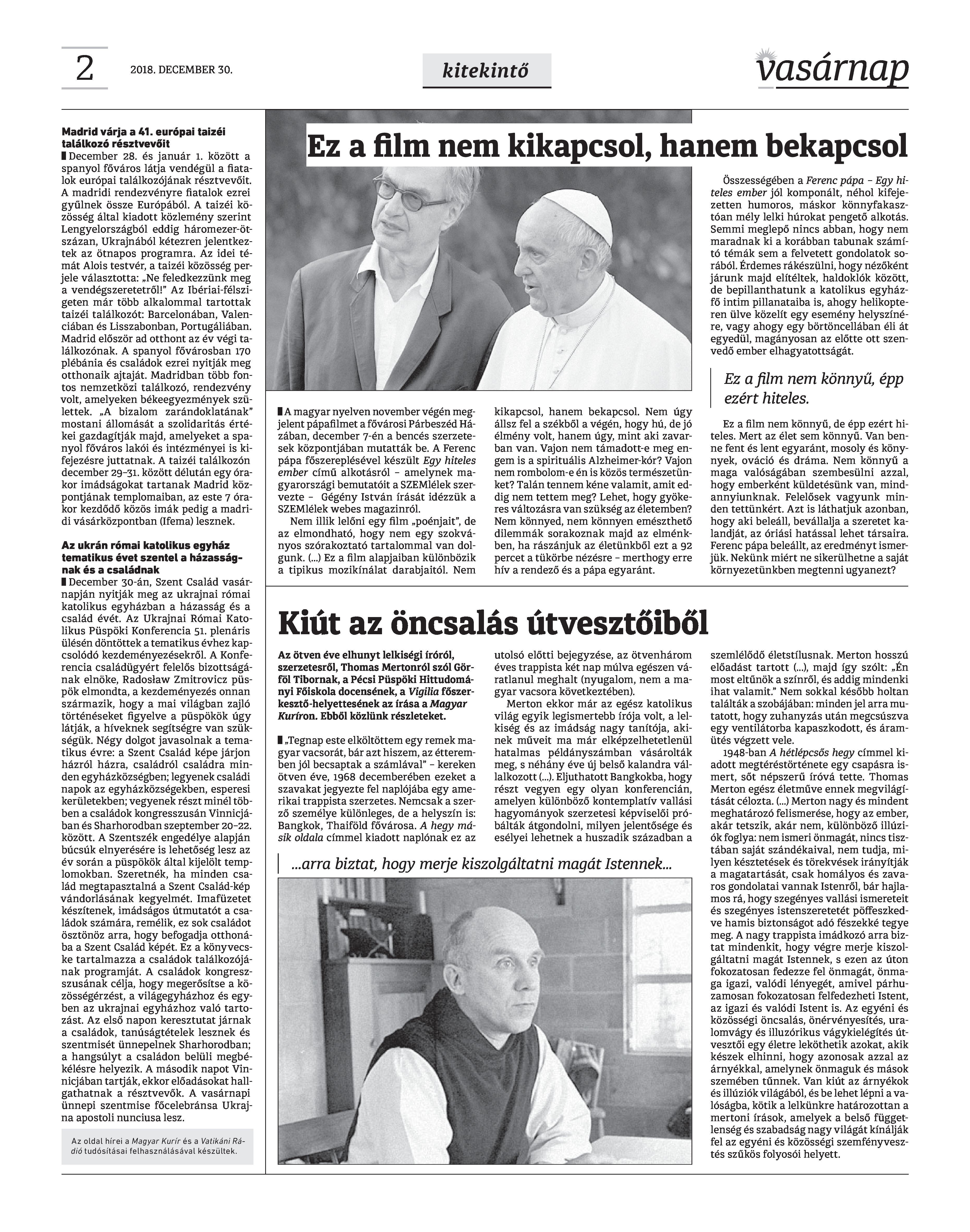 Vasárnap Katolikus Hetilap 2018. december 30. / XXVIII. évf. / 52. számának digitális változata.