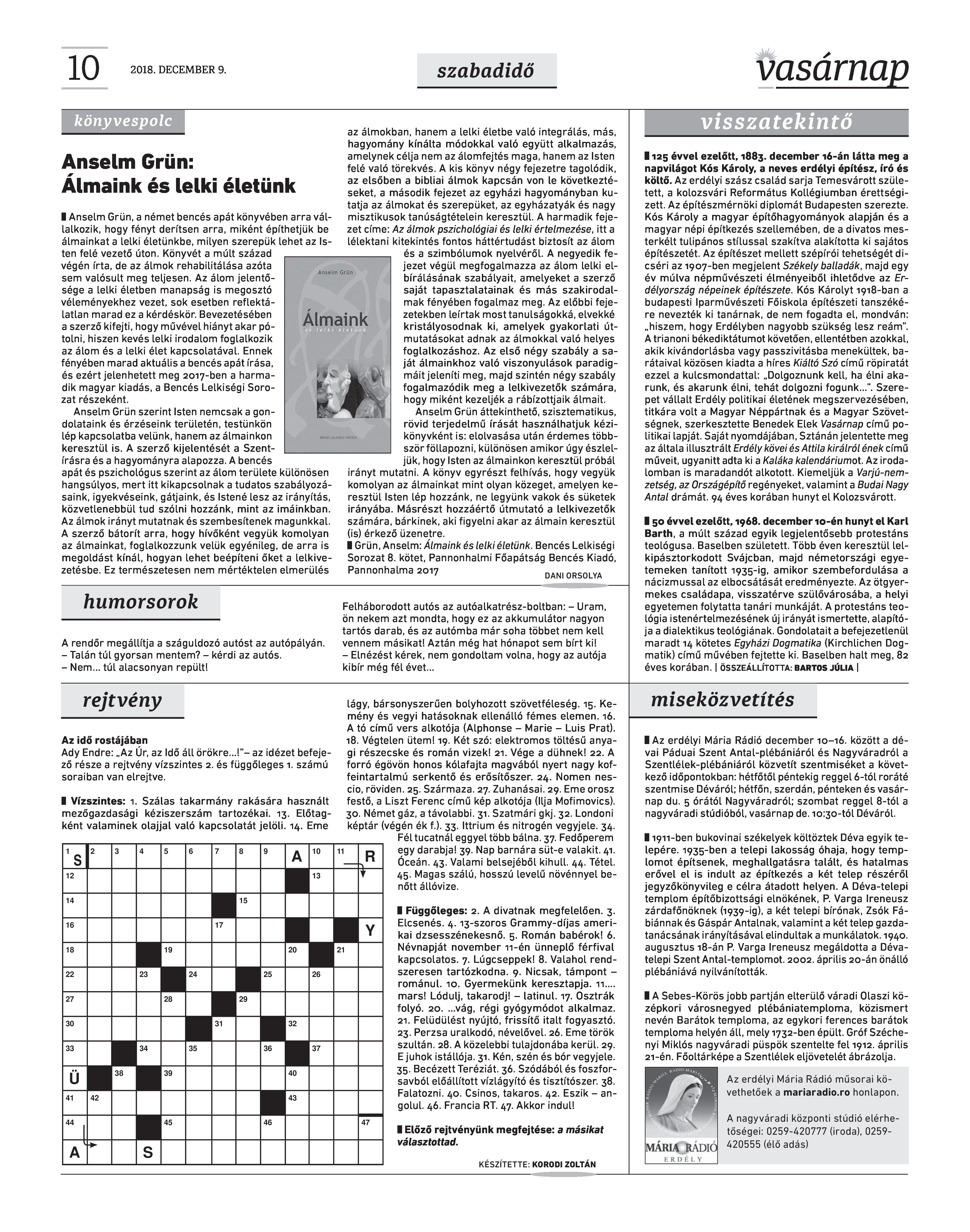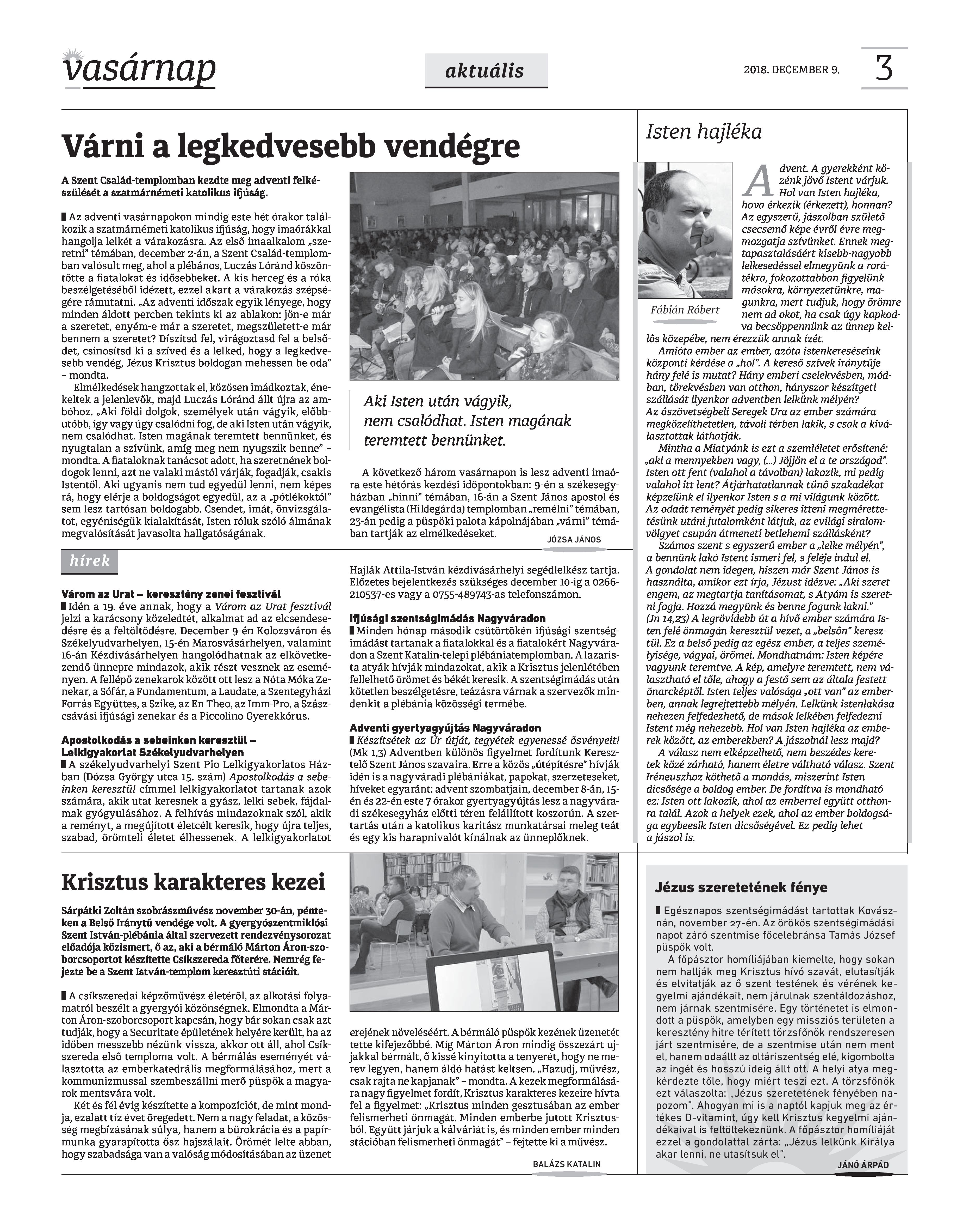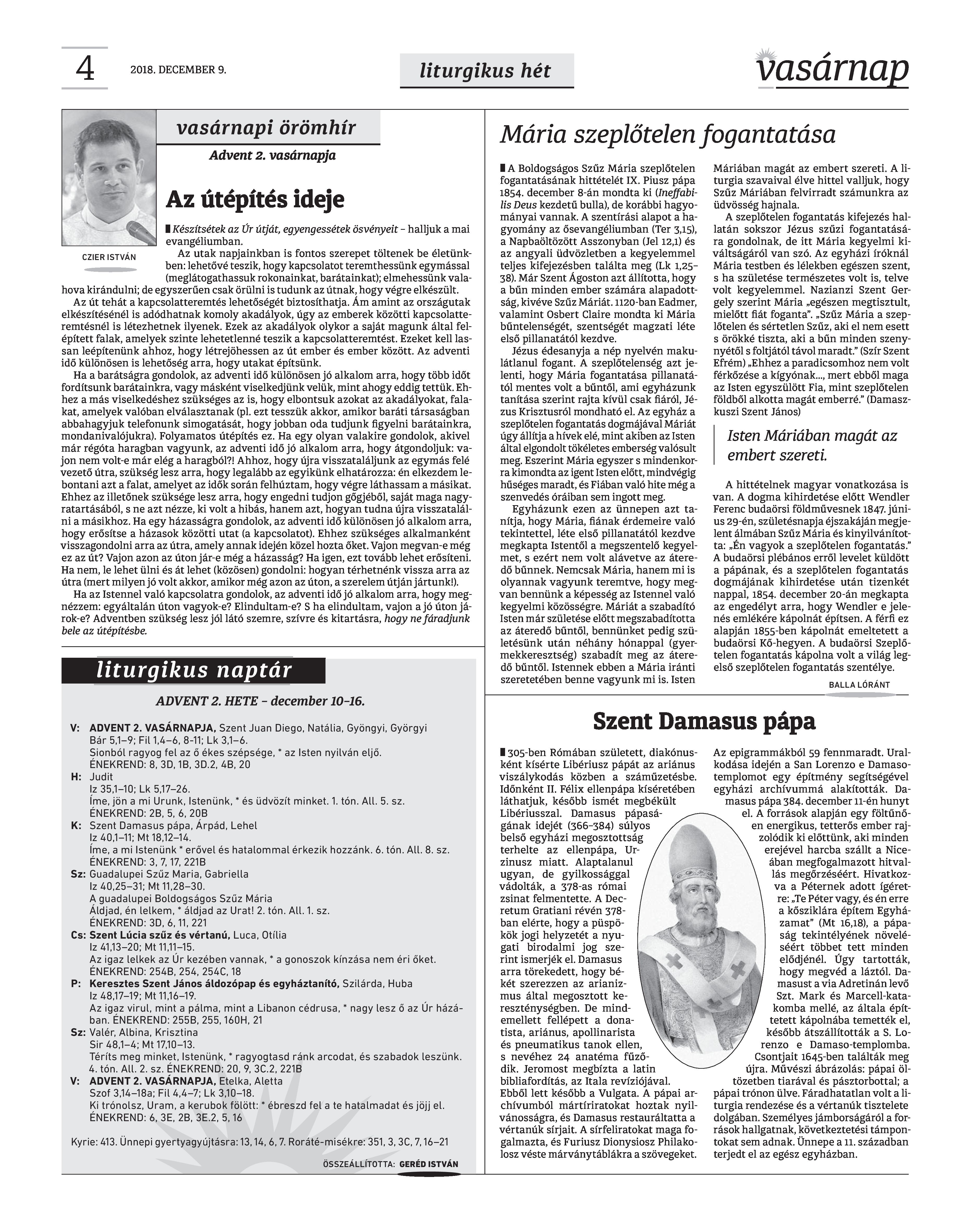 Vasárnap Katolikus Hetilap 2018. december 9. / XXVIII. évf. / 49. számának digitális változata.