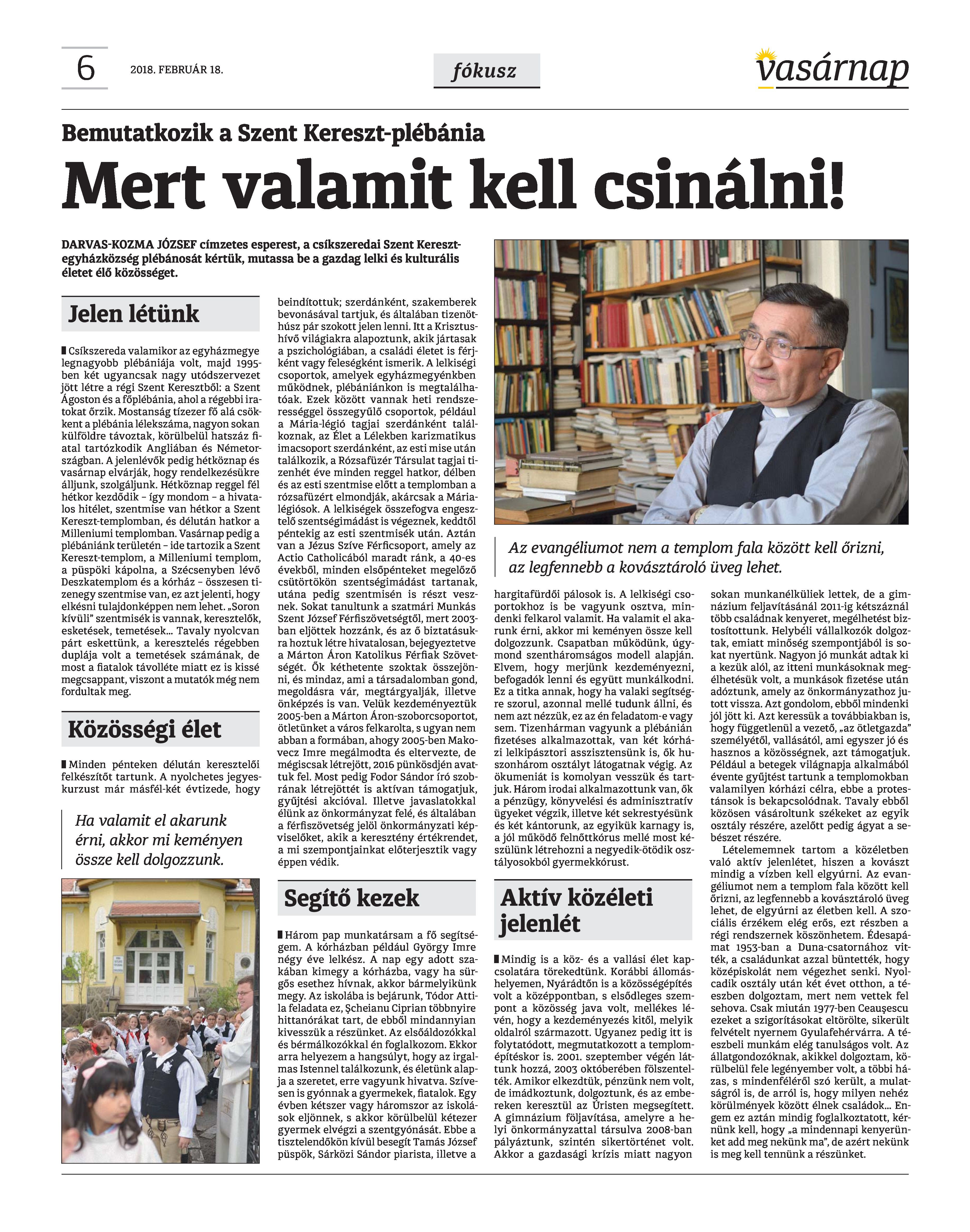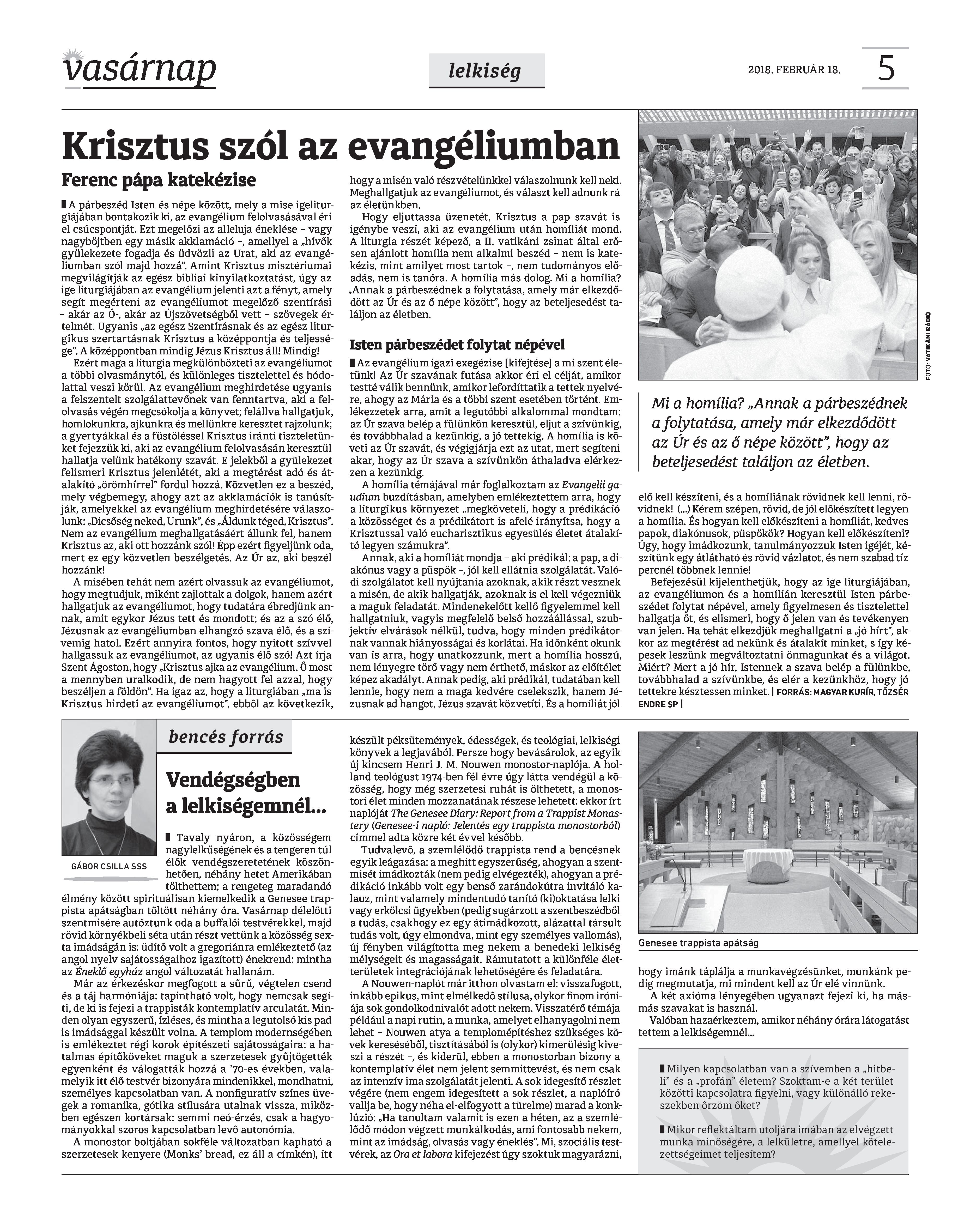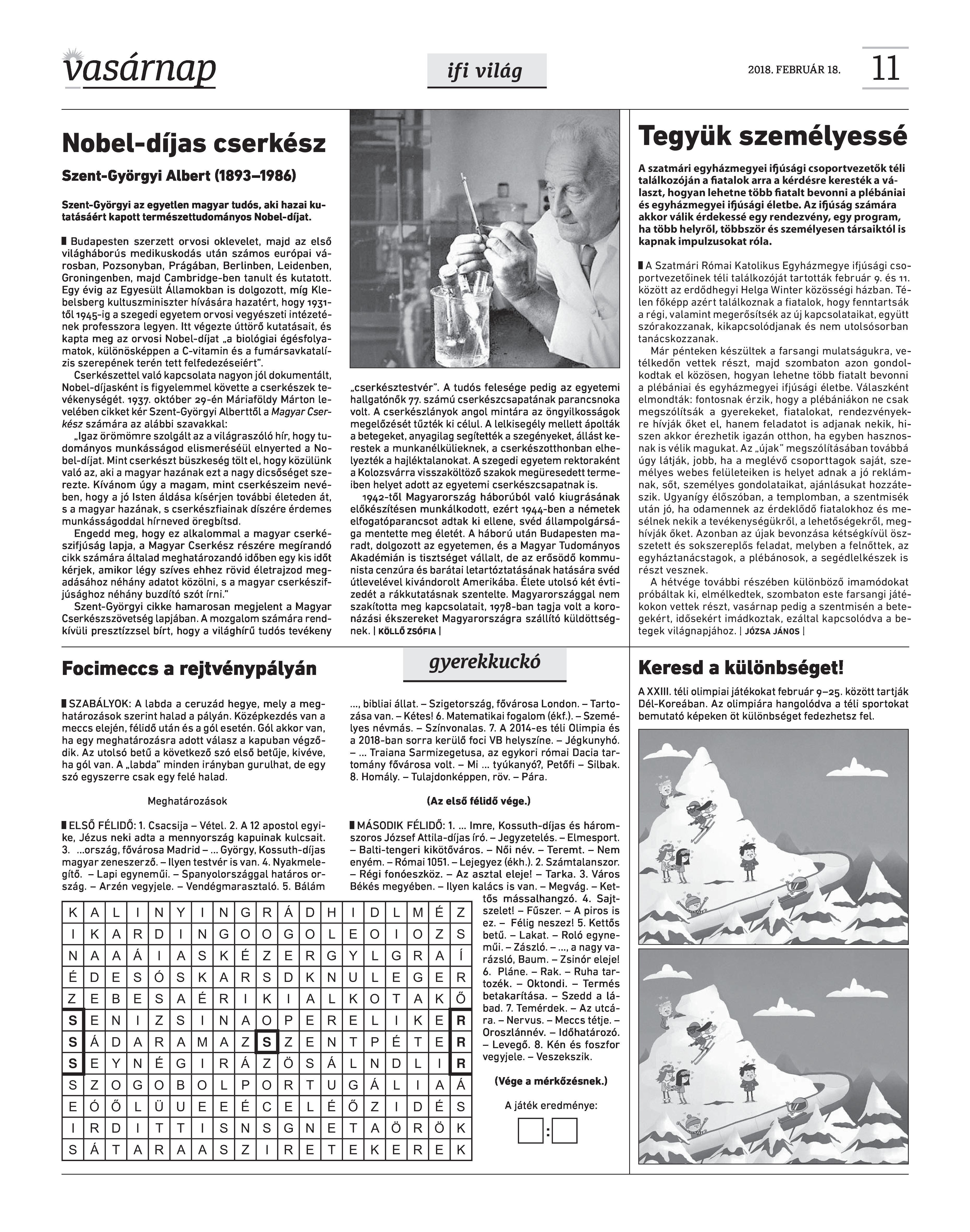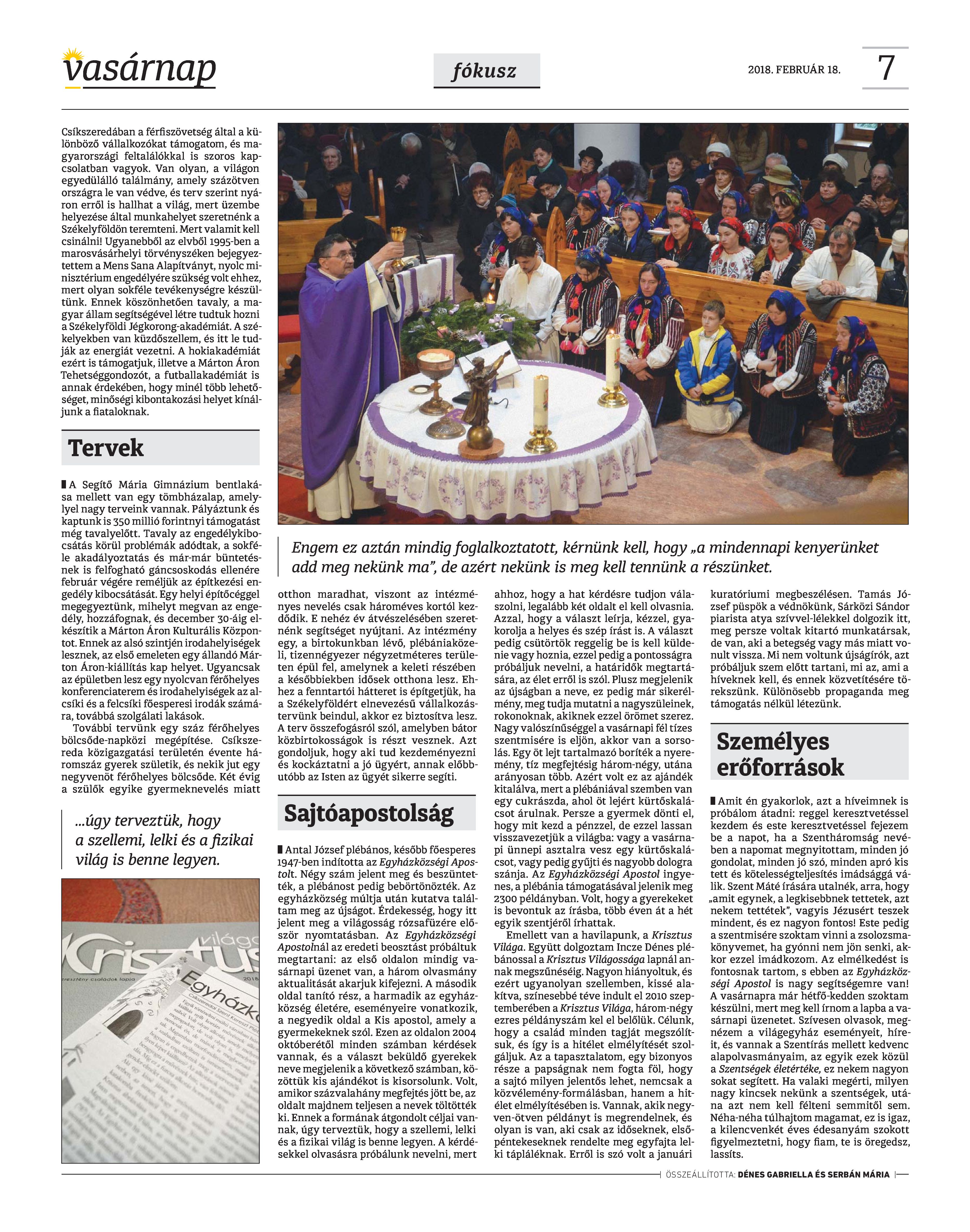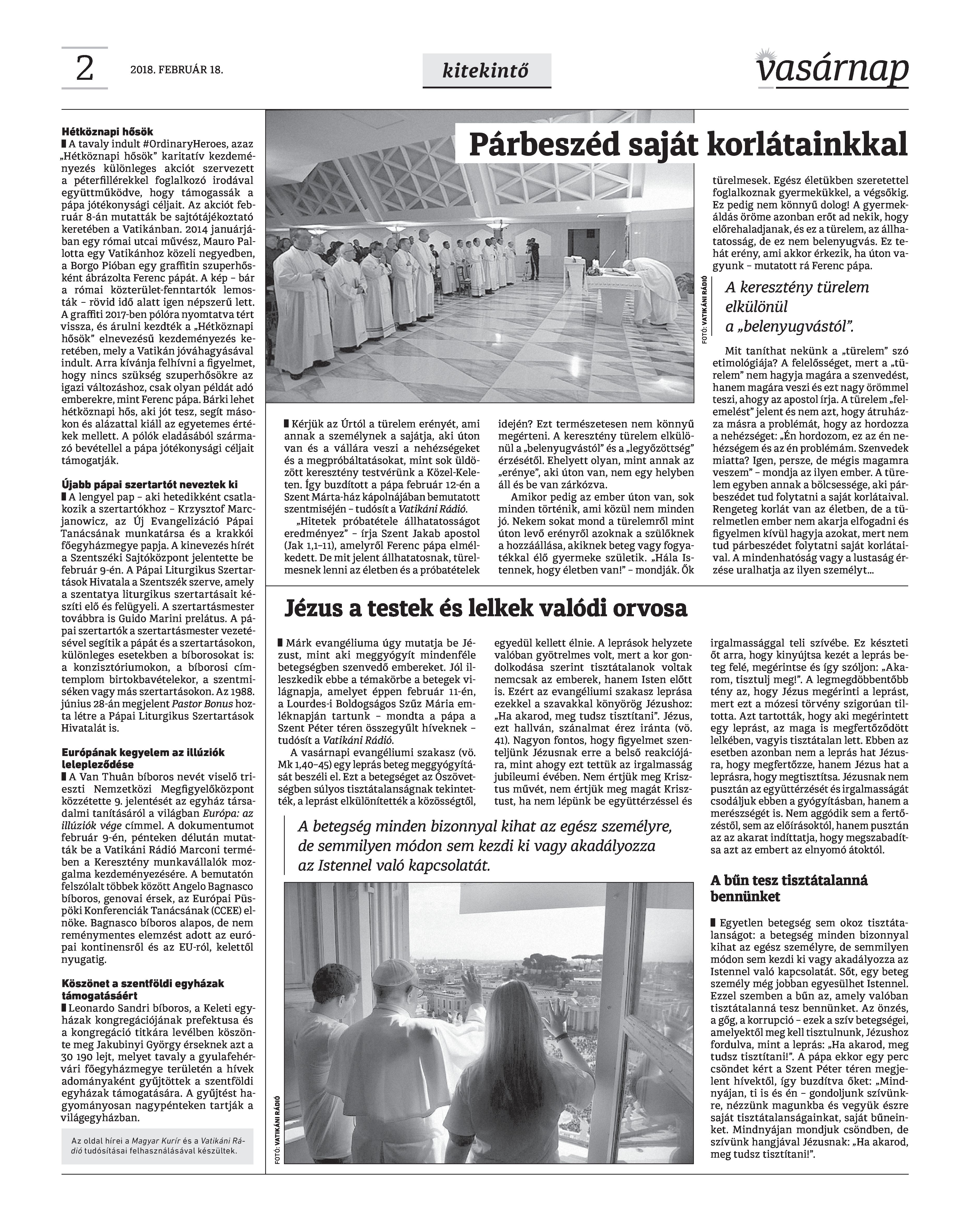 Vasárnap Katolikus Hetilap 2018. február 18. / XXVIII. évf. / 7. számának digitális változata.