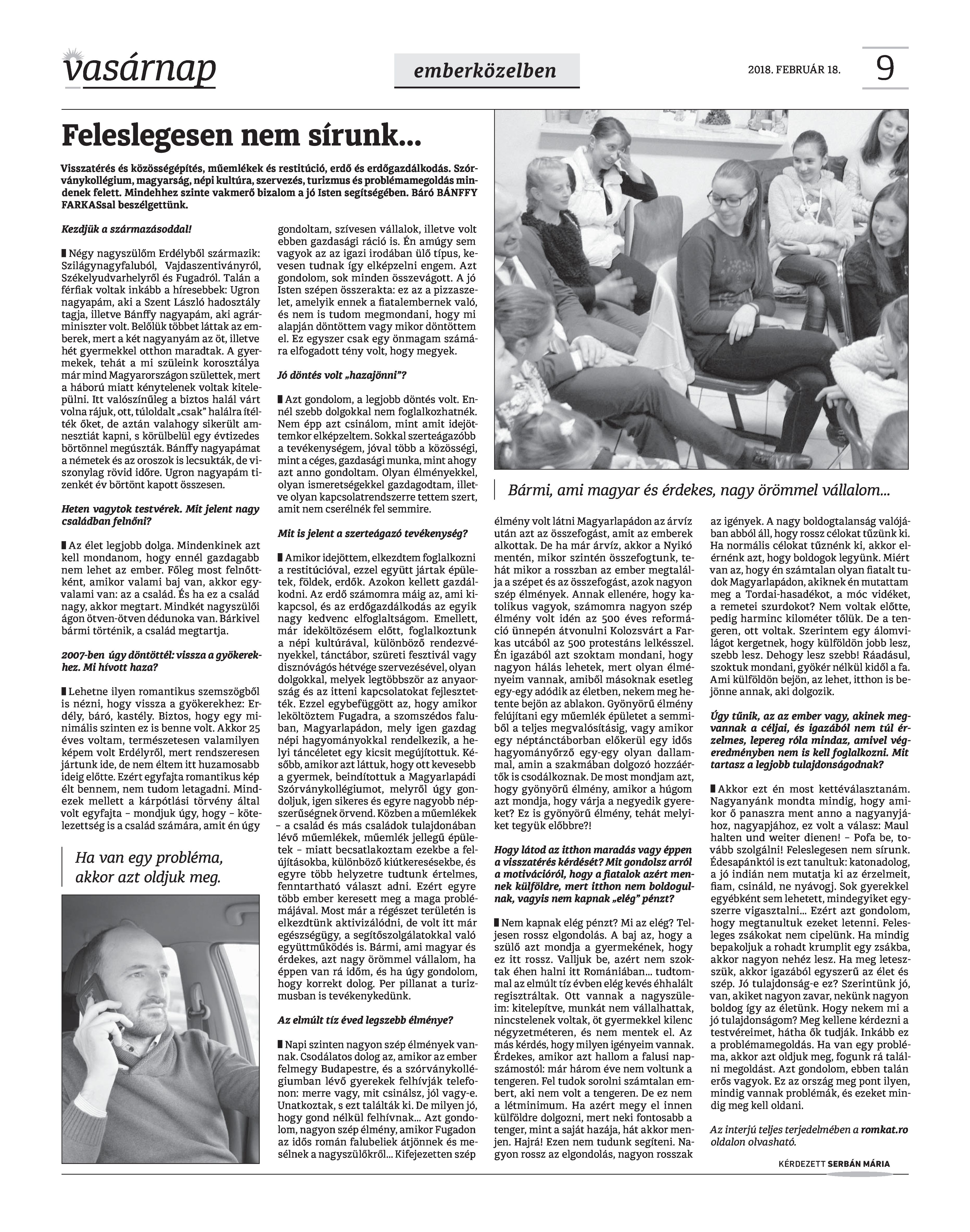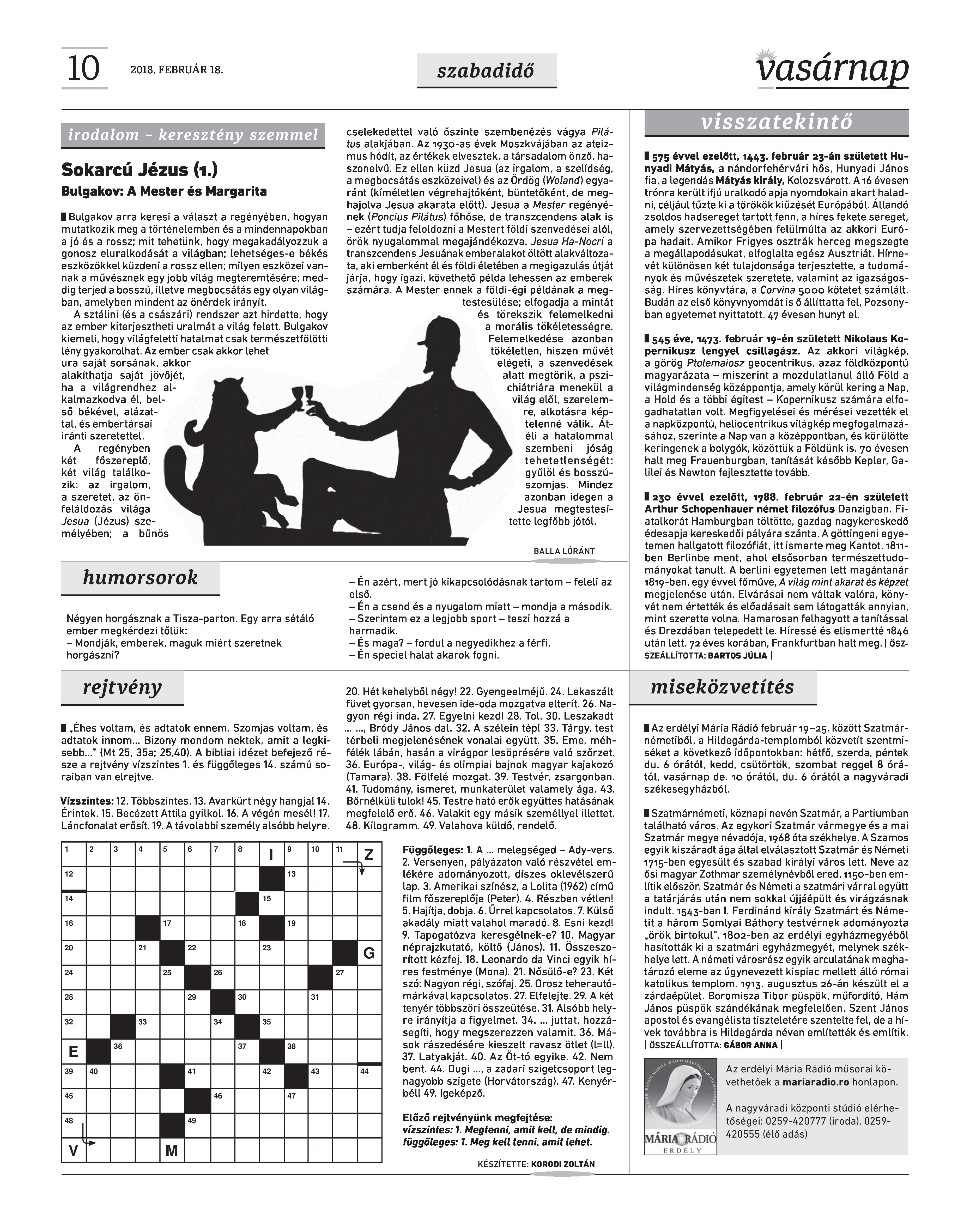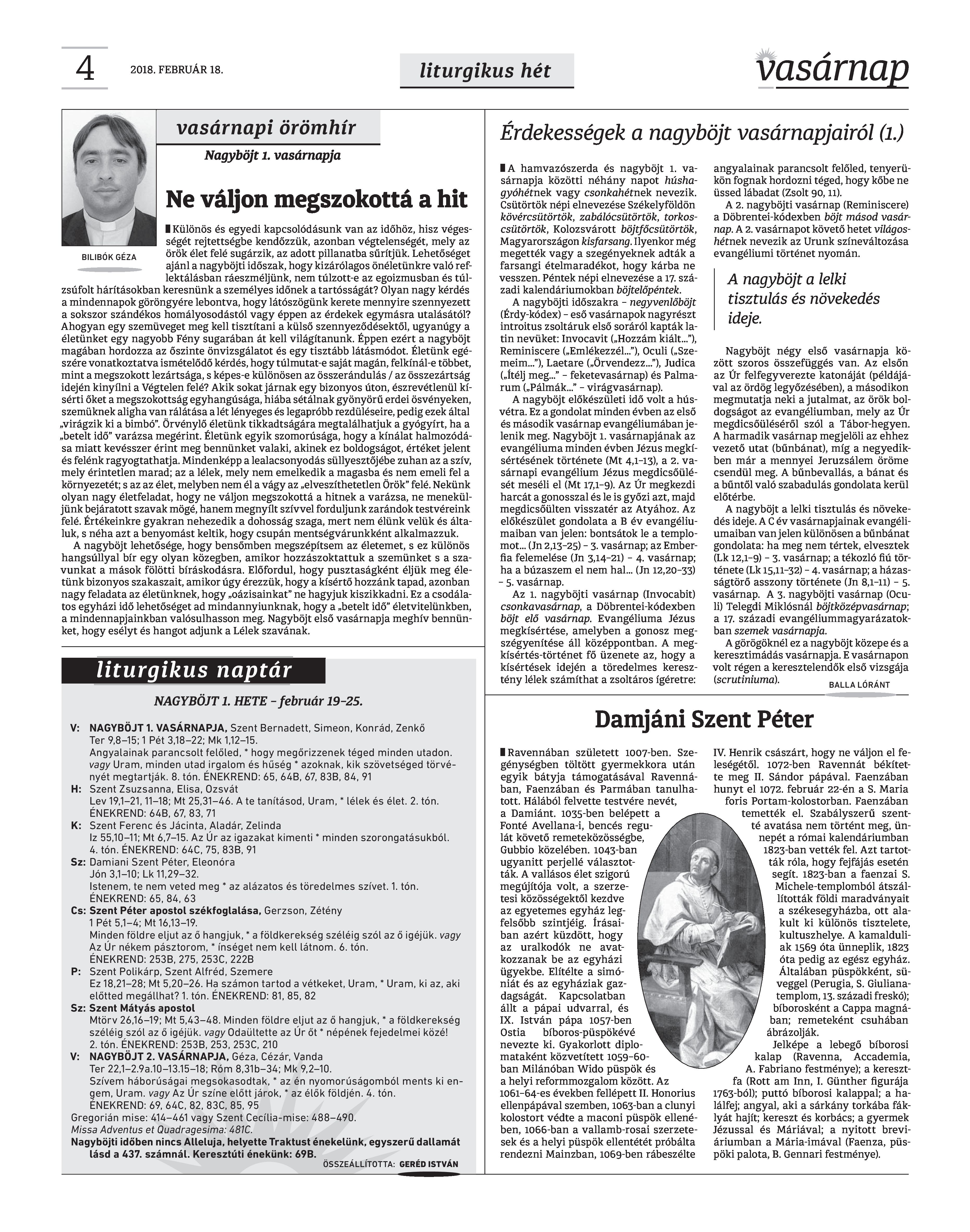 VASÁRNAP - 2018. FEBRUÁR 18.