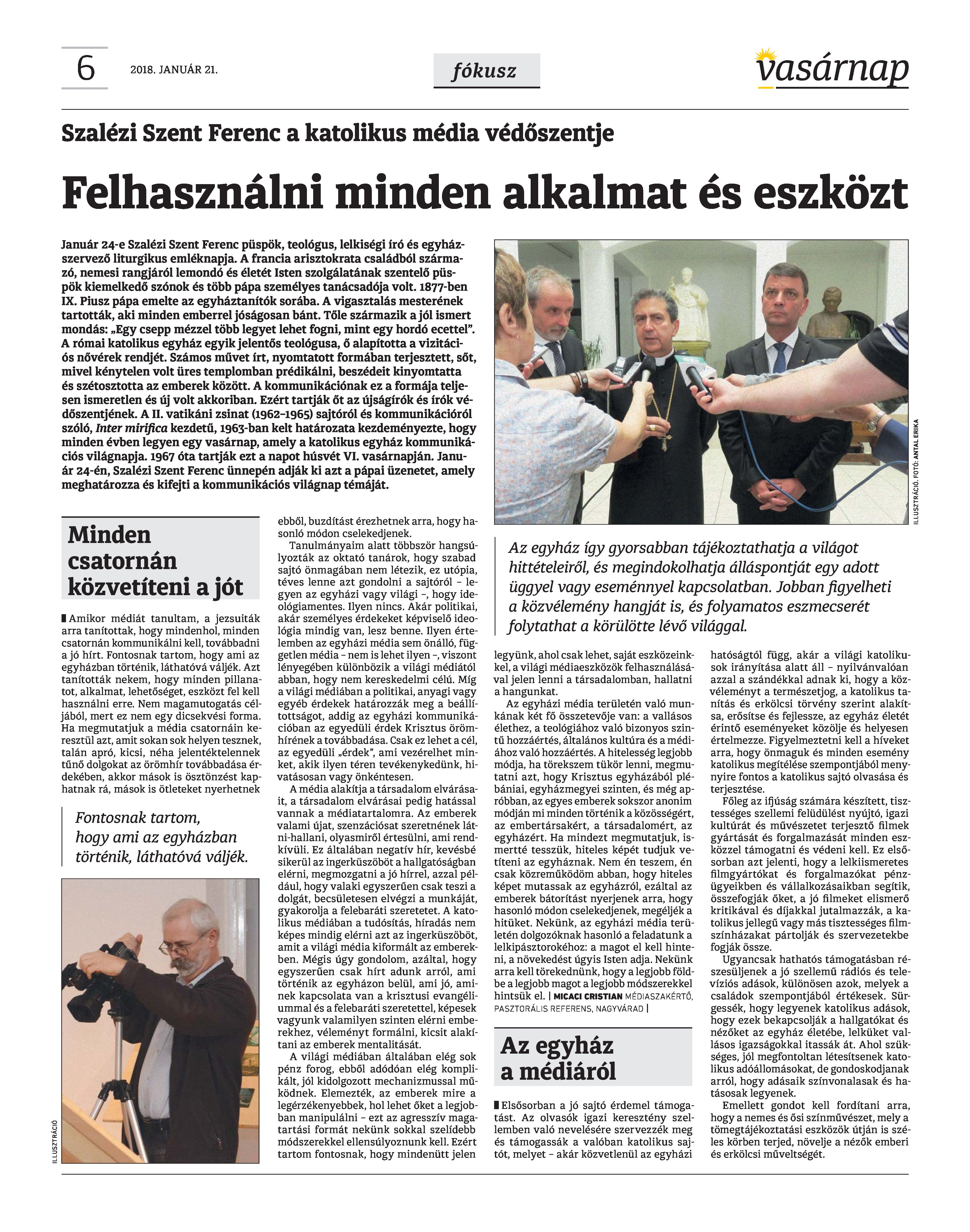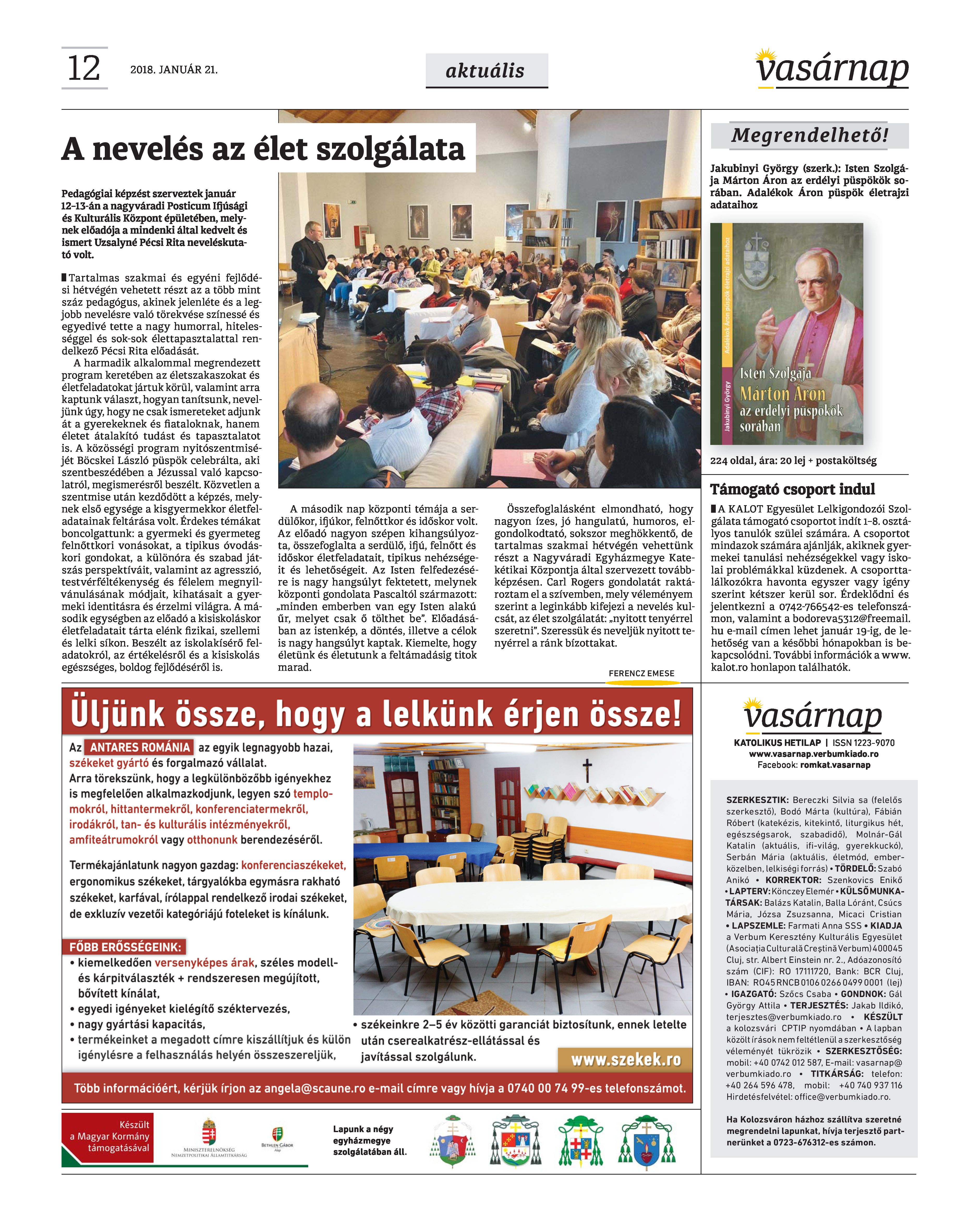 VASÁRNAP - 2018. JANUÁR 21. A Vasárnap Katolikus Hetilap 2018. január 21. / XXVIII. évf. / 3. számának digitális változata. 1 / 12 2 & 3 / 12 4 & 5 / 12 6 & 7 / 12 8 & 9 / 12 10 & 11 / 12 12 / 12