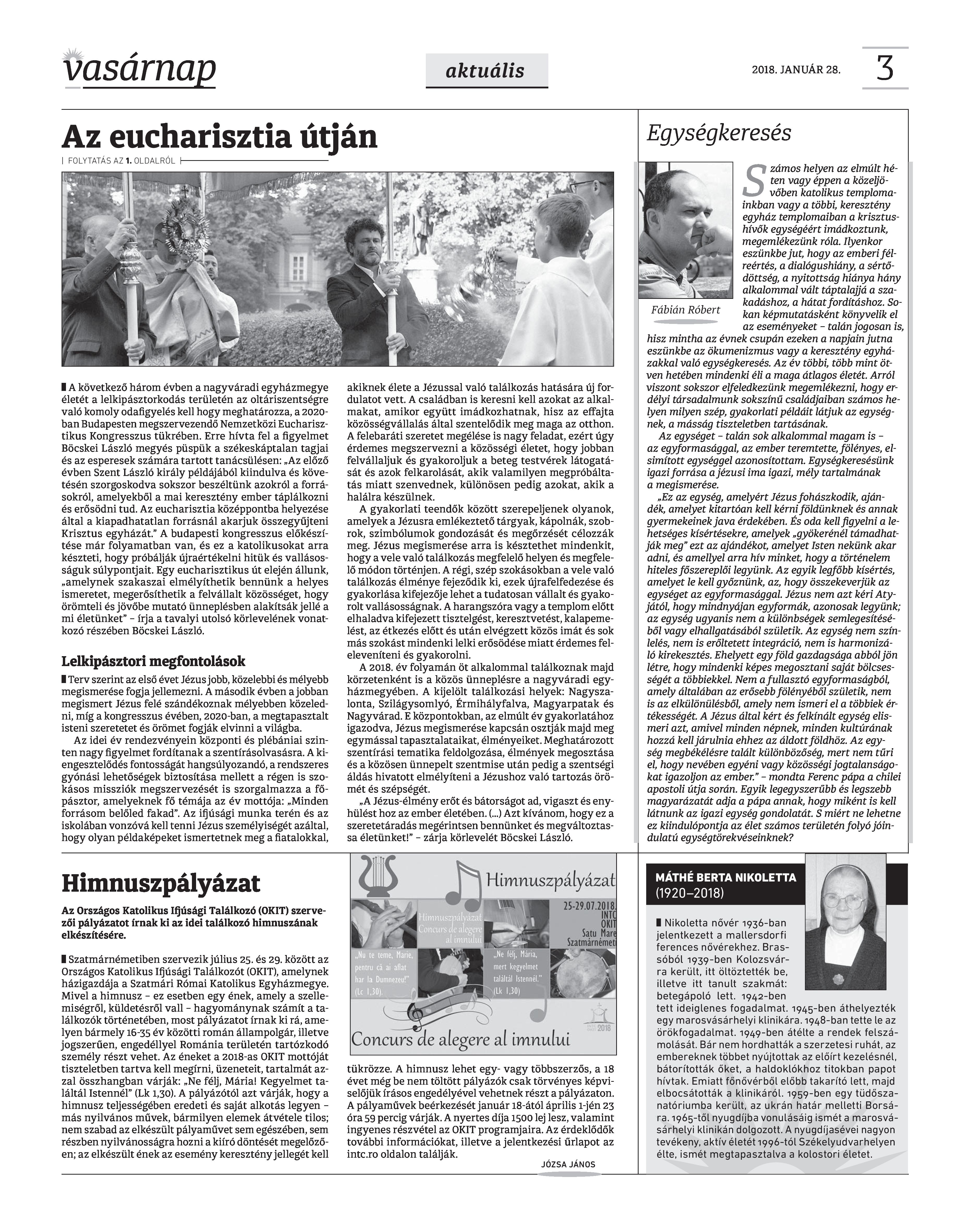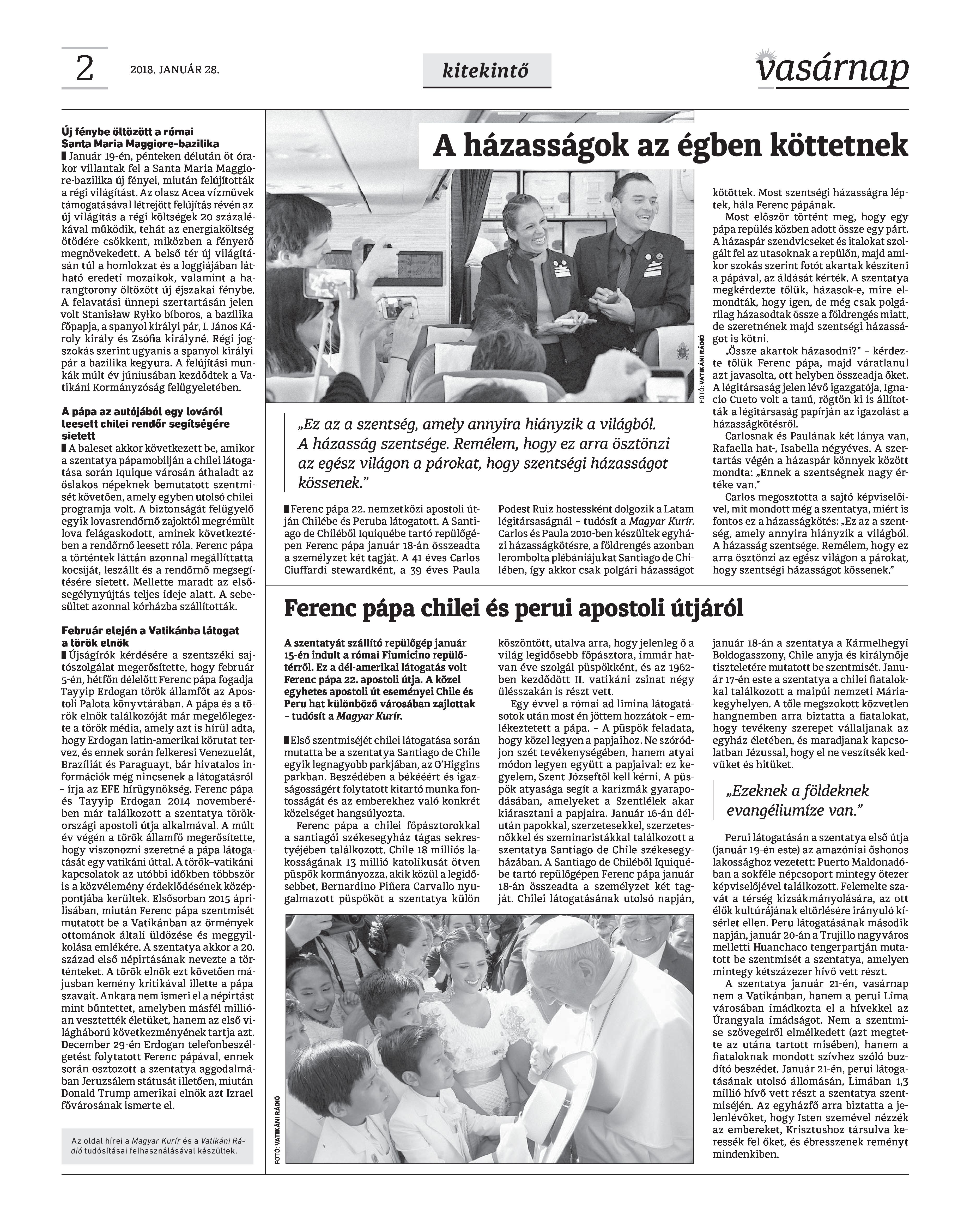 VASÁRNAP - 2018. JANUÁR 28. A Vasárnap Katolikus Hetilap 2018. január 28. / XXVIII. évf. / 4. számának digitális változata. 1 / 12 2 & 3 / 12 4 & 5 / 12 6 & 7 / 12 8 & 9 / 12 10 & 11 / 12 12 / 12