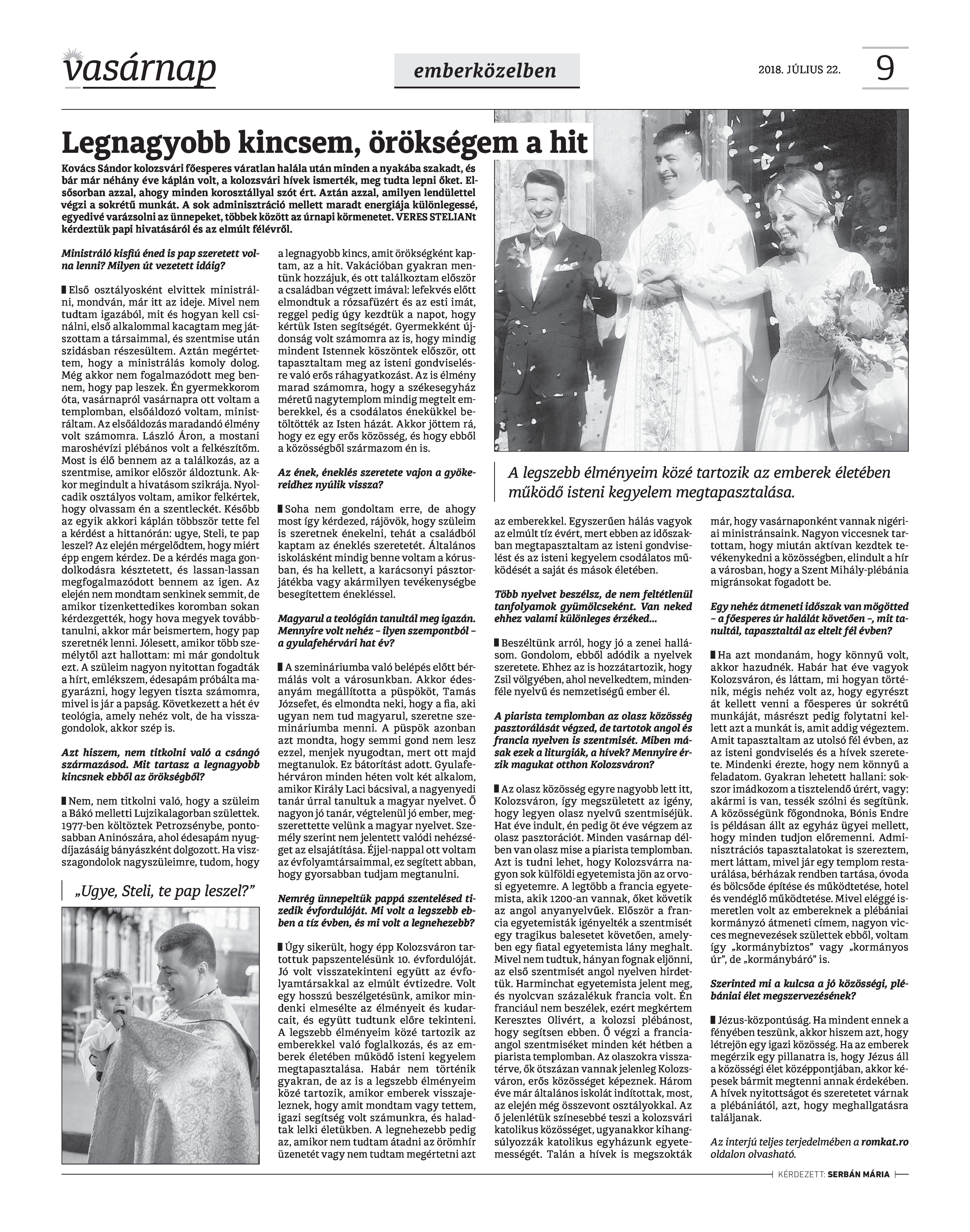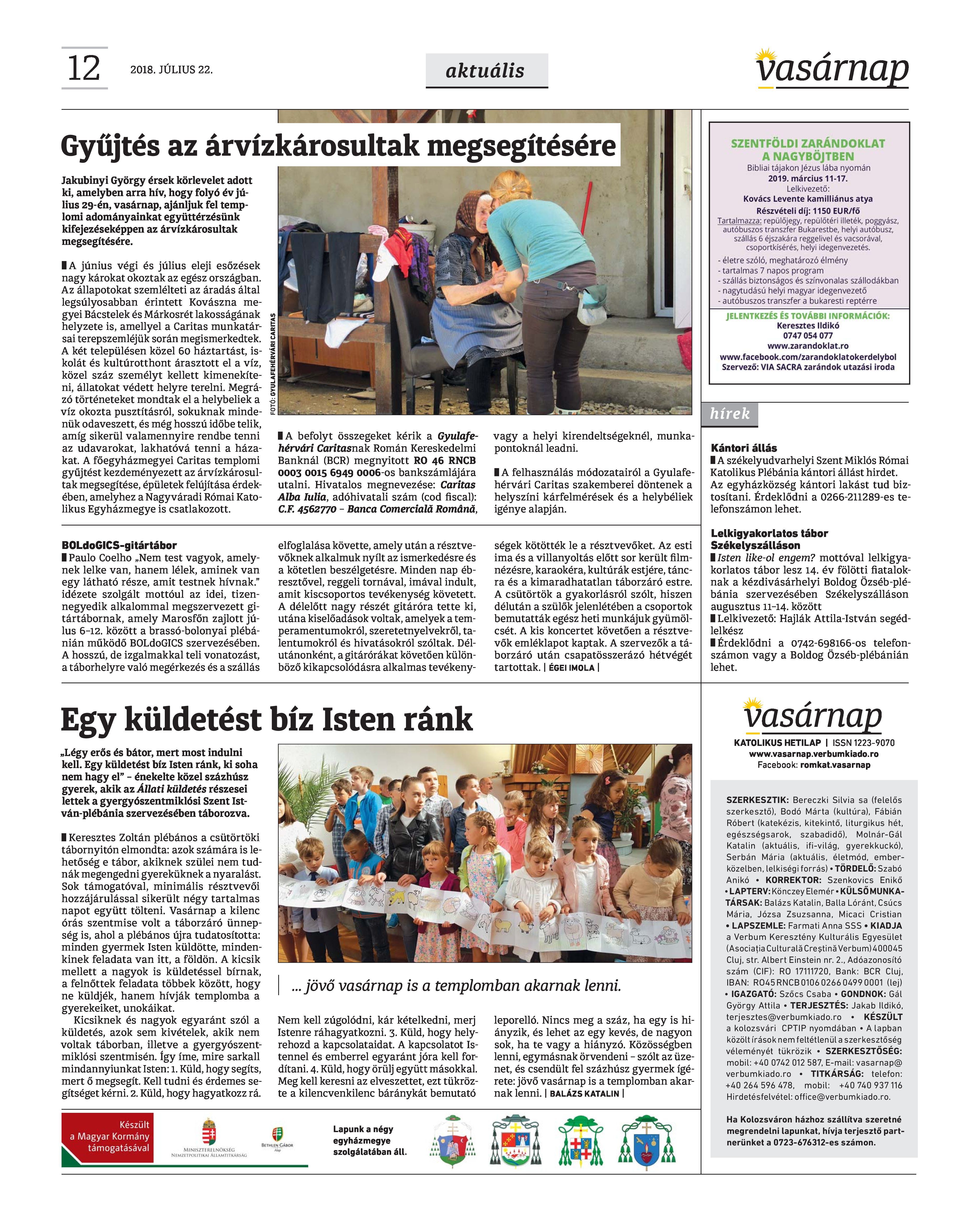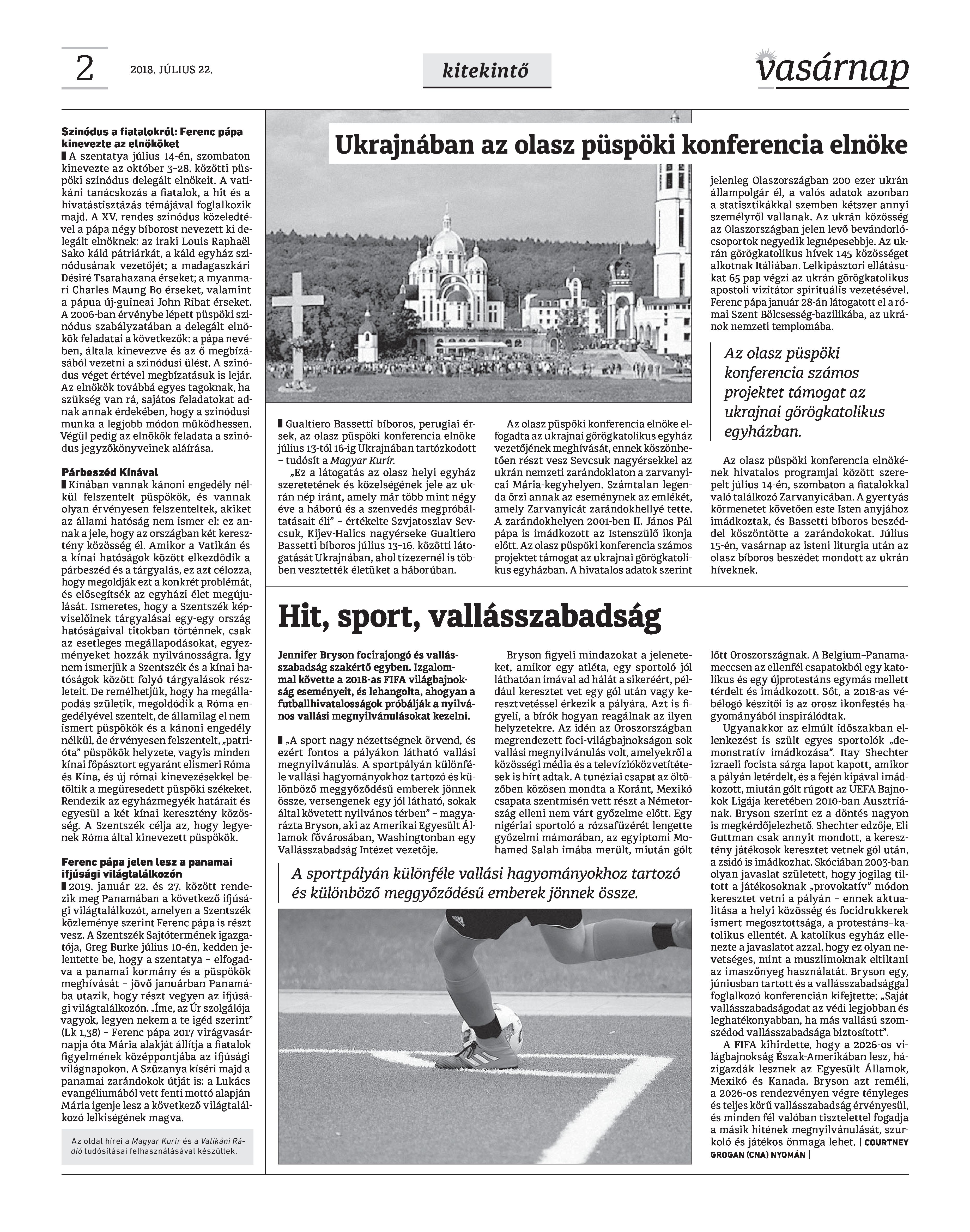 VASÁRNAP - 2018. JÚLIUS 22. A Vasárnap Katolikus Hetilap 2018. július 22. / XXVIII. évf. / 29. számának digitális változata. 1 / 12 2 & 3 / 12 4 & 5 / 12 6 & 7 / 12 8 & 9 / 12 10 & 11 / 12 12 / 12