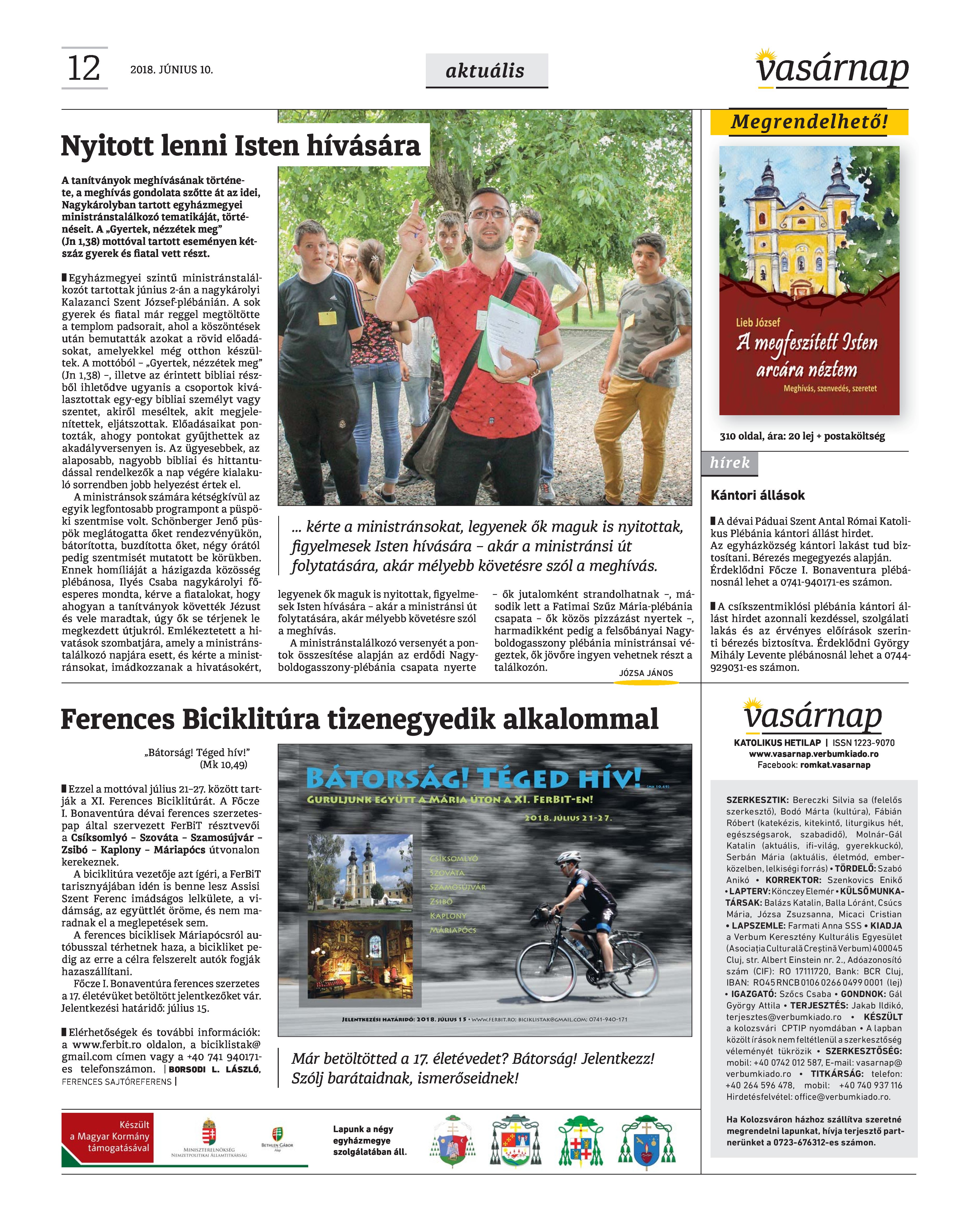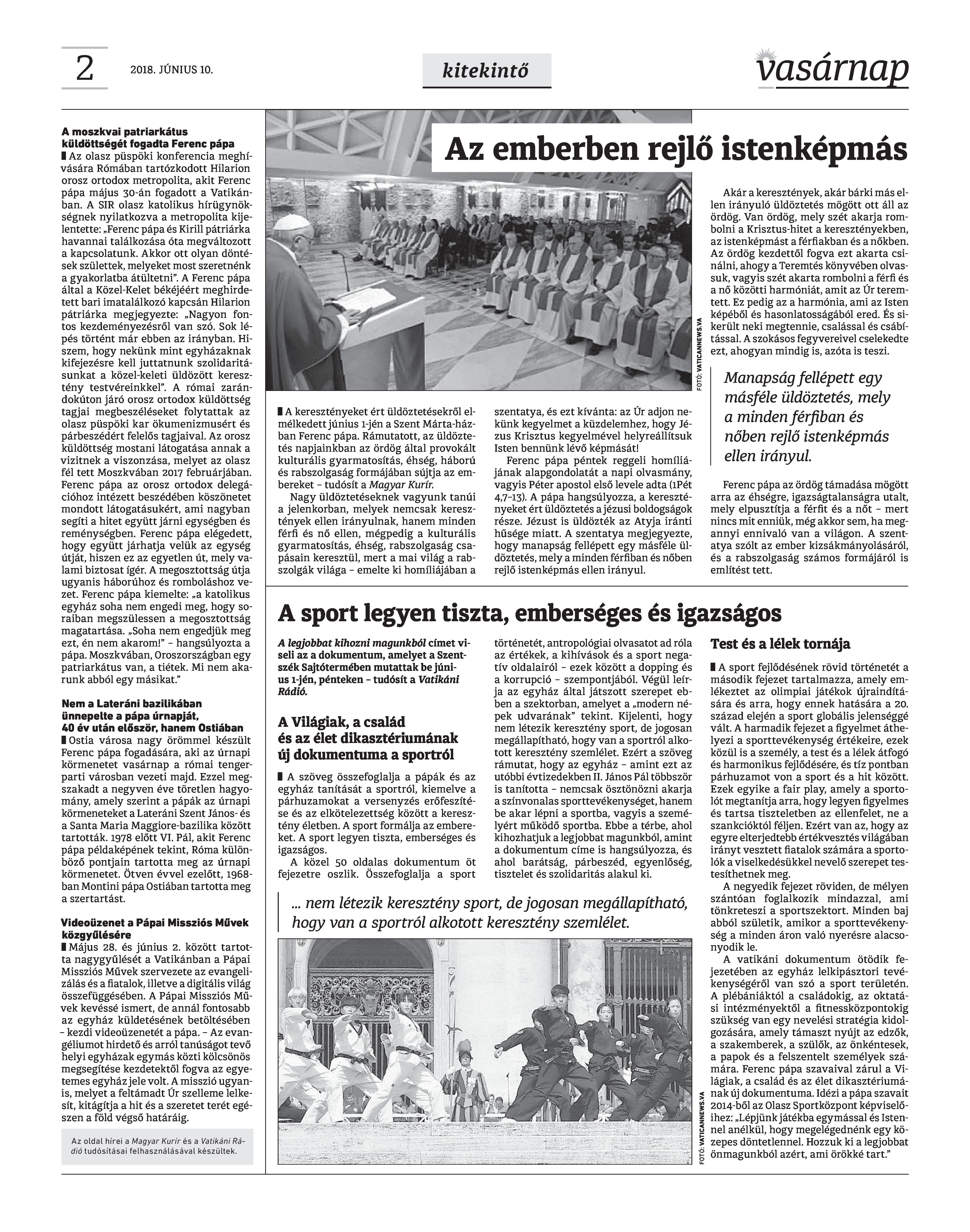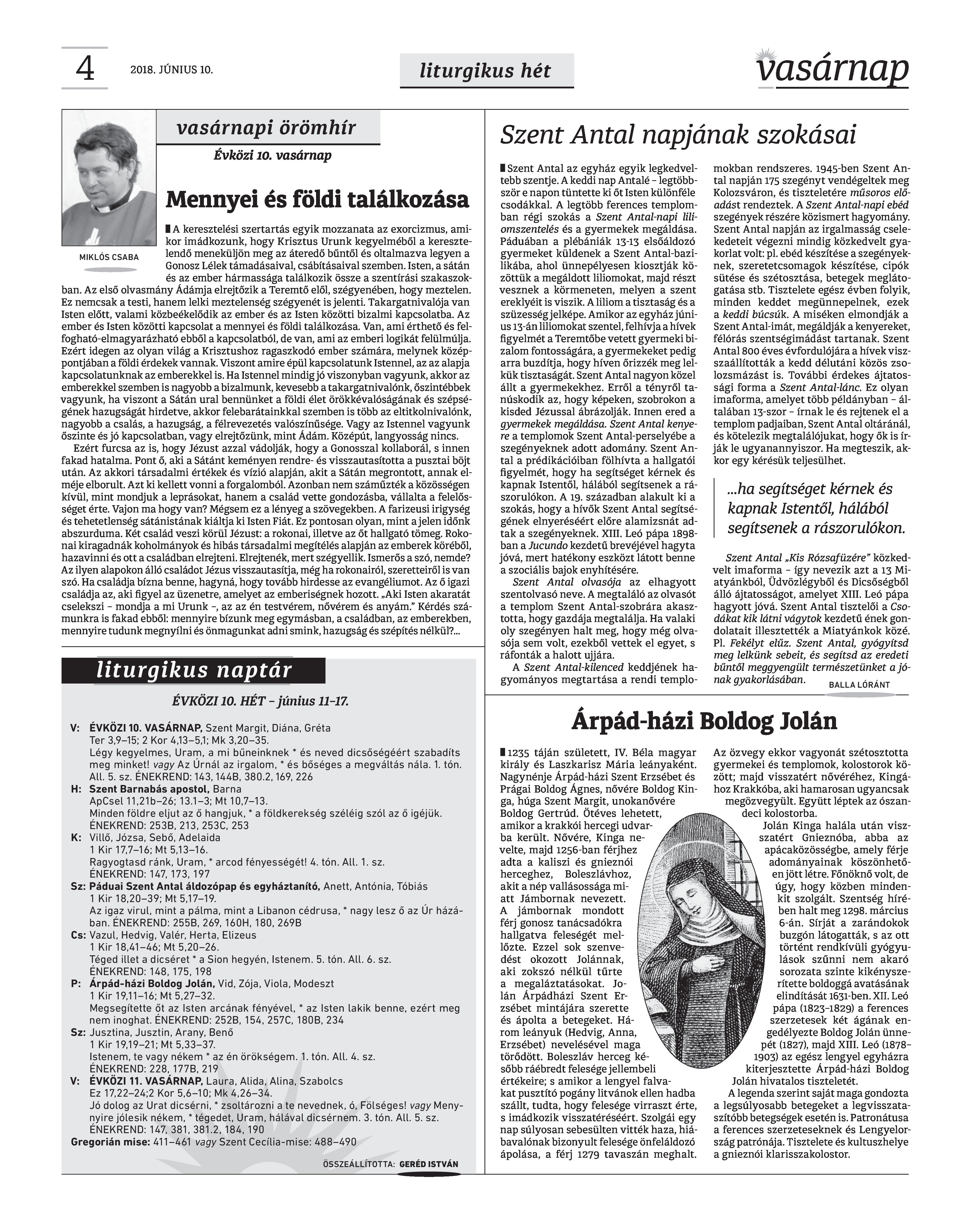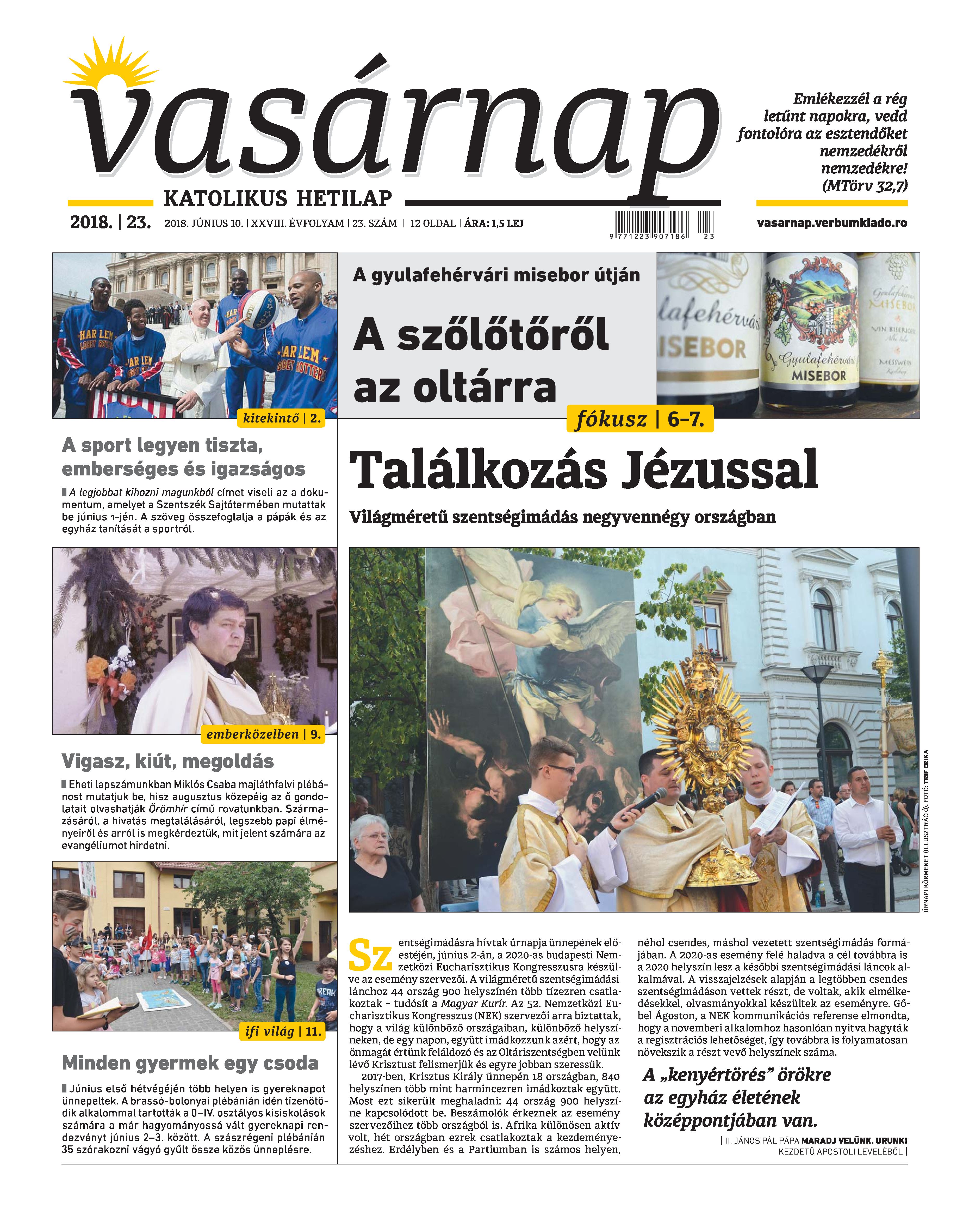 VASÁRNAP - 2018. JÚNIUS 10. A Vasárnap Katolikus Hetilap 2018. június 10. / XXVIII. évf. / 23. számának digitális változata. 1 / 12 2 & 3 / 12 4 & 5 / 12 6 & 7 / 12 8 & 9 / 12 10 & 11 / 12 12 / 12