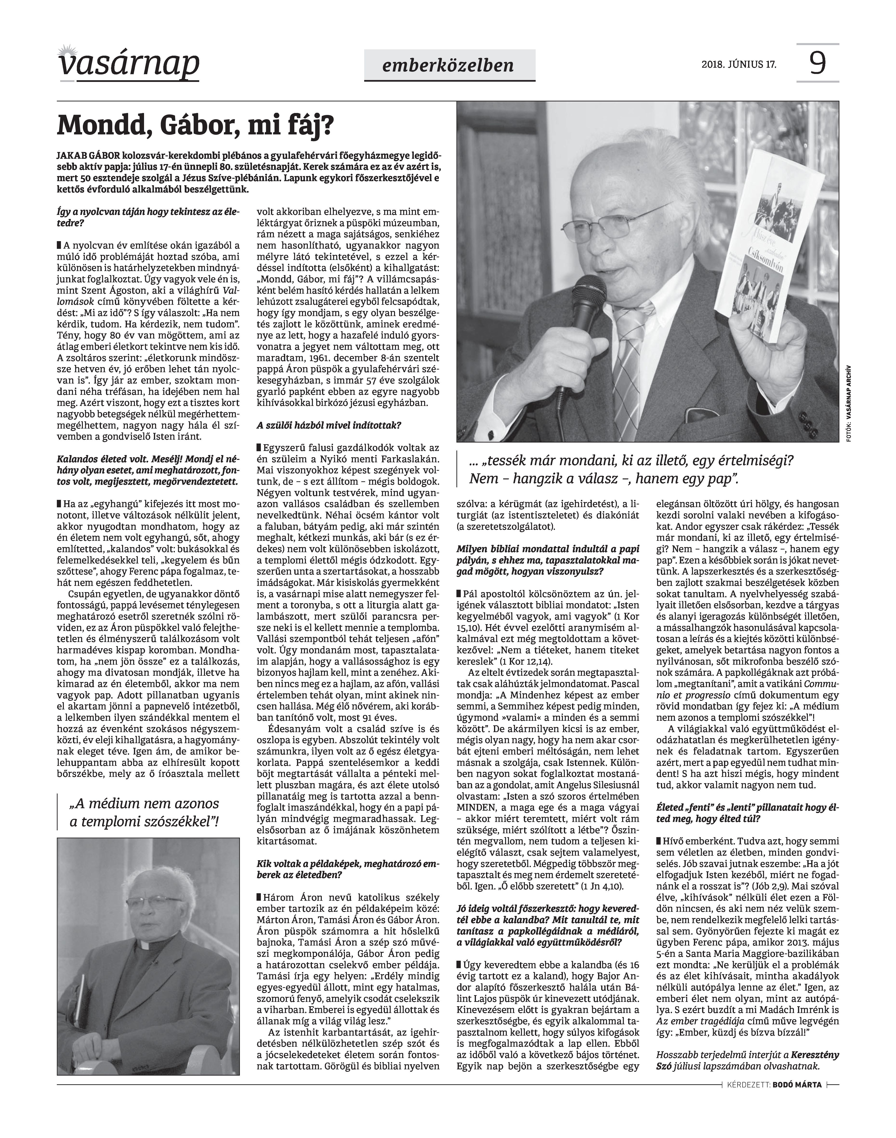 VASÁRNAP - 2018. JÚNIUS 17. A Vasárnap Katolikus Hetilap 2018. június 17. / XXVIII. évf. / 24. számának digitális változata. 1 / 12 2 & 3 / 12 4 & 5 / 12 6 & 7 / 12 8 & 9 / 12 10 & 11 / 12 12 / 12