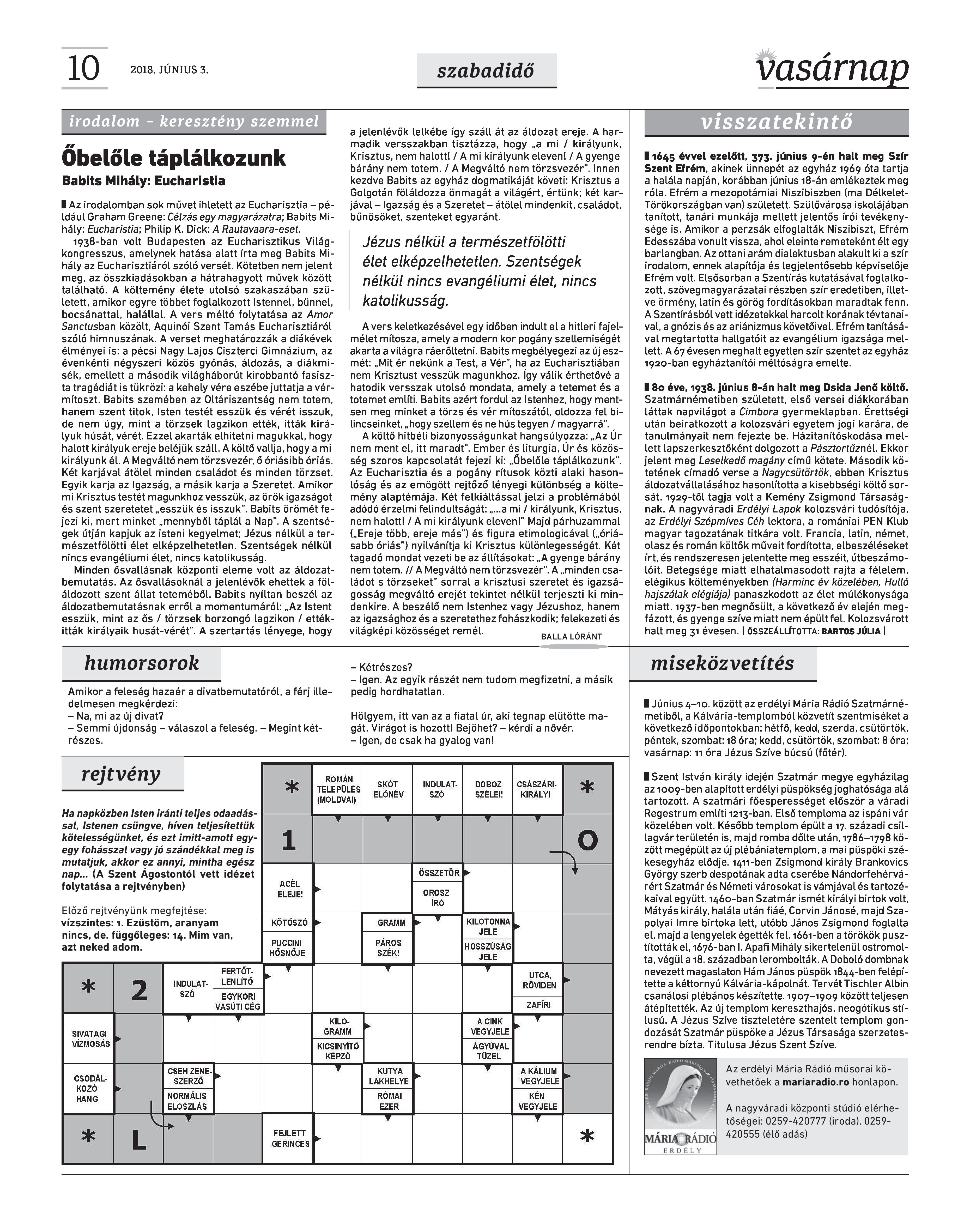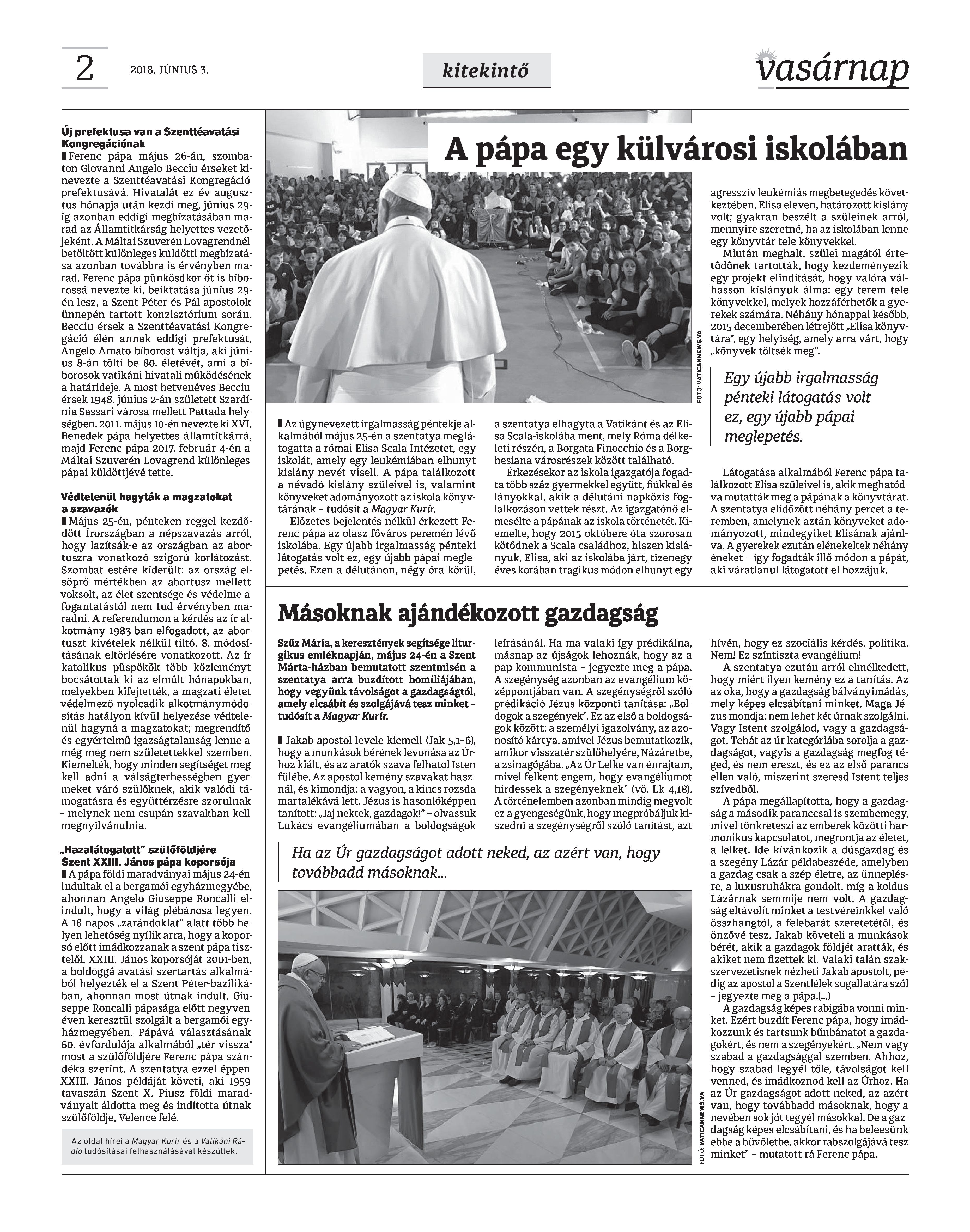 VASÁRNAP - 2018. JÚNIUS 3. A Vasárnap Katolikus Hetilap 2018. június 3. / XXVIII. évf. / 22. számának digitális változata. 1 / 12 2 & 3 / 12 4 & 5 / 12 6 & 7 / 12 8 & 9 / 12 10 & 11 / 12 12 / 12