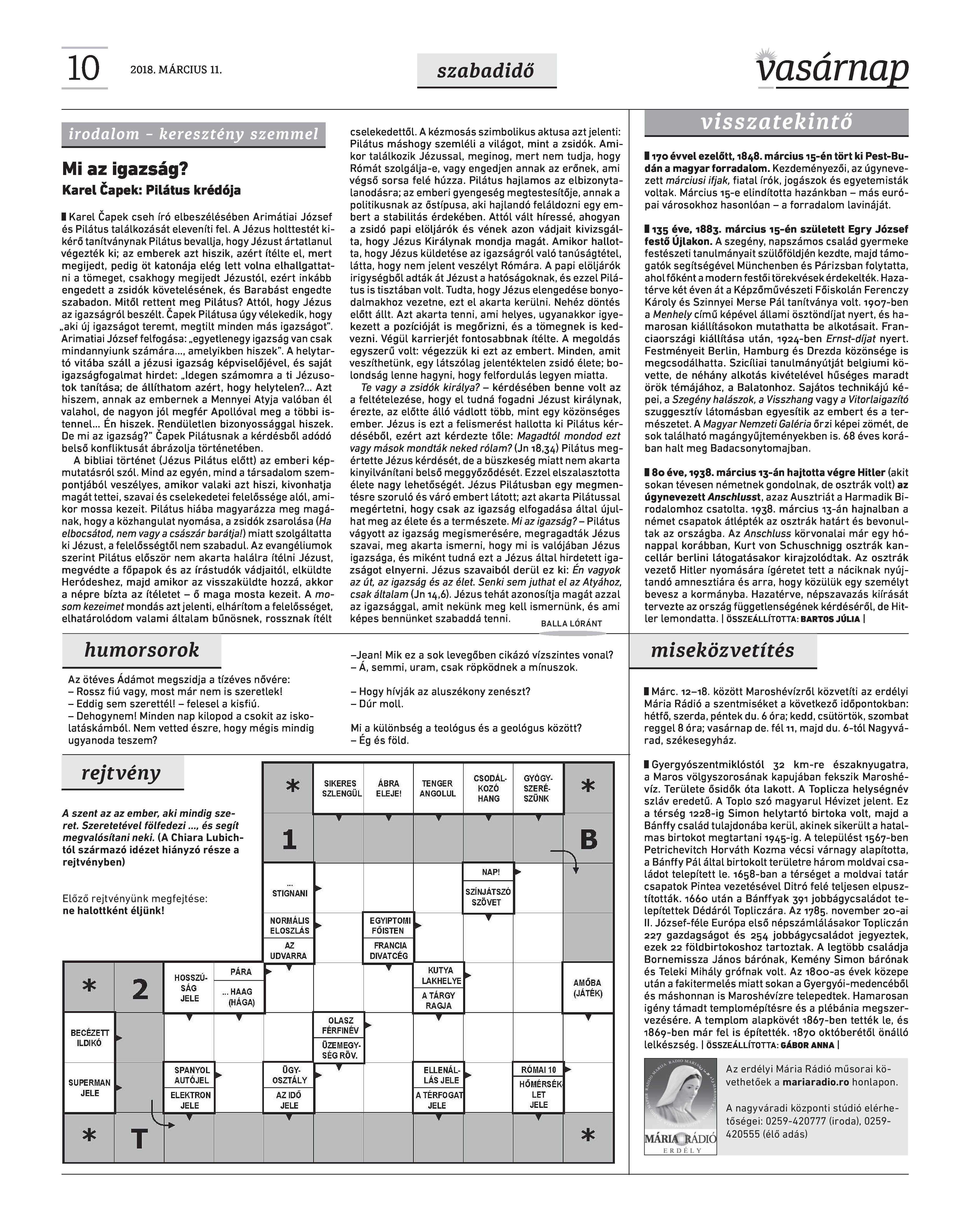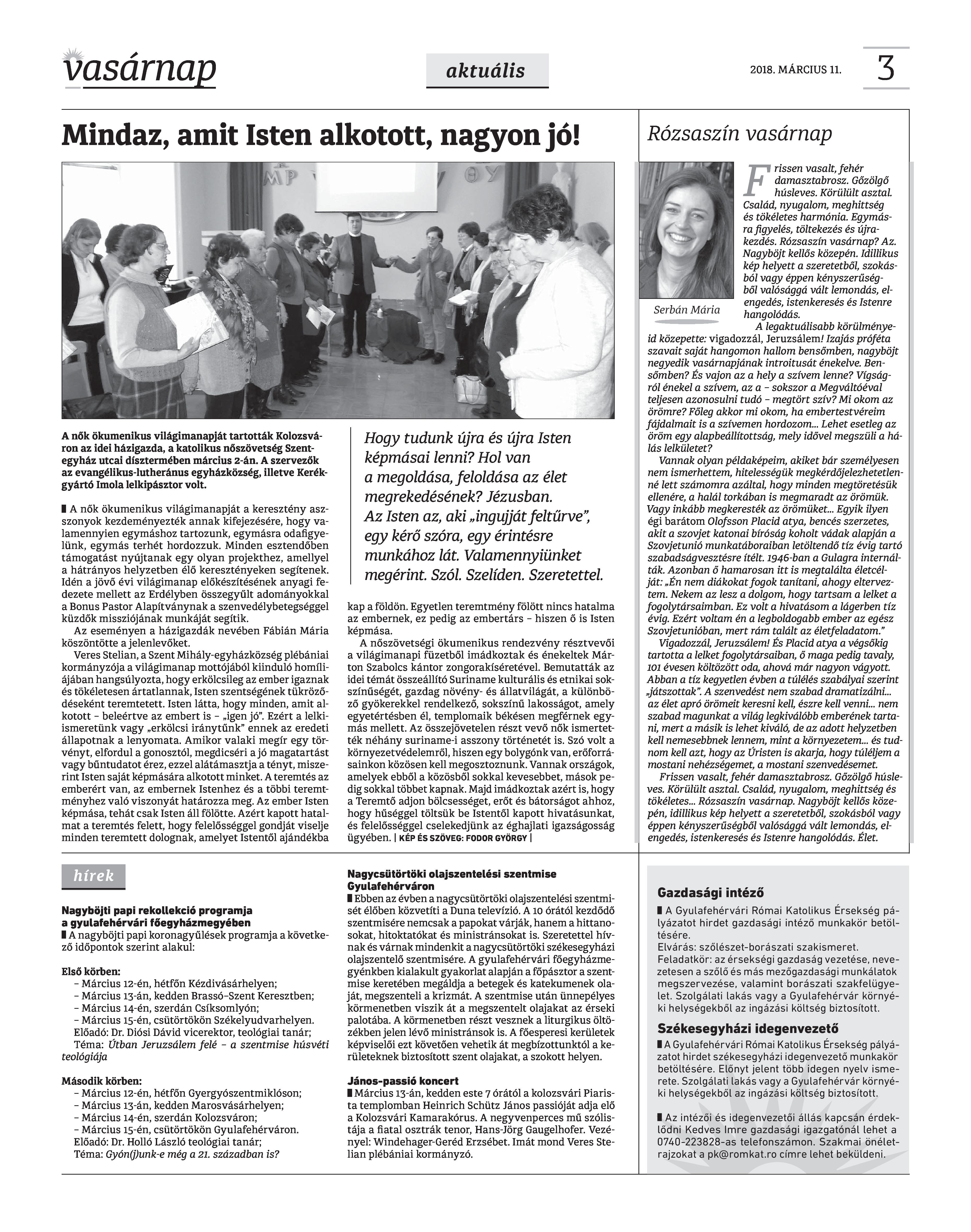 VASÁRNAP - 2018. MÁRCIUS 11. A Vasárnap Katolikus Hetilap 2018. március 11. / XXVIII. évf. / 10. számának digitális változata. 1 / 12 2 & 3 / 12 4 & 5 / 12 6 & 7 / 12 8 & 9 / 12 10 & 11 / 12 12 / 12