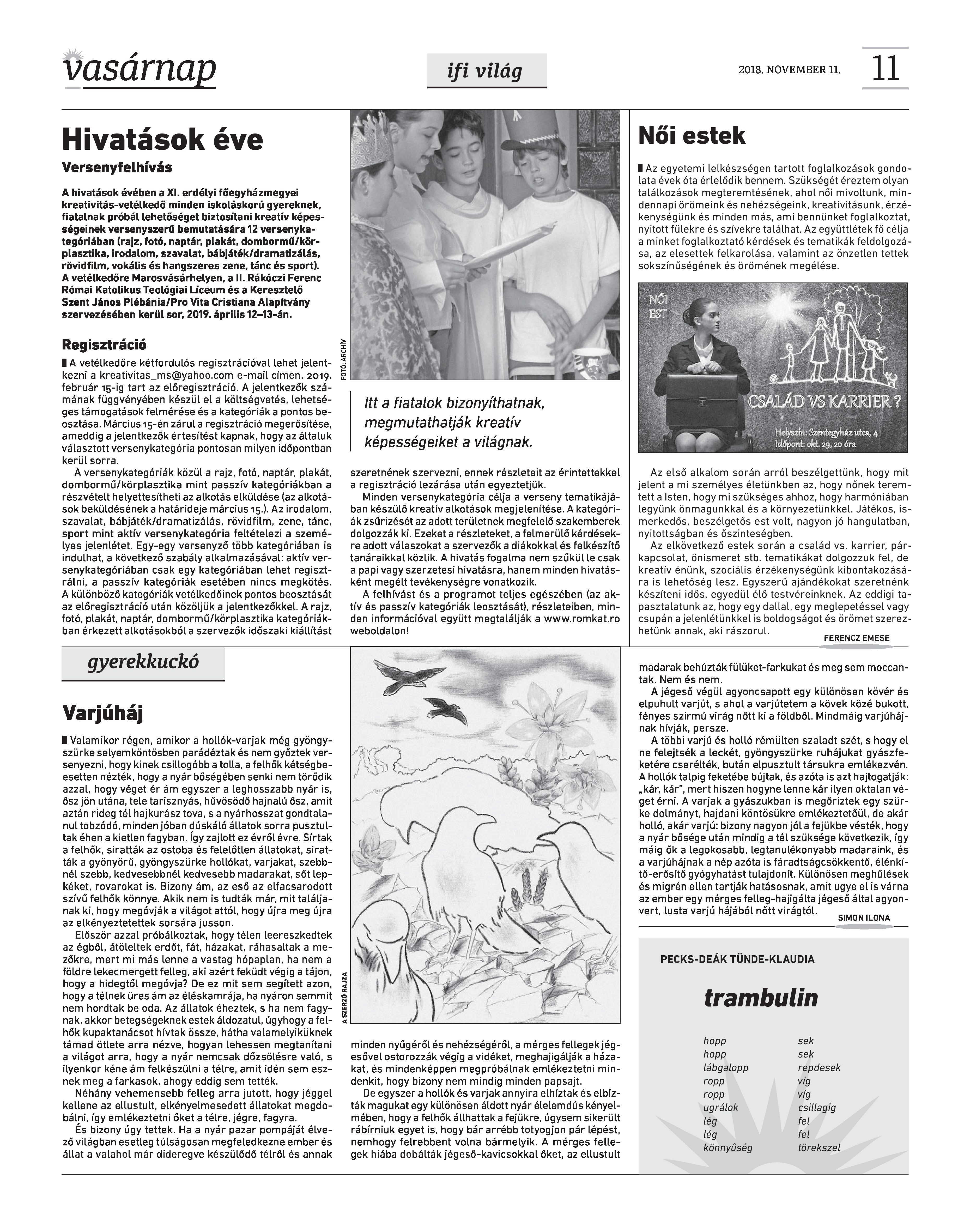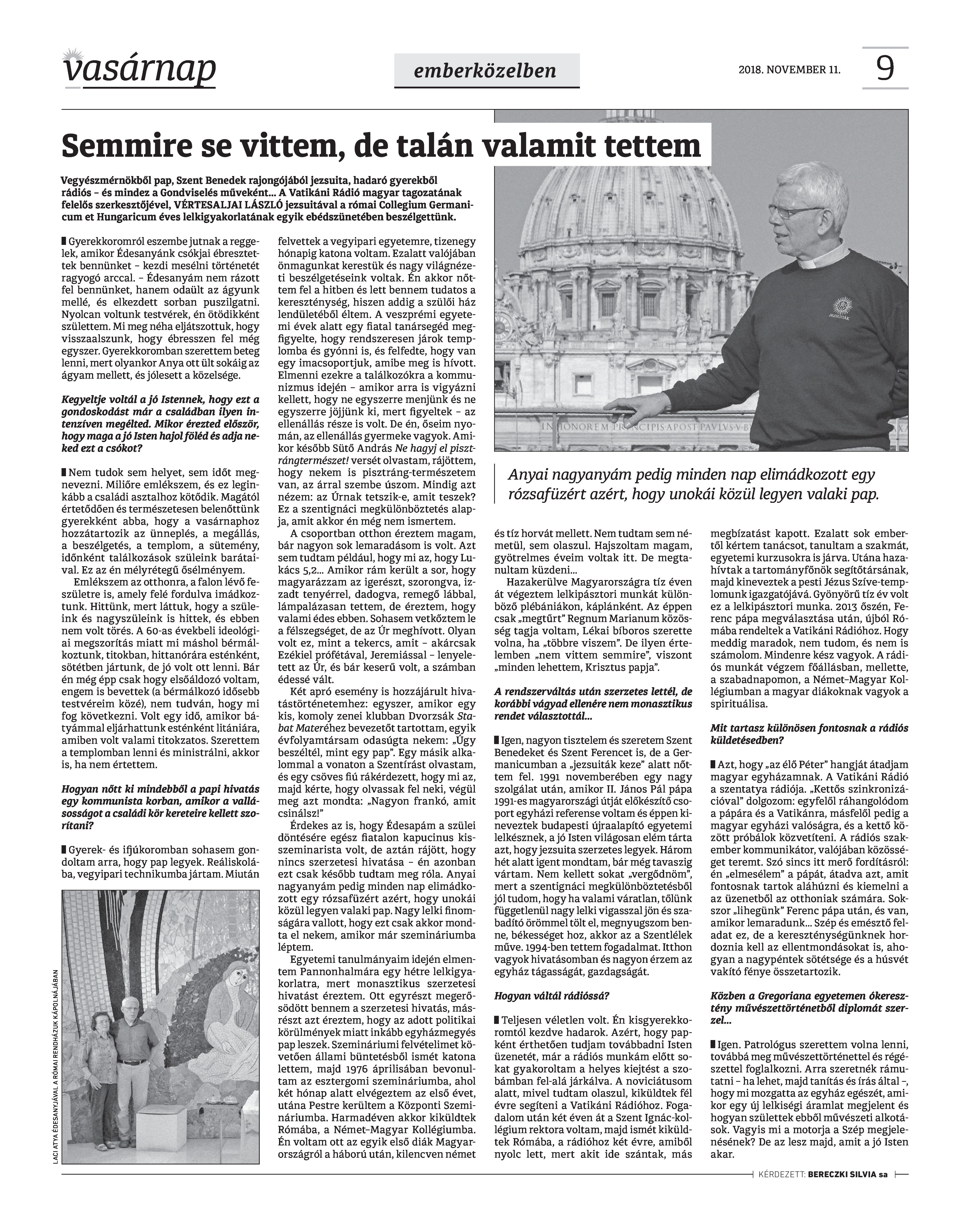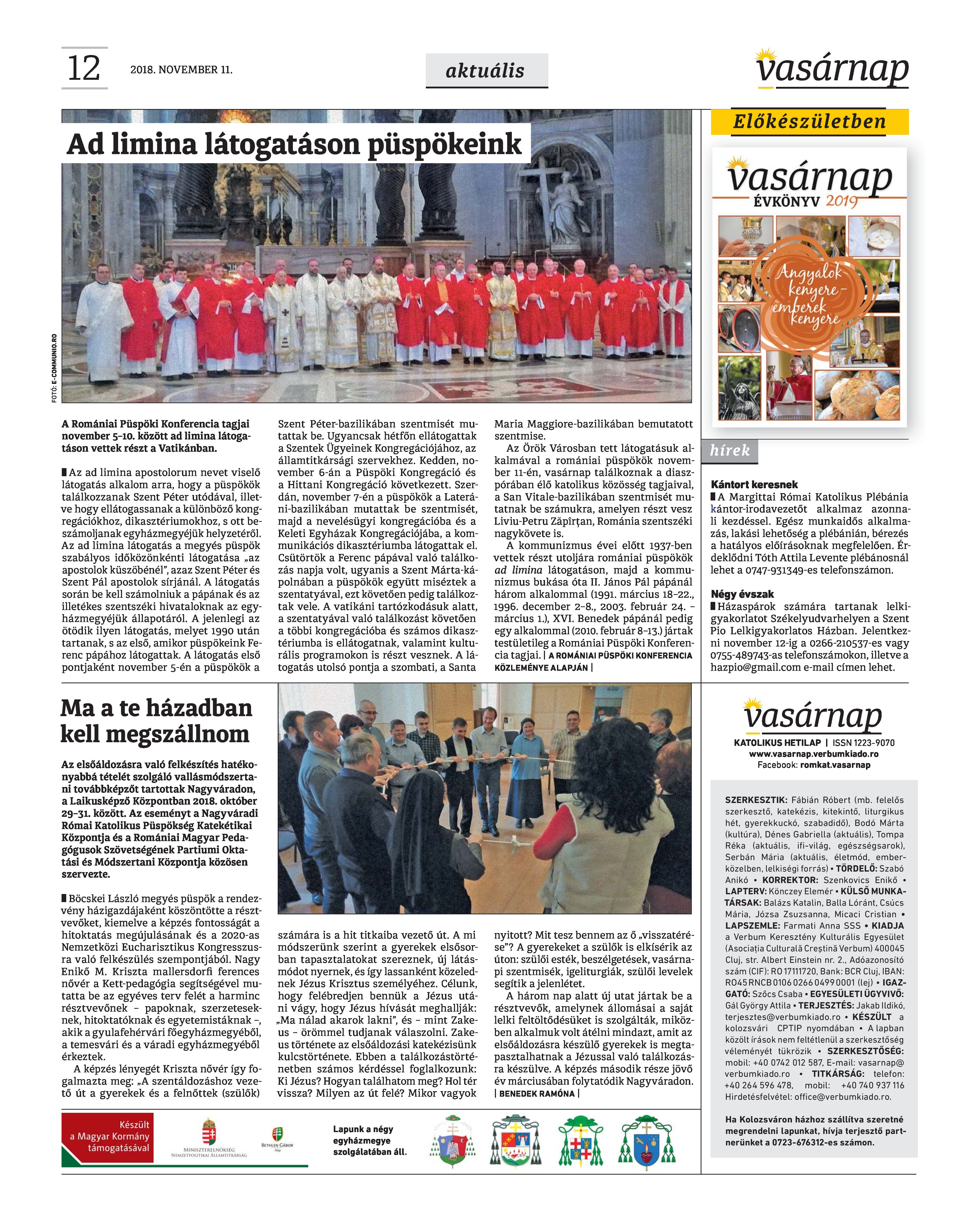 VASÁRNAP - 2018. NOVEMBER 11. A Vasárnap Katolikus Hetilap 2018. november 11. / XXVIII. évf. / 45. számának digitális változata. 1 / 12 2 & 3 / 12 4 & 5 / 12 6 & 7 / 12 8 & 9 / 12 10 & 11 / 12 12 / 12
