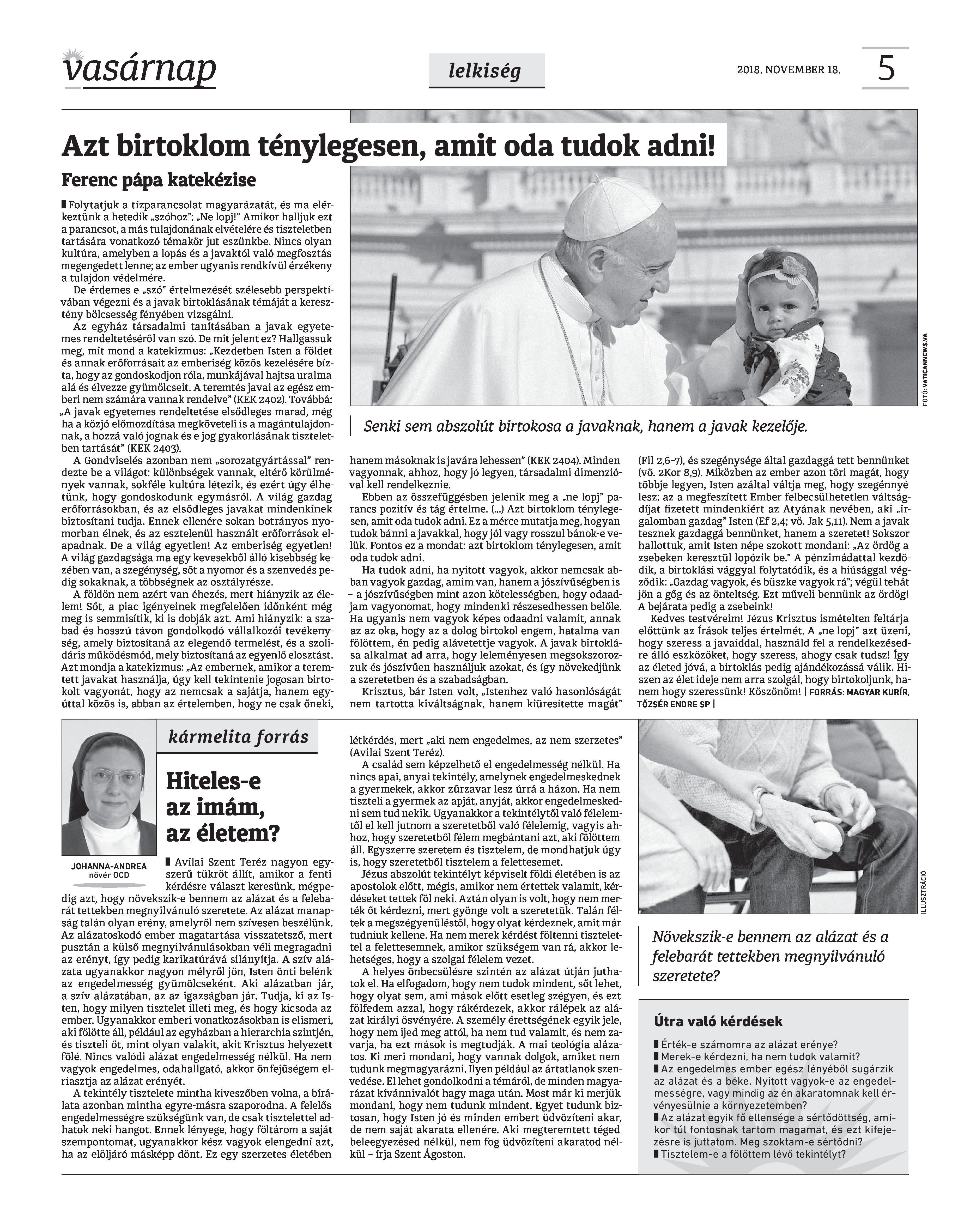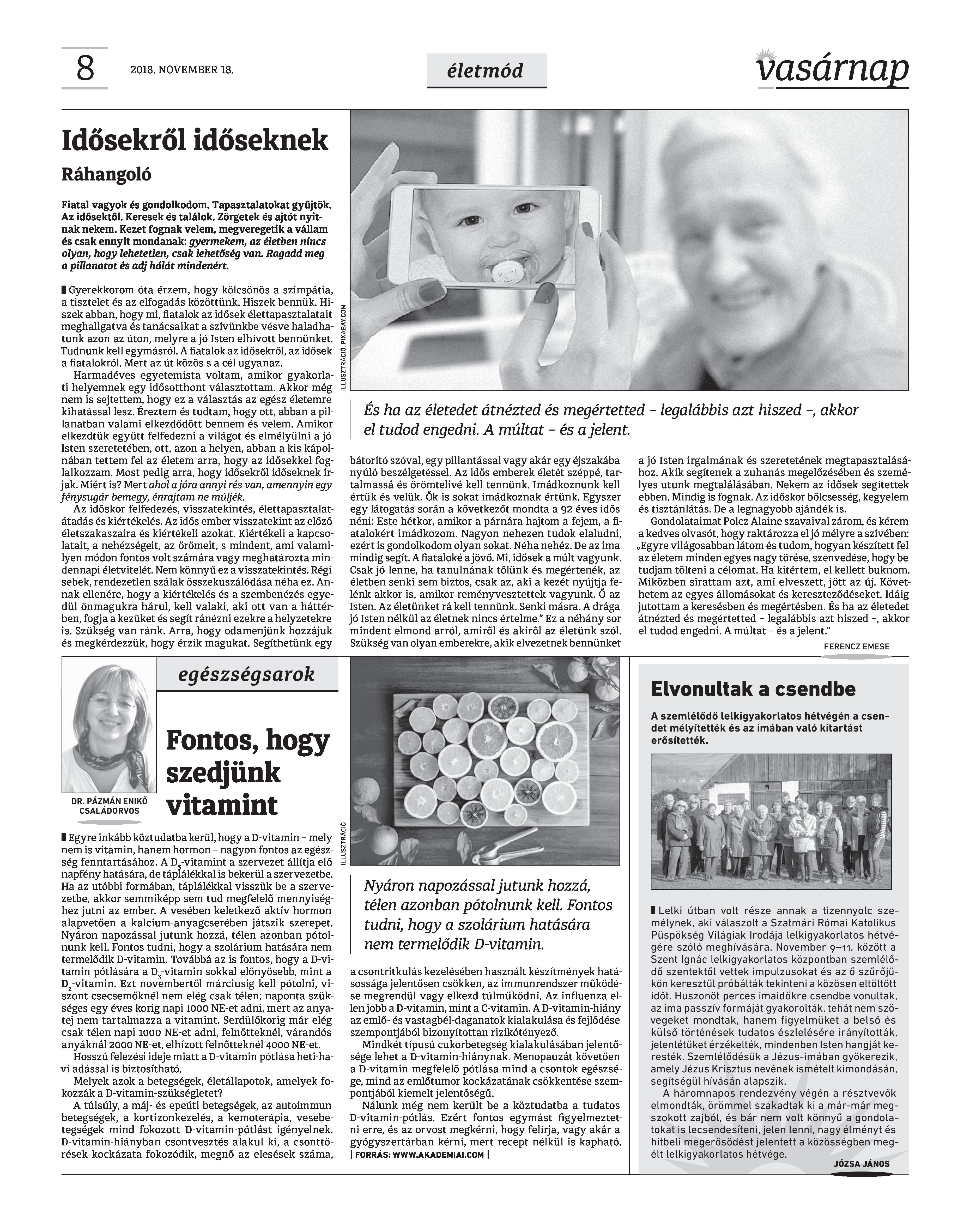 VASÁRNAP - 2018. november 18. A Vasárnap Katolikus Hetilap 2018. november 18. / XXVIII. évf. / 46. számának digitális változata. 1 / 12 2 & 3 / 12 4 & 5 / 12 6 & 7 / 12 8 & 9 / 12 10 & 11 / 12 12 / 12