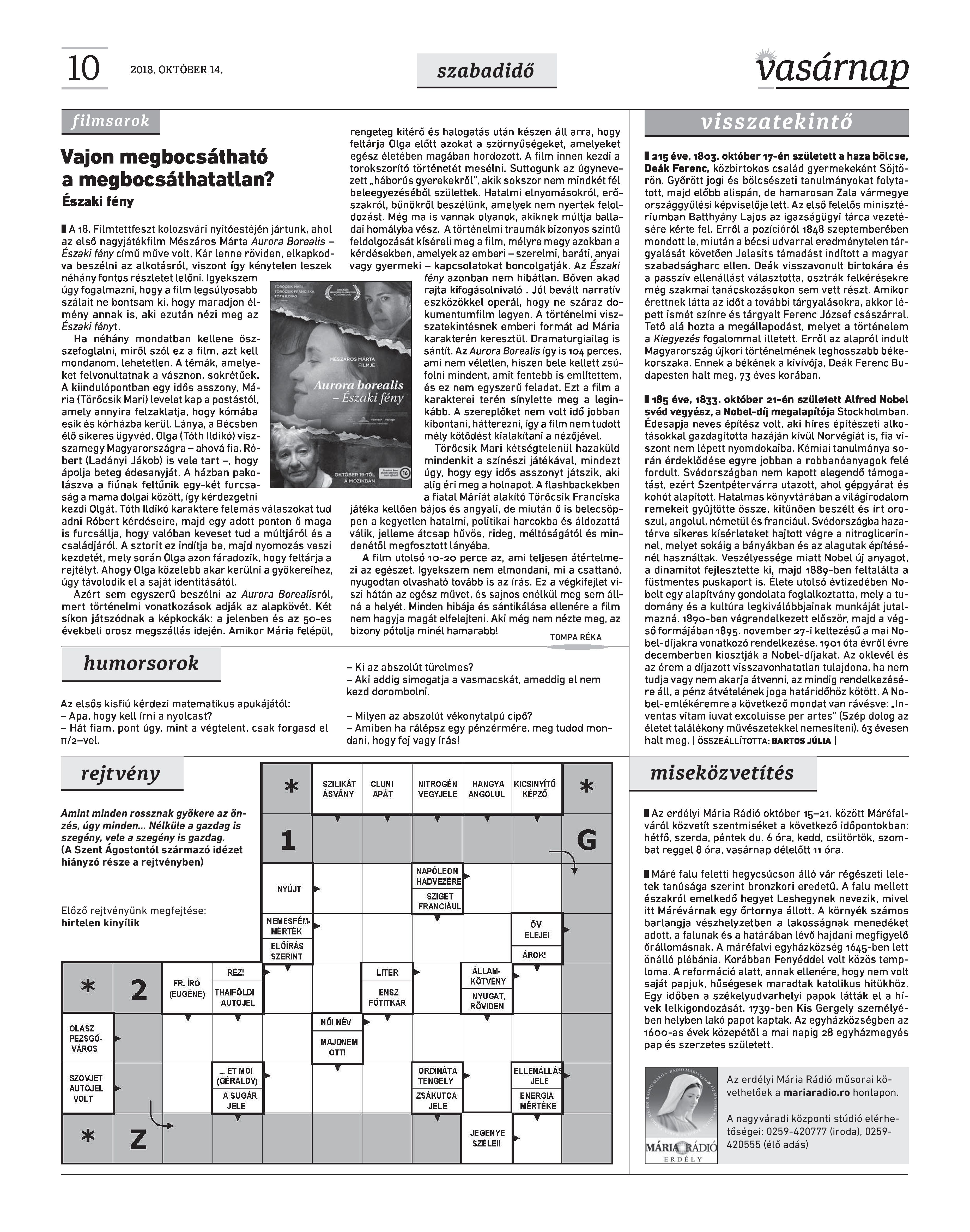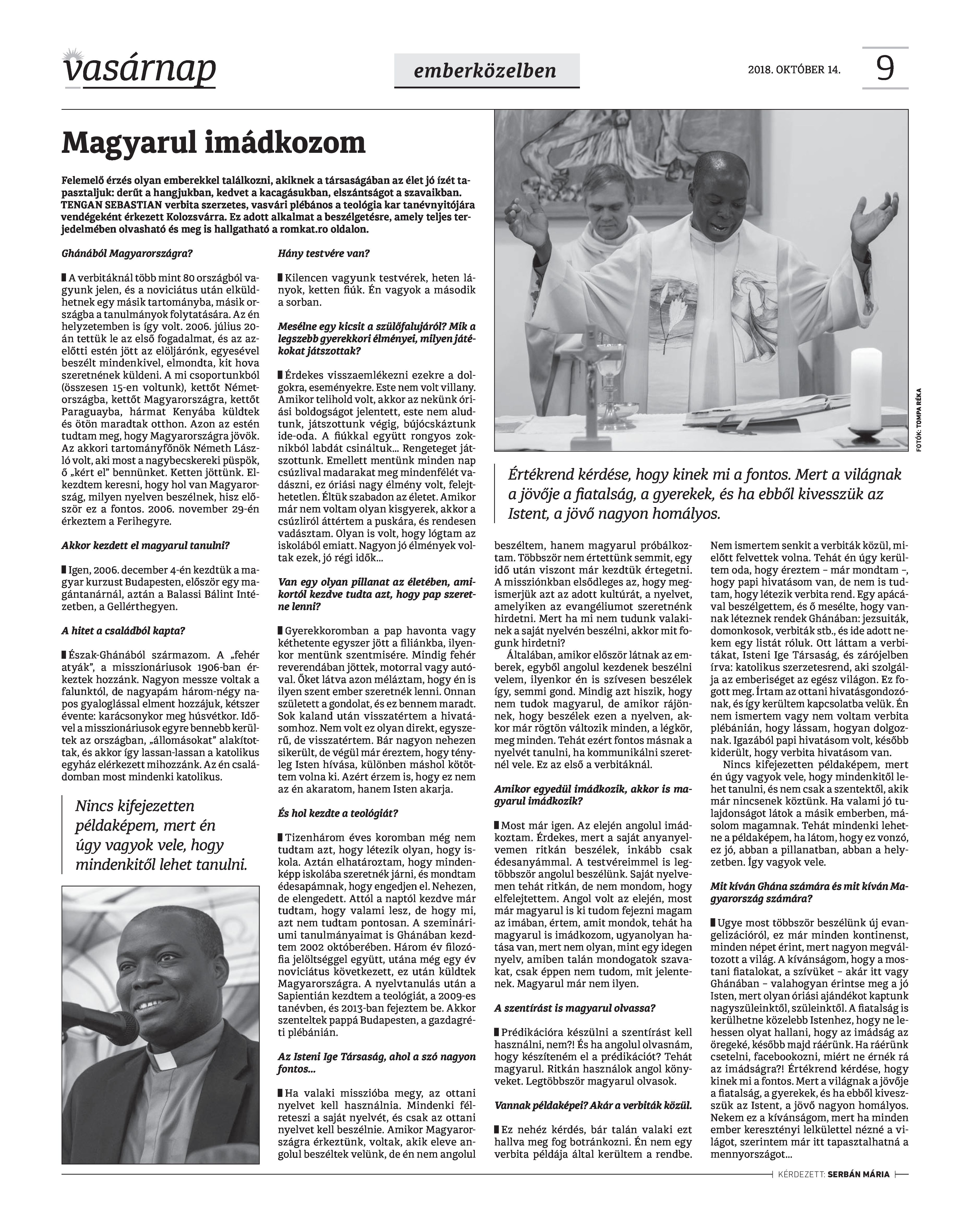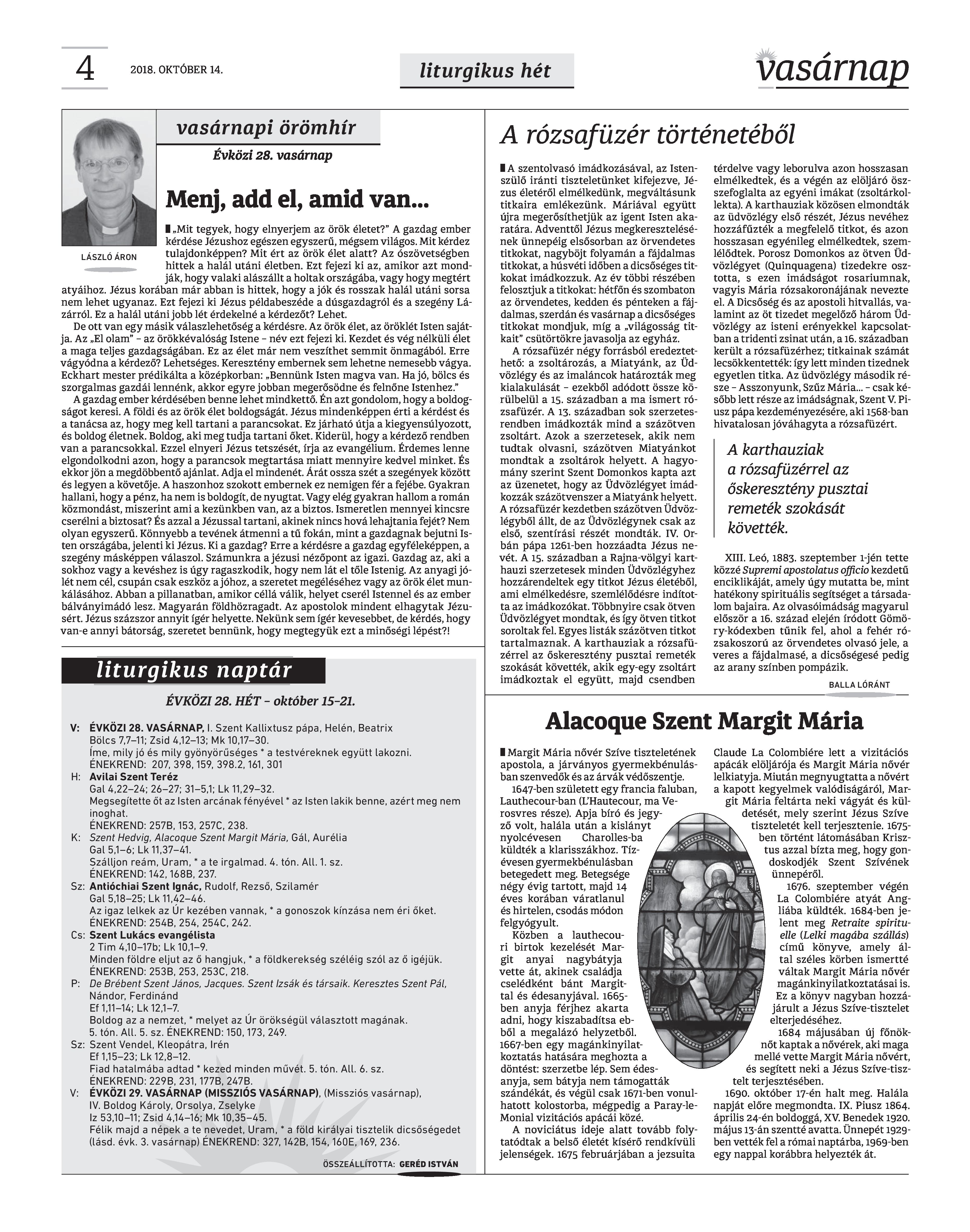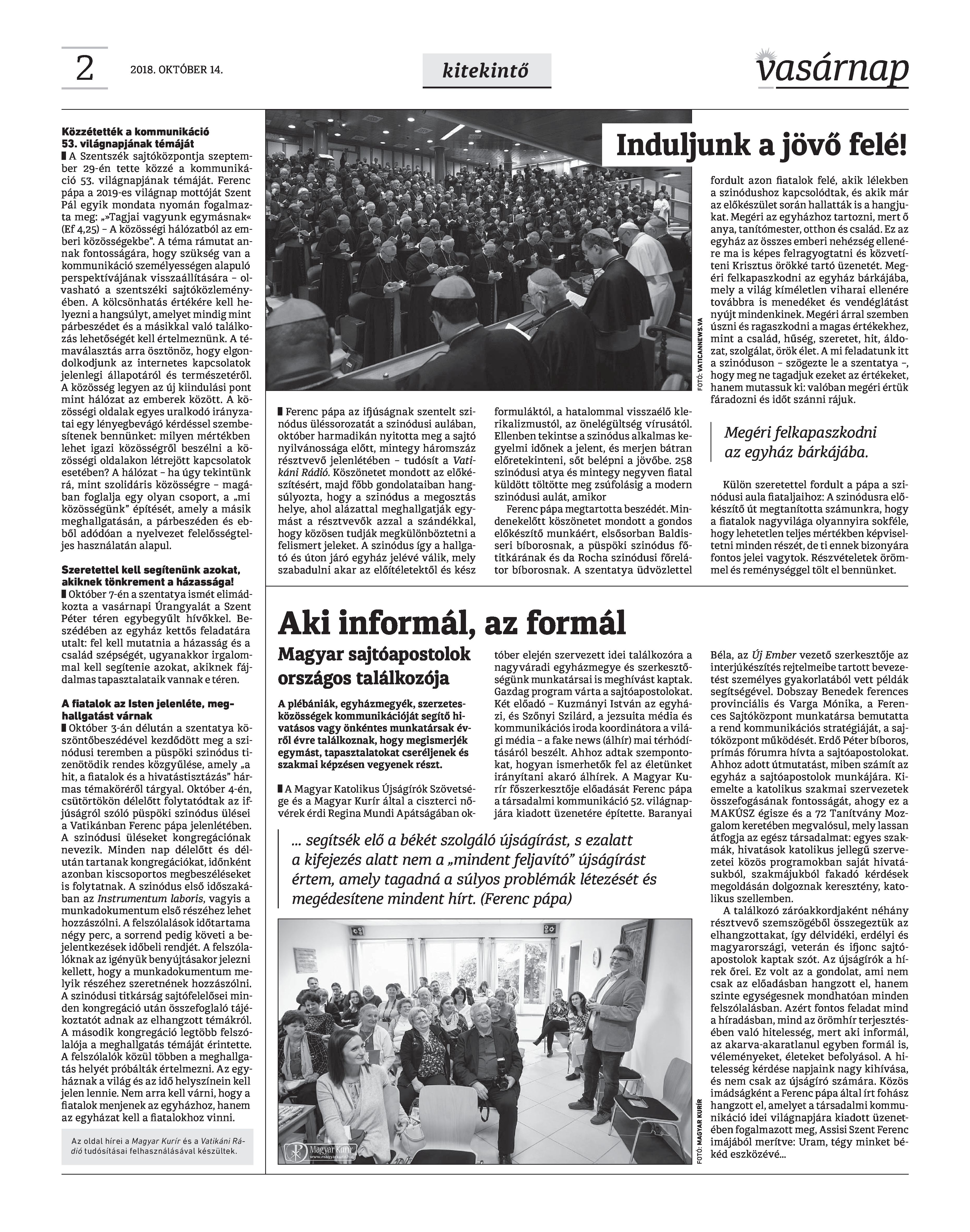VASÁRNAP - 2018. OKTÓBER 14. A Vasárnap Katolikus Hetilap 2018. október 14. / XXVIII. évf. / 41. számának digitális változata. 1 / 12 2 & 3 / 12 4 & 5 / 12 6 & 7 / 12 8 & 9 / 12 10 & 11 / 12 12 / 12