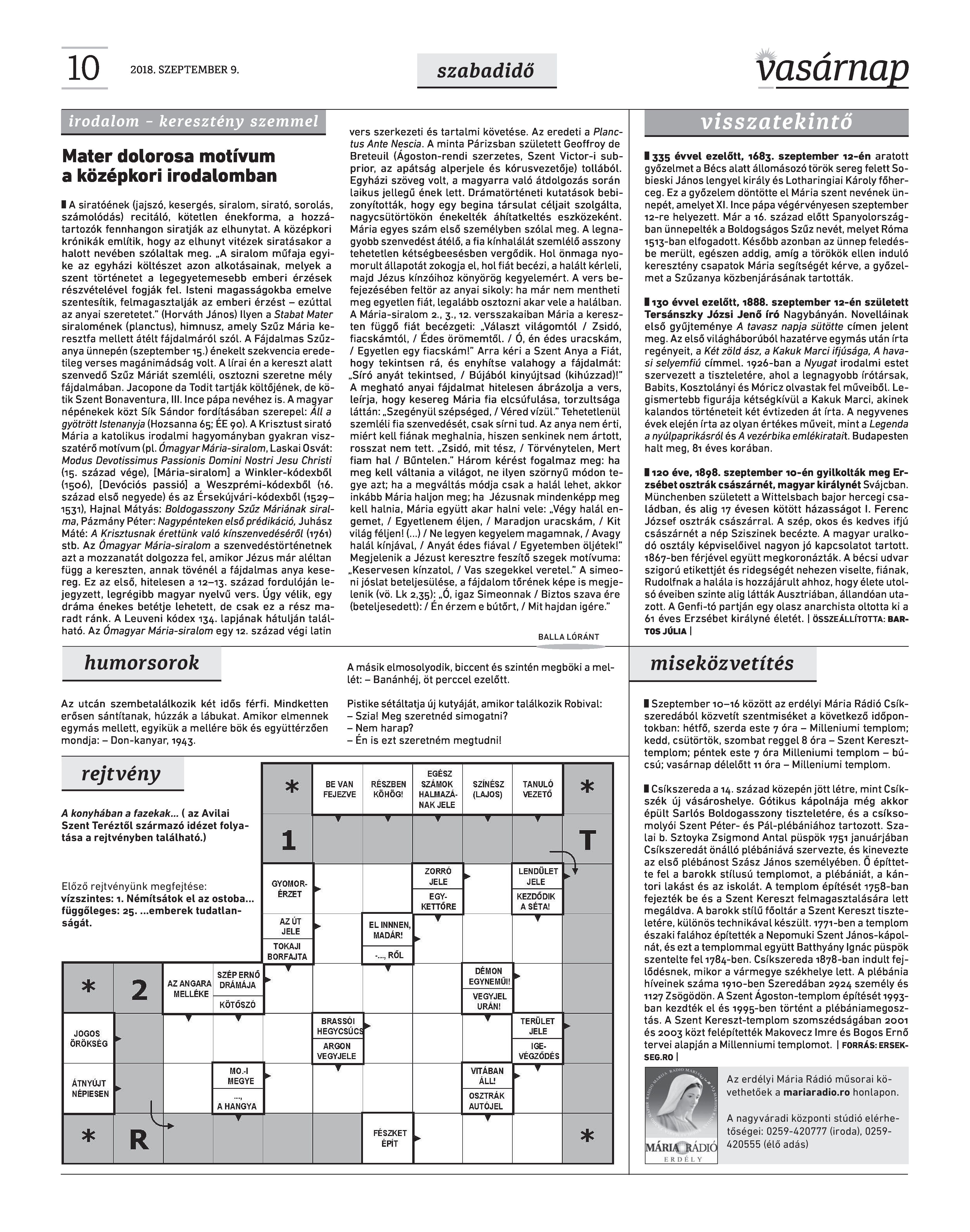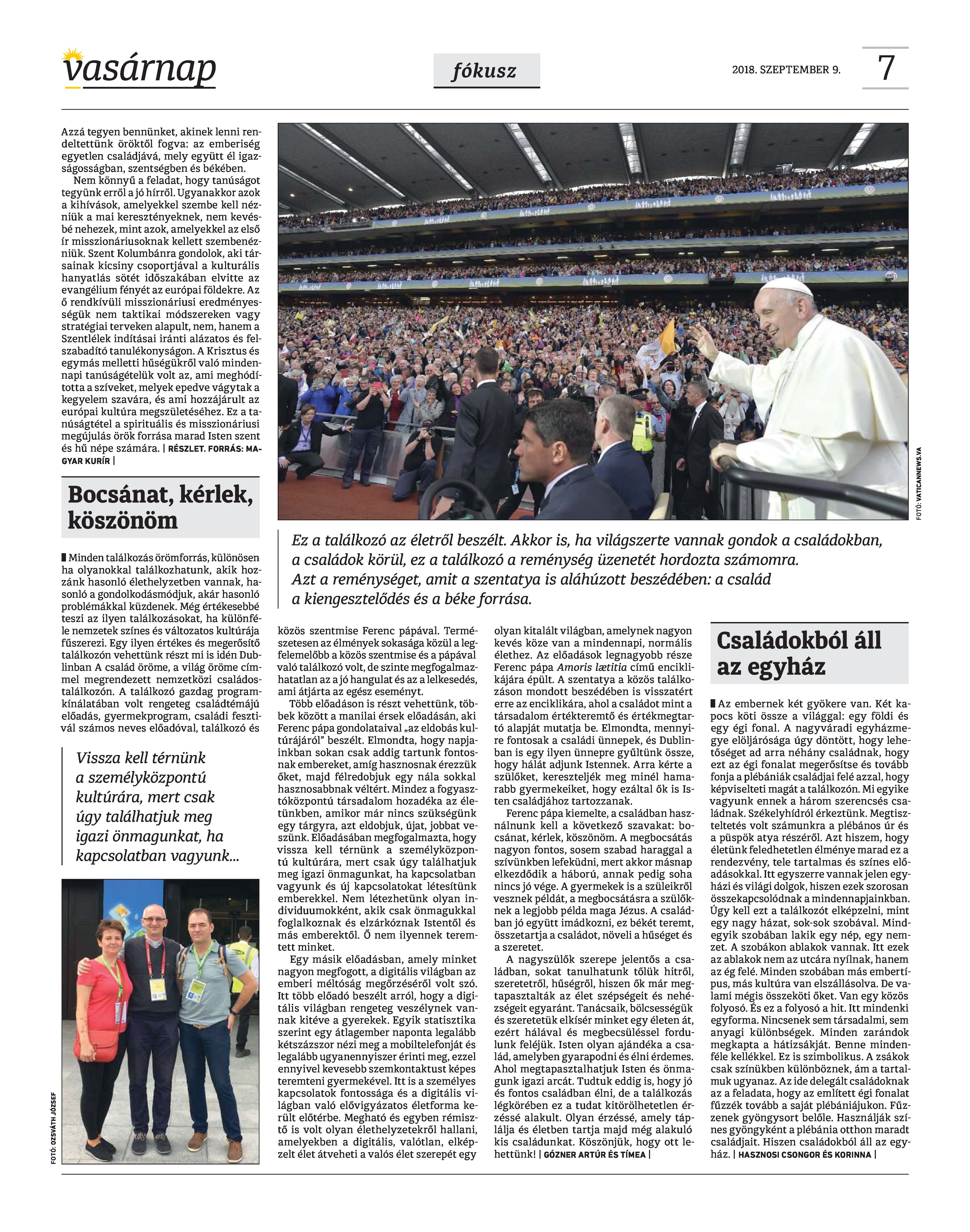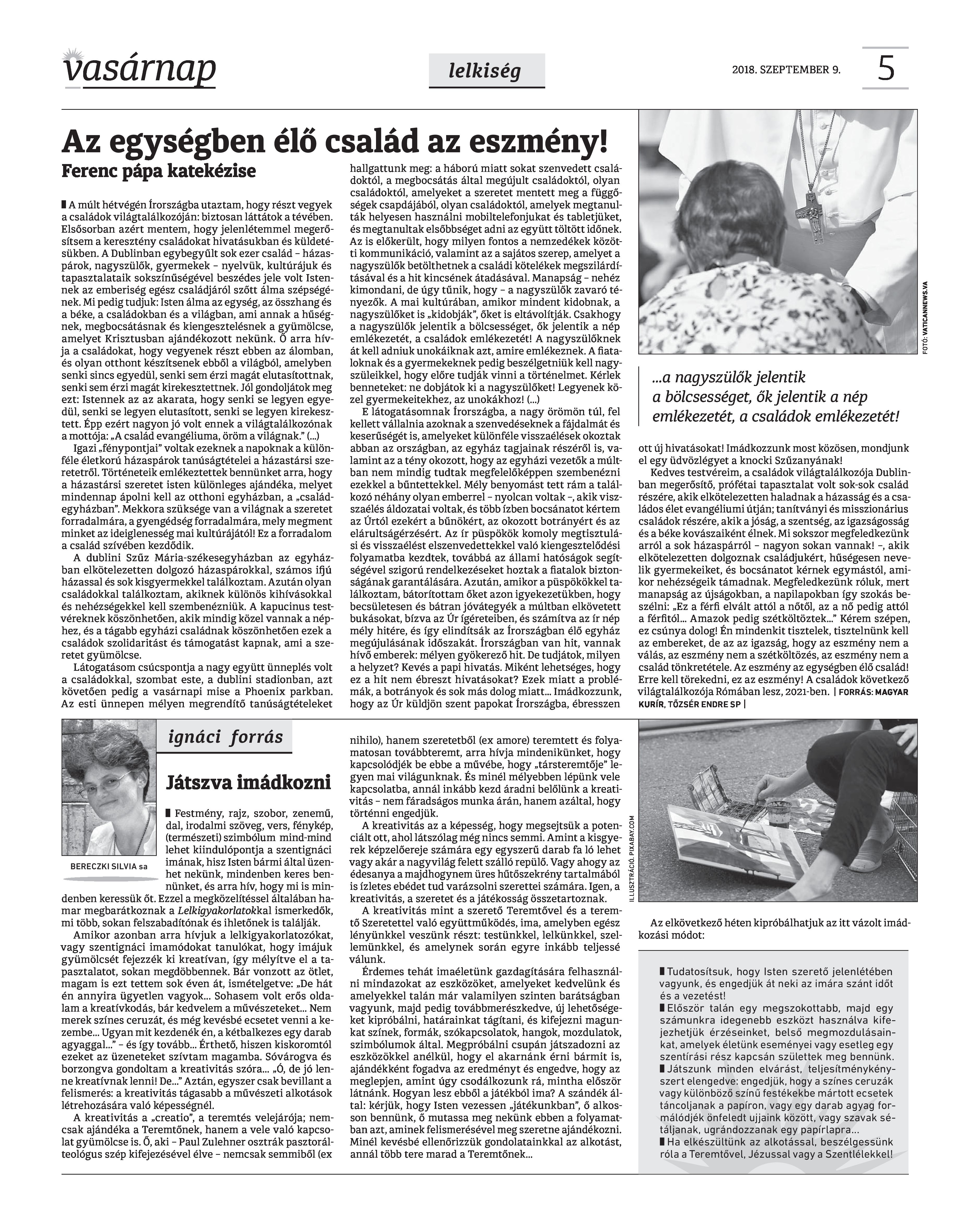 VASÁRNAP - 2018. SZEPTEMBER 9. A Vasárnap Katolikus Hetilap 2018. szeptember 9. / XXVIII. évf. / 36. számának digitális változata. 1 / 12 2 & 3 / 12 4 & 5 / 12 6 & 7 / 12 8 & 9 / 12 10 & 11 / 12 12 / 12