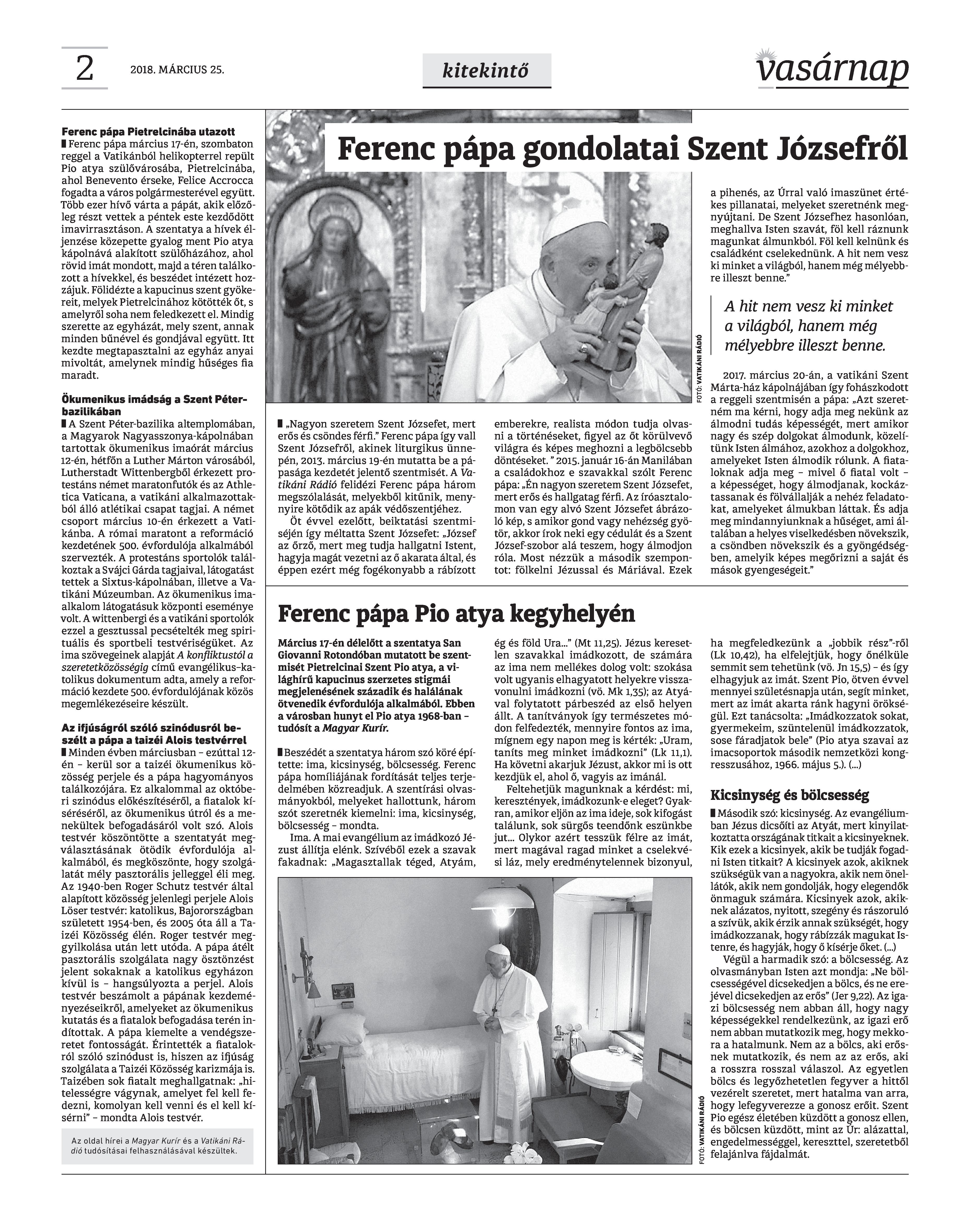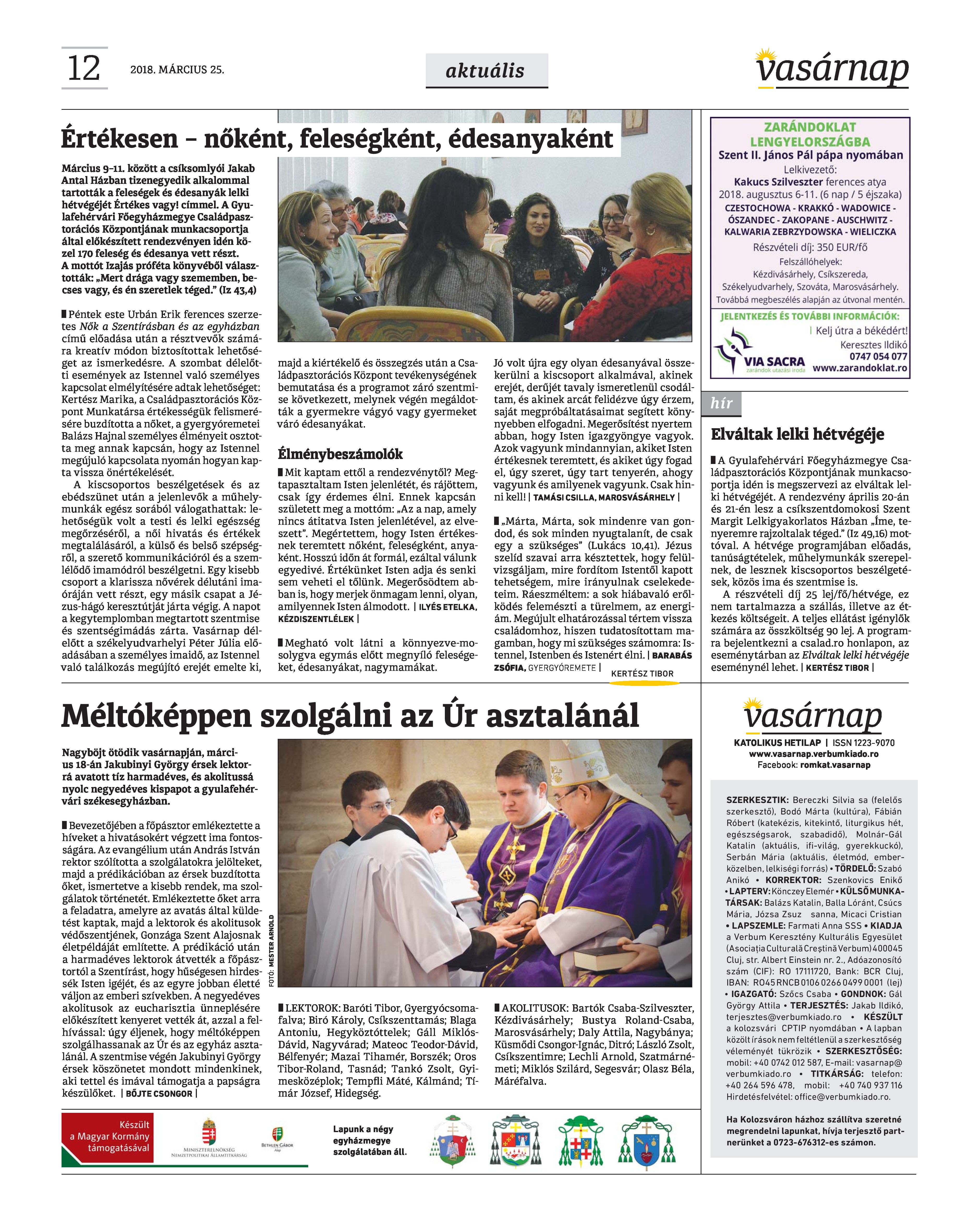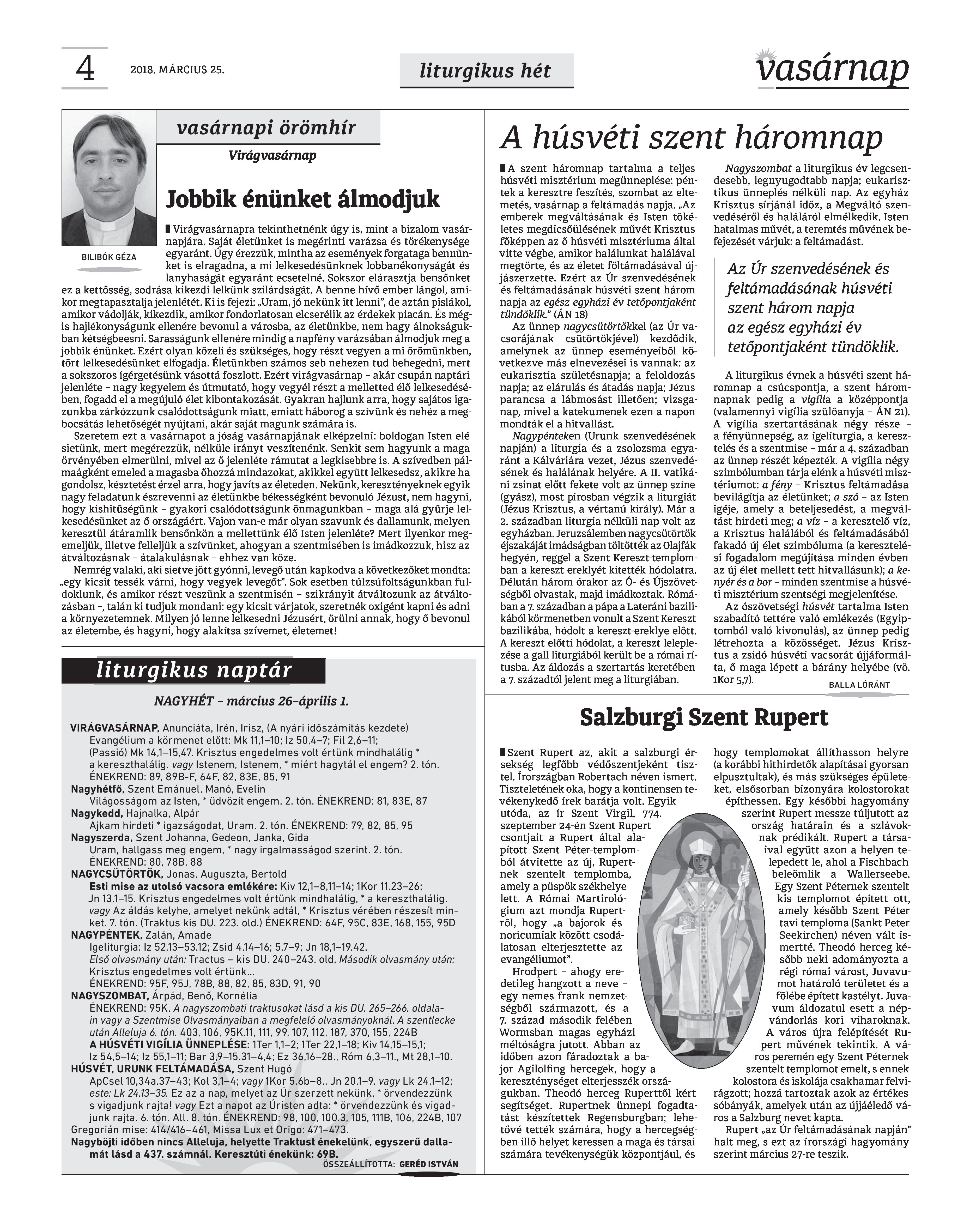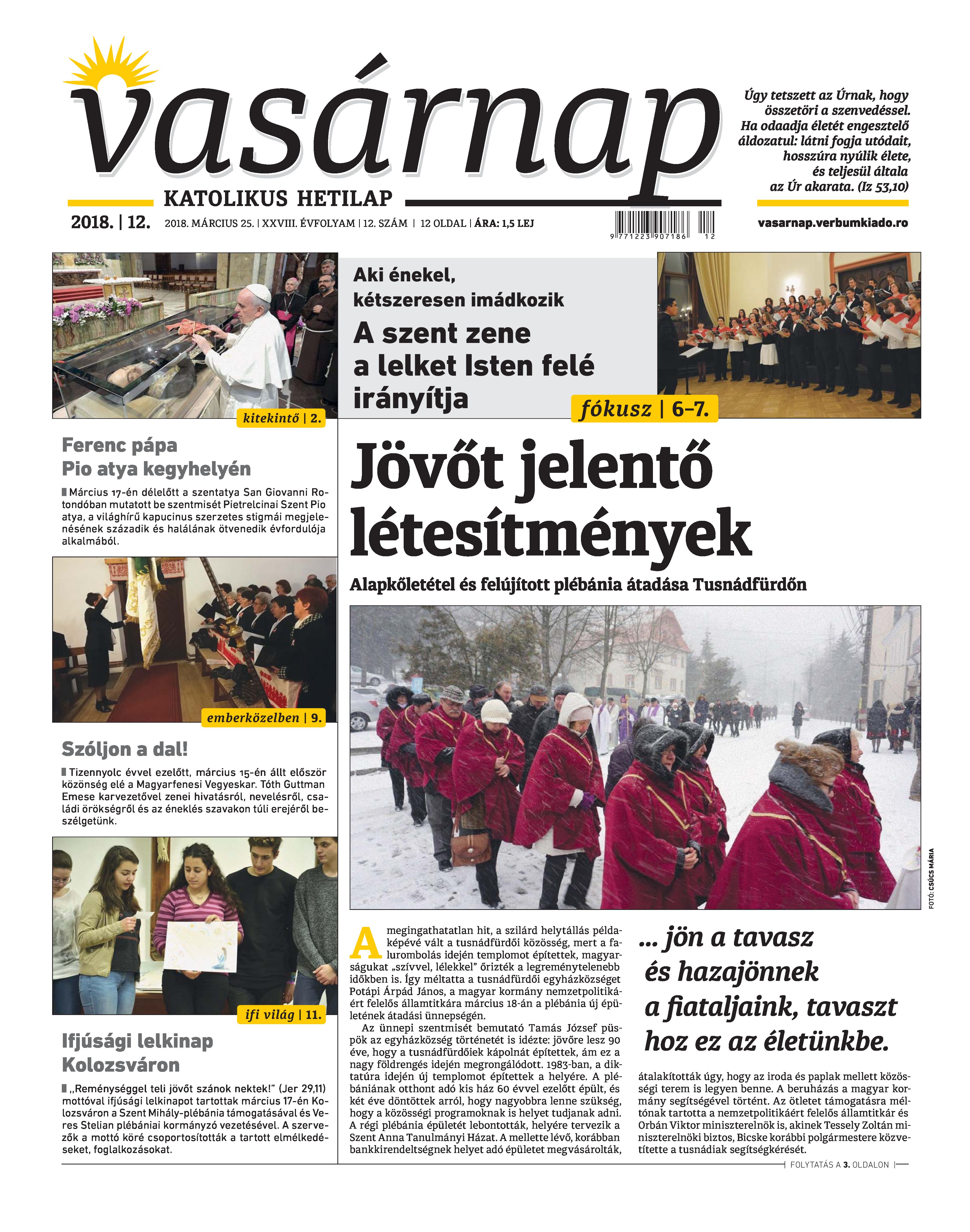 Vasárnap Katolikus Hetilap 2018. március 25. / XXVIII. évf. / 12. számának digitális változata.