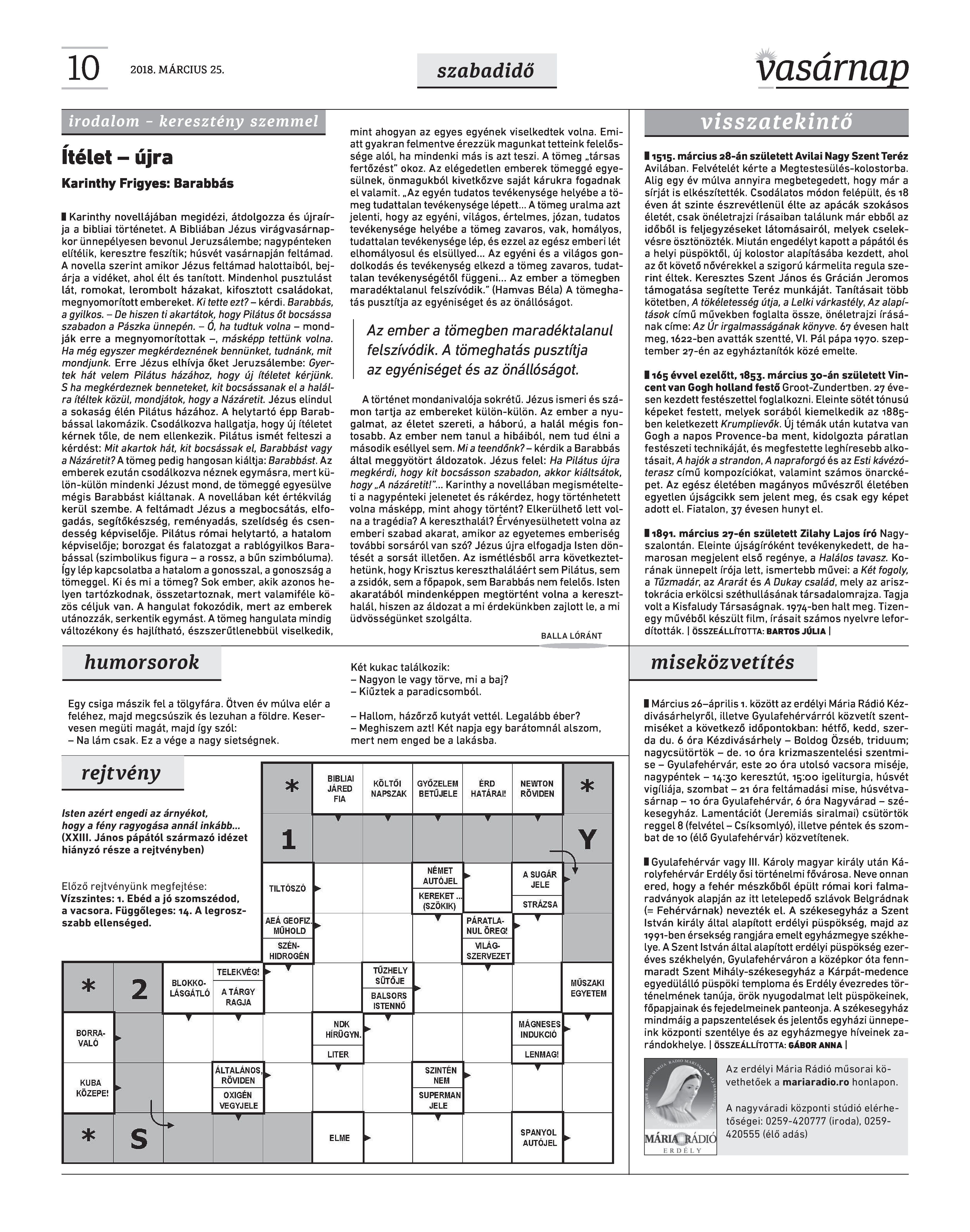 VASÁRNAP - 2018.MÁRCIUS 25.