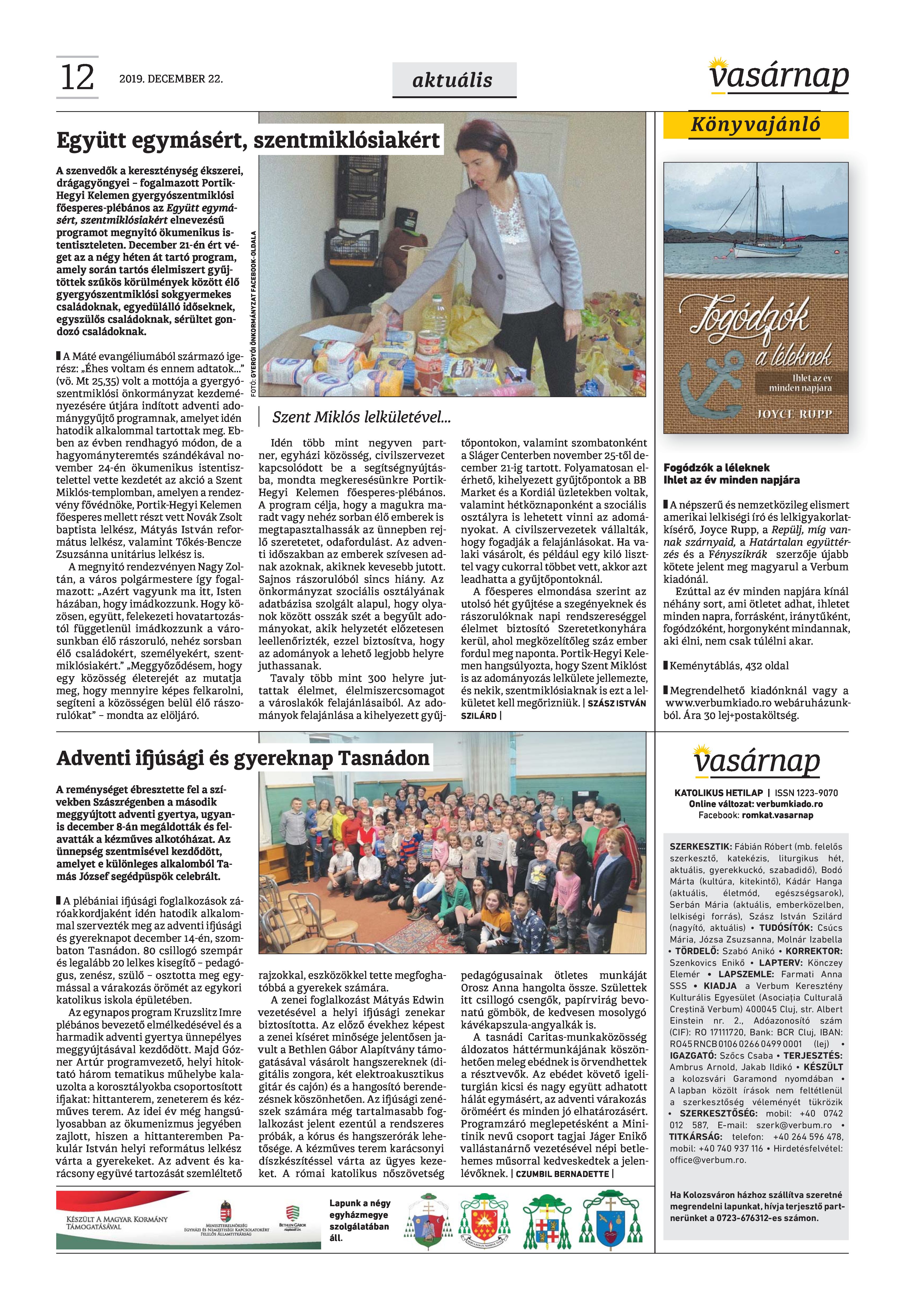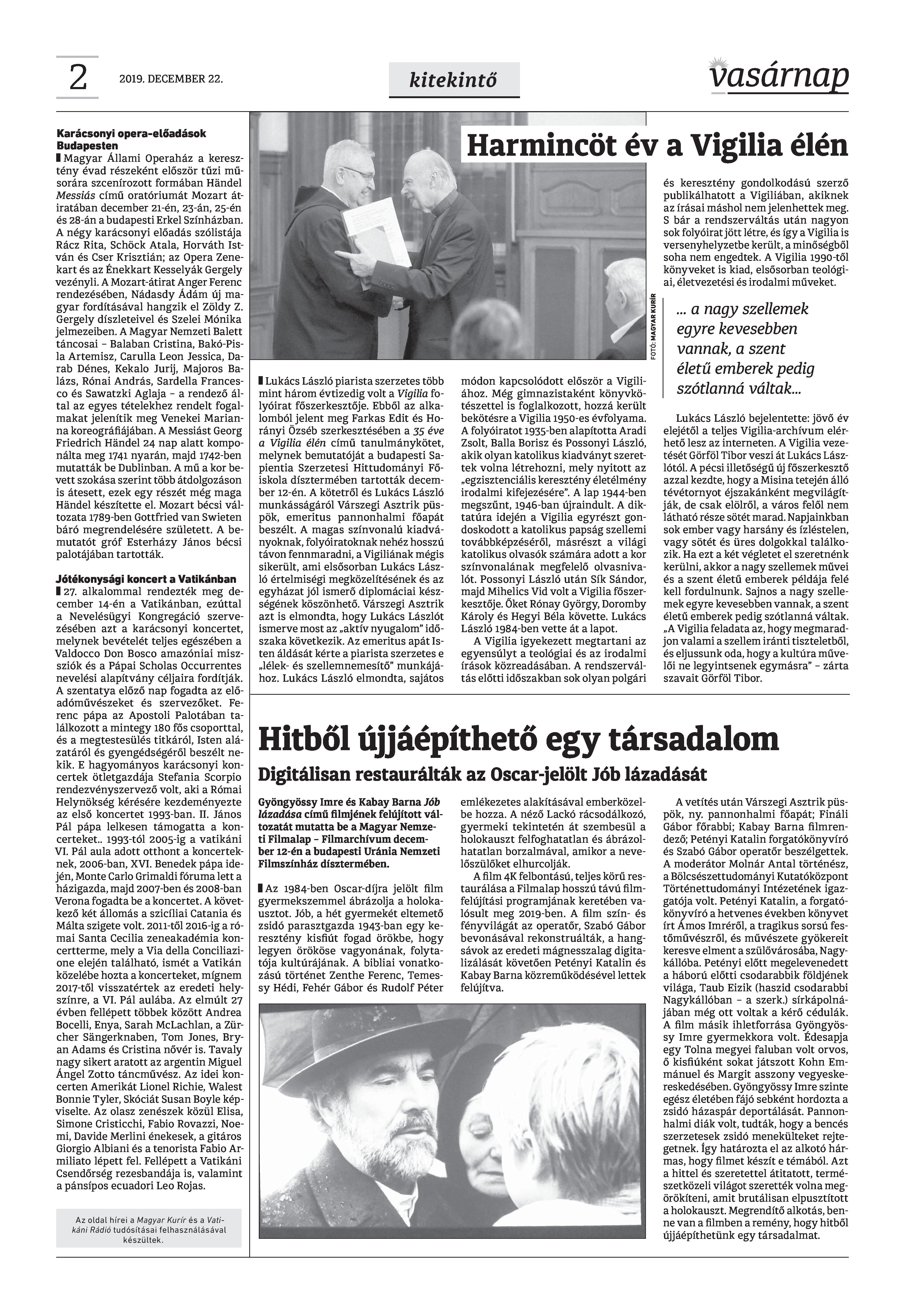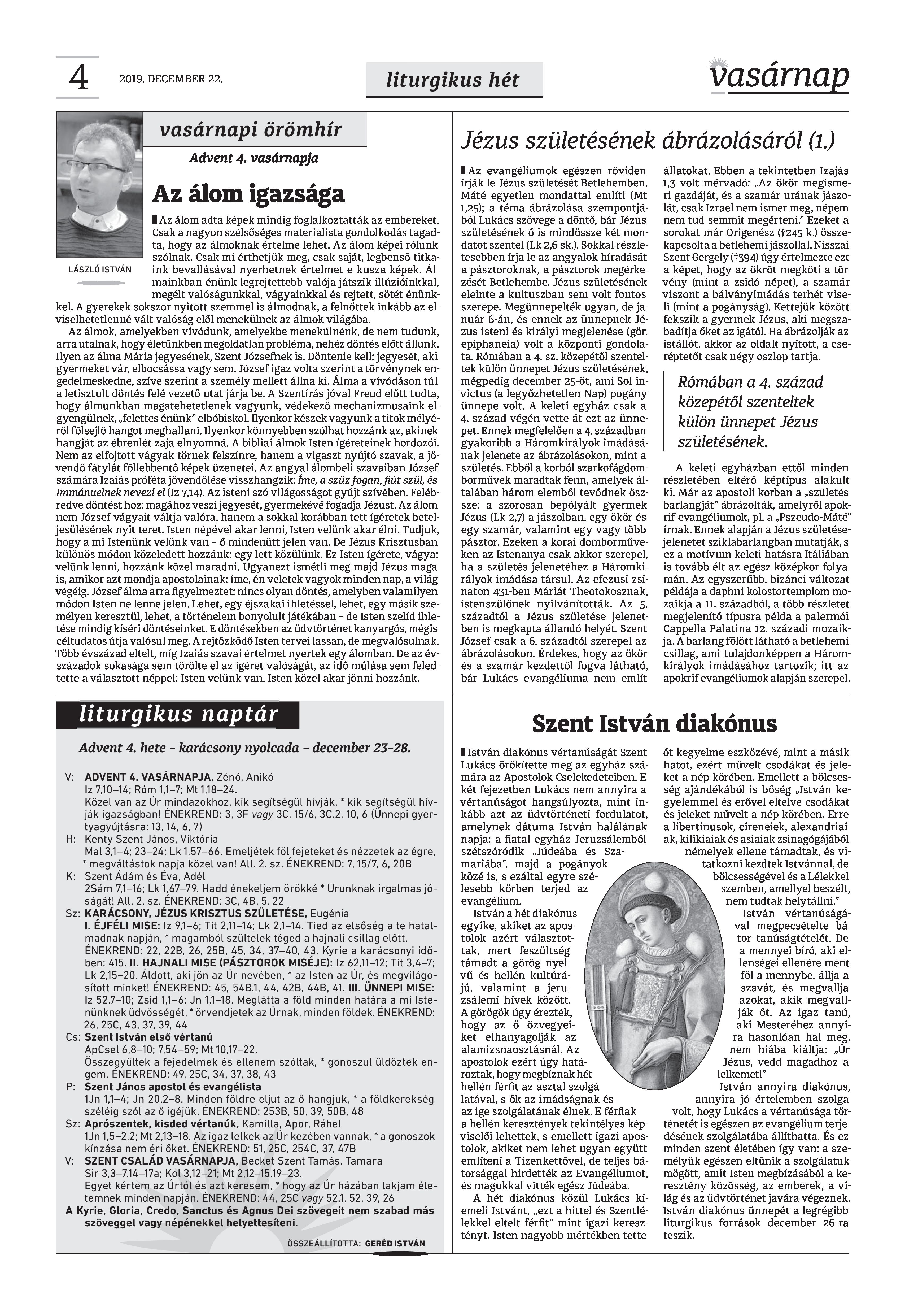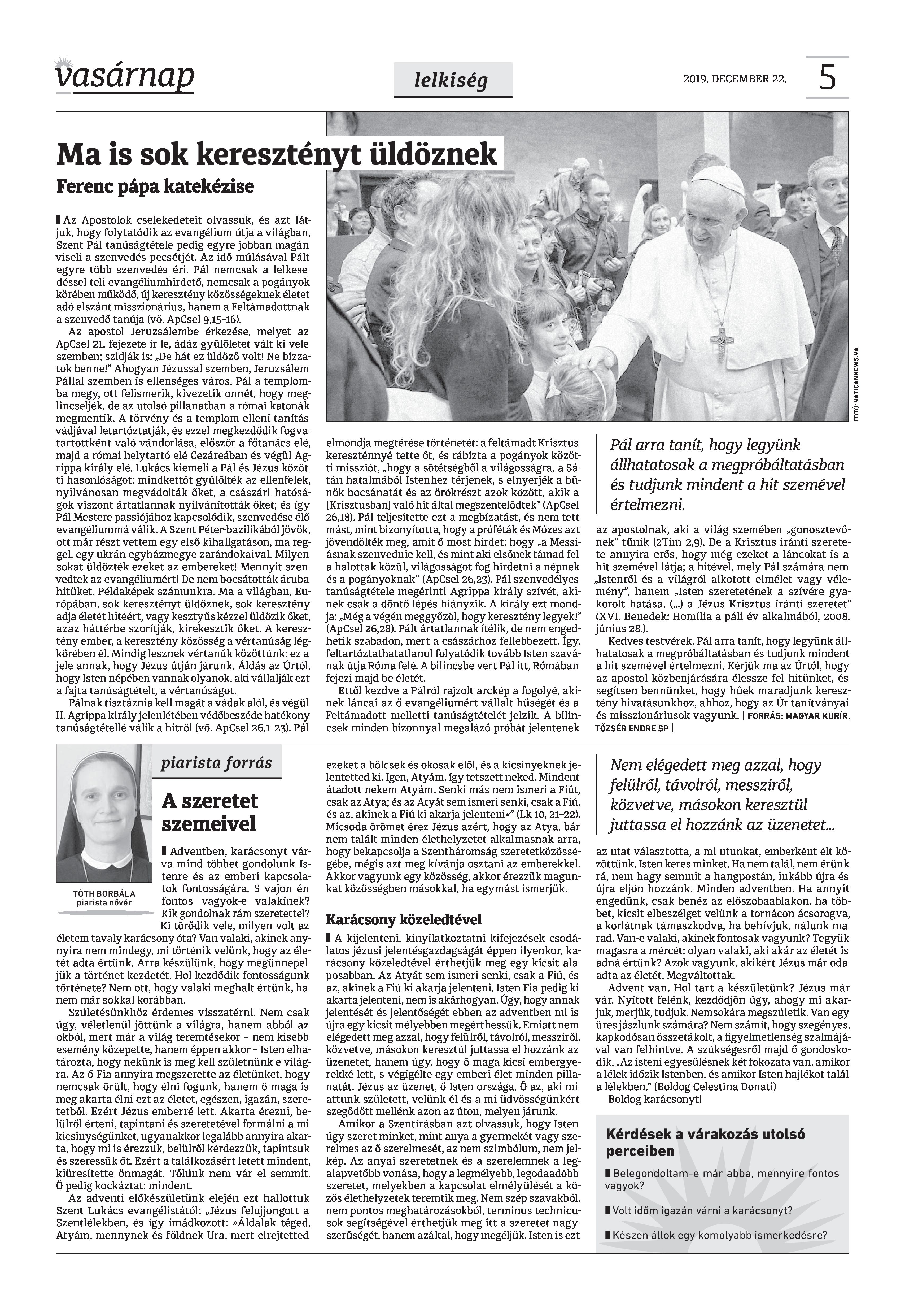 VASÁRNAP - 2019. DECEMBER 22. A Vasárnap Katolikus Hetilap 2019. december 22.. / XXIX évf. / 51. számának digitális változata. 1 / 12 2 & 3 / 12 4 & 5 / 12 6 & 7 / 12 8 & 9 / 12 10 & 11 / 12 12 / 12
