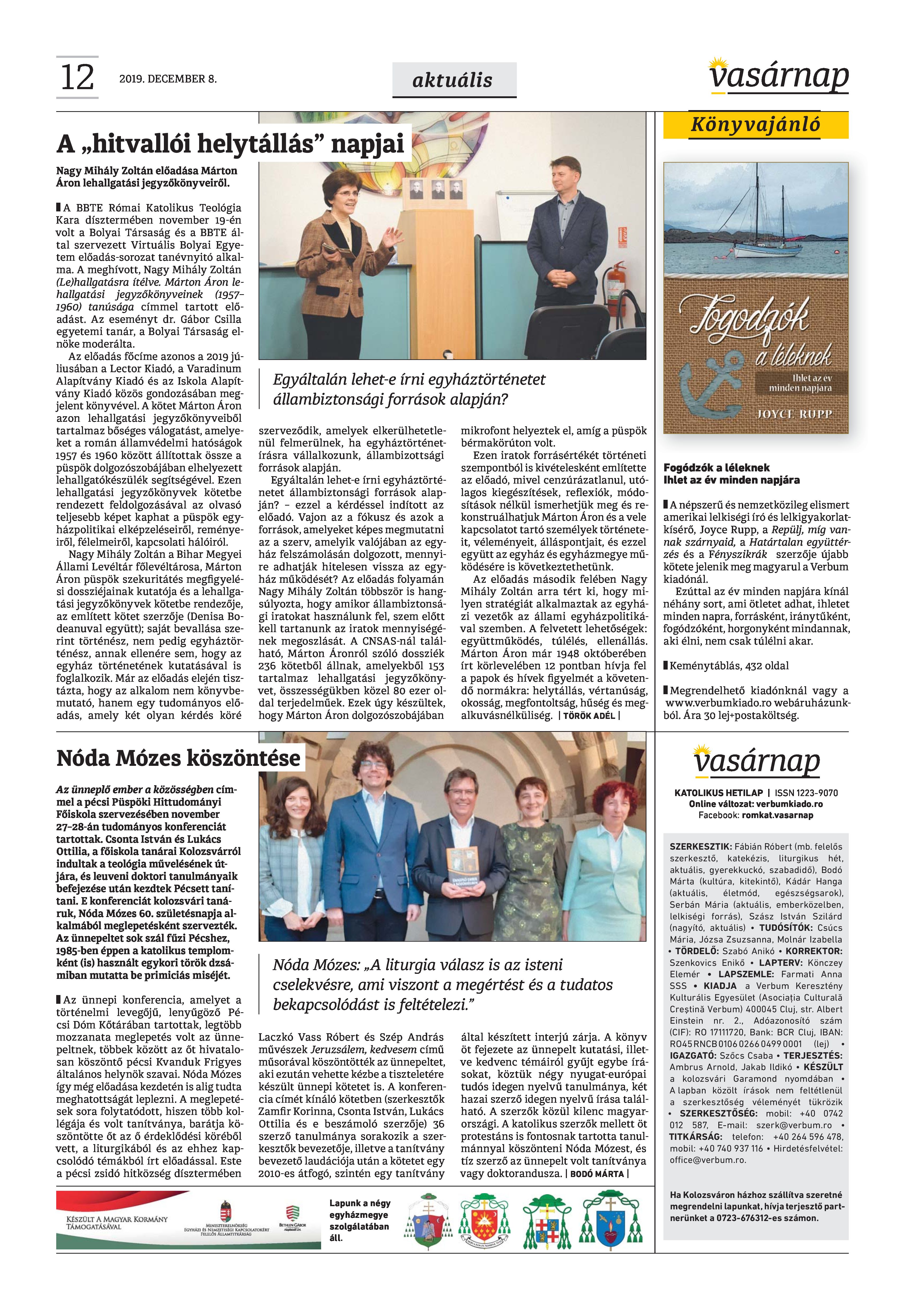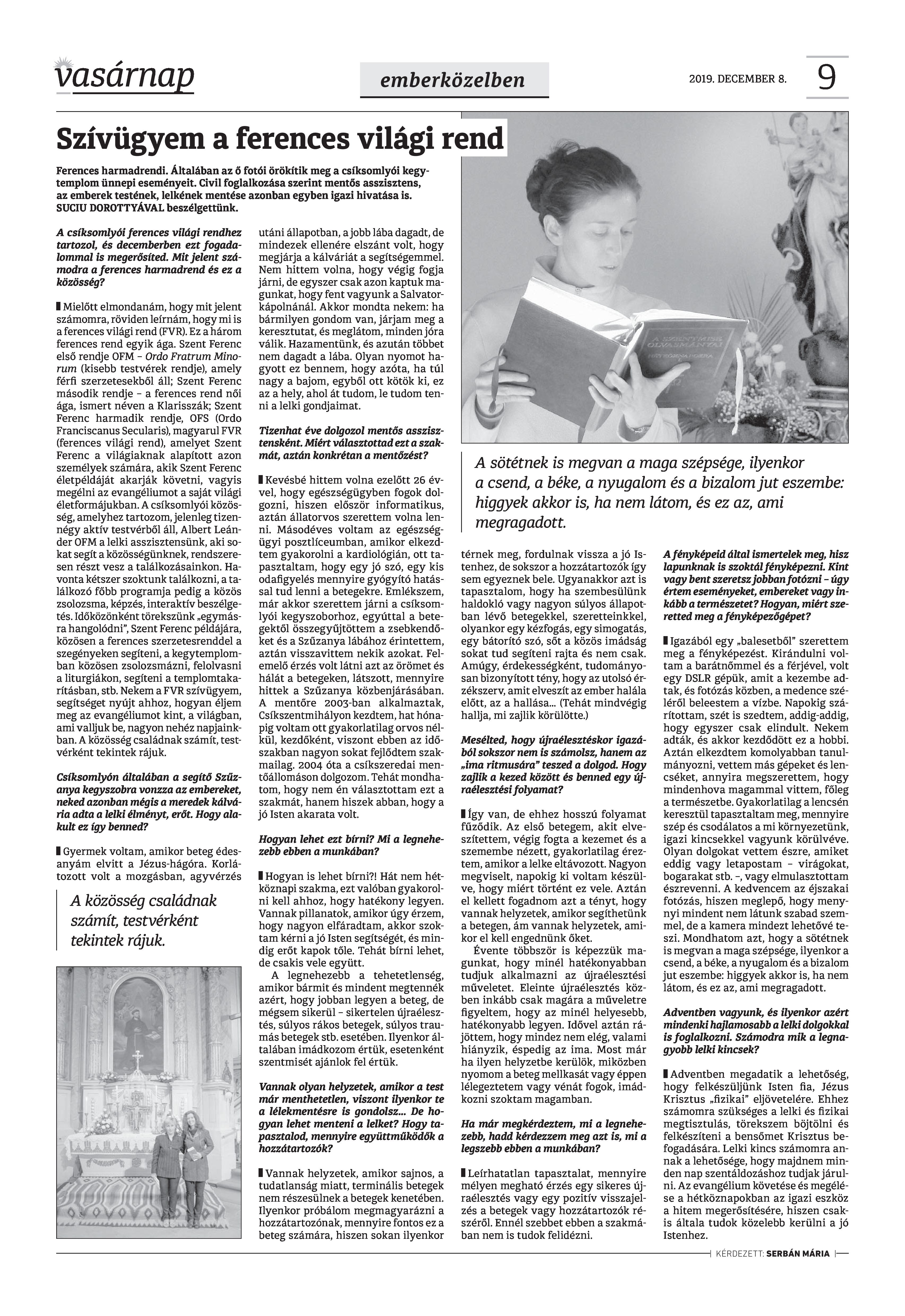 VASÁRNAP - 2019. DECEMBER 8. A Vasárnap Katolikus Hetilap 2019. december 8.. / XXIX évf. / 49. számának digitális változata. 1 / 12 2 & 3 / 12 4 & 5 / 12 6 & 7 / 12 8 & 9 / 12 10 & 11 / 12 12 / 12