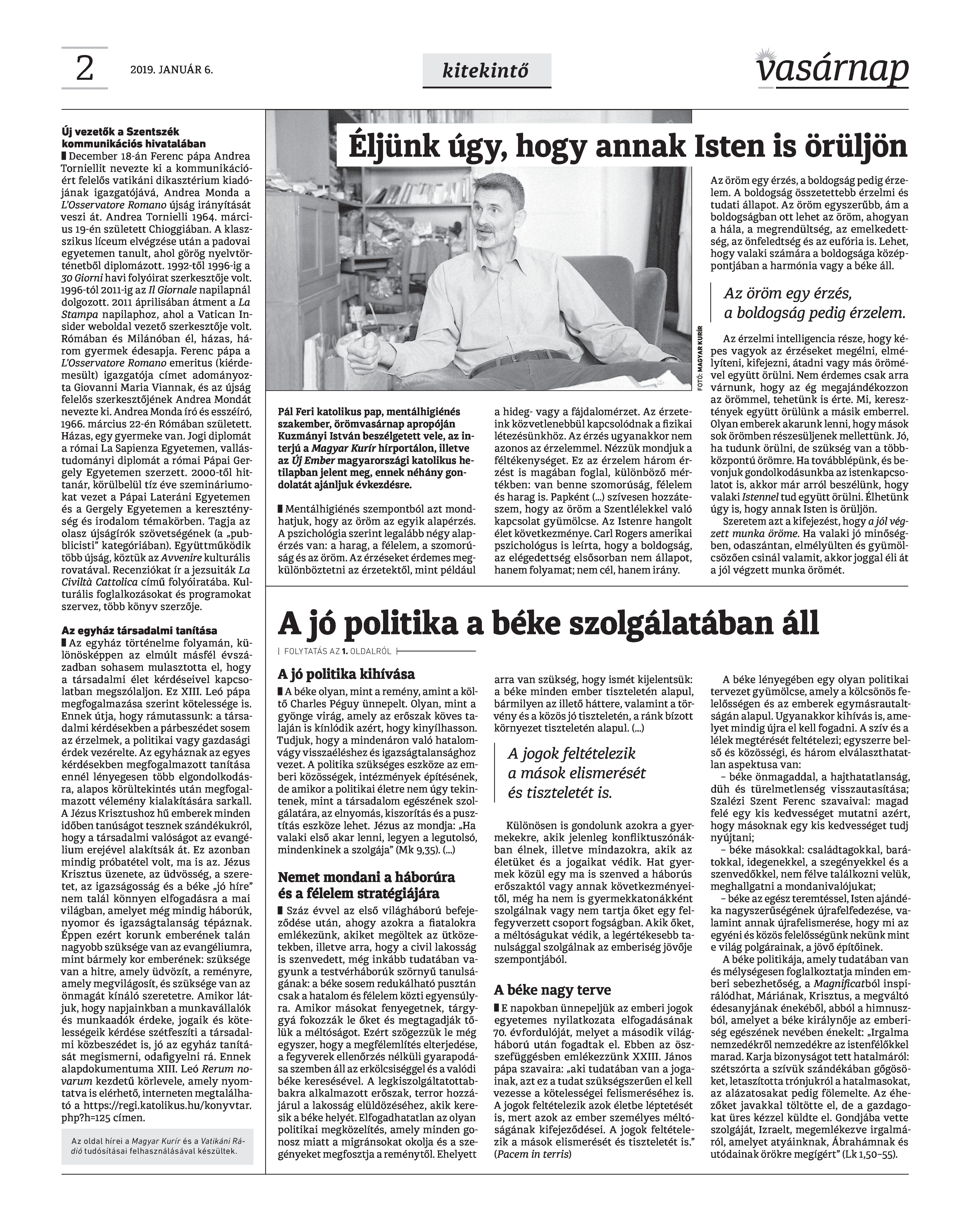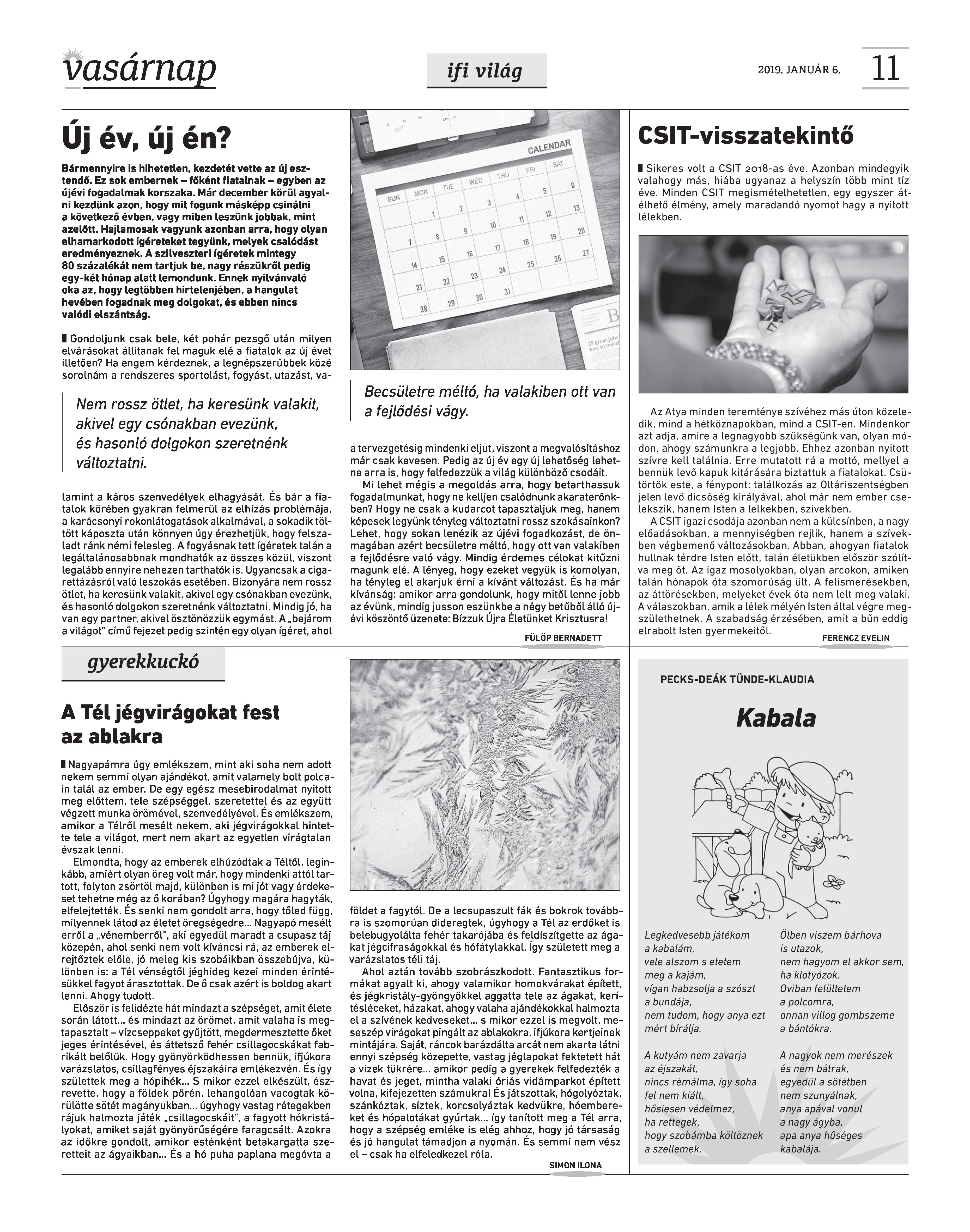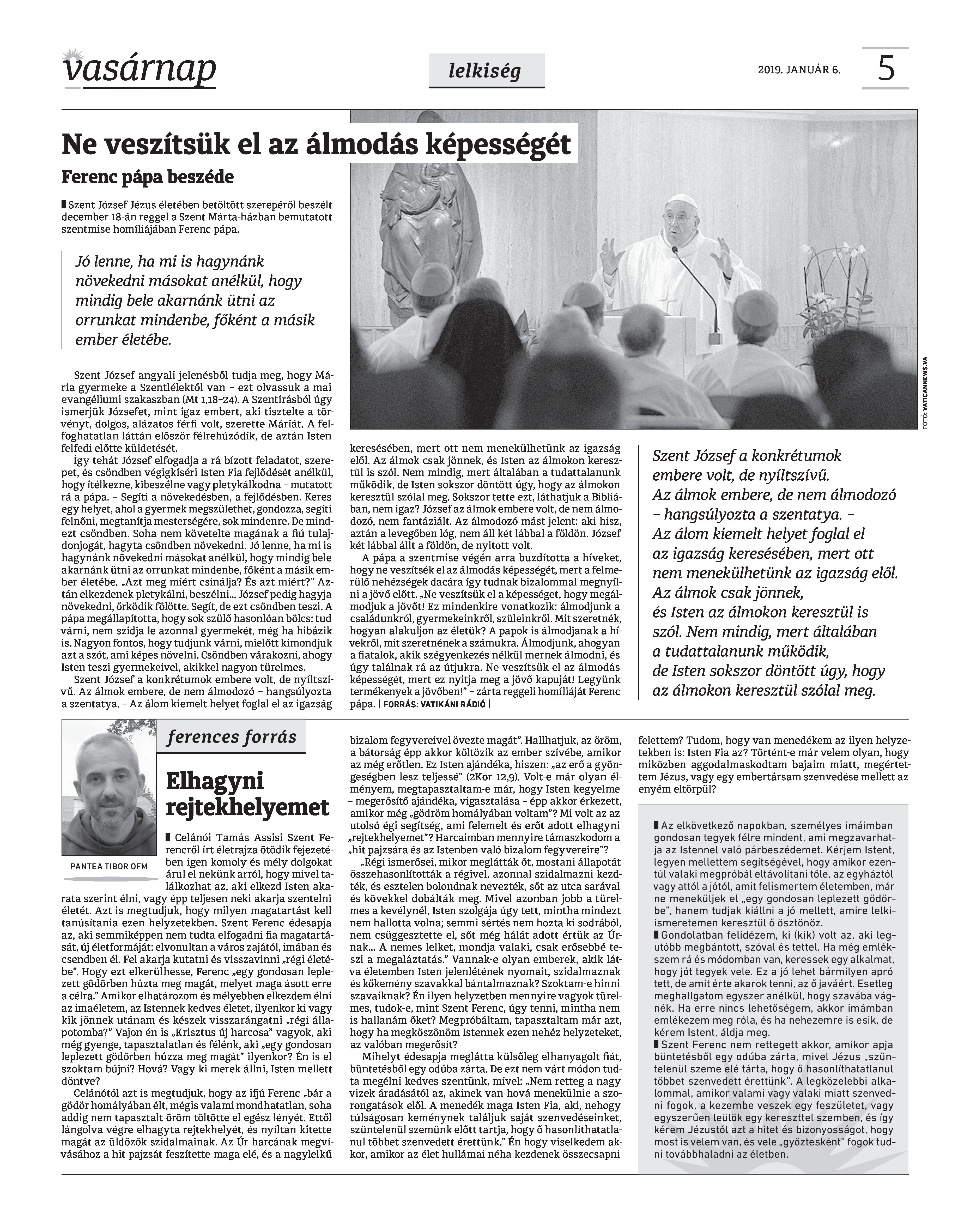 Vasárnap Katolikus Hetilap 2019. január 6. / XXIX. évf. / 1. számának digitális változata.