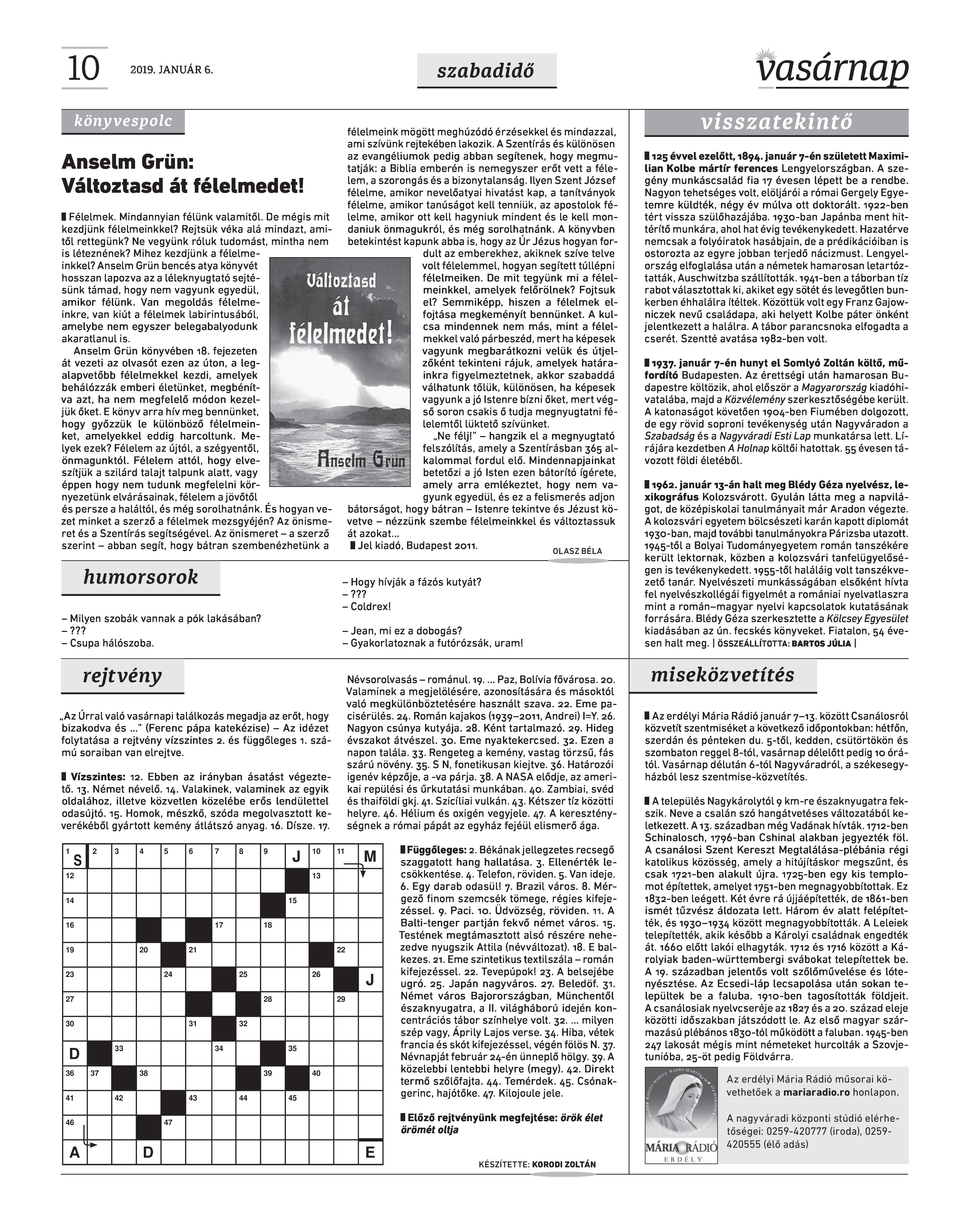 VASÁRNAP - 2019. JANUÁR 6.
