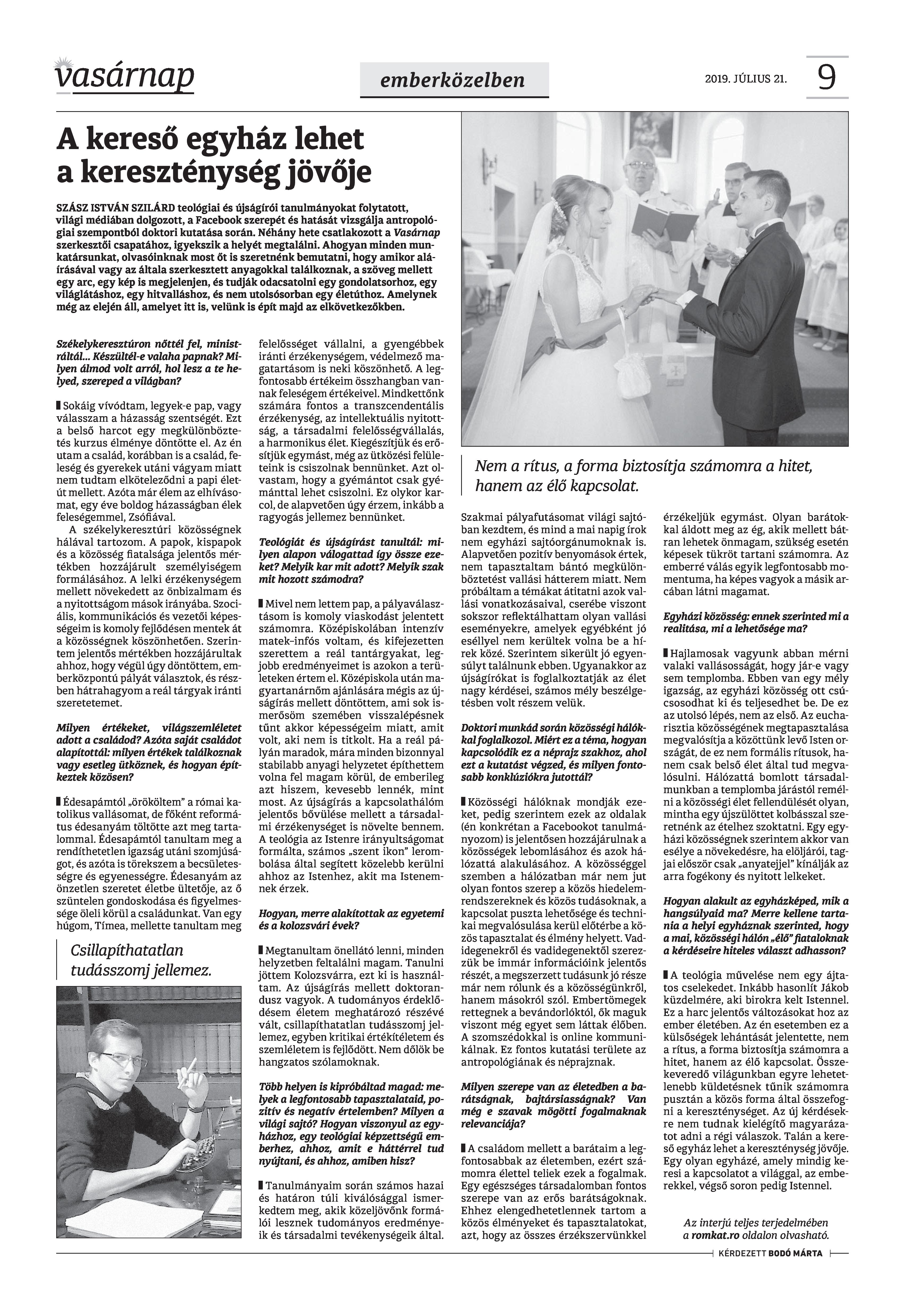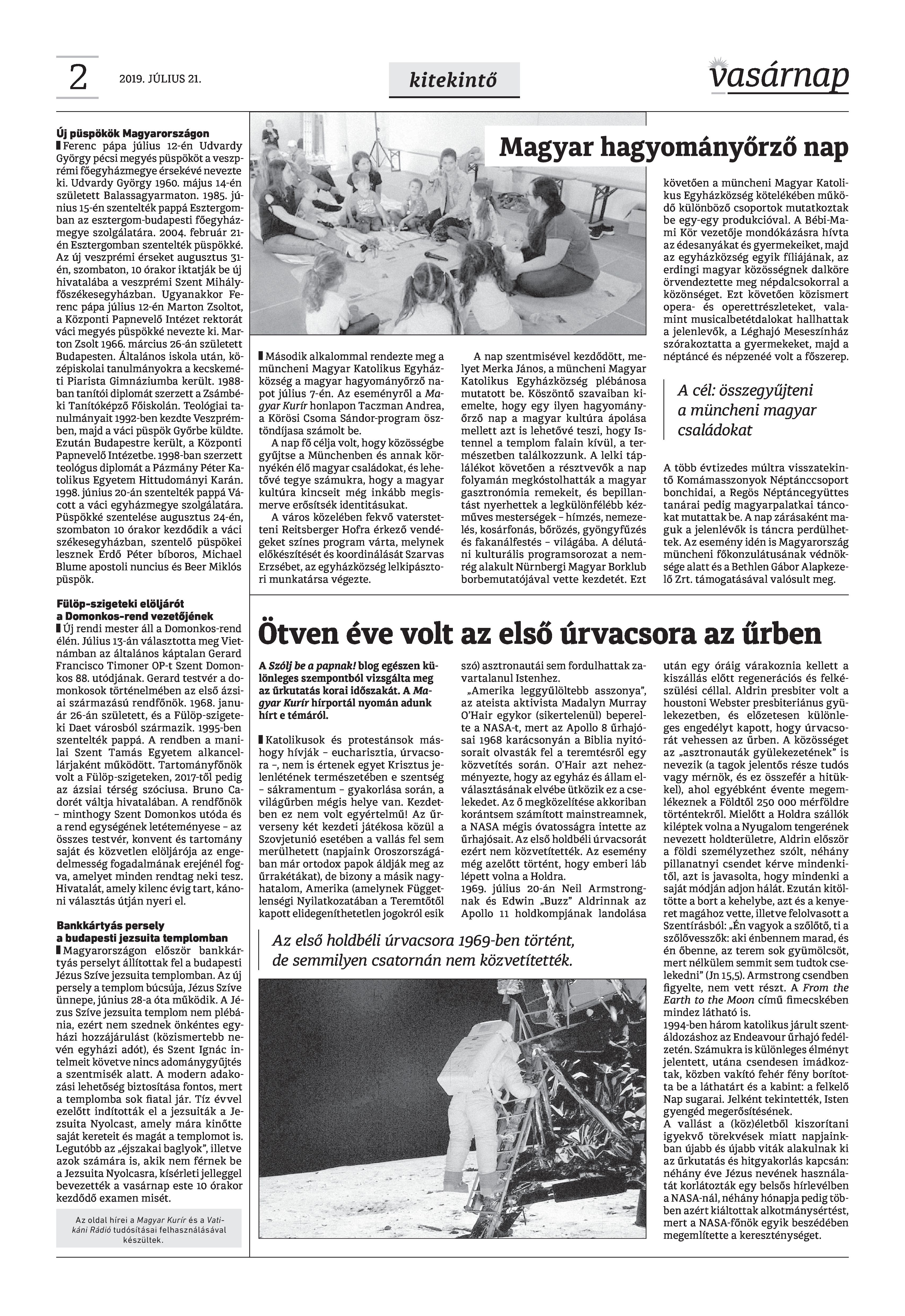 Vasárnap Katolikus Hetilap 2019. július 21.. / XXIX évf. / 29. számának digitális változata.