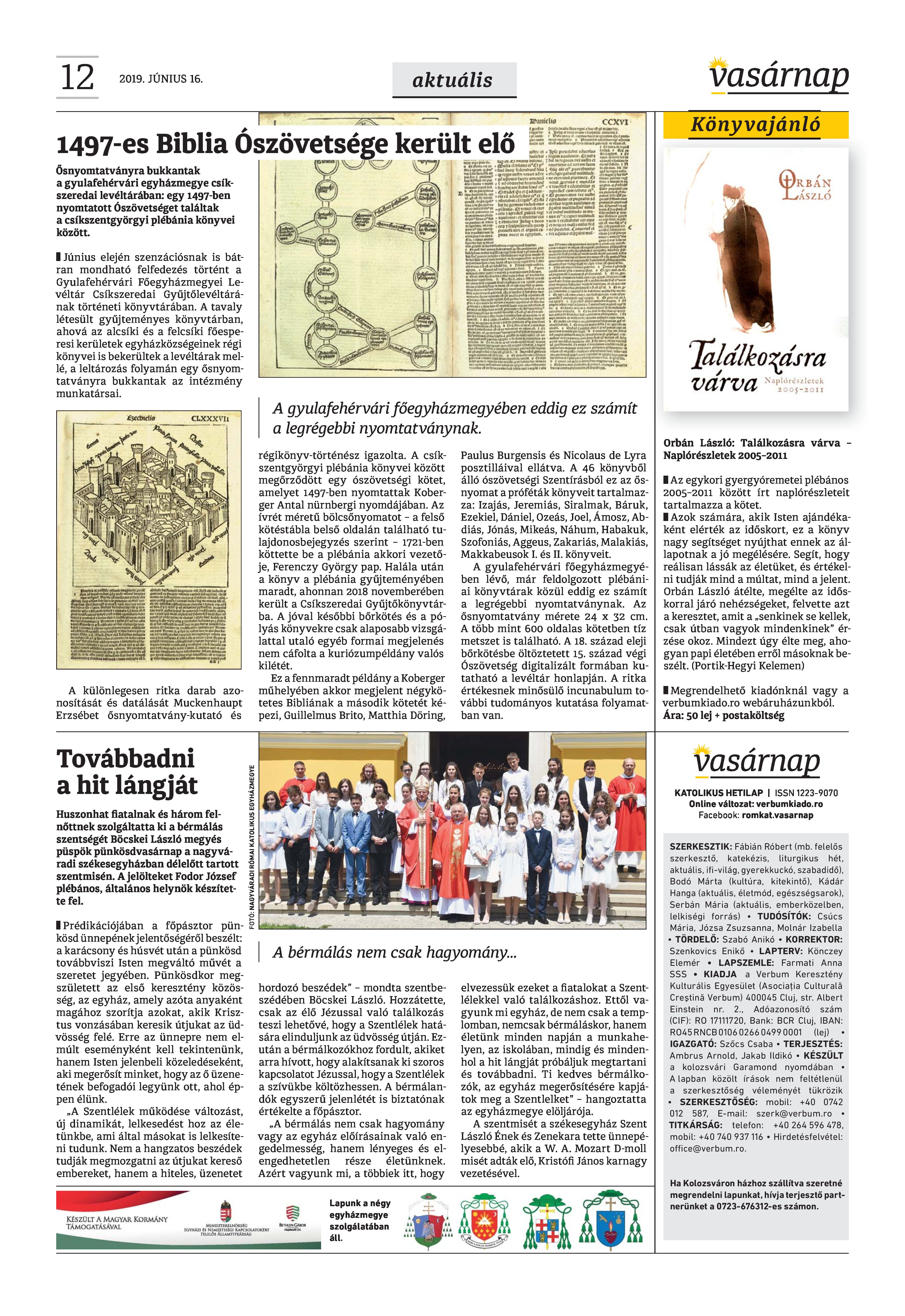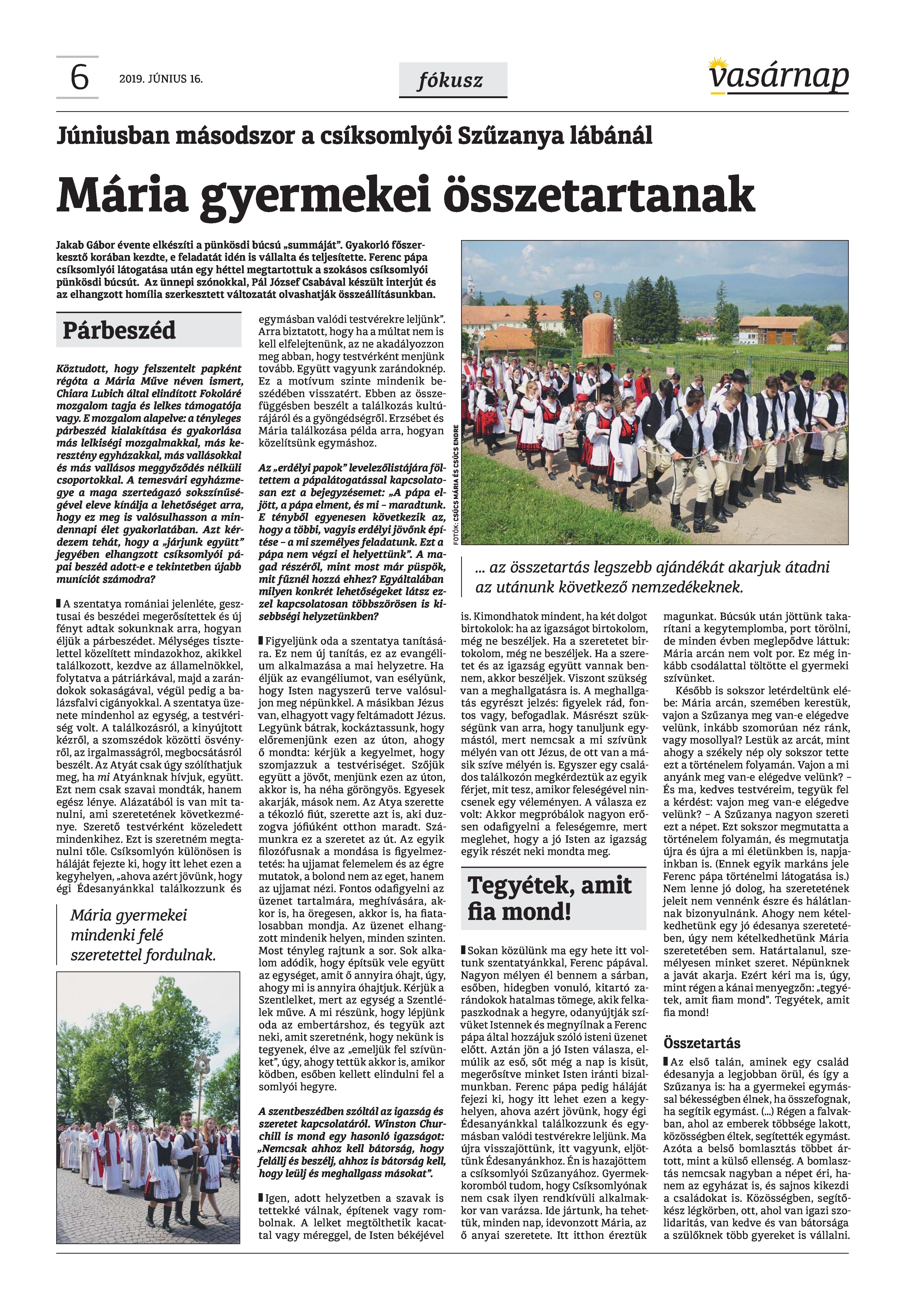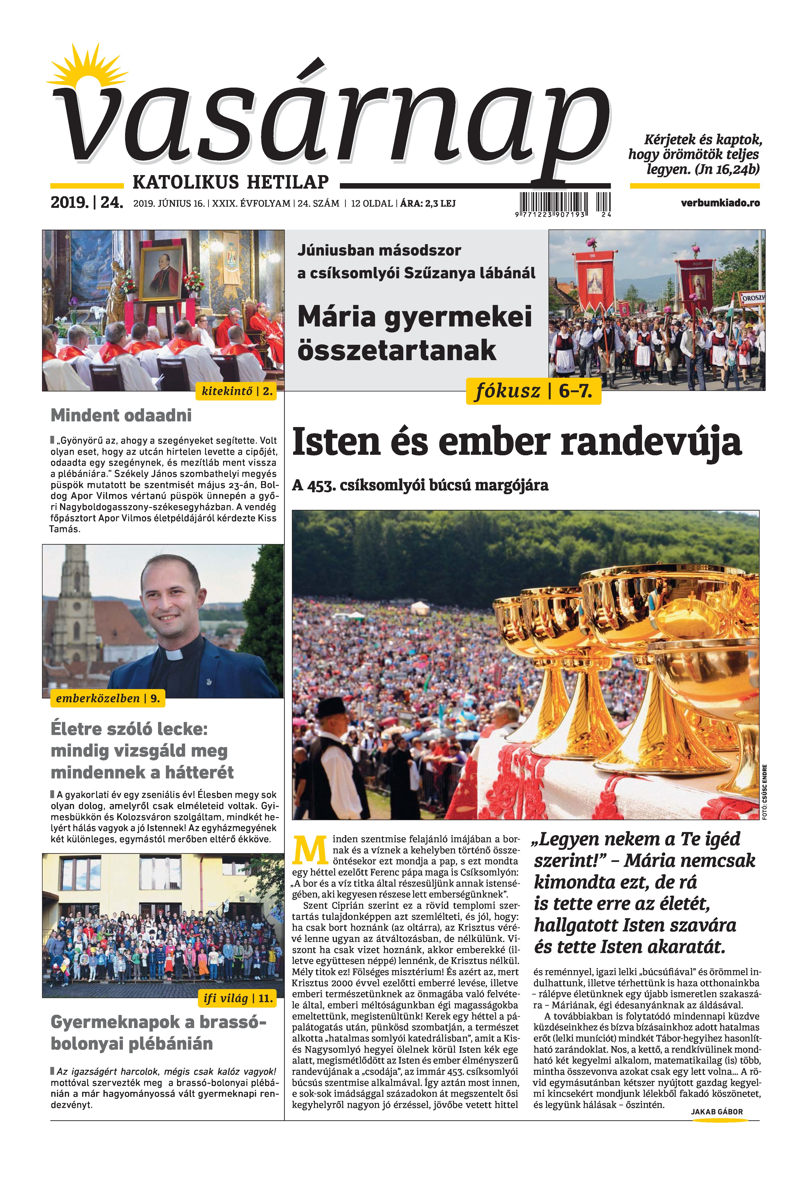 VASÁRNAP - 2019. JÚNIUS 16. A Vasárnap Katolikus Hetilap 2019. június 16. / XXIX évf. / 24. számának digitális változata. 1 / 12 2 & 3 / 12 4 & 5 / 12 6 & 7 / 12 8 & 9 / 12 10 & 11 / 12 12 / 12