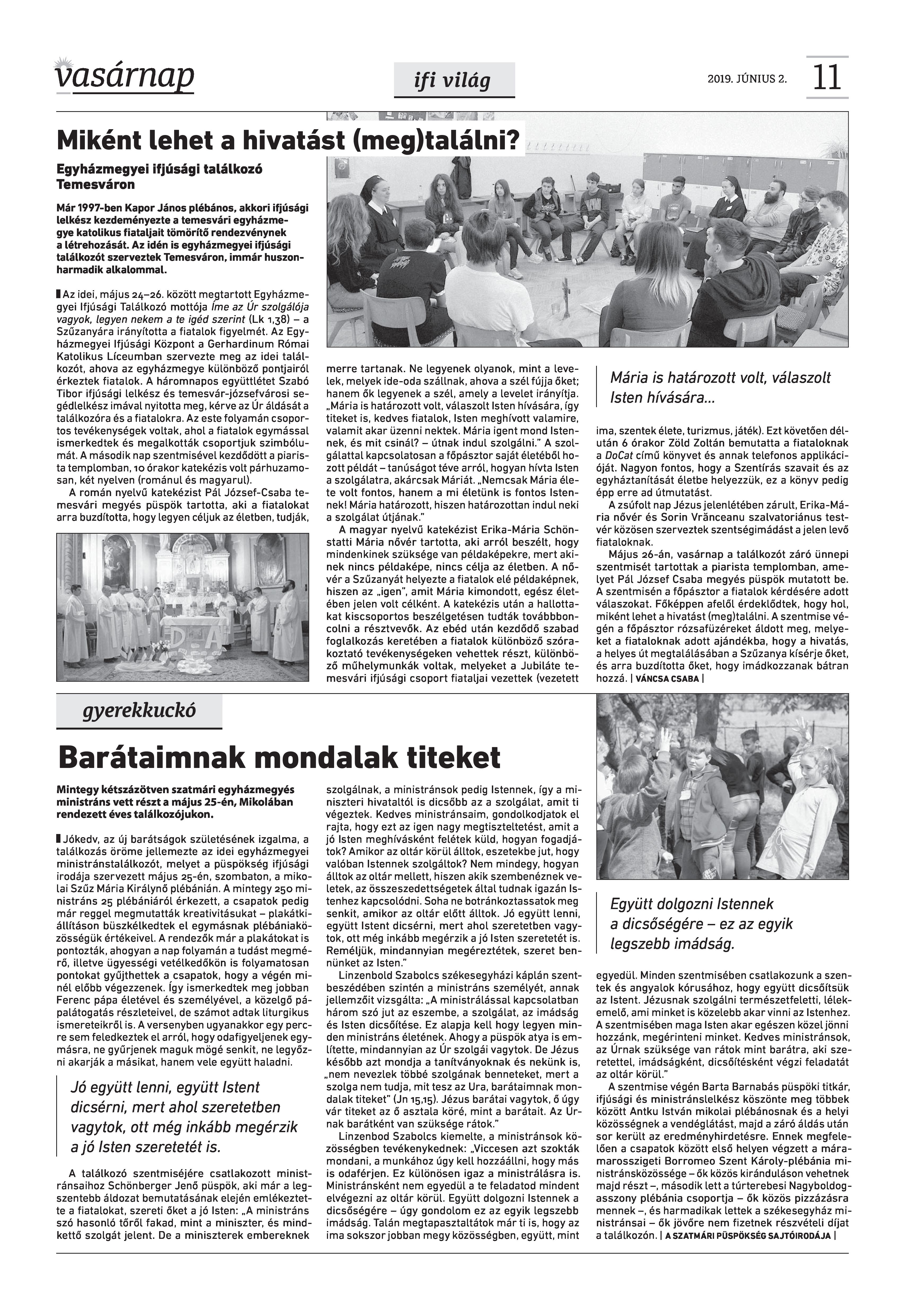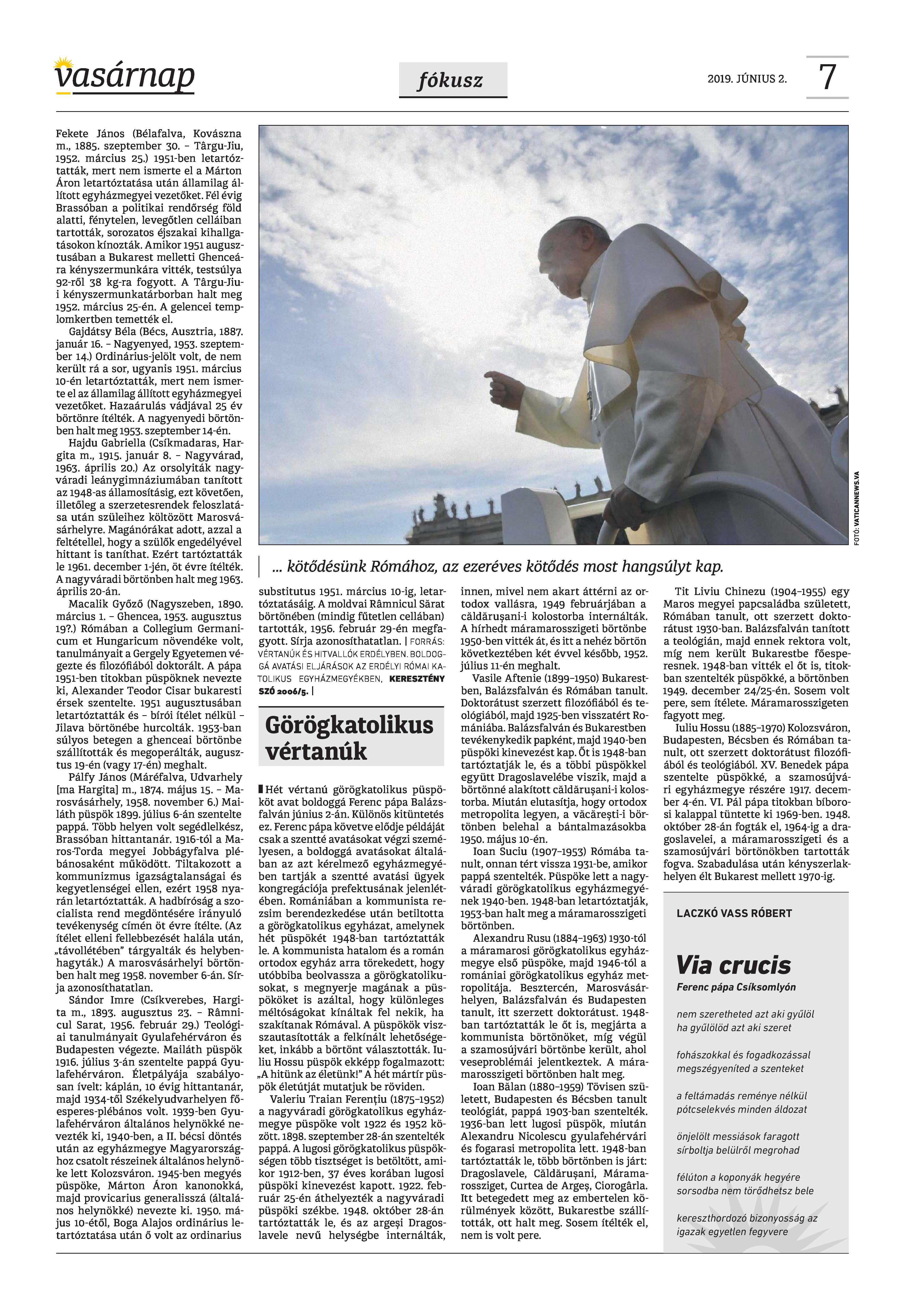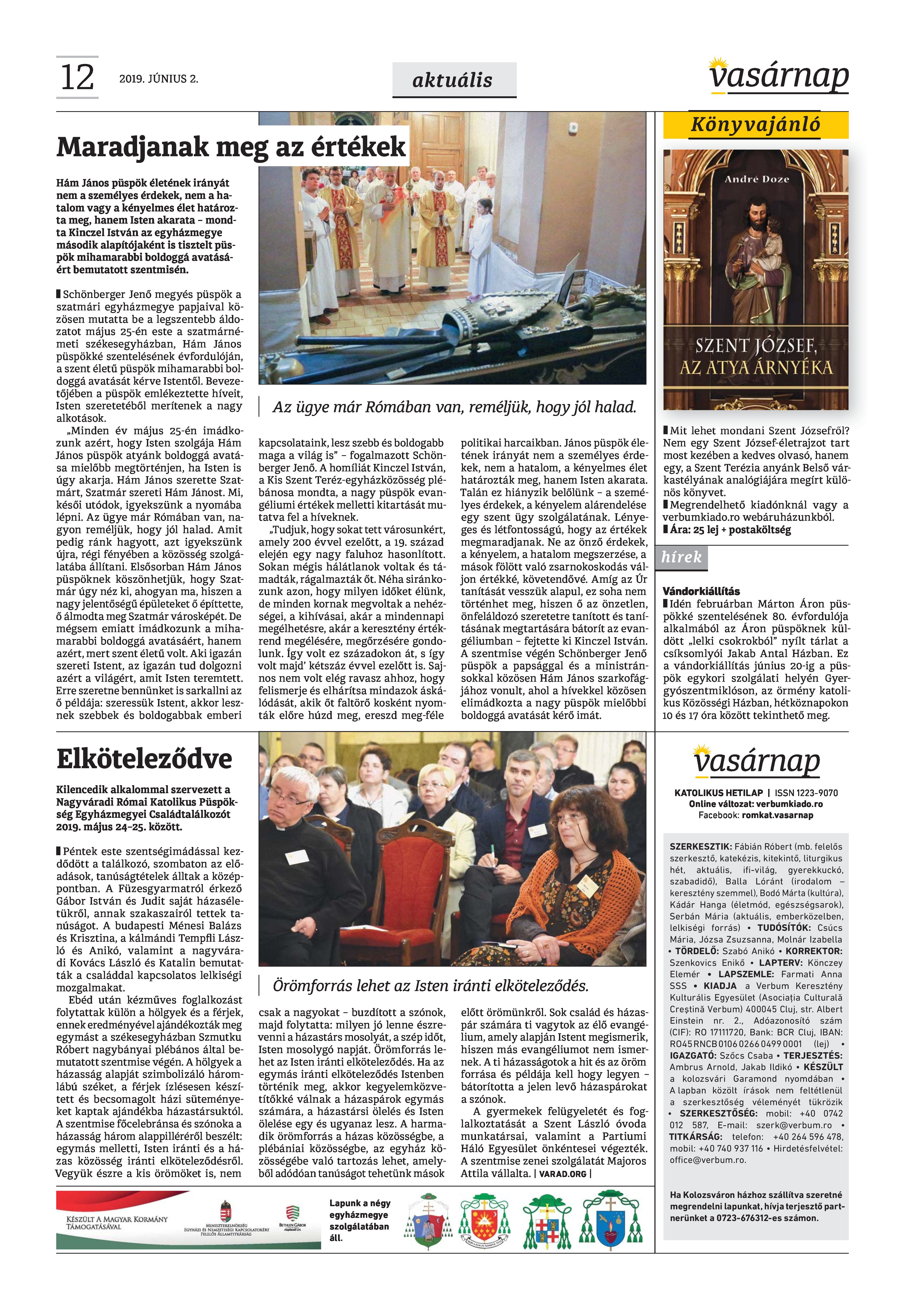 Vasárnap Katolikus Hetilap 2019. június 2. / XXIX évf. / 22. számának digitális változata.