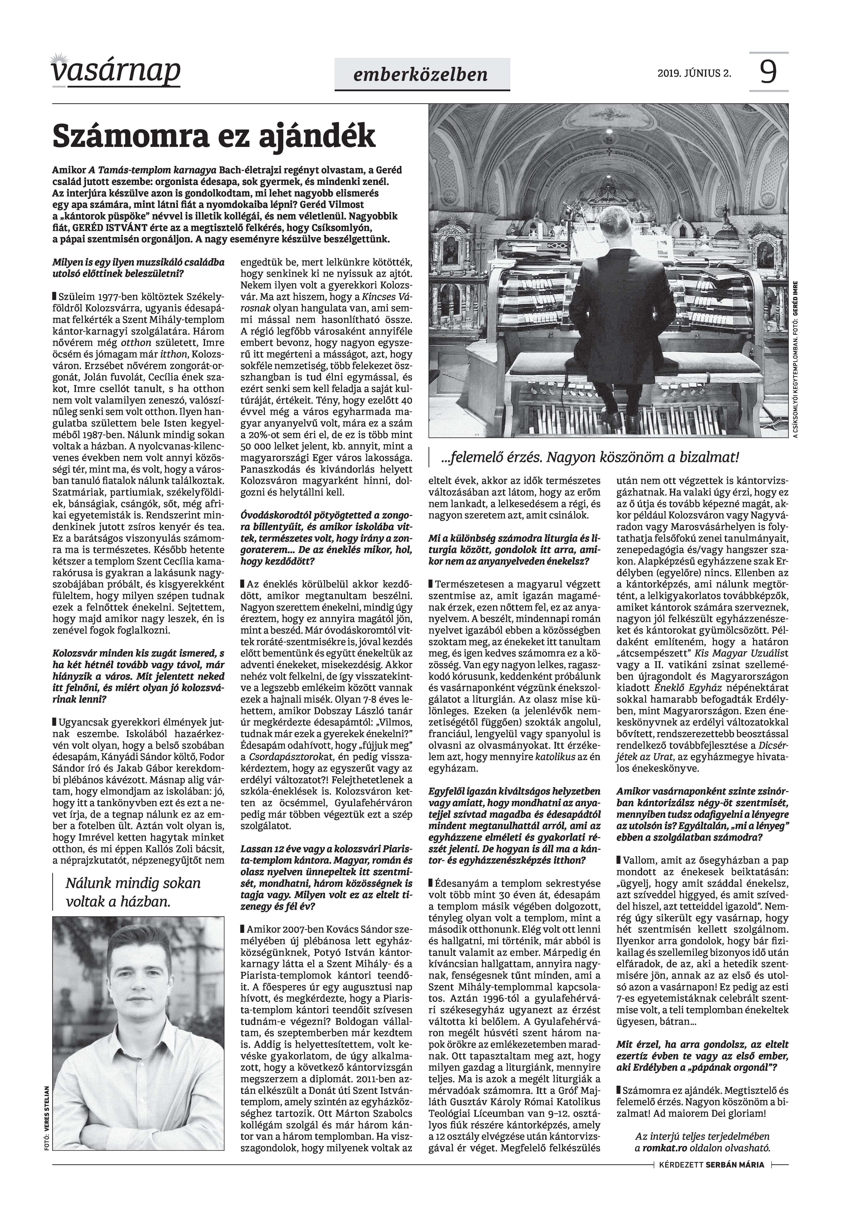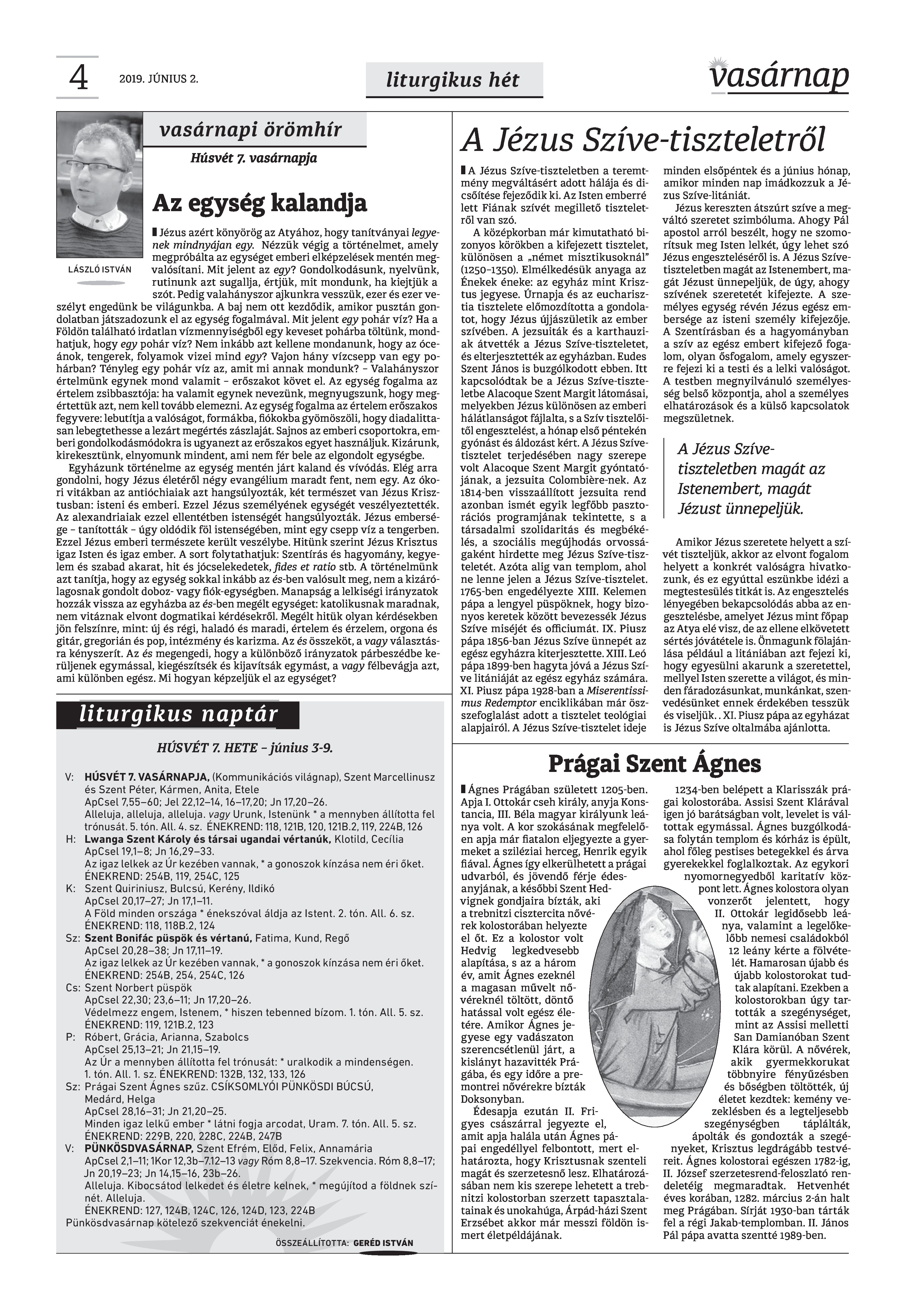VASÁRNAP - 2019. JÚNIUS 2.
