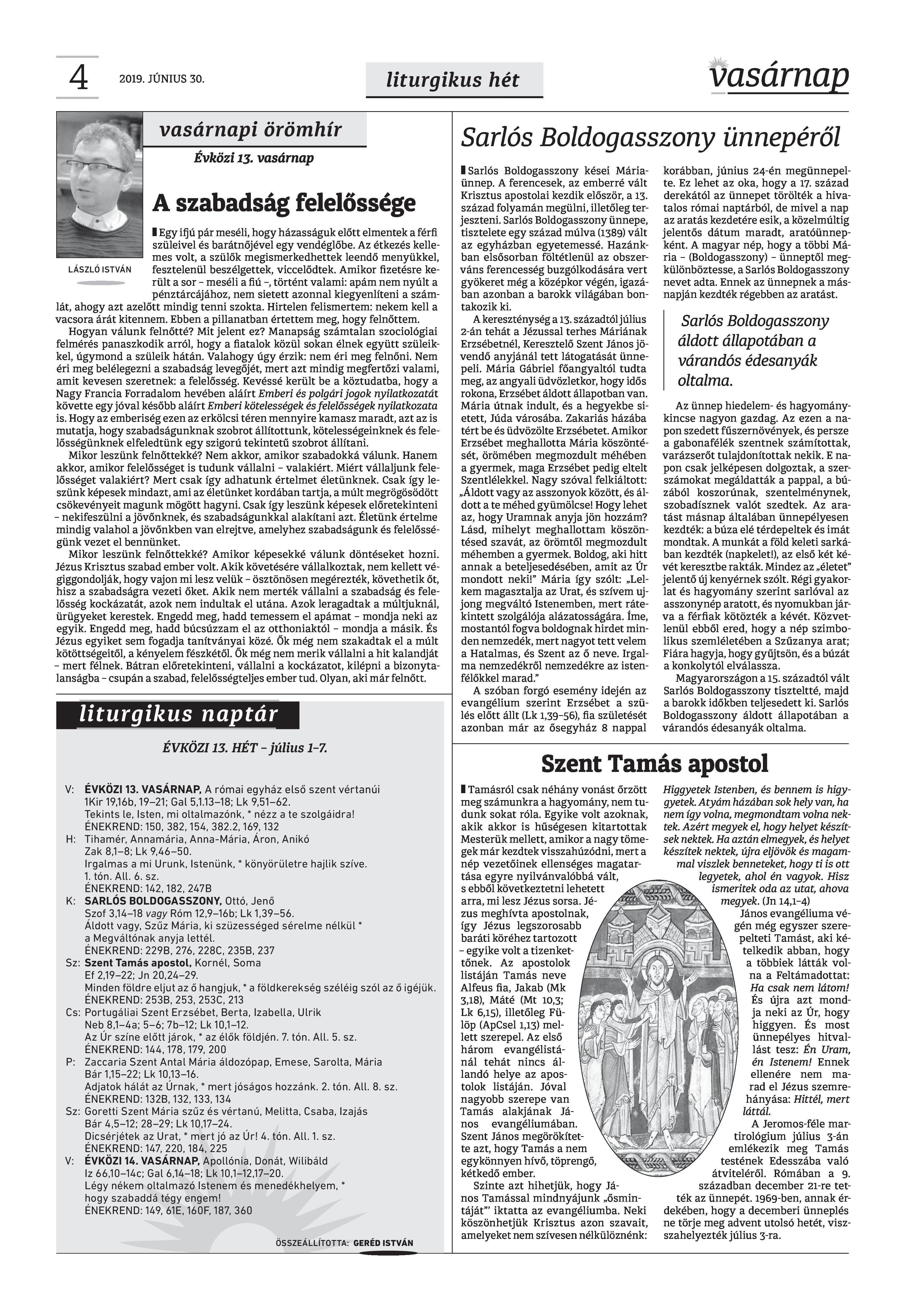 VASÁRNAP - 2019. JÚNIUS 30. A Vasárnap Katolikus Hetilap 2019. június 30. / XXIX évf. / 26. számának digitális változata. 1 / 12 2 & 3 / 12 4 & 5 / 12 6 & 7 / 12 8 & 9 / 12 10 & 11 / 12 12 / 12