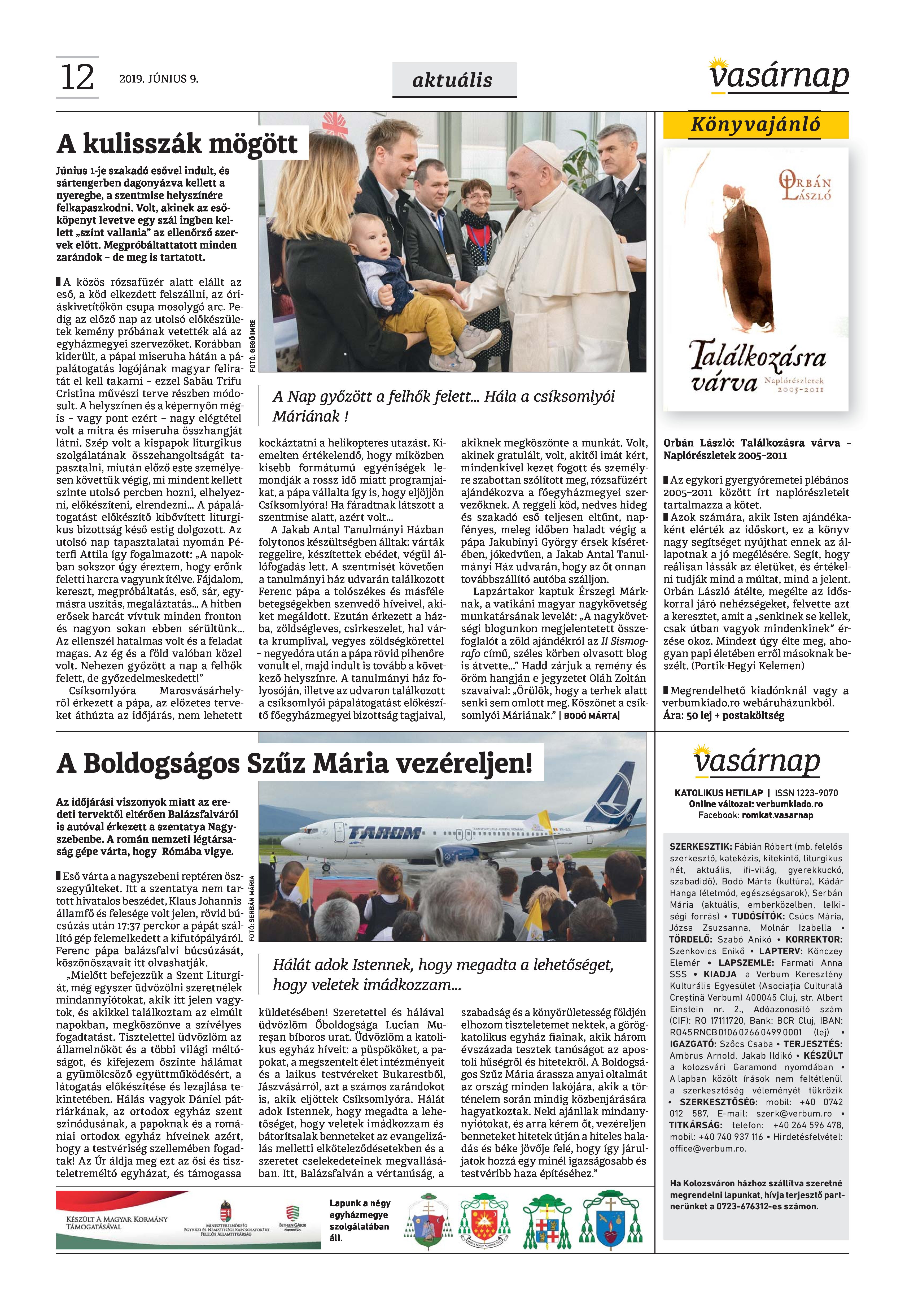 Vasárnap Katolikus Hetilap 2019. június 9. / XXIX évf. / 23. számának digitális változata.