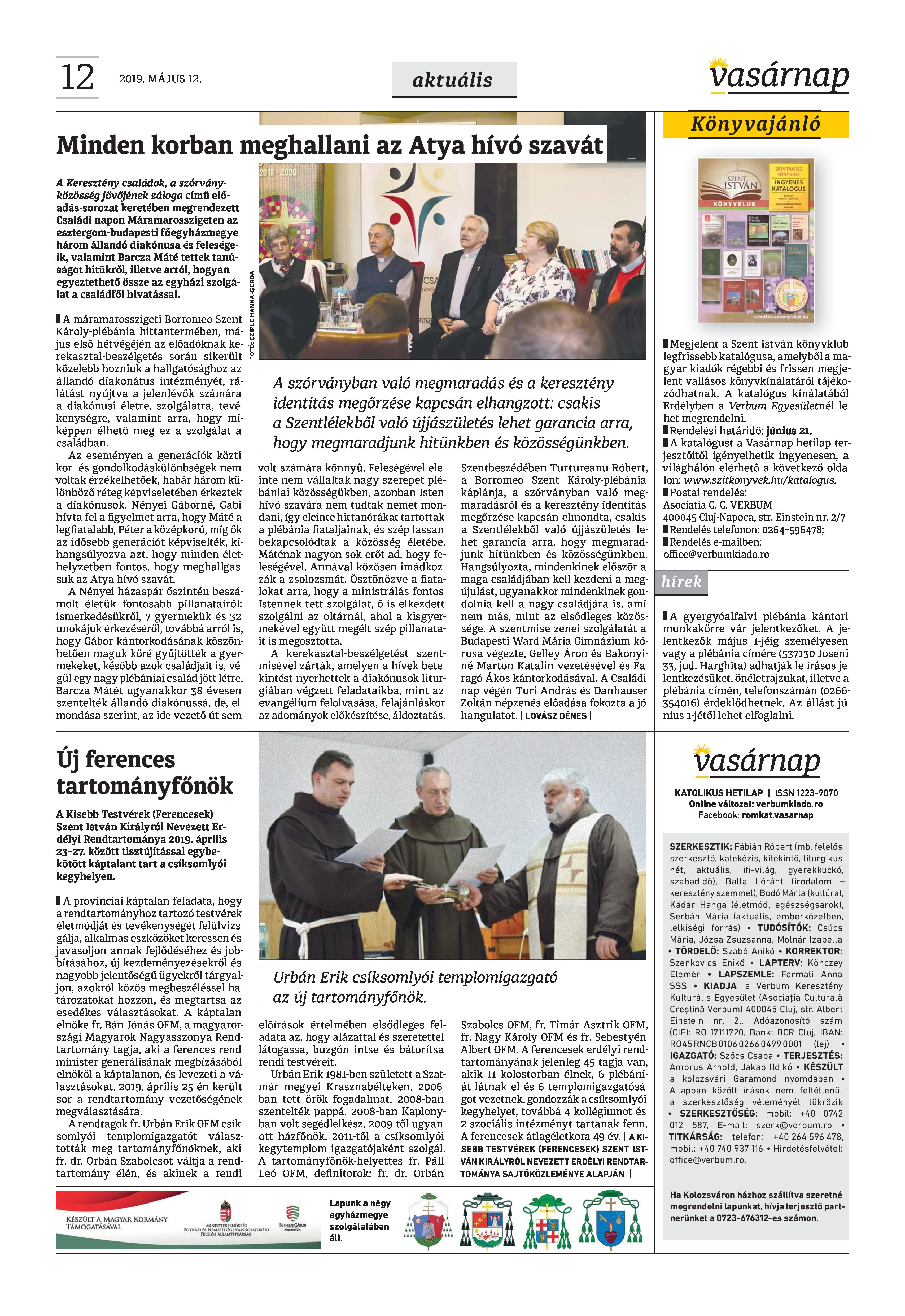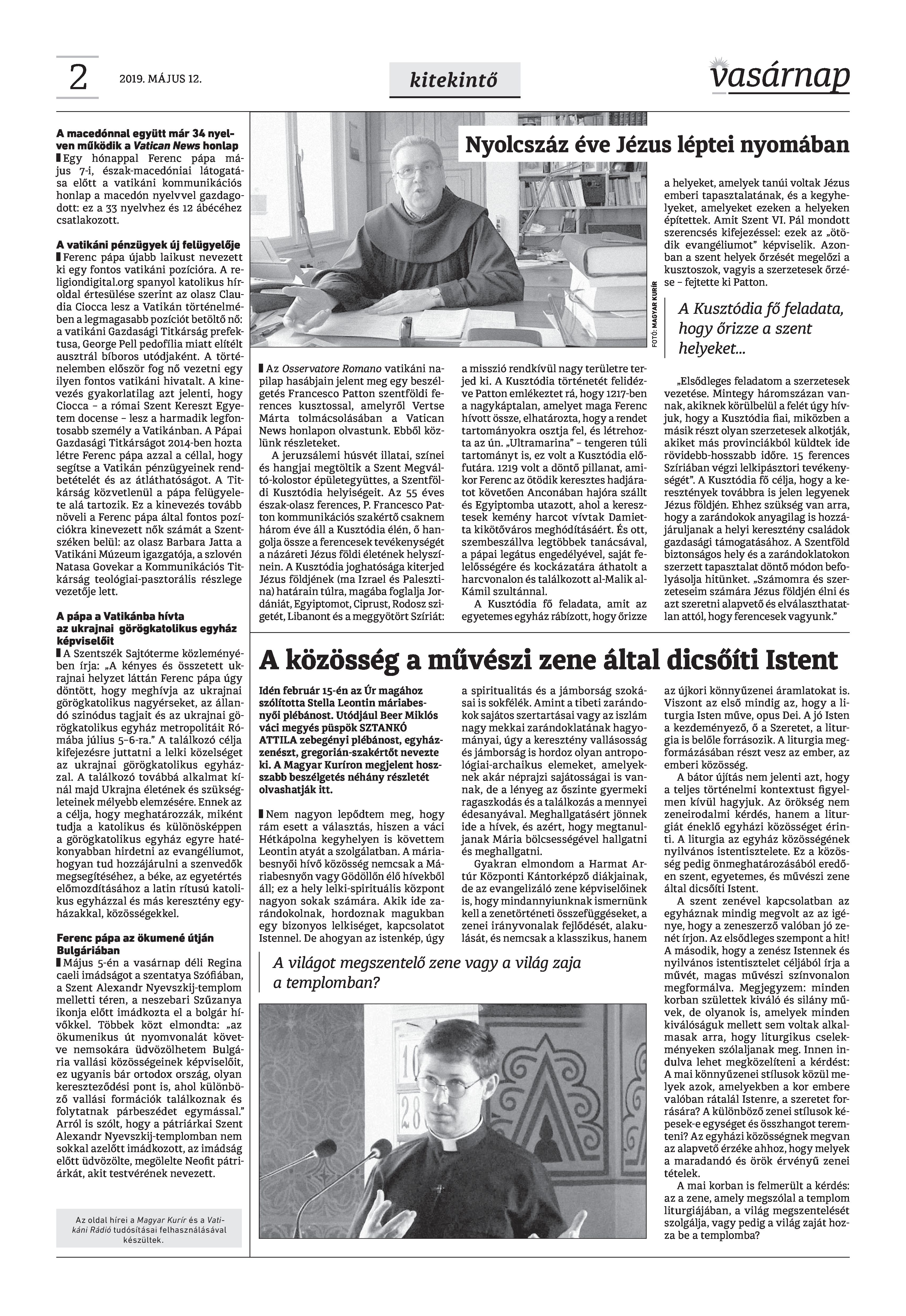 Vasárnap Katolikus Hetilap 2019. május 12. / XXIX évf. / 19. számának digitális változata.