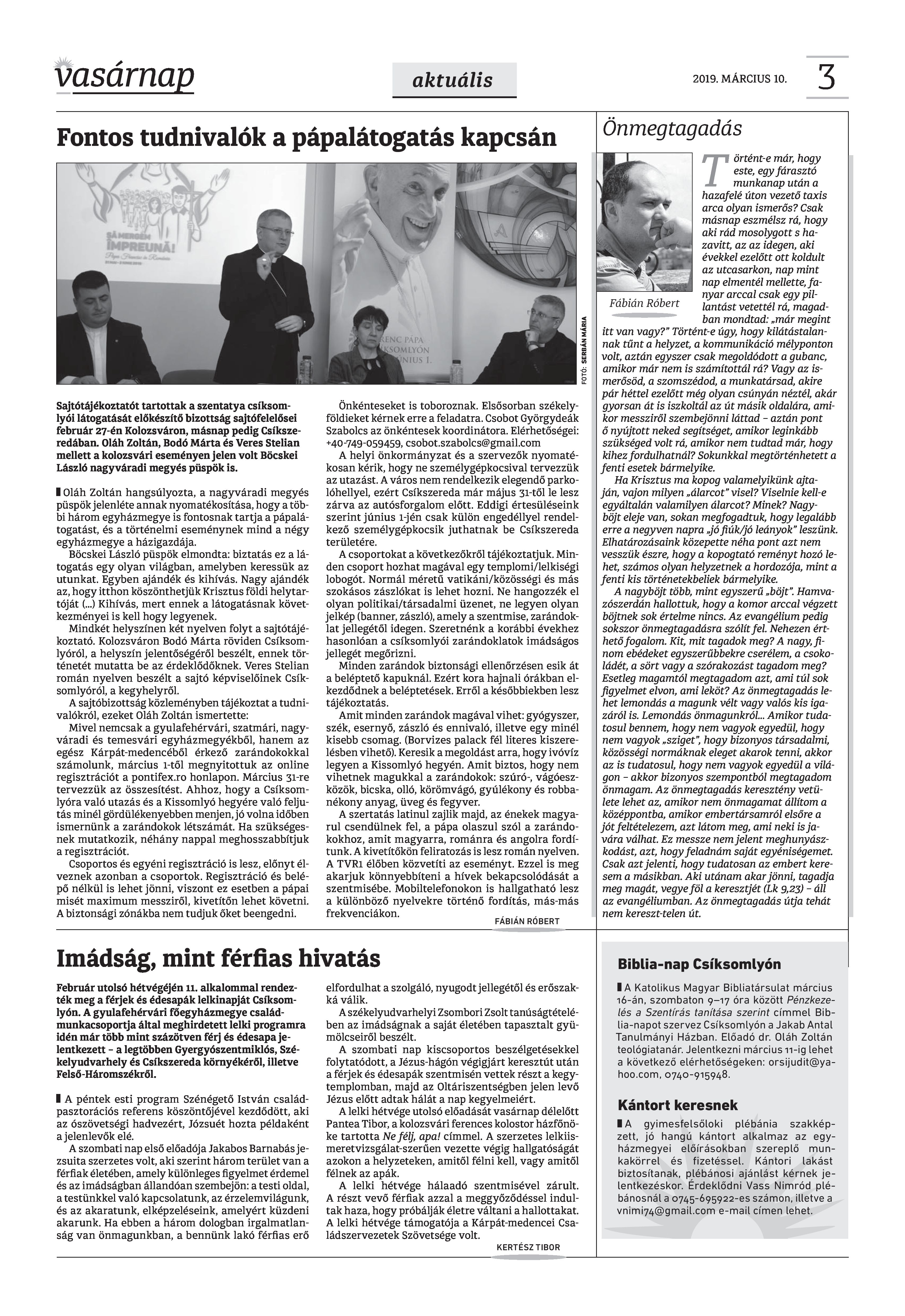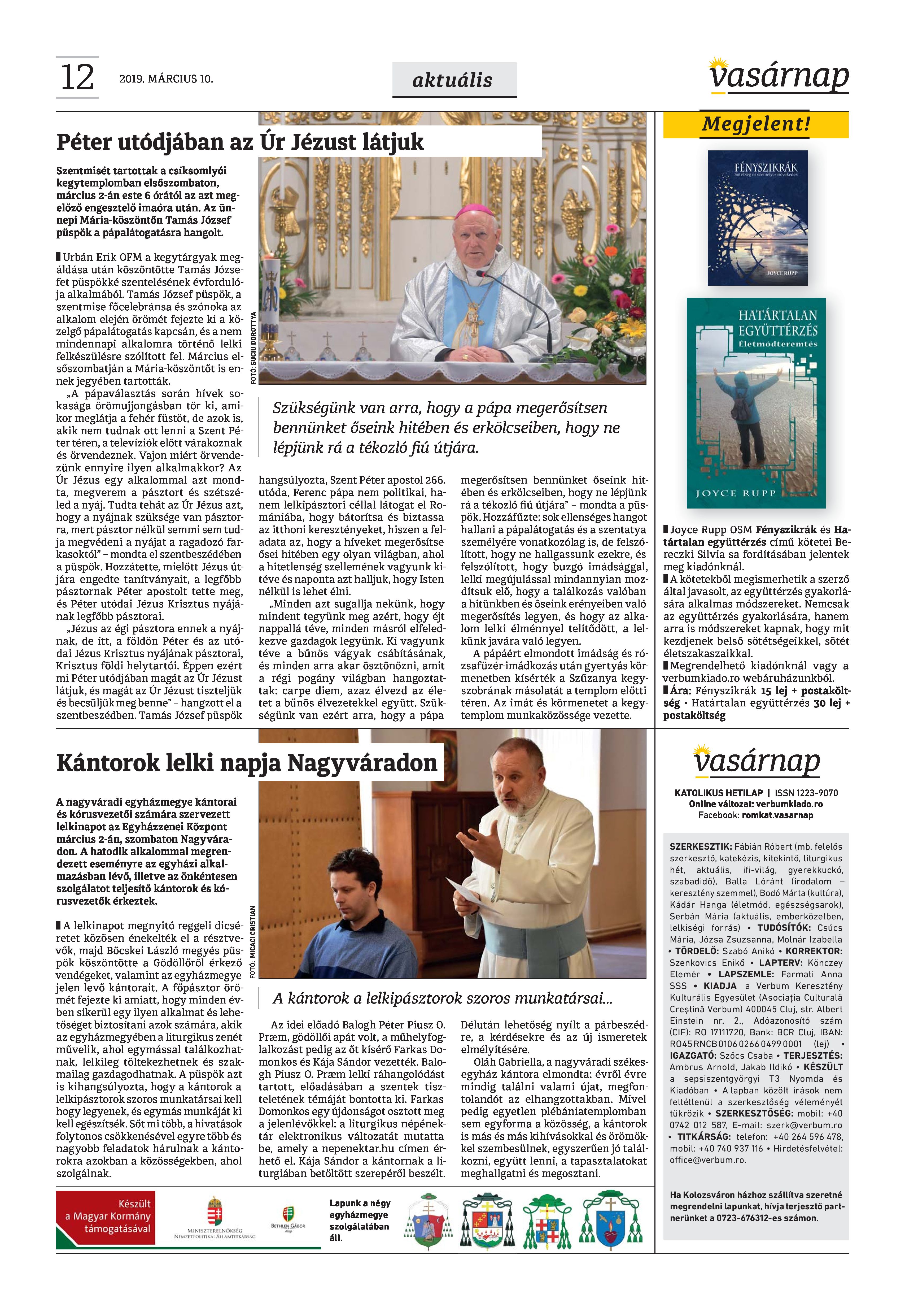 VASÁRNAP - 2019. MÁRCIUS 10. A Vasárnap Katolikus Hetilap 2019. március 10. / XXIX évf. / 10. számának digitális változata. 1 / 12 2 & 3 / 12 4 & 5 / 12 6 & 7 / 12 8 & 9 / 12 10 & 11 / 12 12 / 12