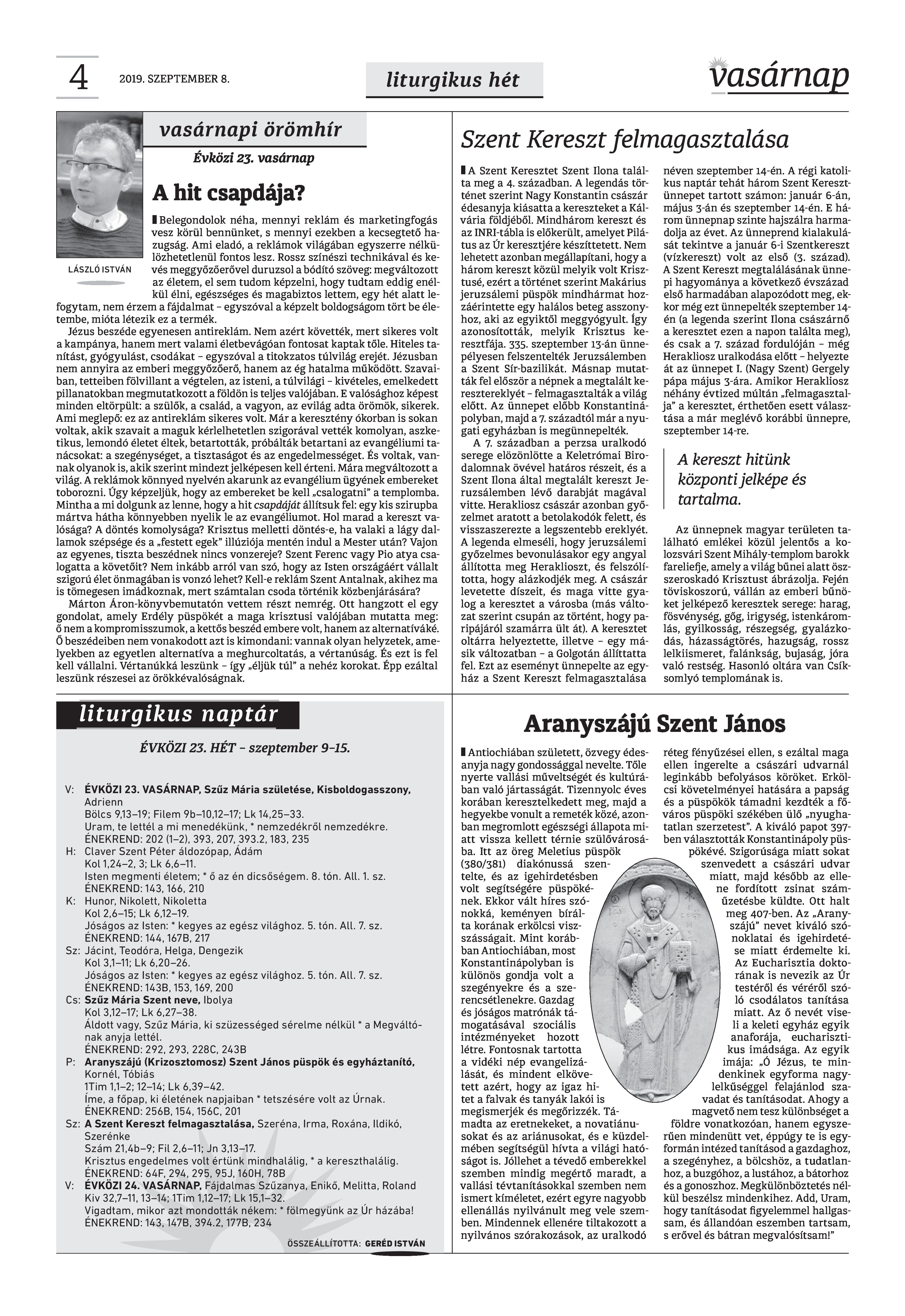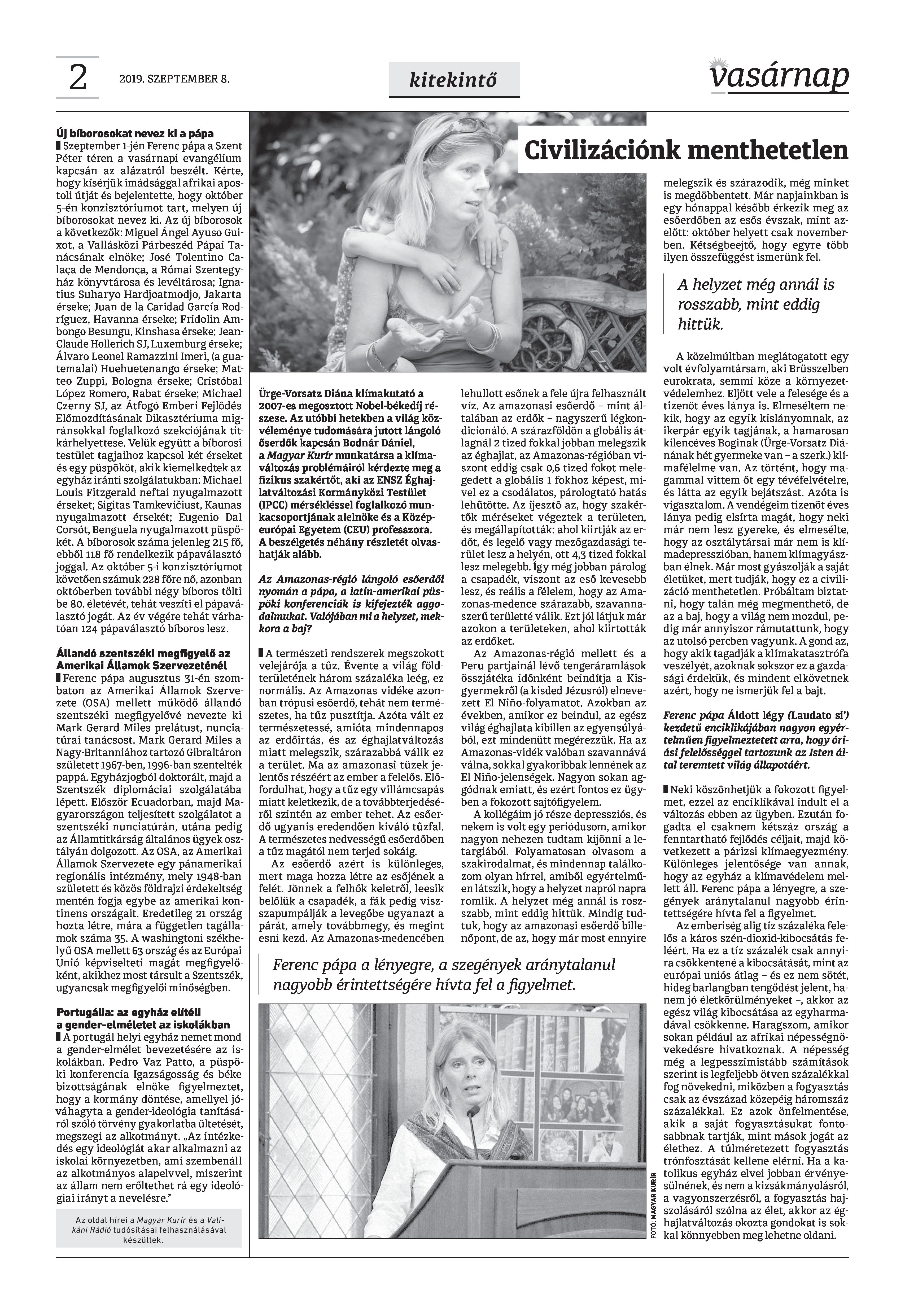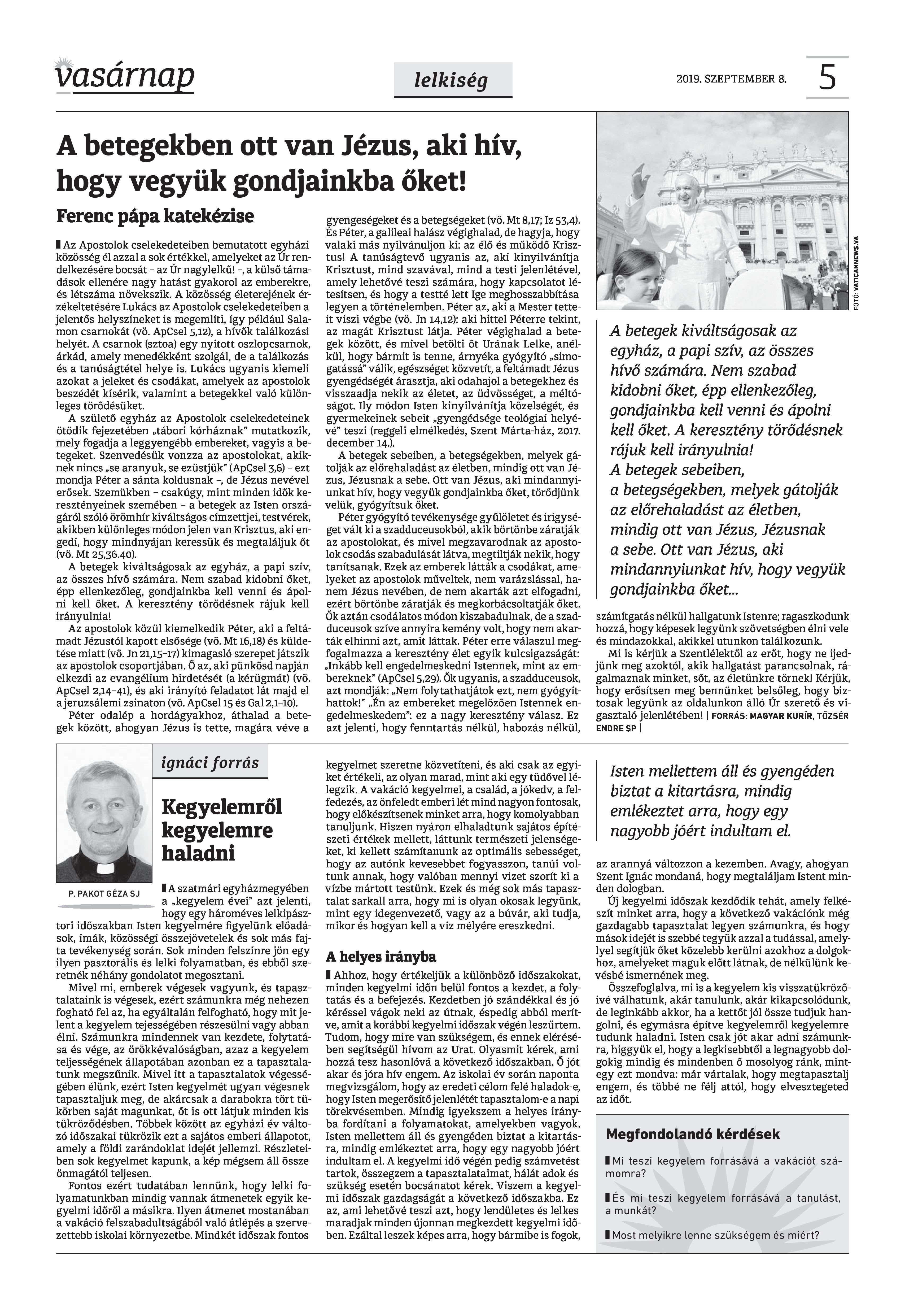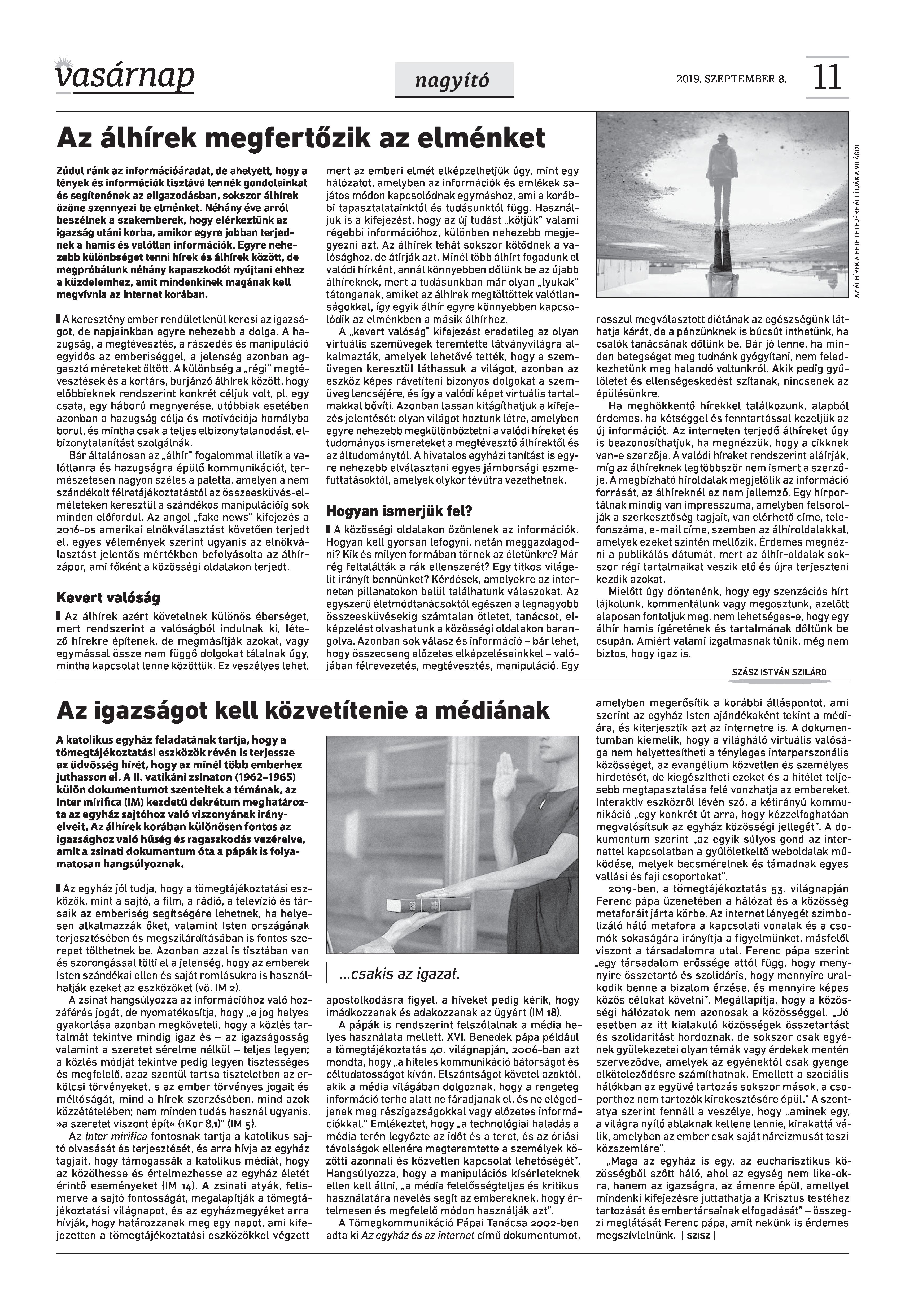 Vasárnap Katolikus Hetilap 2019. szeptember 8. / XXIX évf. / 36. számának digitális változata.